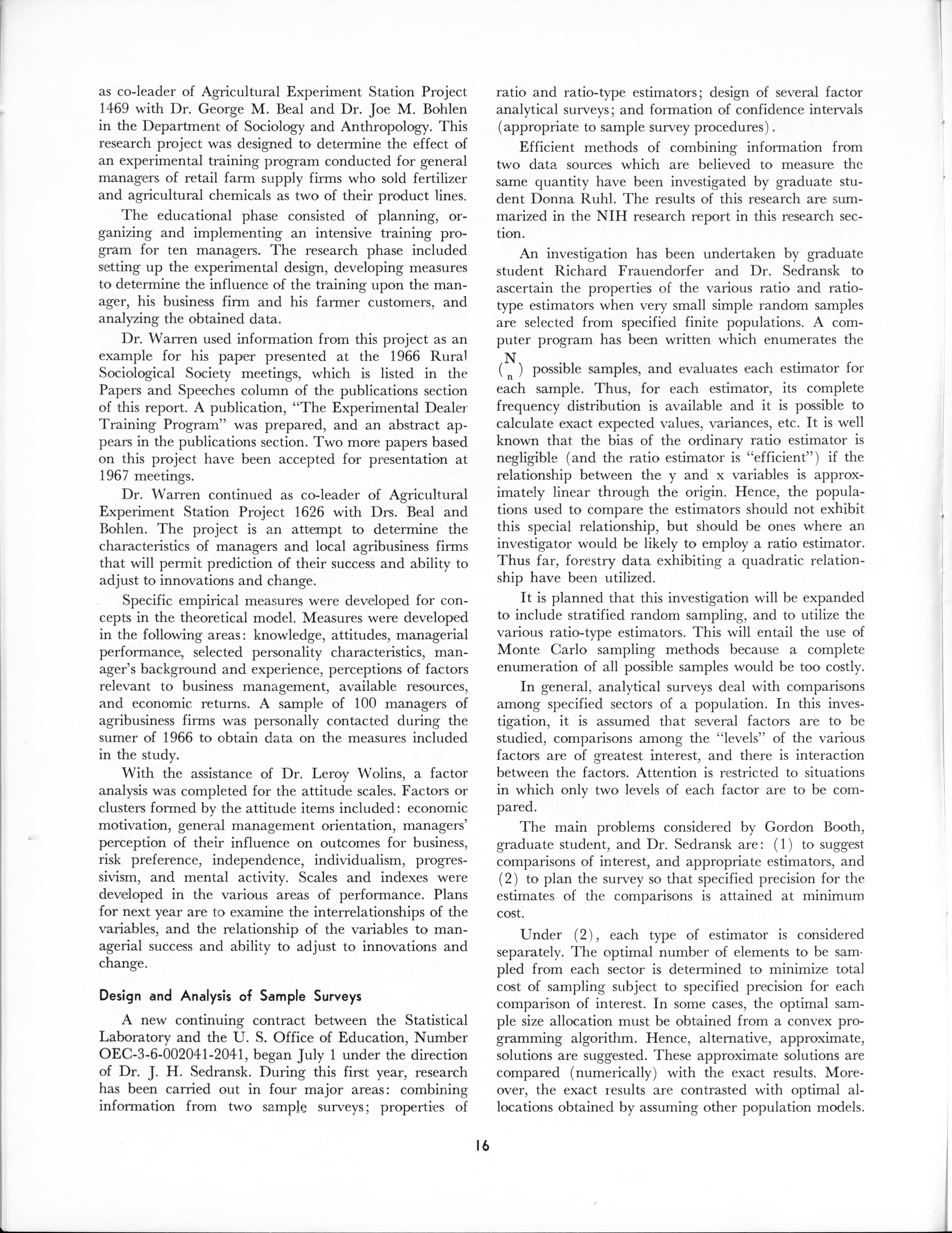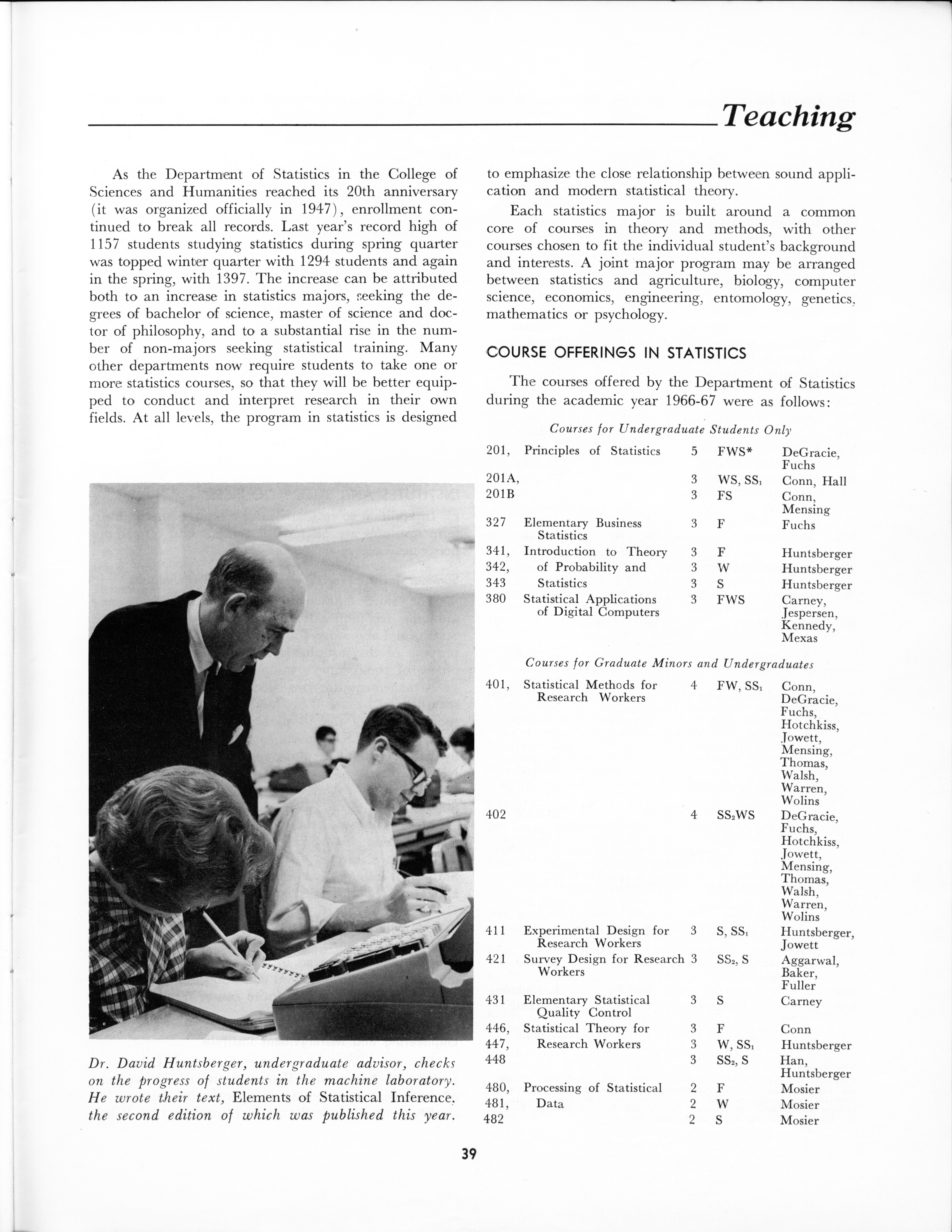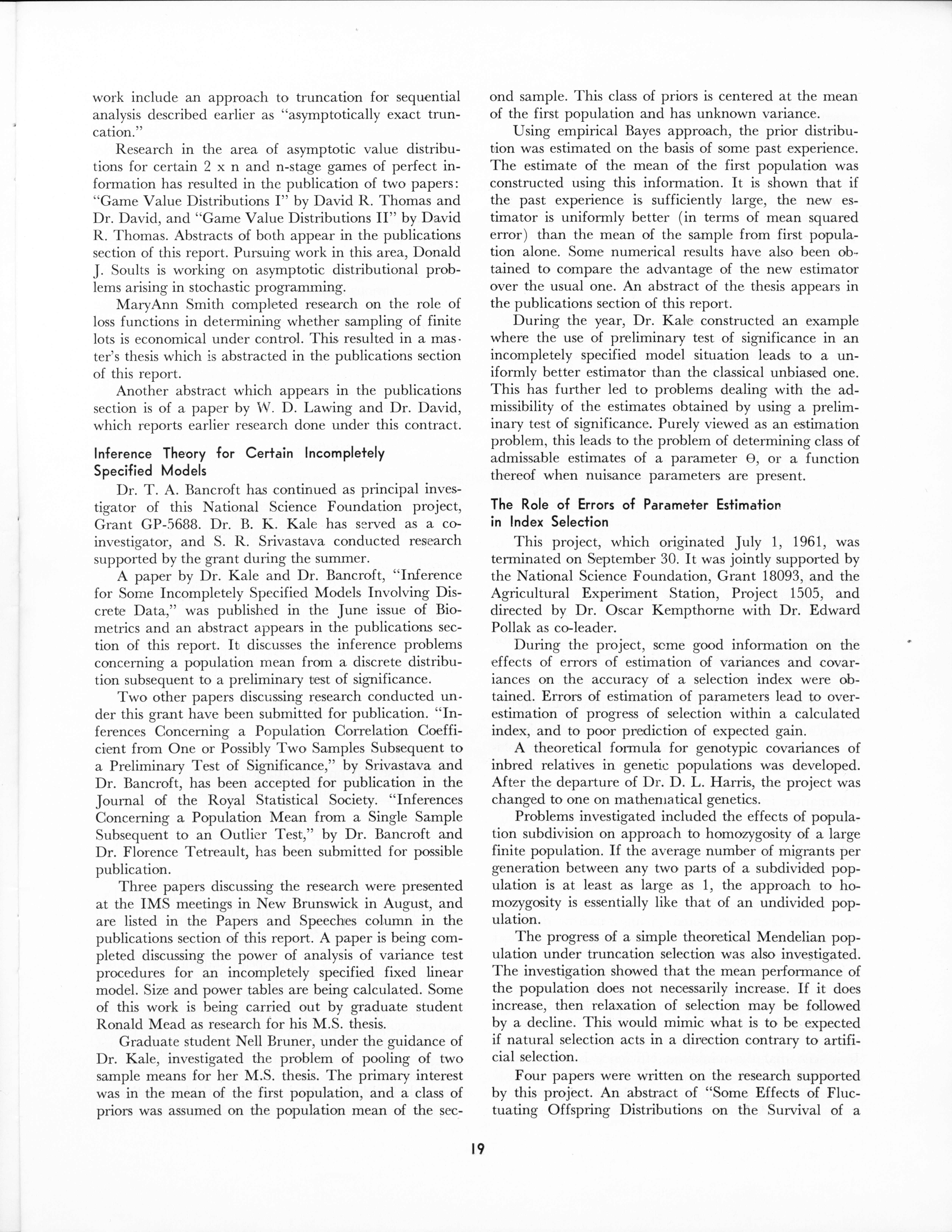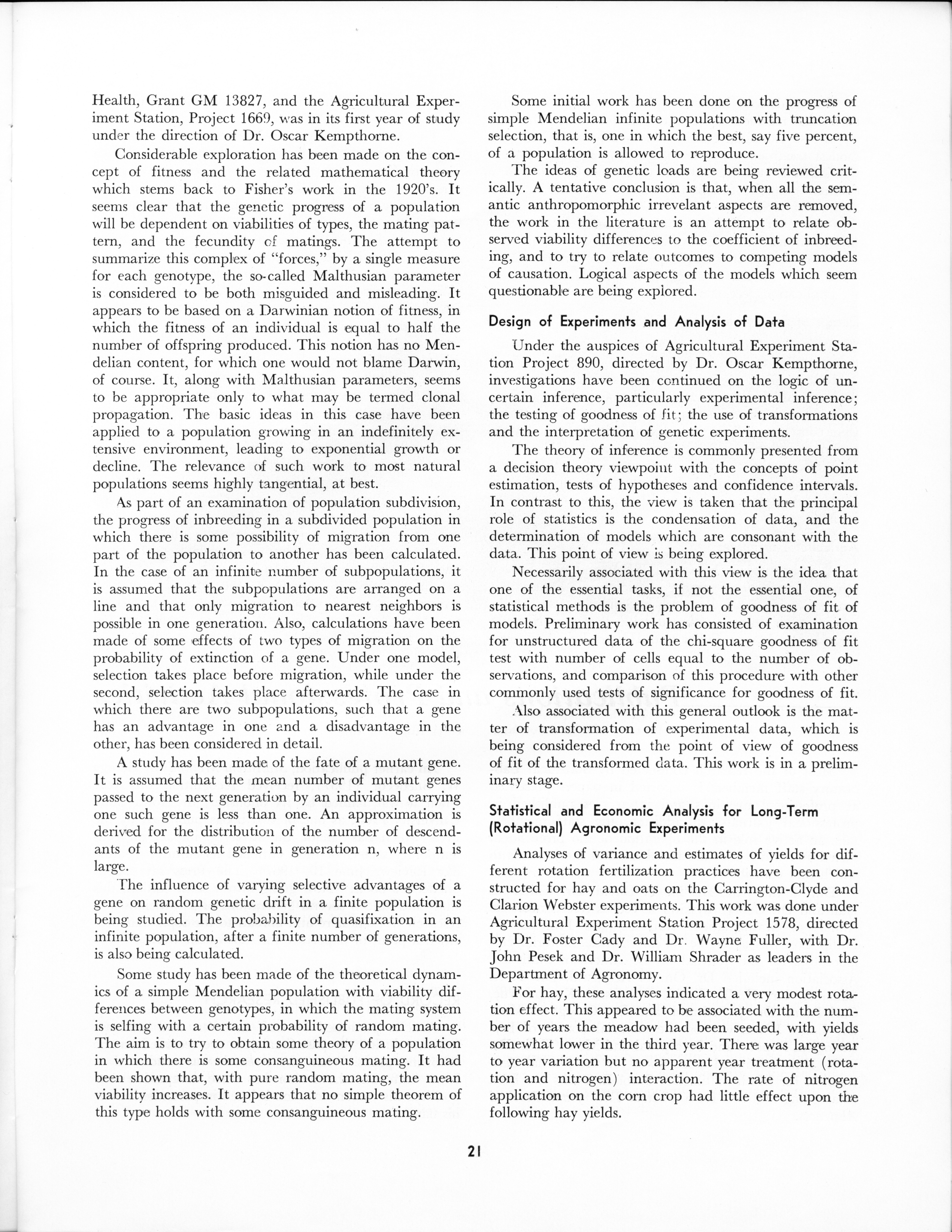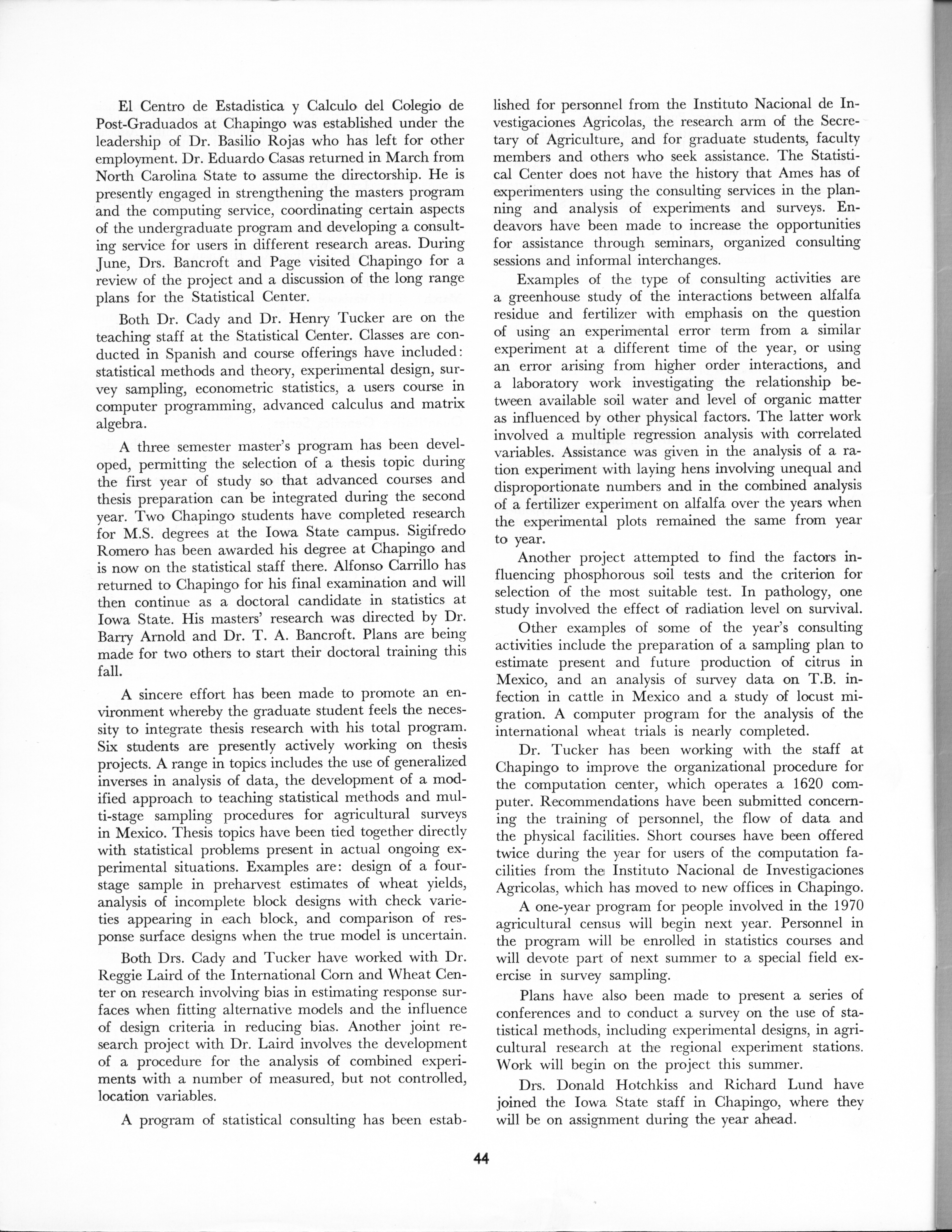 - "Statistical Laboratory Annual Report, July 1, 1966 to June 30, 1967", Iowa State University Statistical Laboratory Annual Reports, Iowa State University Library Digital Collections