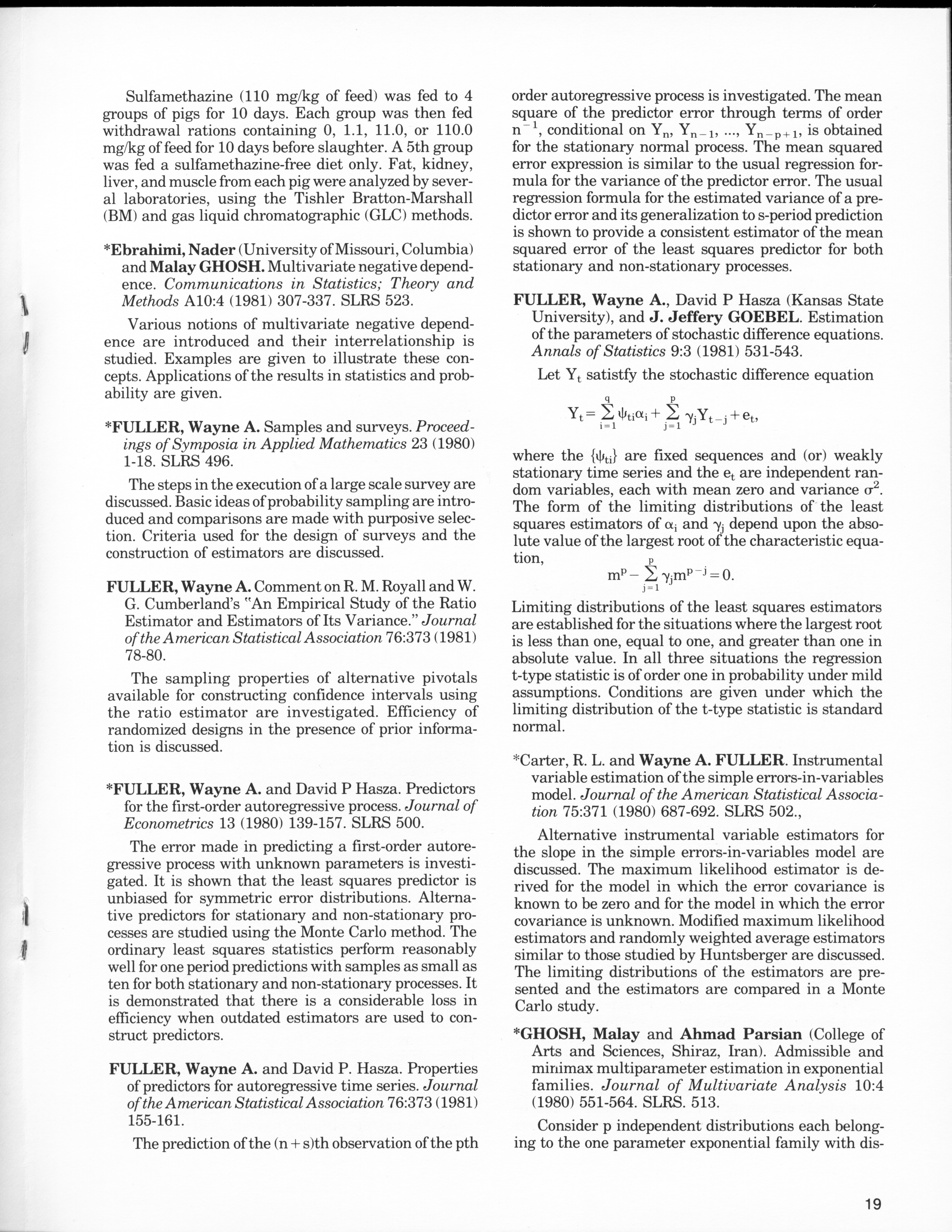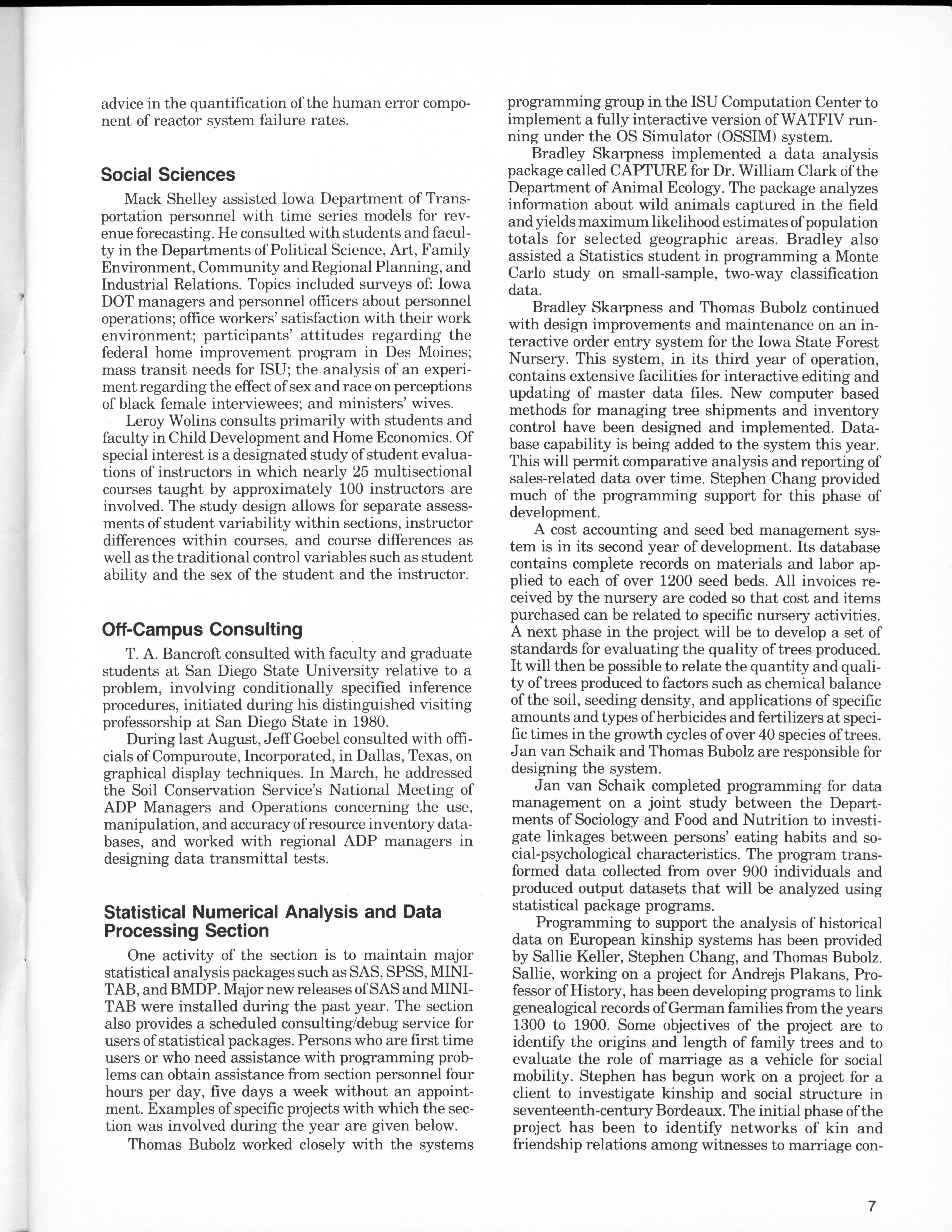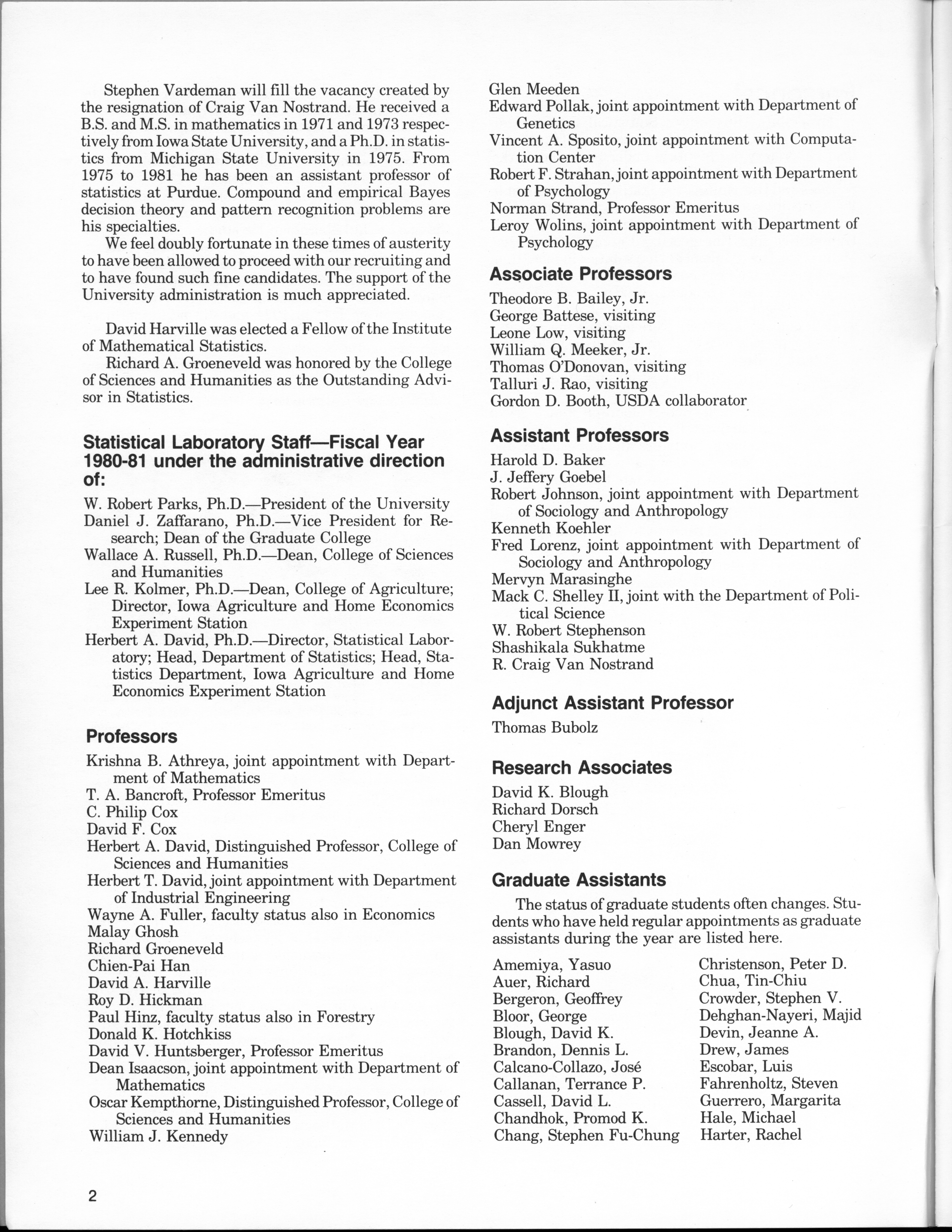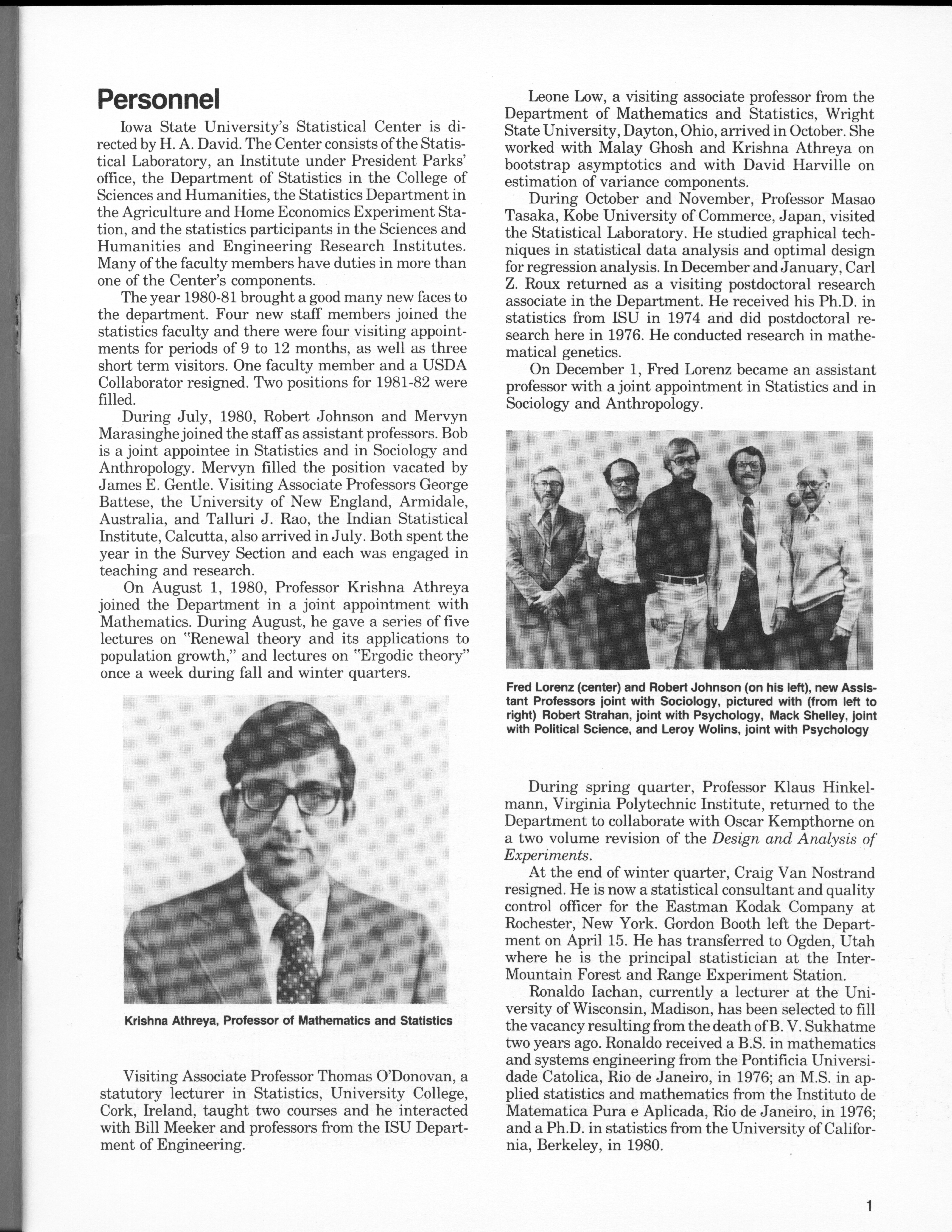 - "Statistical Laboratory Annual Report, July 1, 1980 to June 30, 1981", Iowa State University Statistical Laboratory Annual Reports, Iowa State University Library Digital Collections