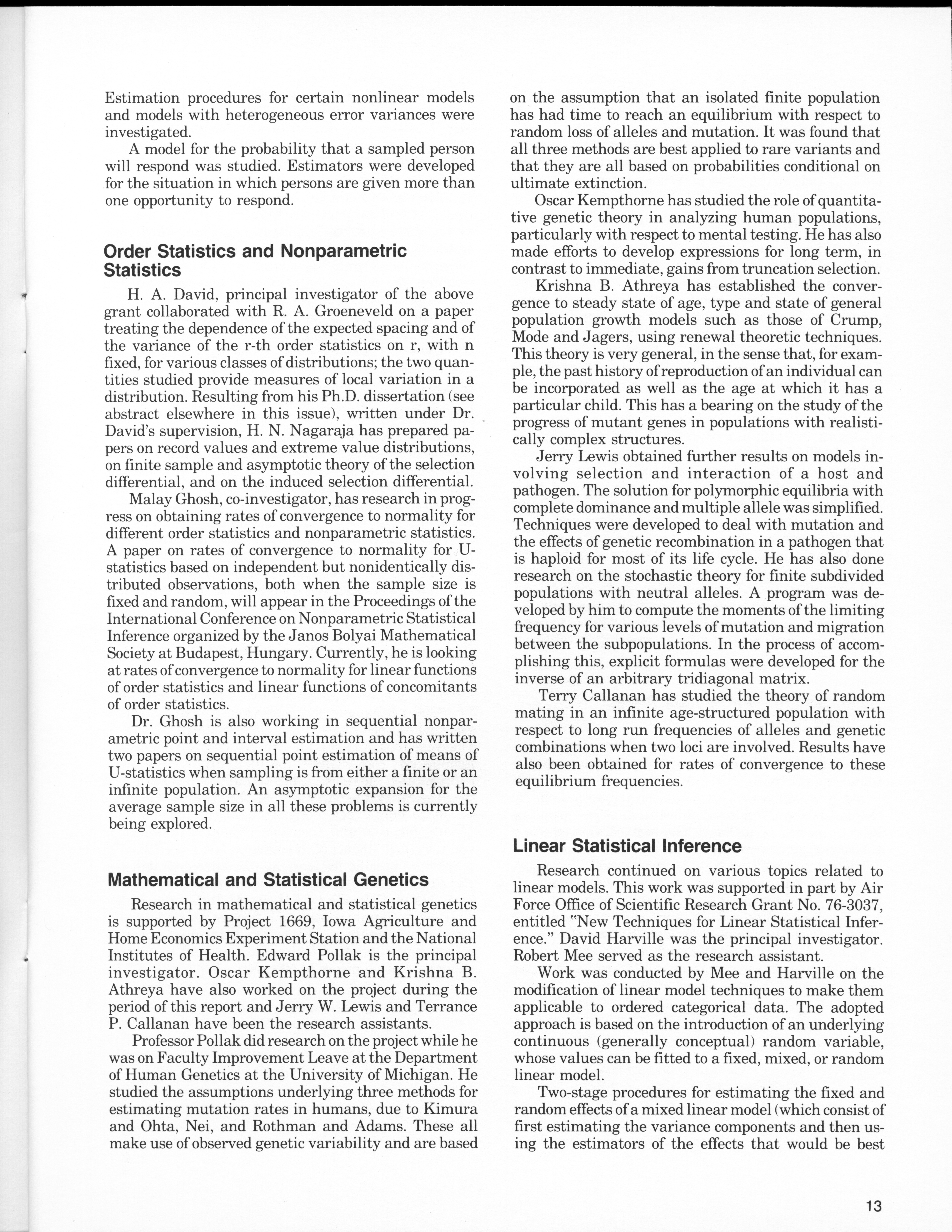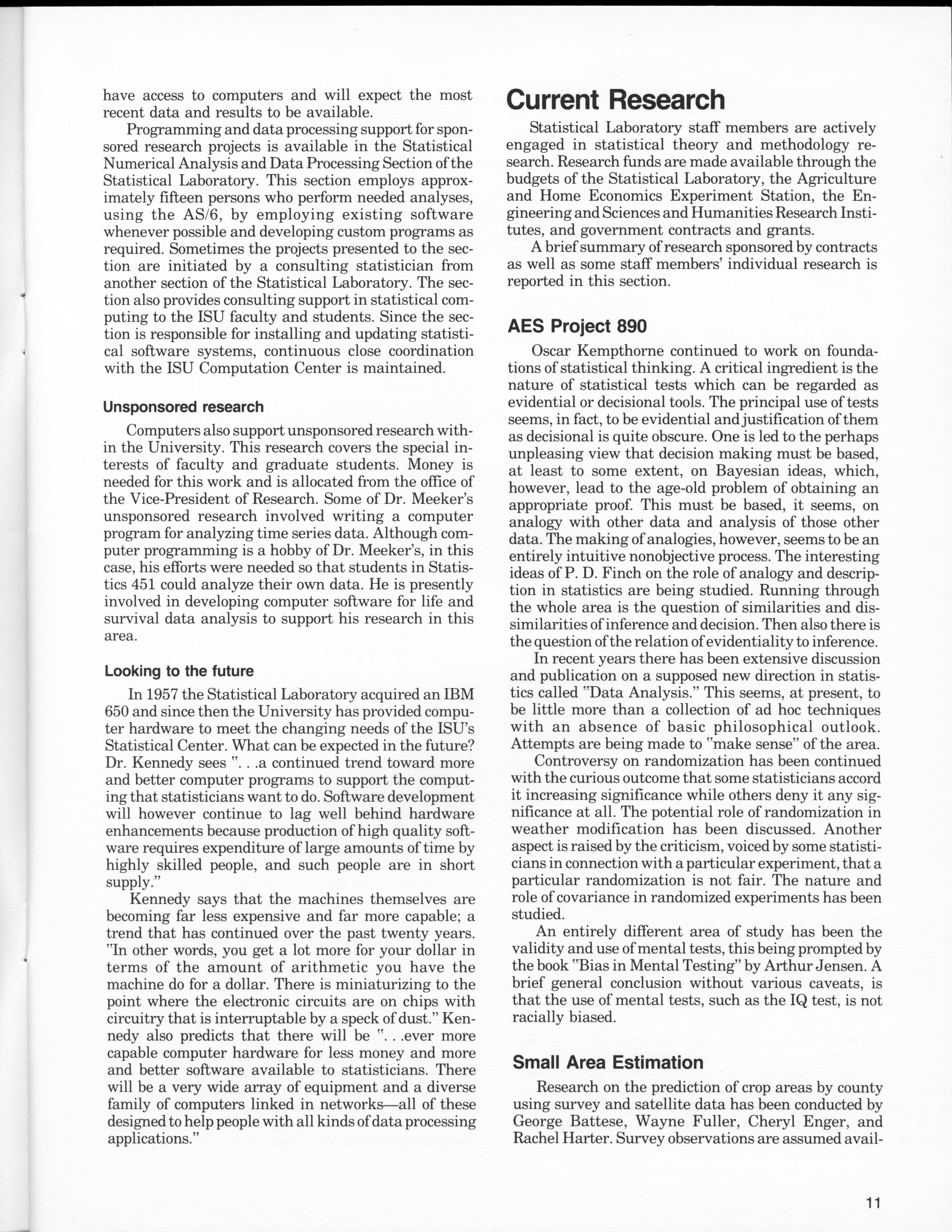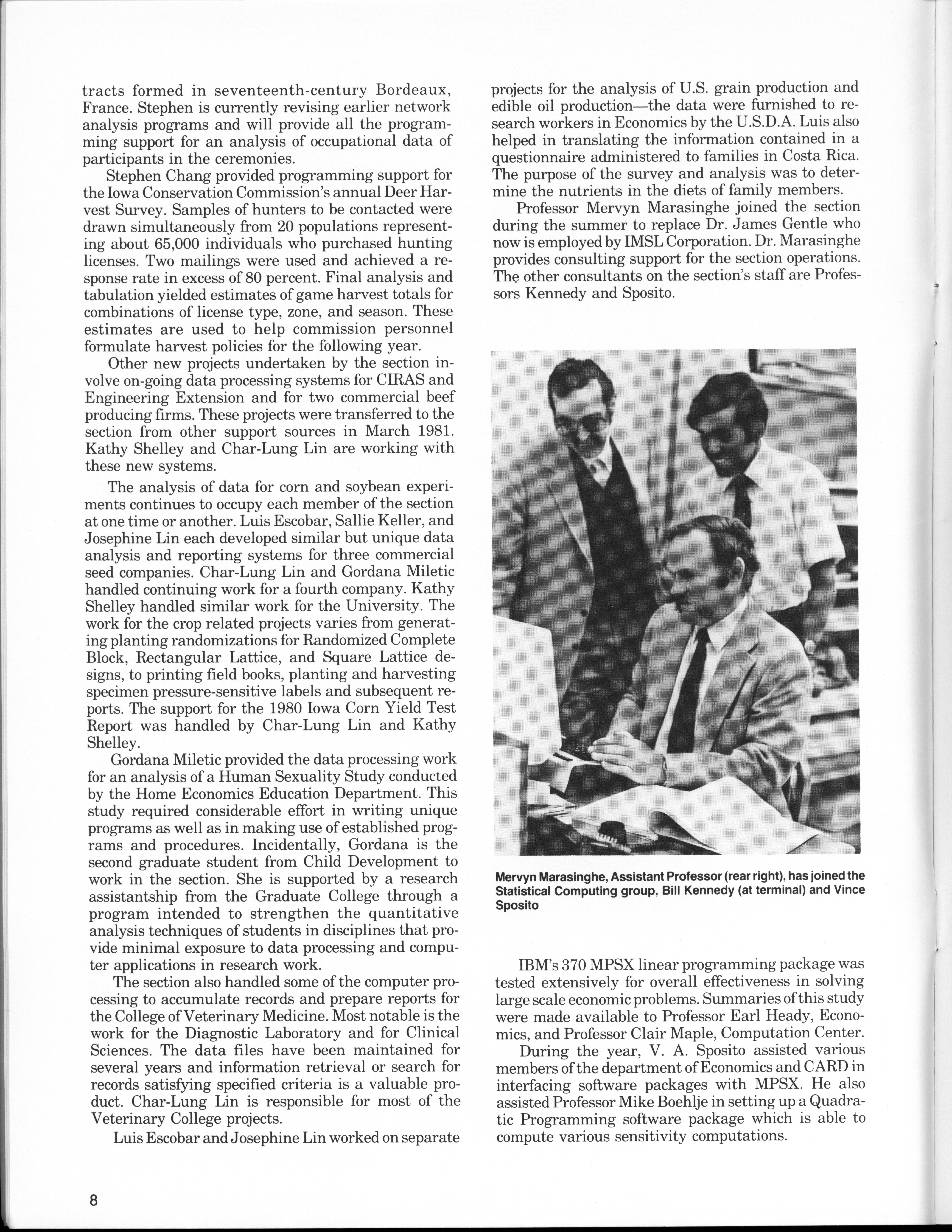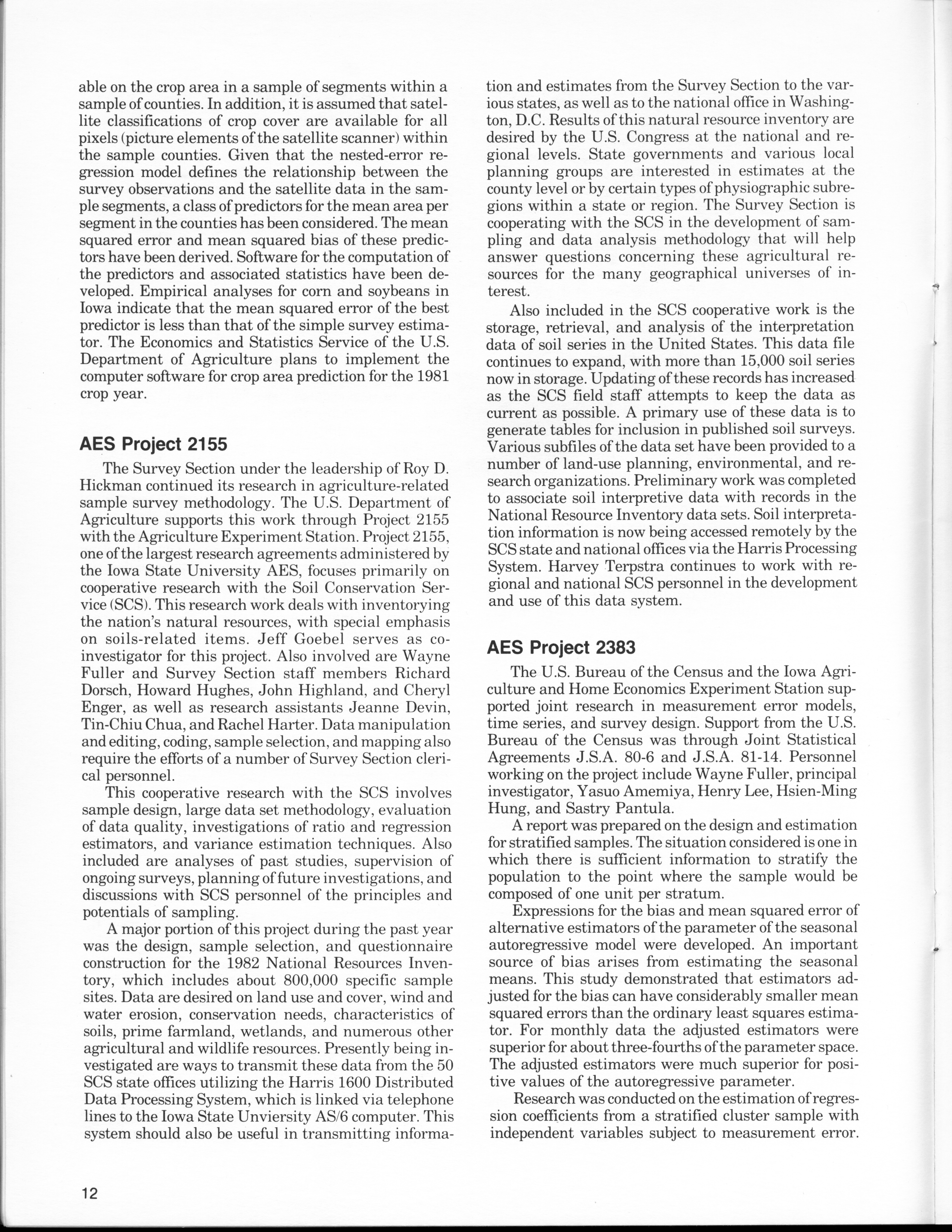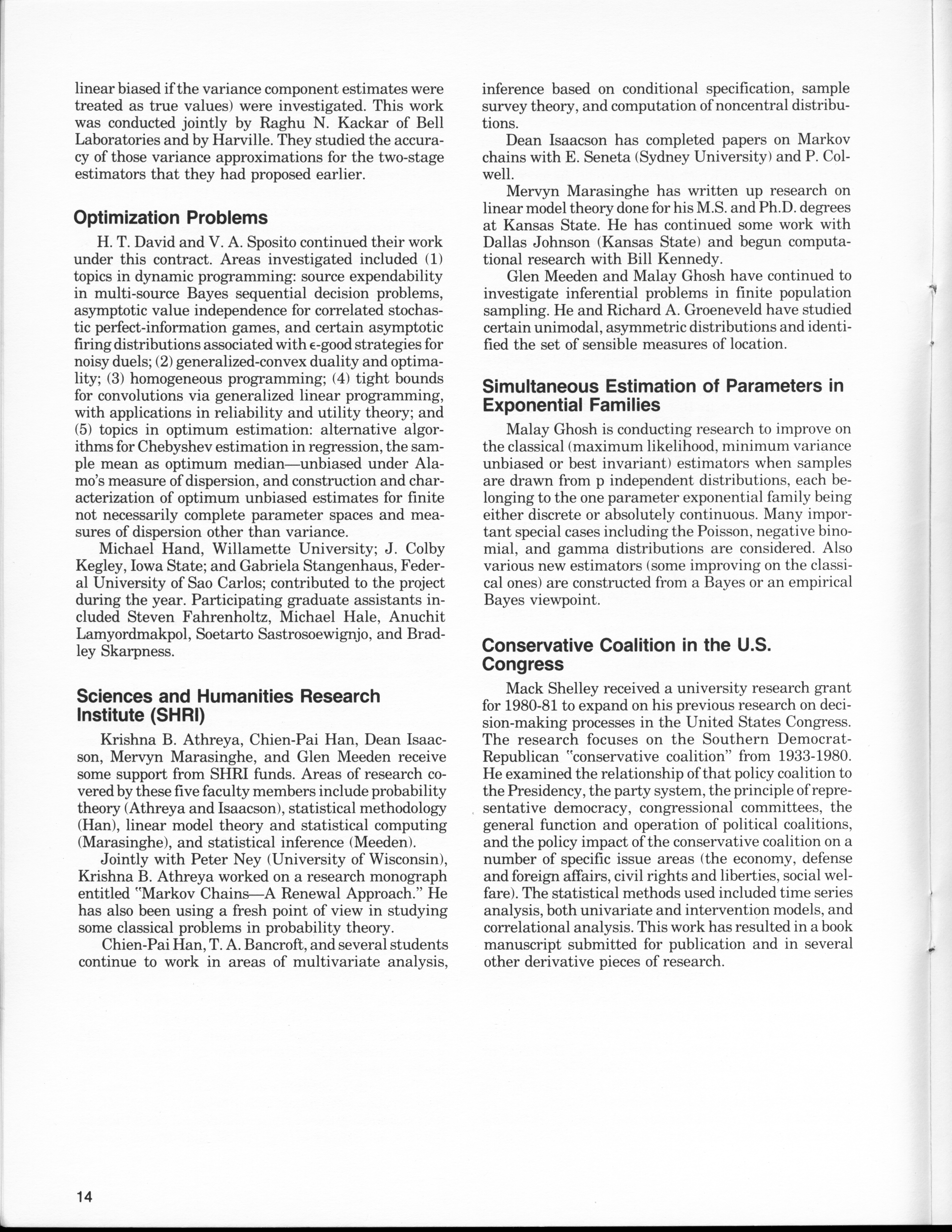 - "Statistical Laboratory Annual Report, July 1, 1980 to June 30, 1981", Iowa State University Statistical Laboratory Annual Reports, Iowa State University Library Digital Collections