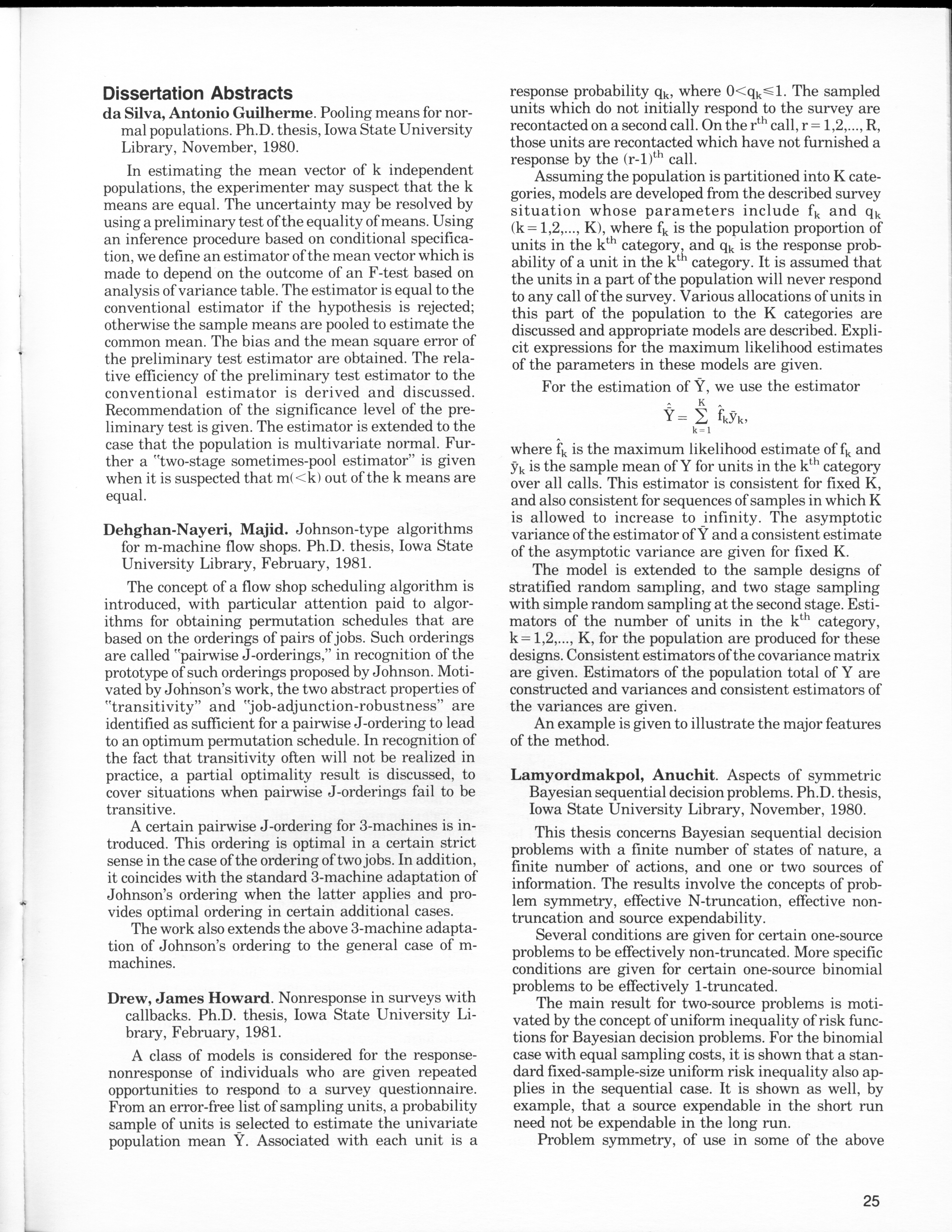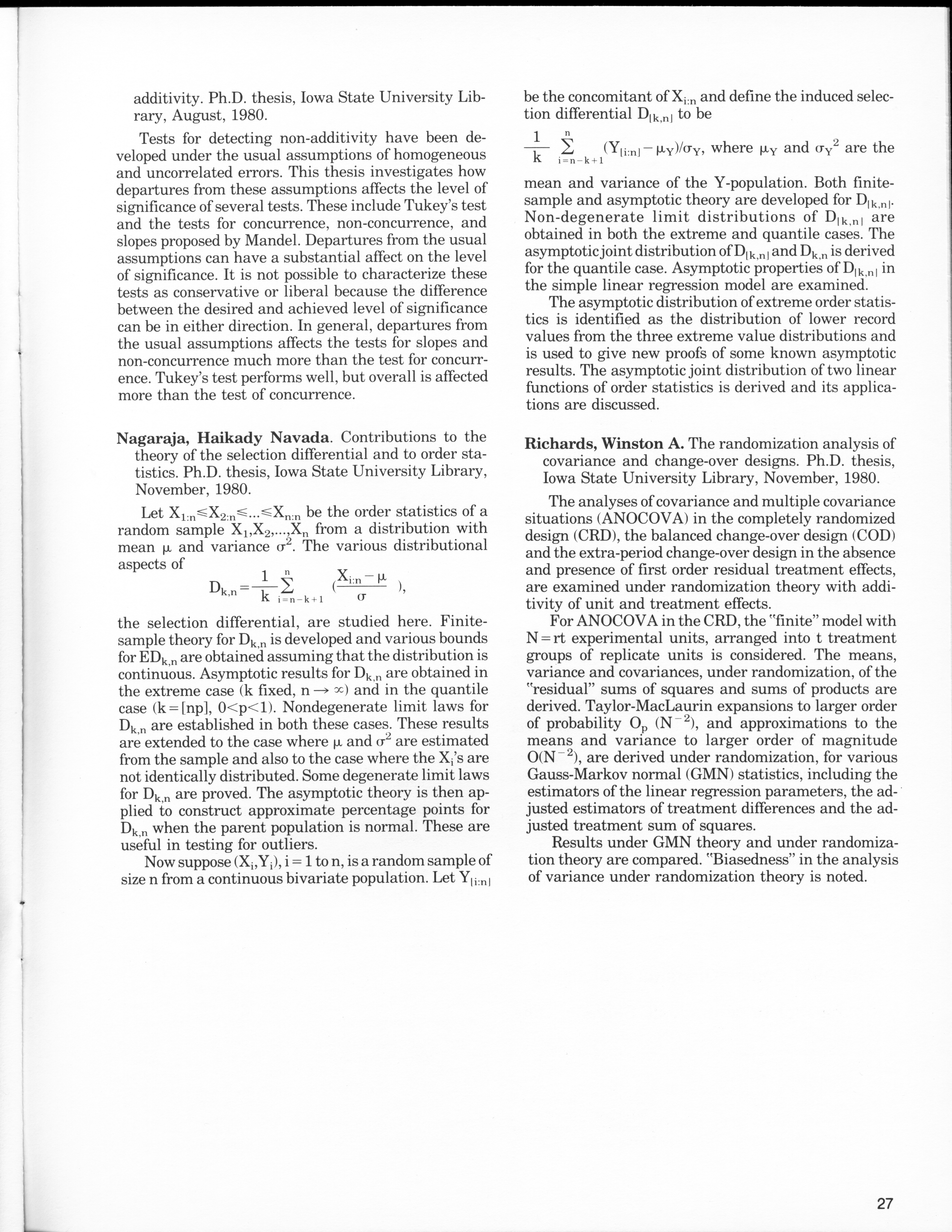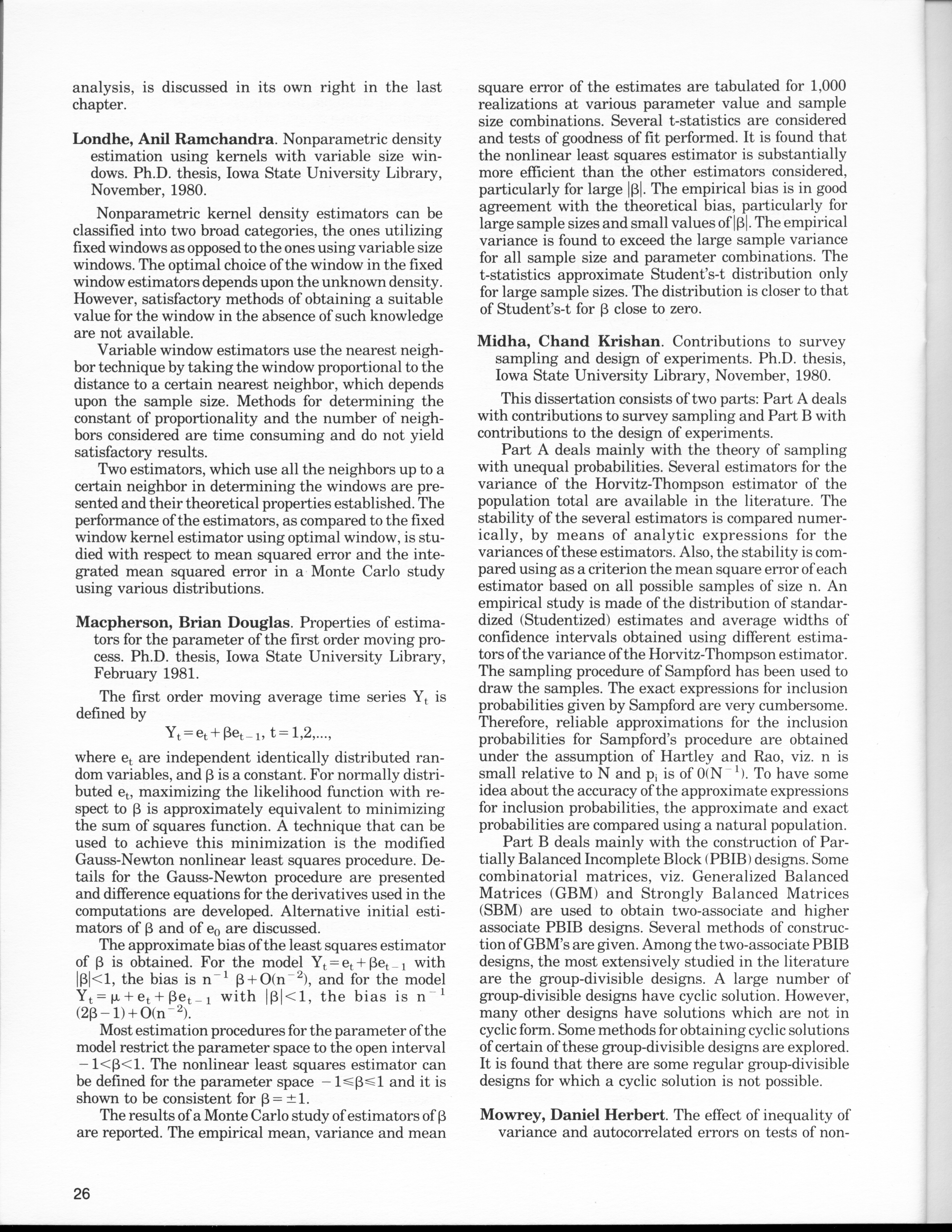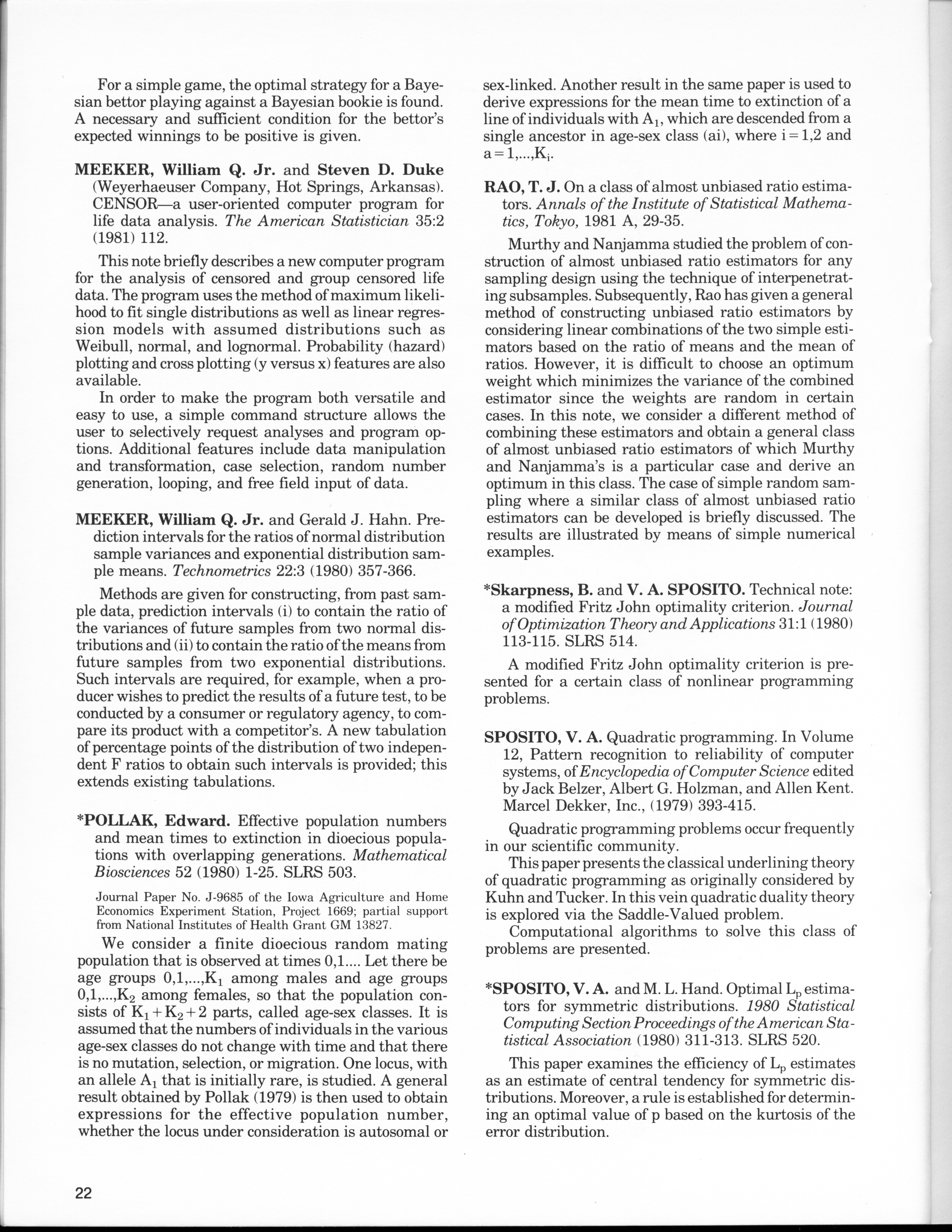 - "Statistical Laboratory Annual Report, July 1, 1980 to June 30, 1981", Iowa State University Statistical Laboratory Annual Reports, Iowa State University Library Digital Collections