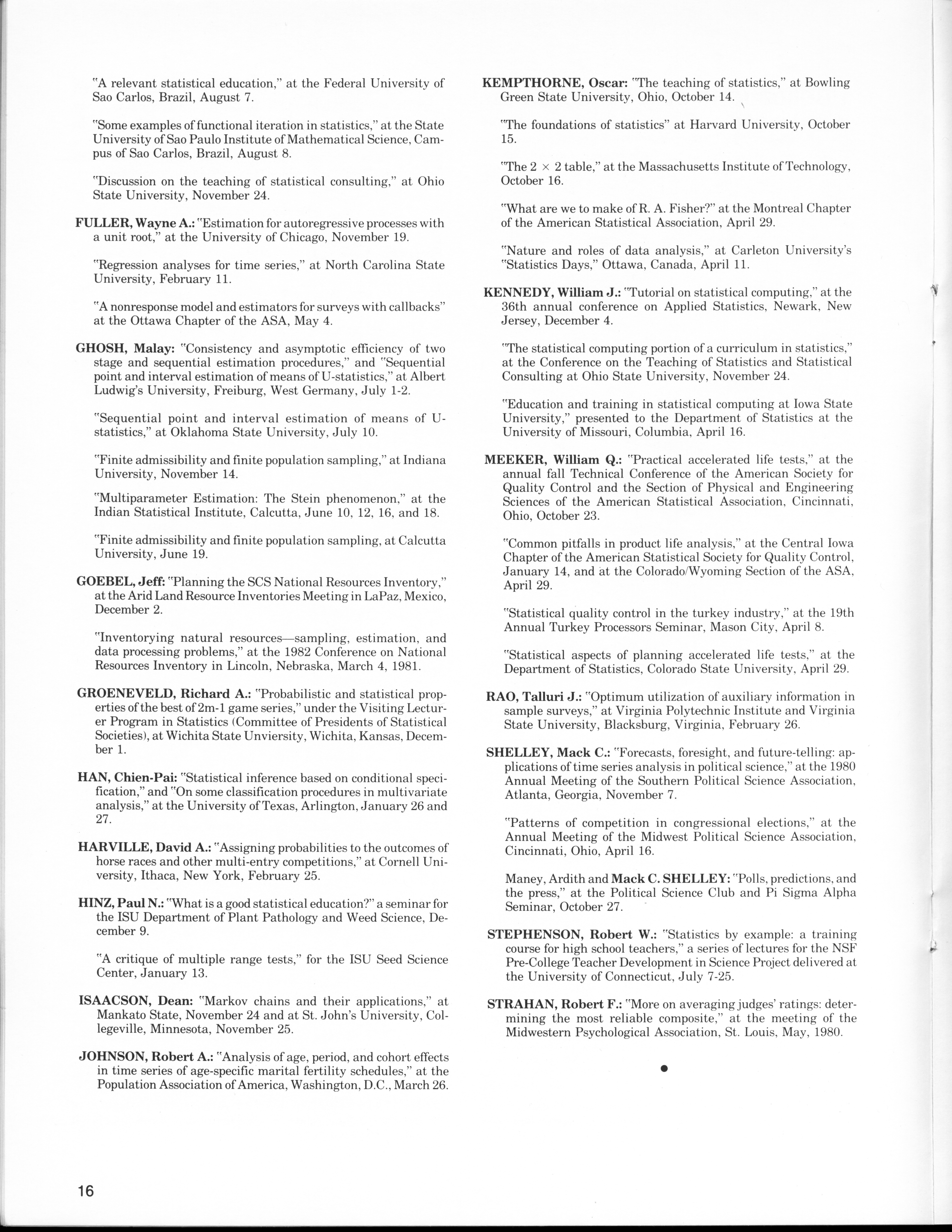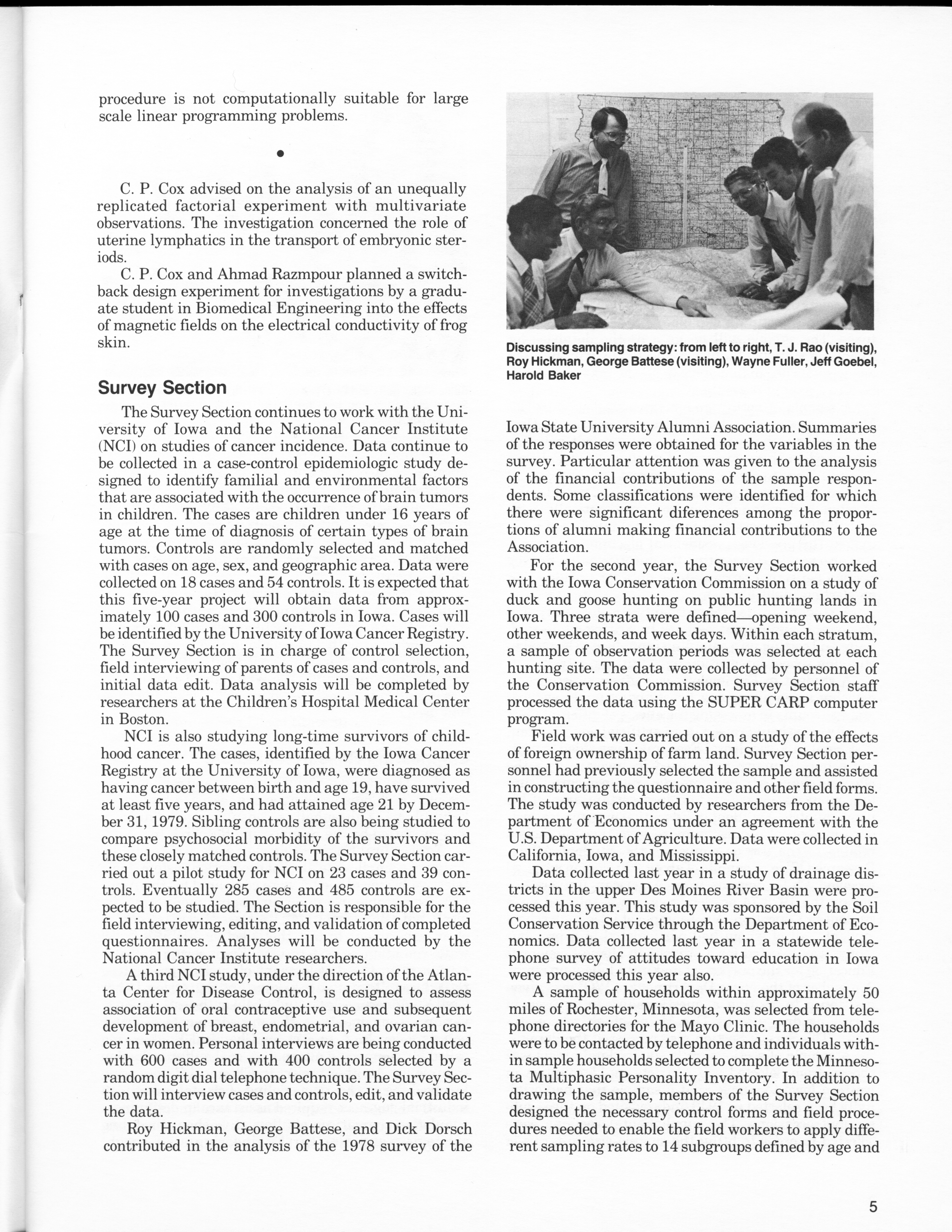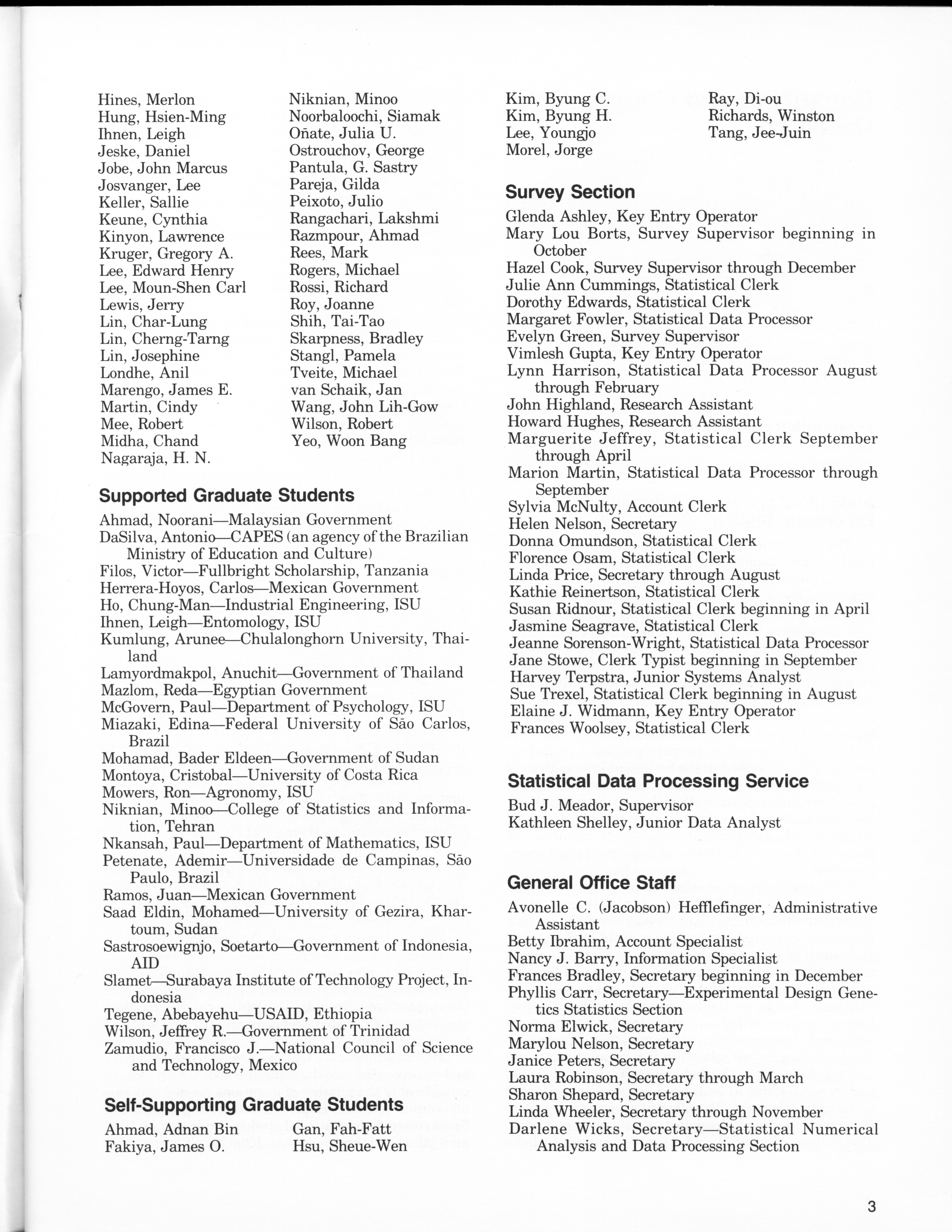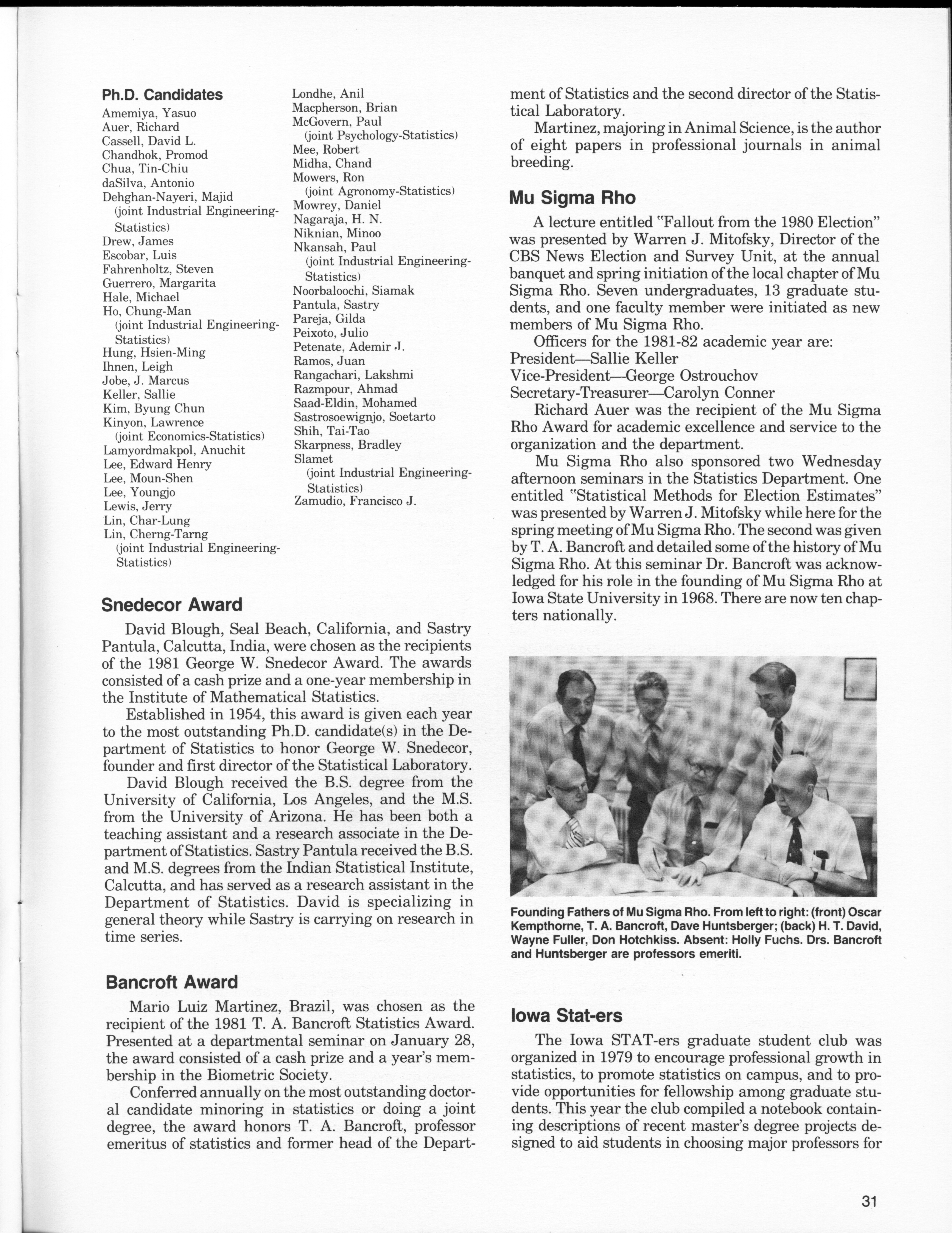- "Statistical Laboratory Annual Report, July 1, 1980 to June 30, 1981", Iowa State University Statistical Laboratory Annual Reports, Iowa State University Library Digital Collections