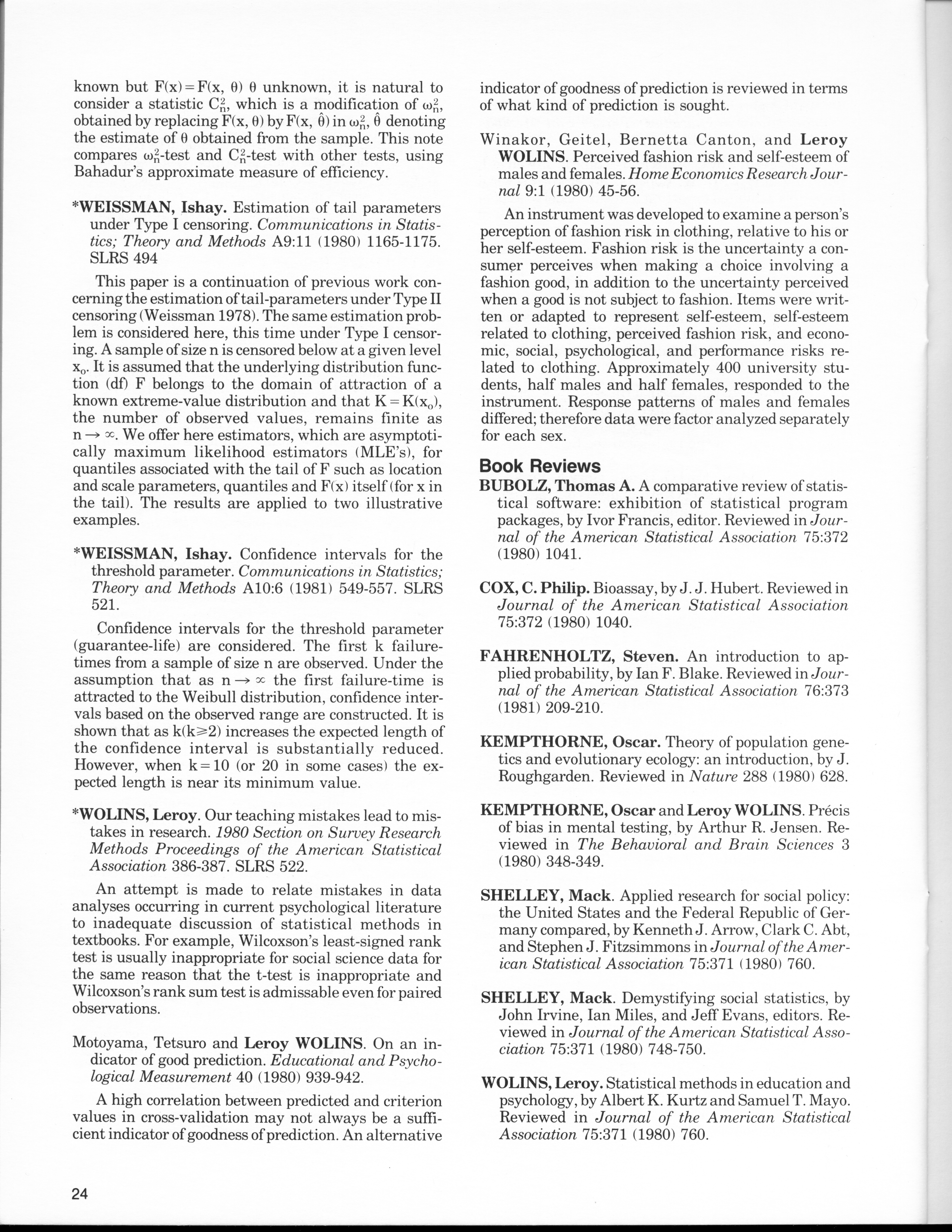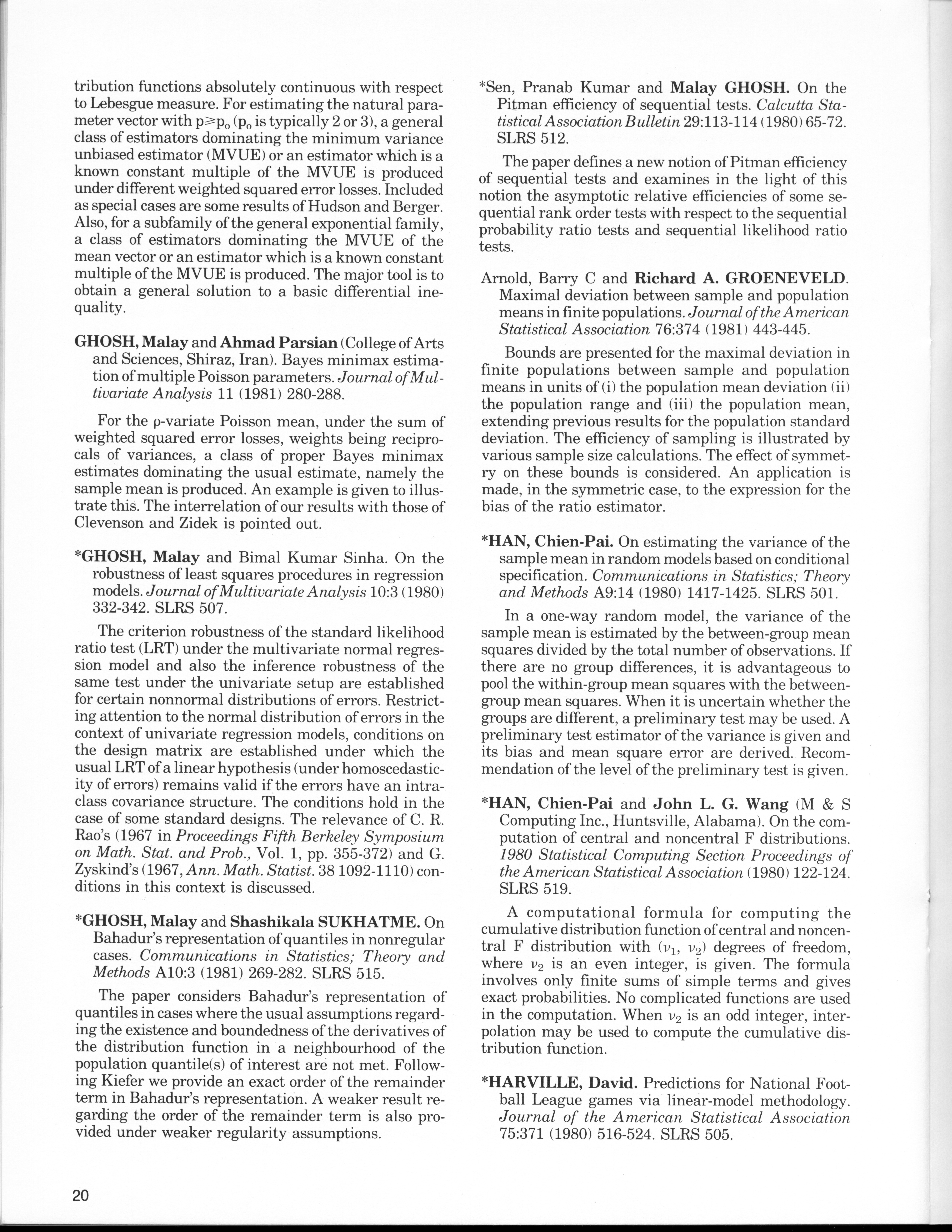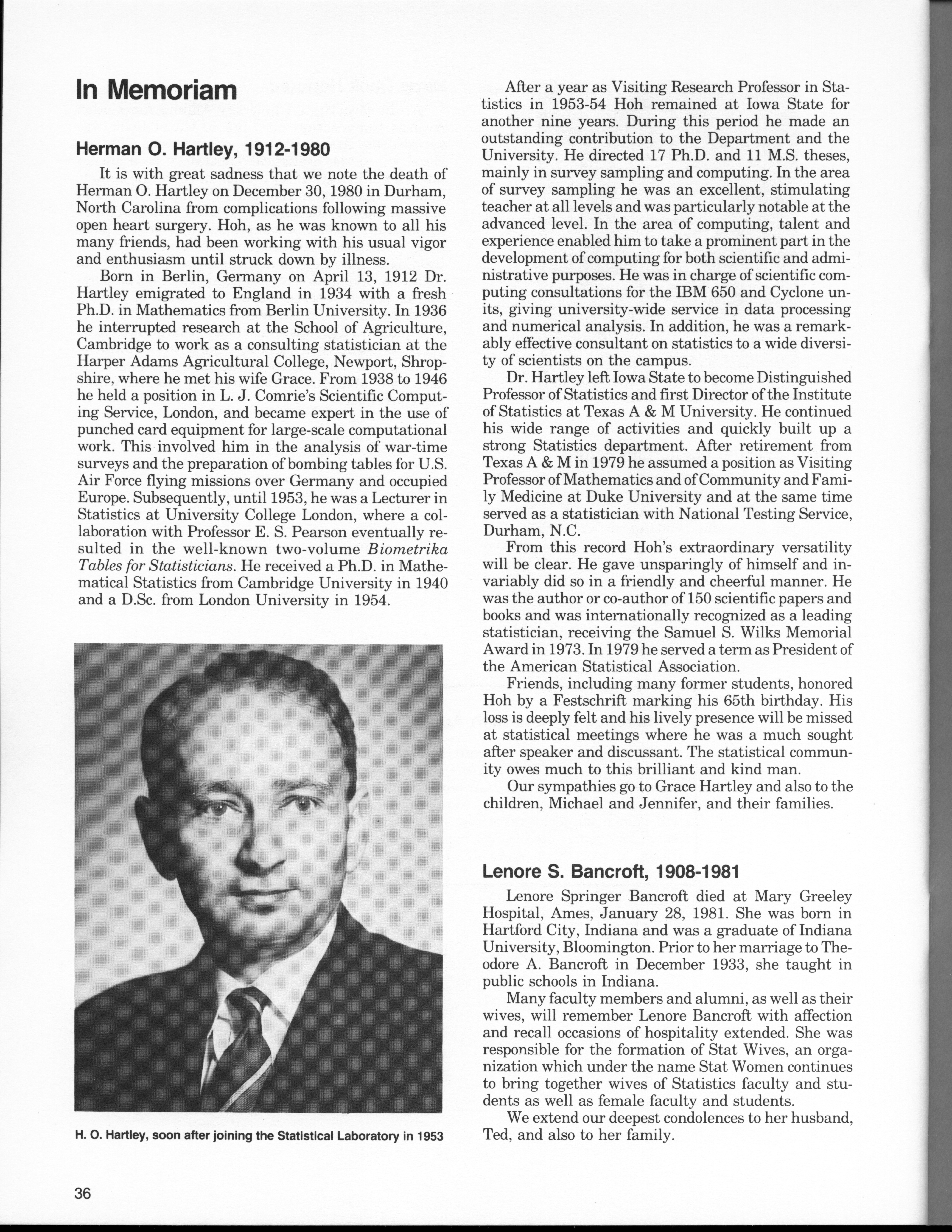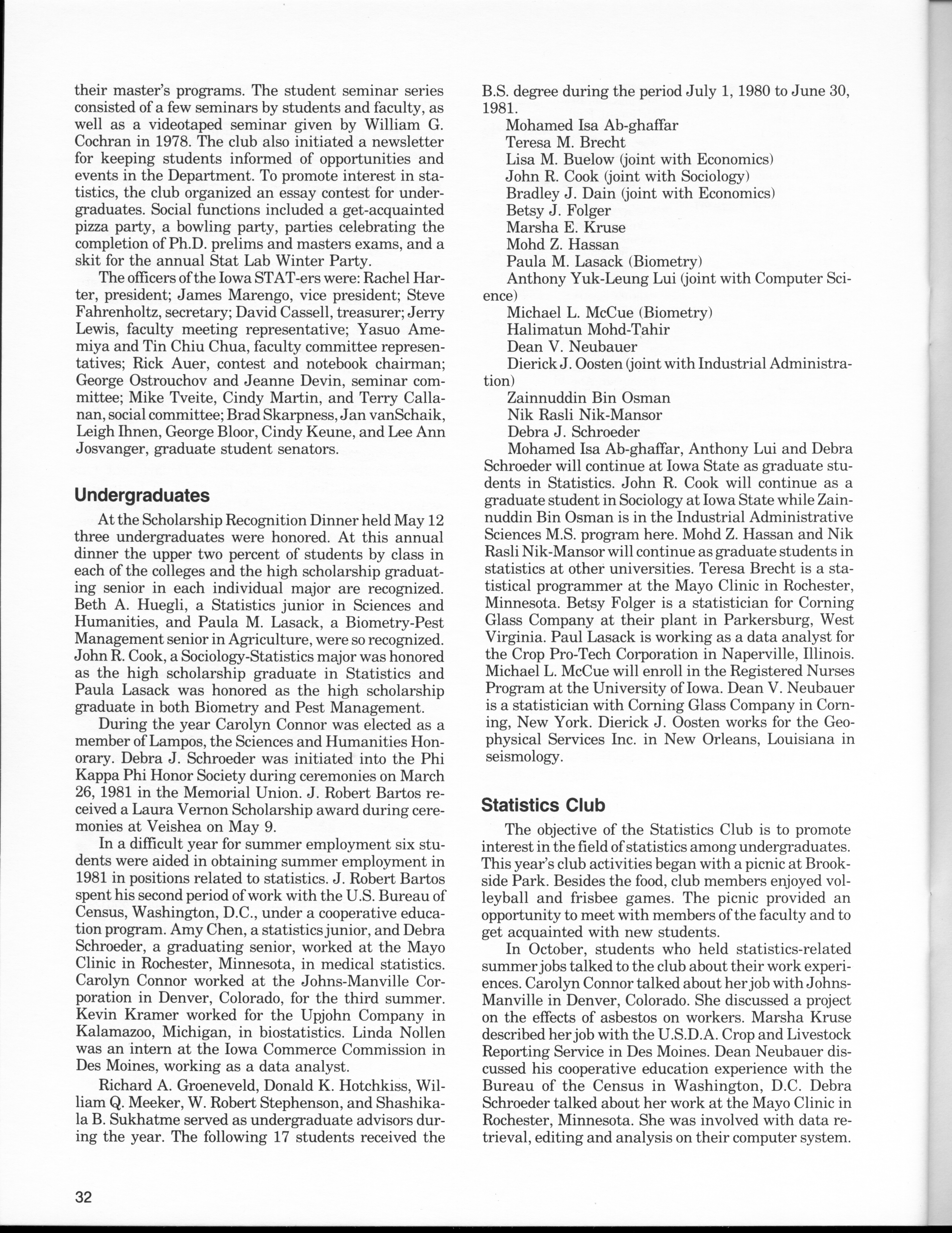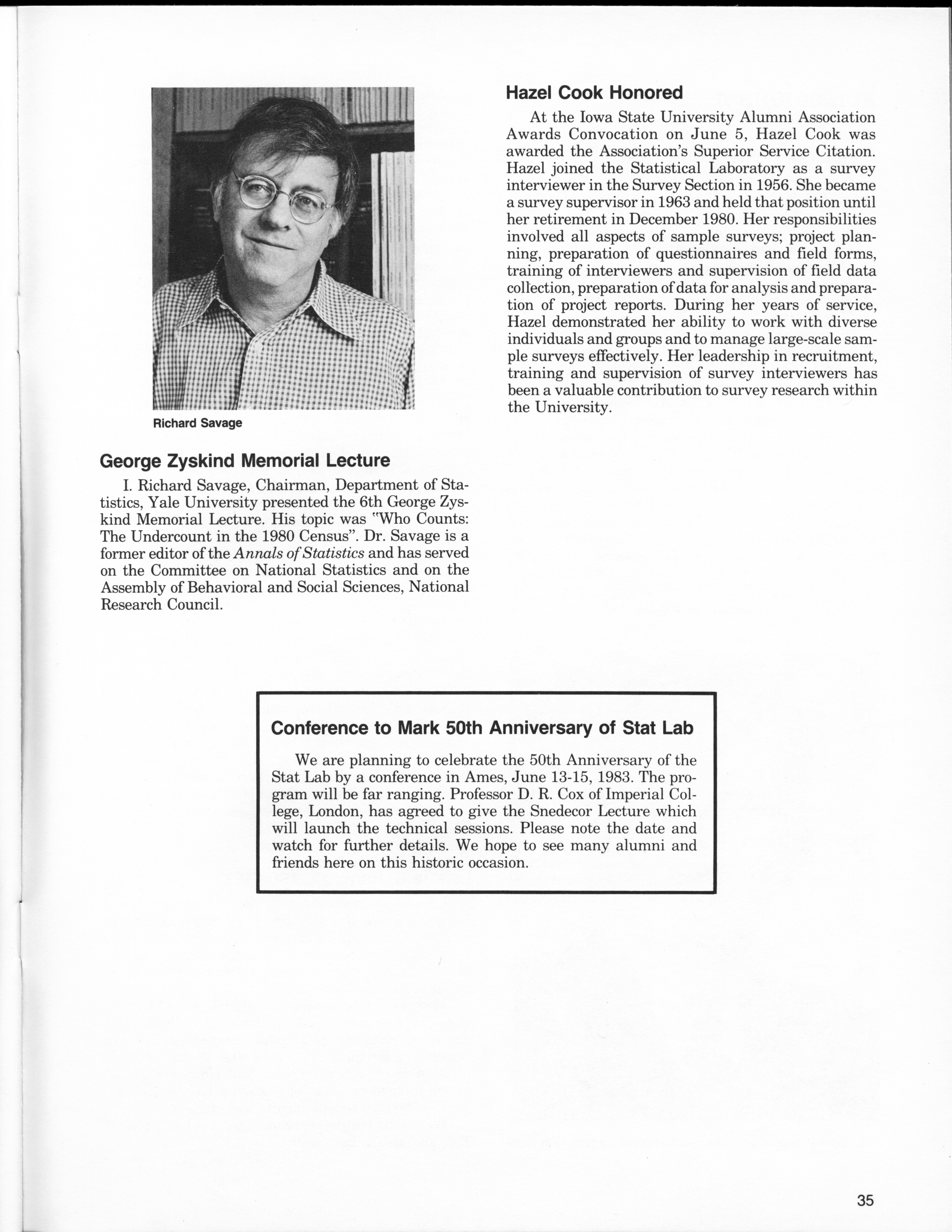 - "Statistical Laboratory Annual Report, July 1, 1980 to June 30, 1981", Iowa State University Statistical Laboratory Annual Reports, Iowa State University Library Digital Collections