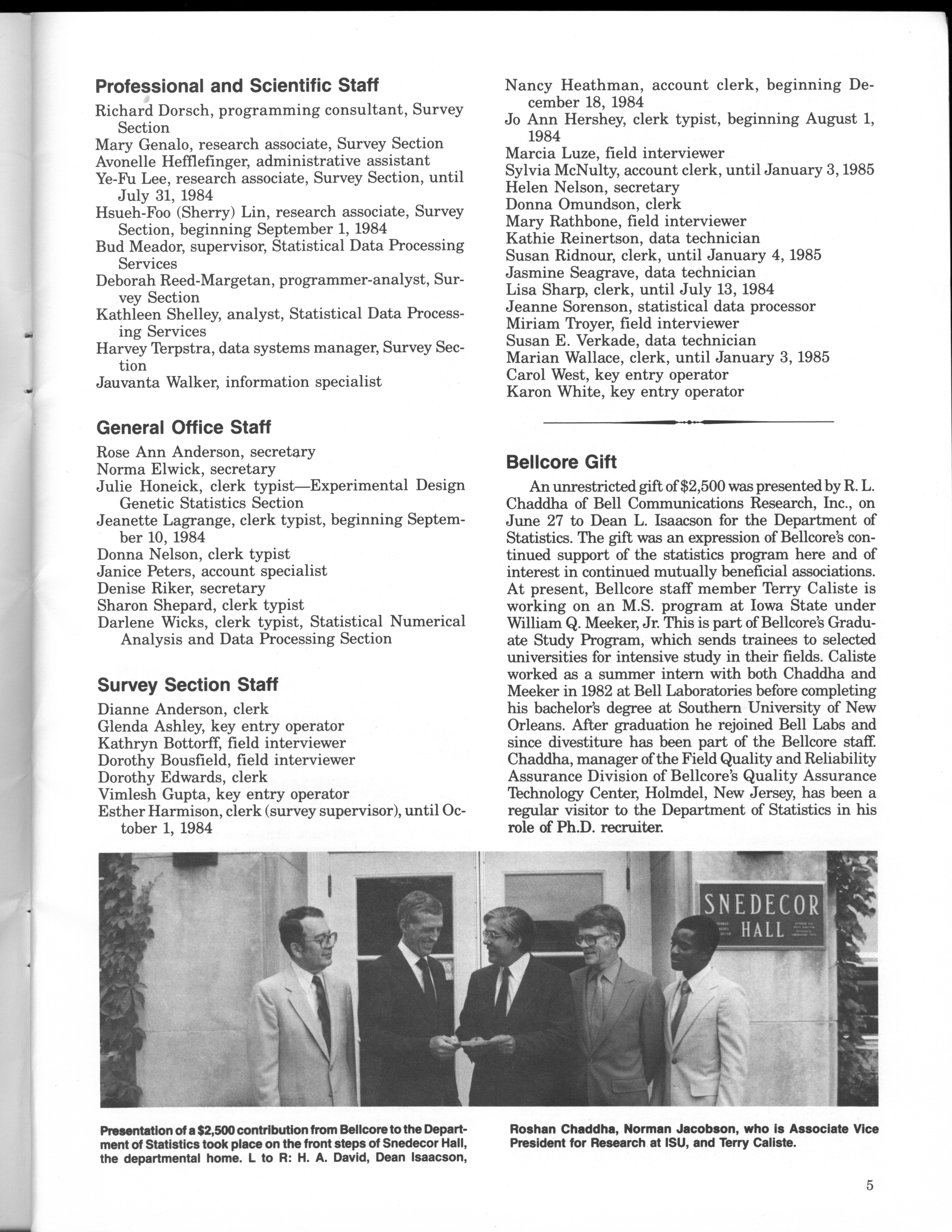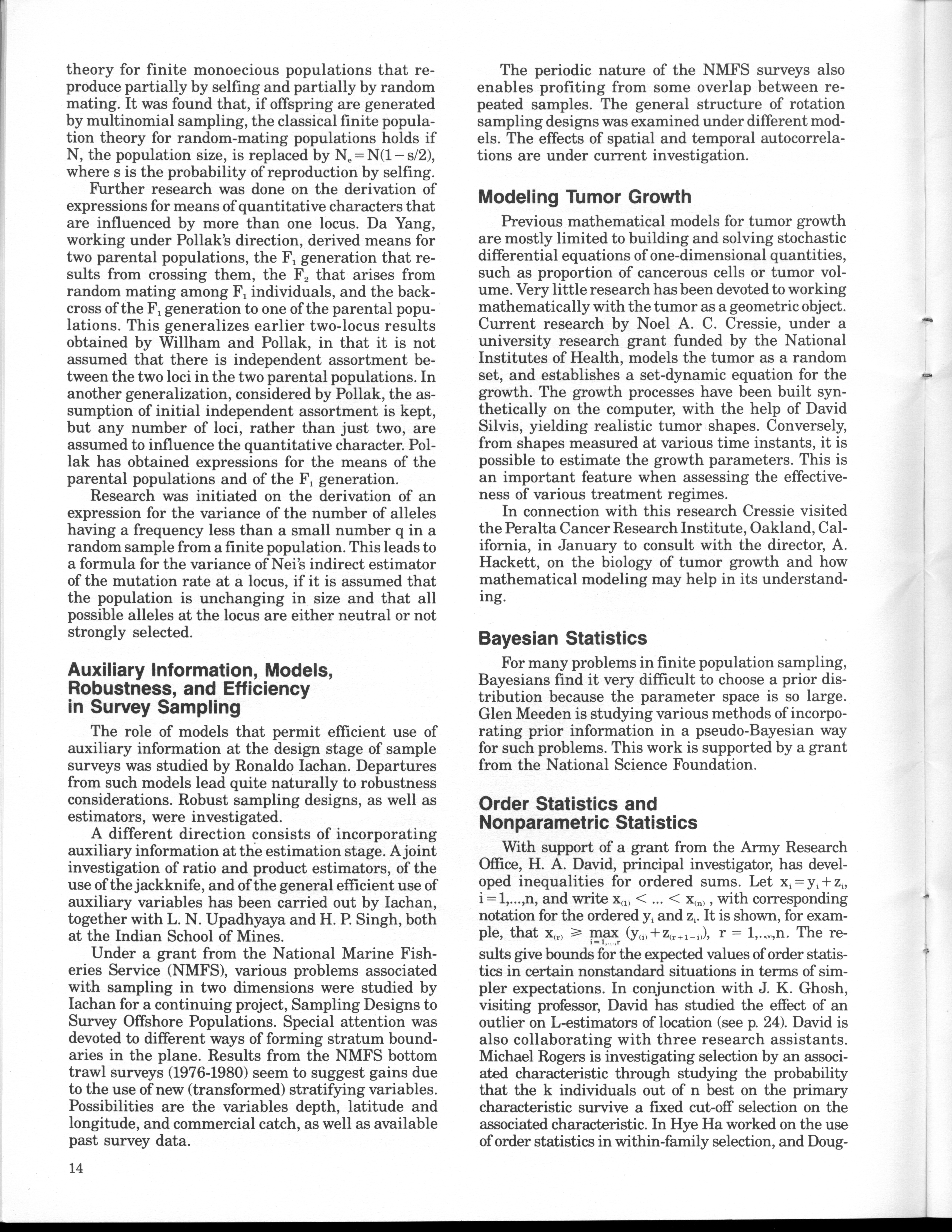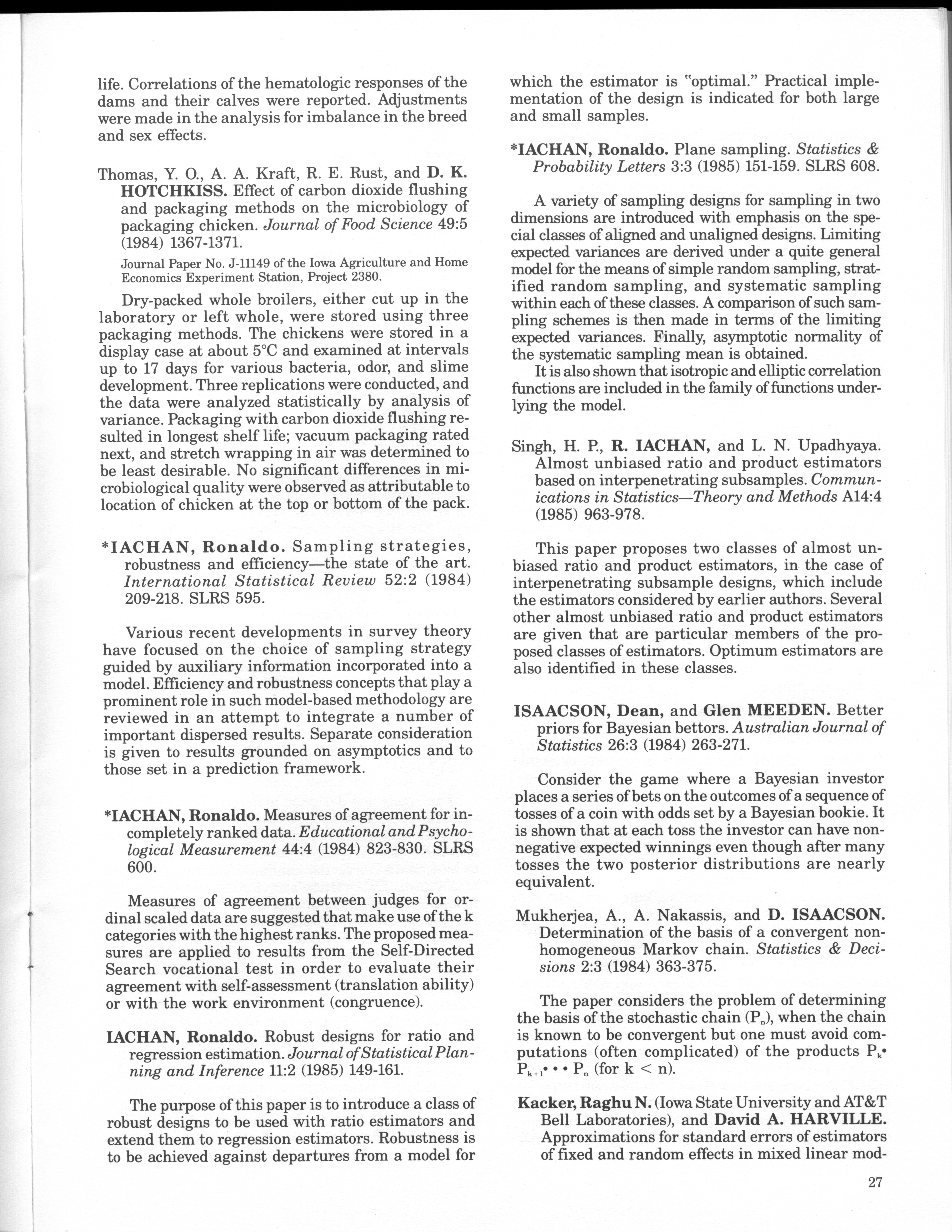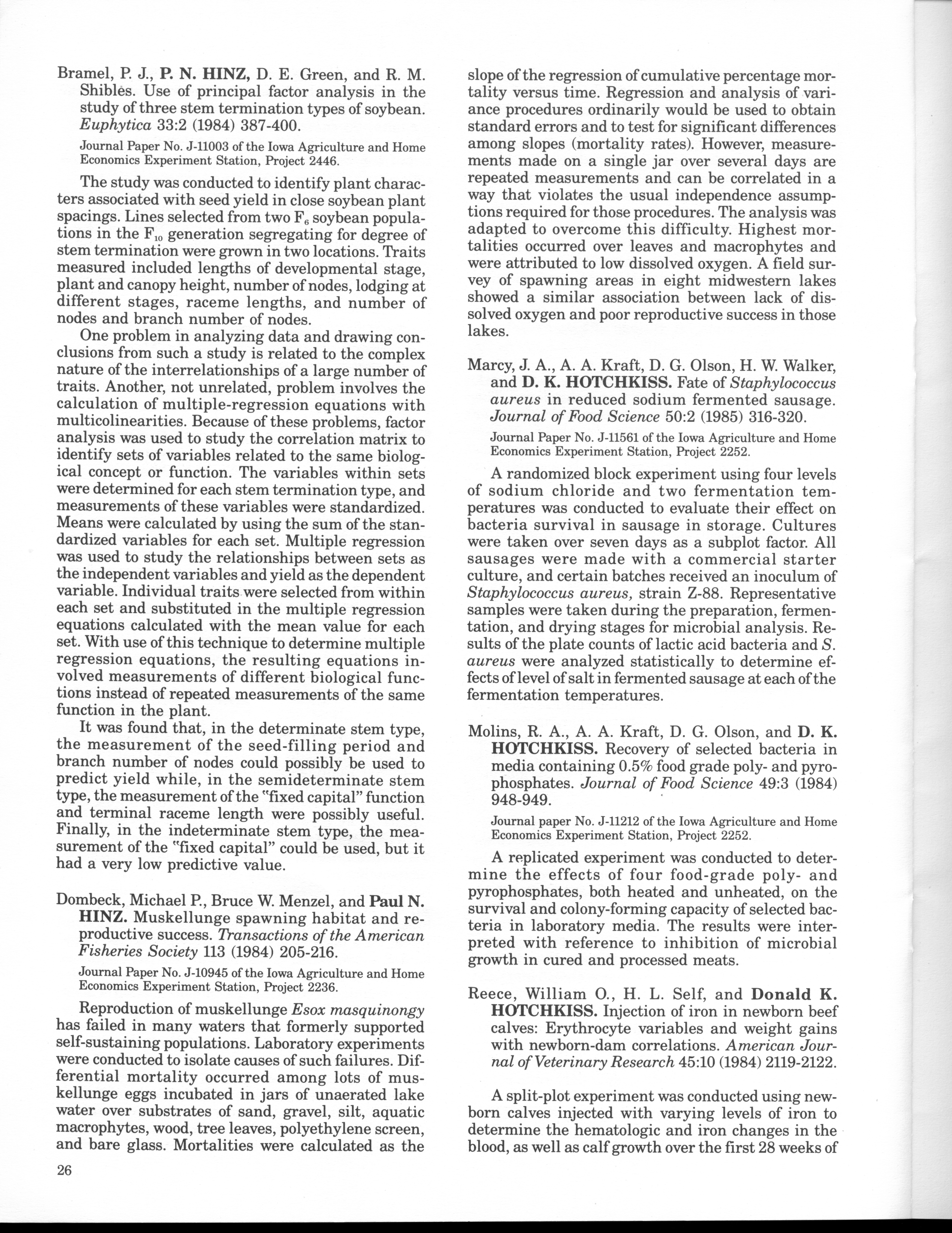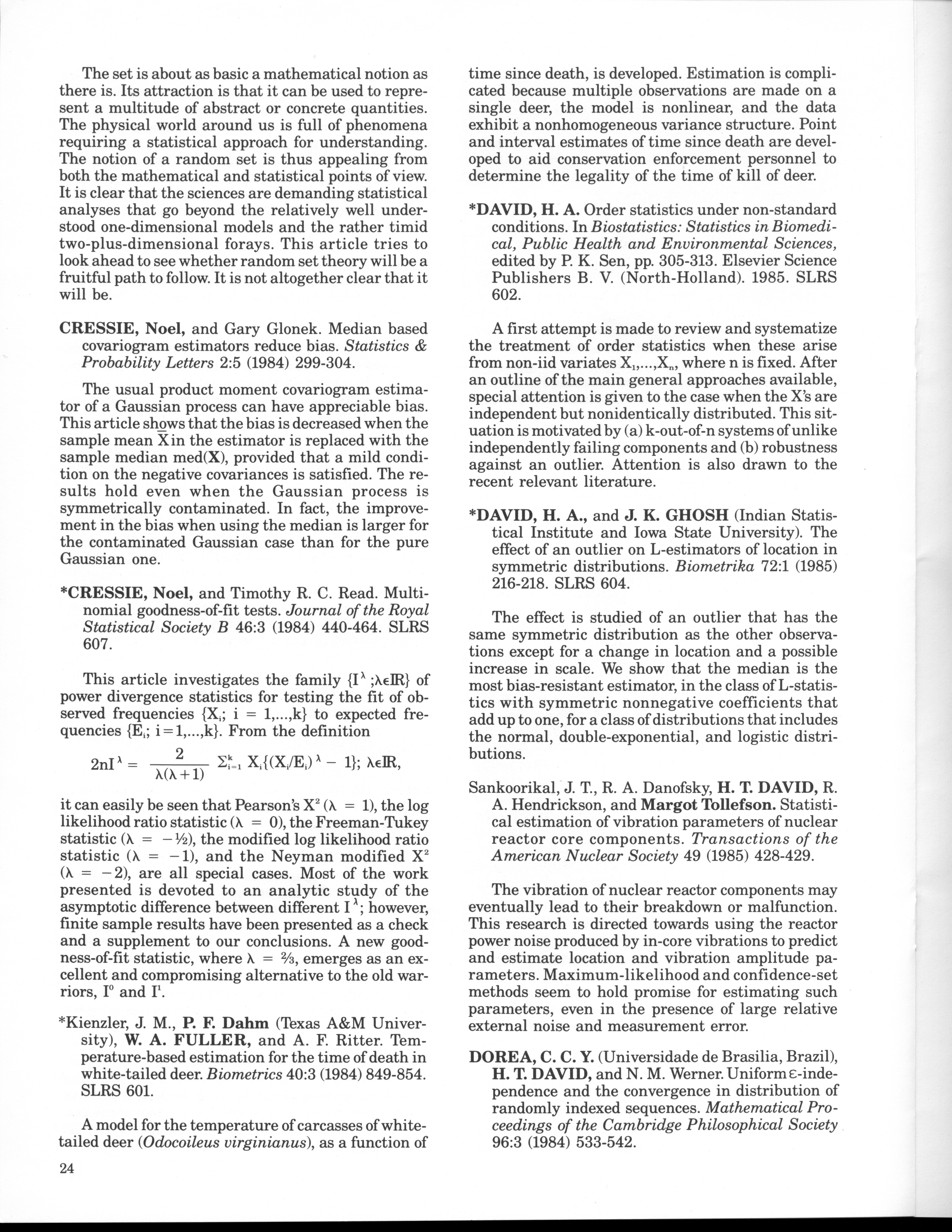 - "Statistical Laboratory Annual Report, July 1, 1984 to June 30, 1985", Iowa State University Statistical Laboratory Annual Reports, Iowa State University Library Digital Collections