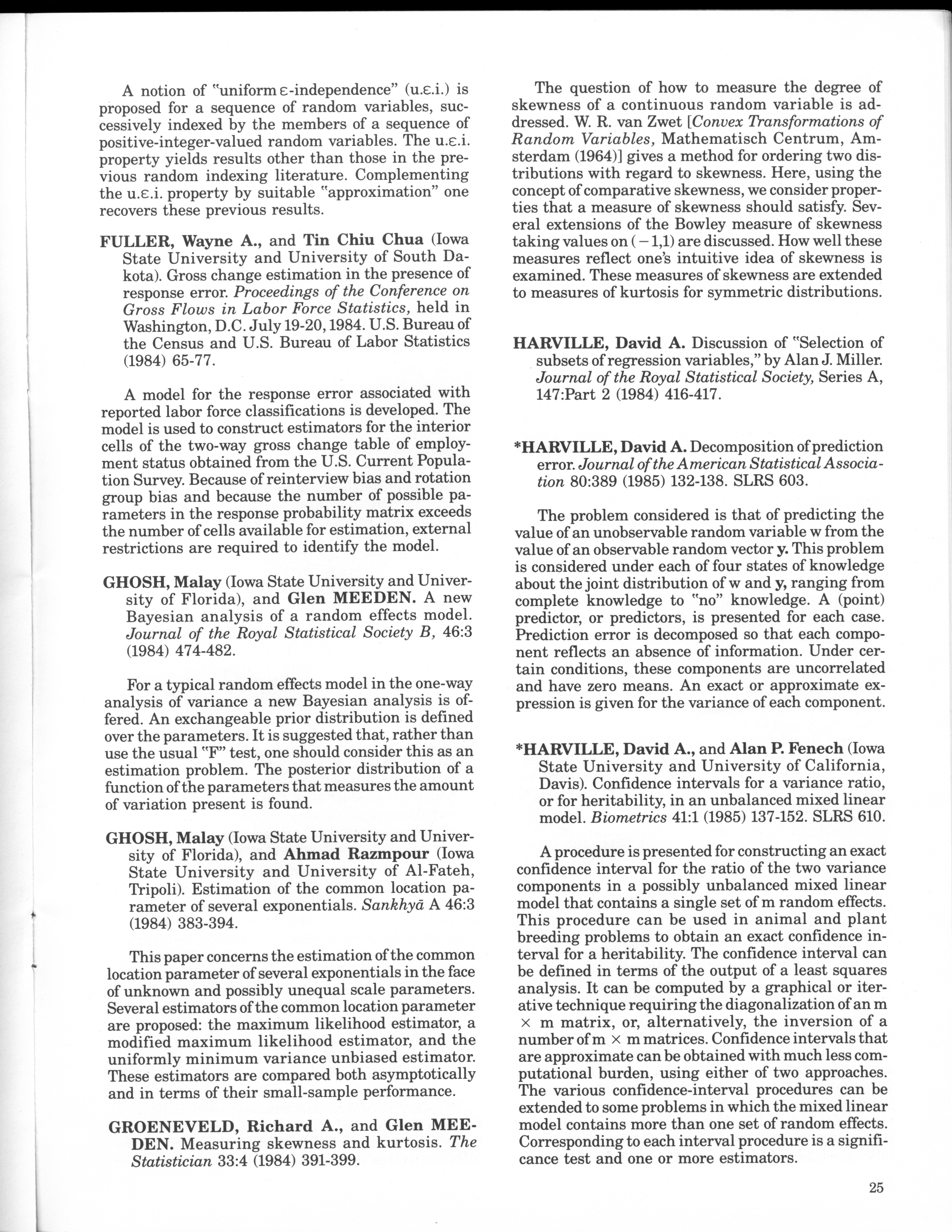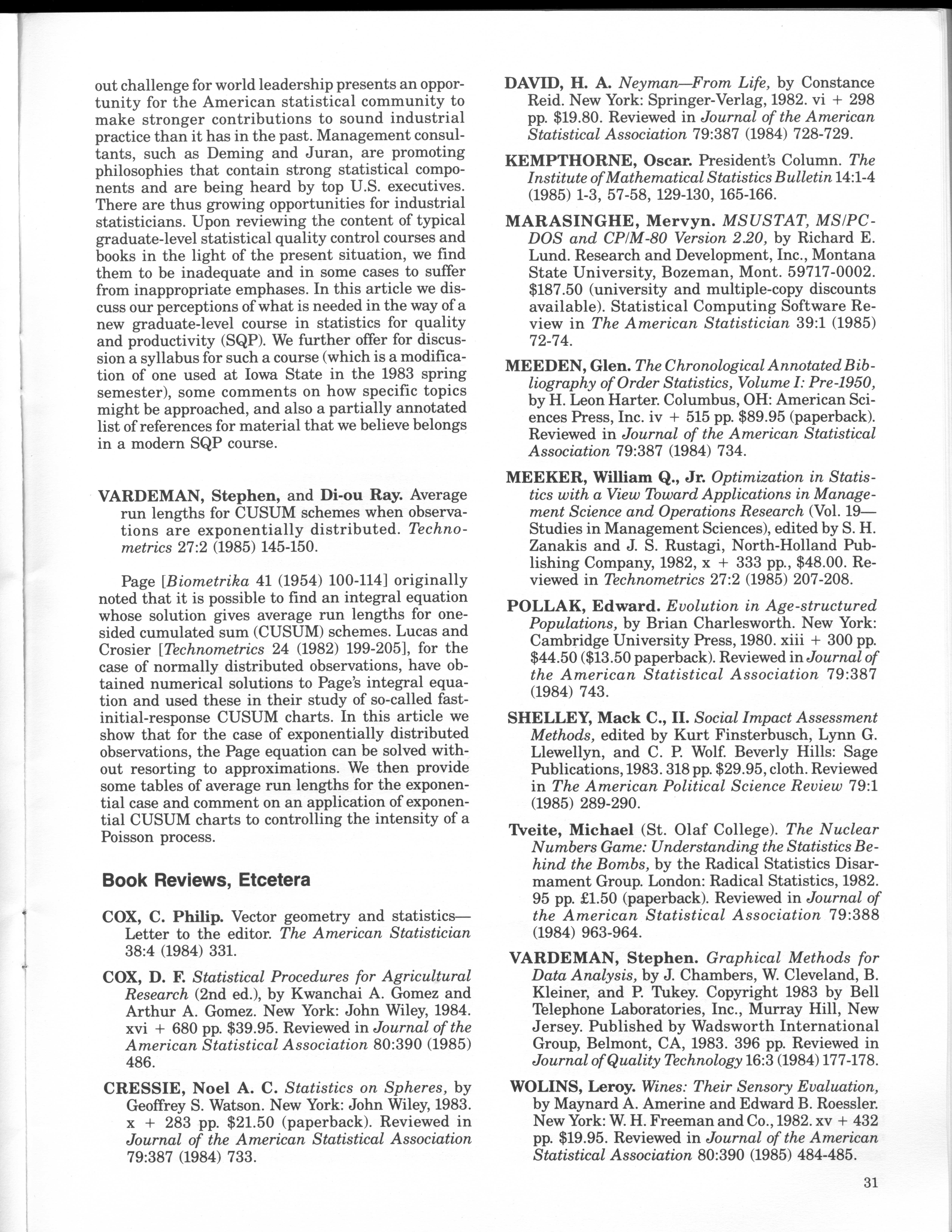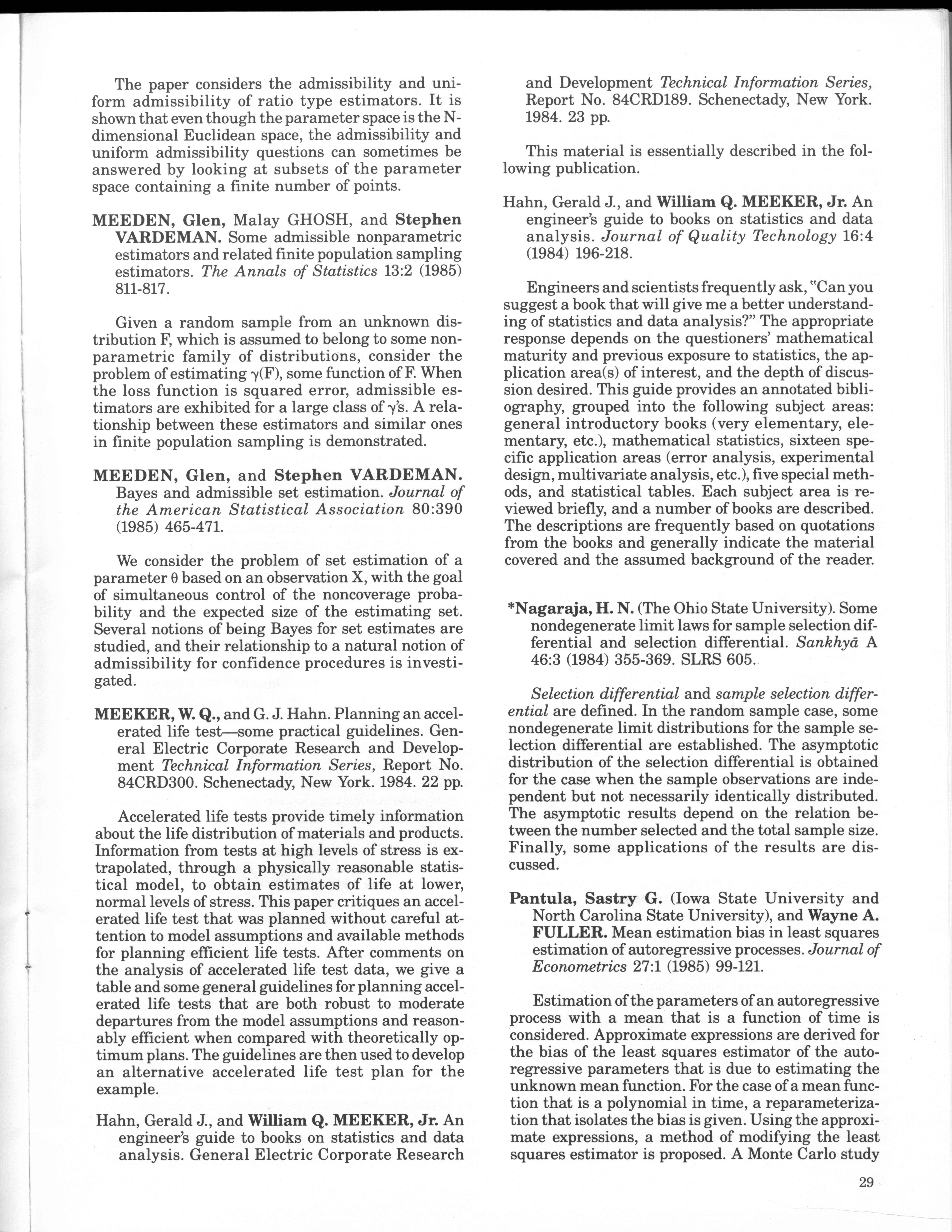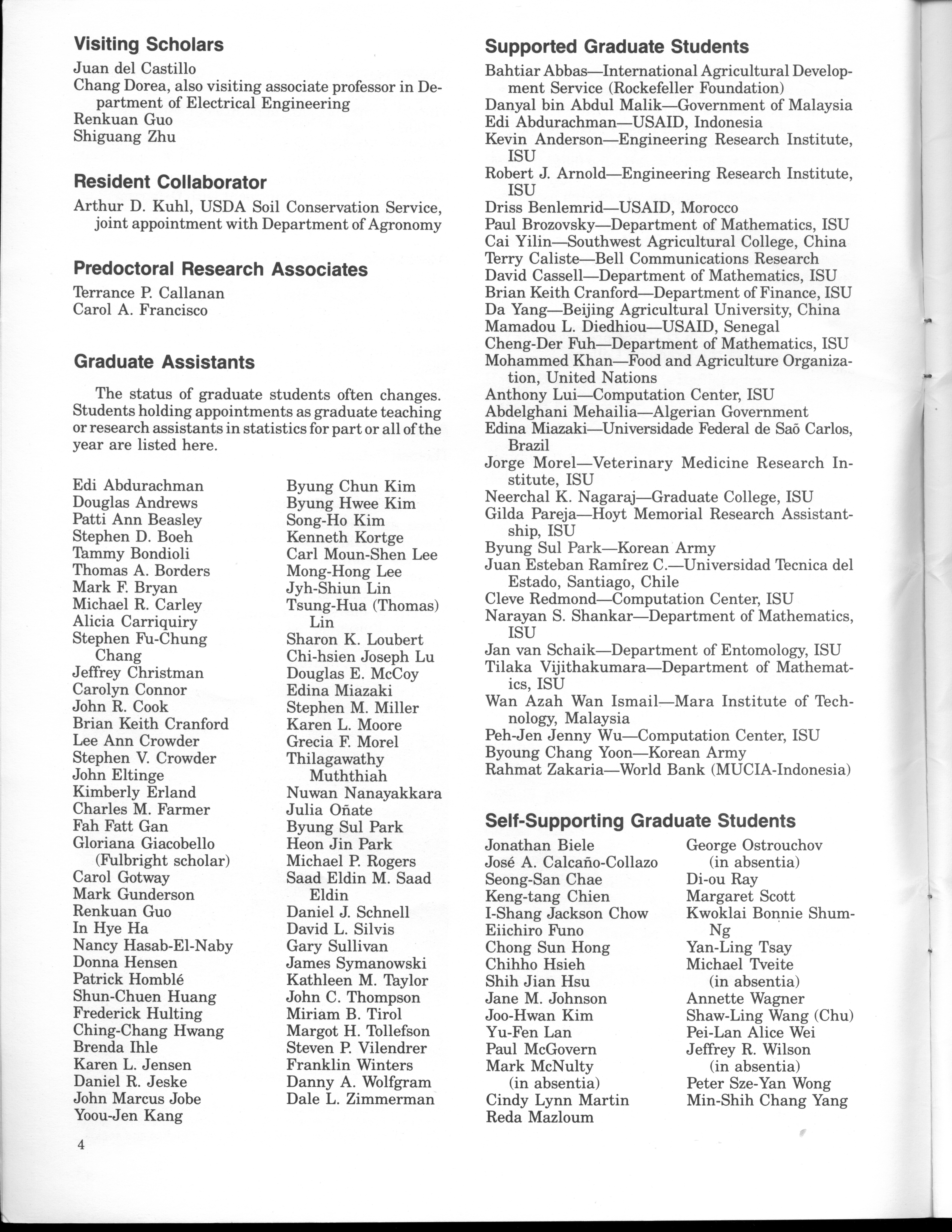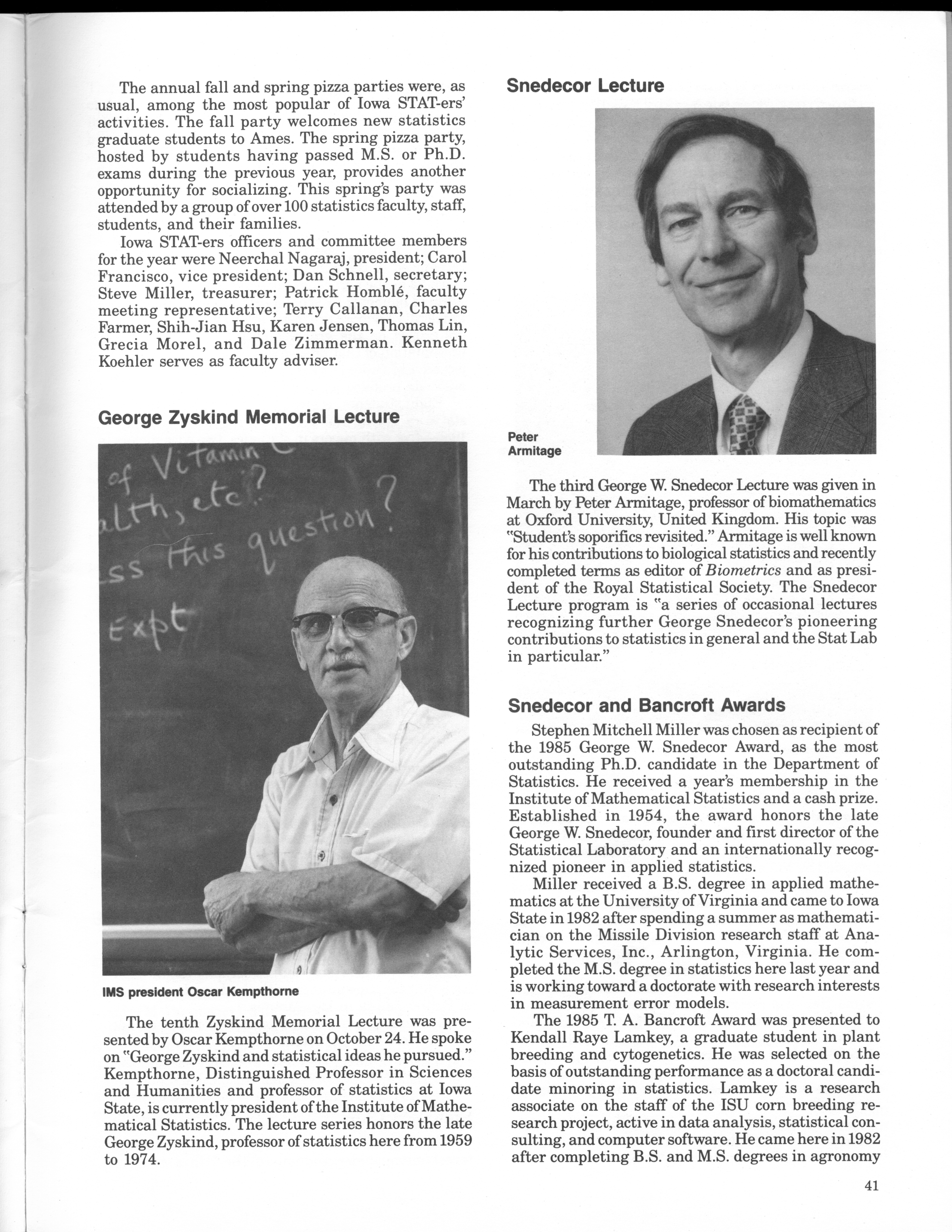 - "Statistical Laboratory Annual Report, July 1, 1984 to June 30, 1985", Iowa State University Statistical Laboratory Annual Reports, Iowa State University Library Digital Collections