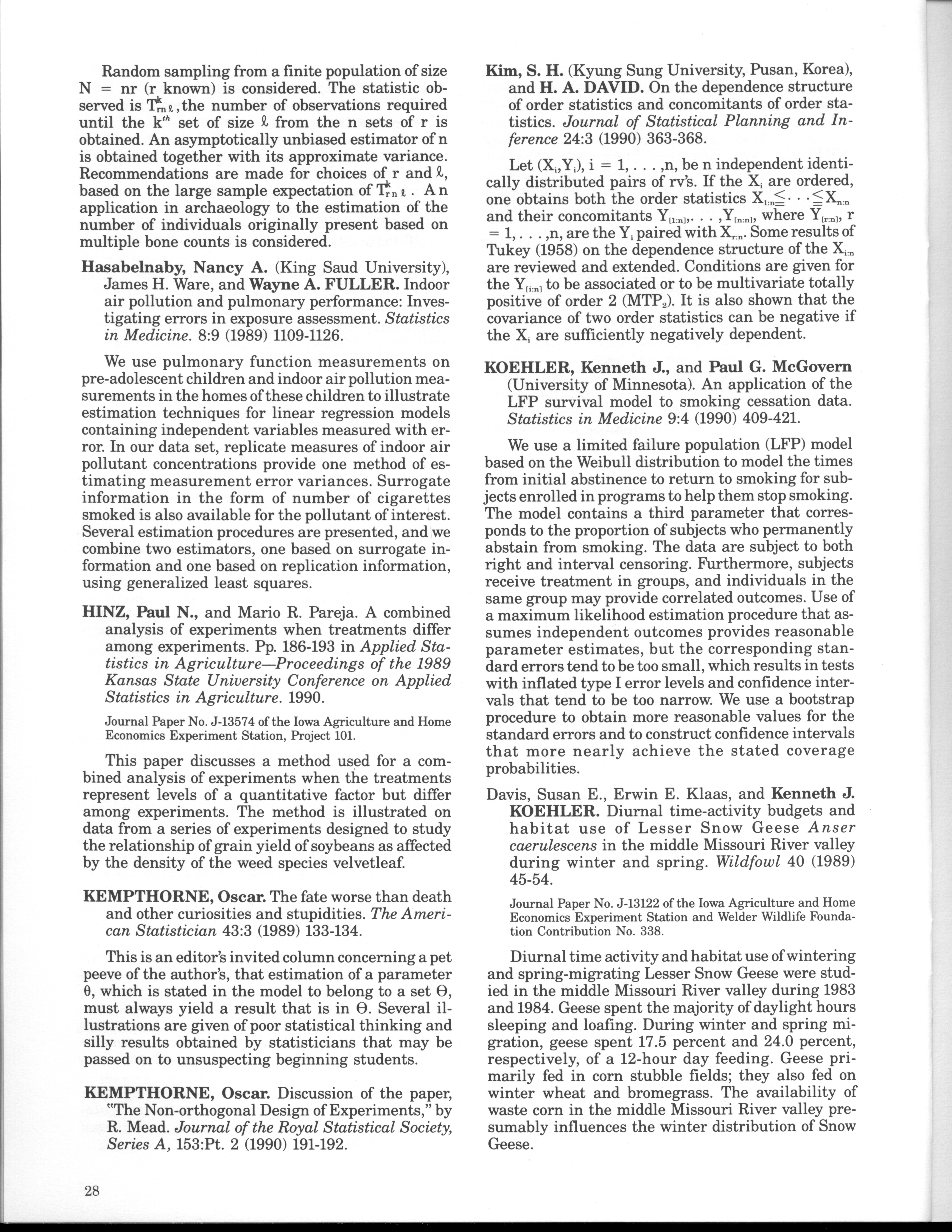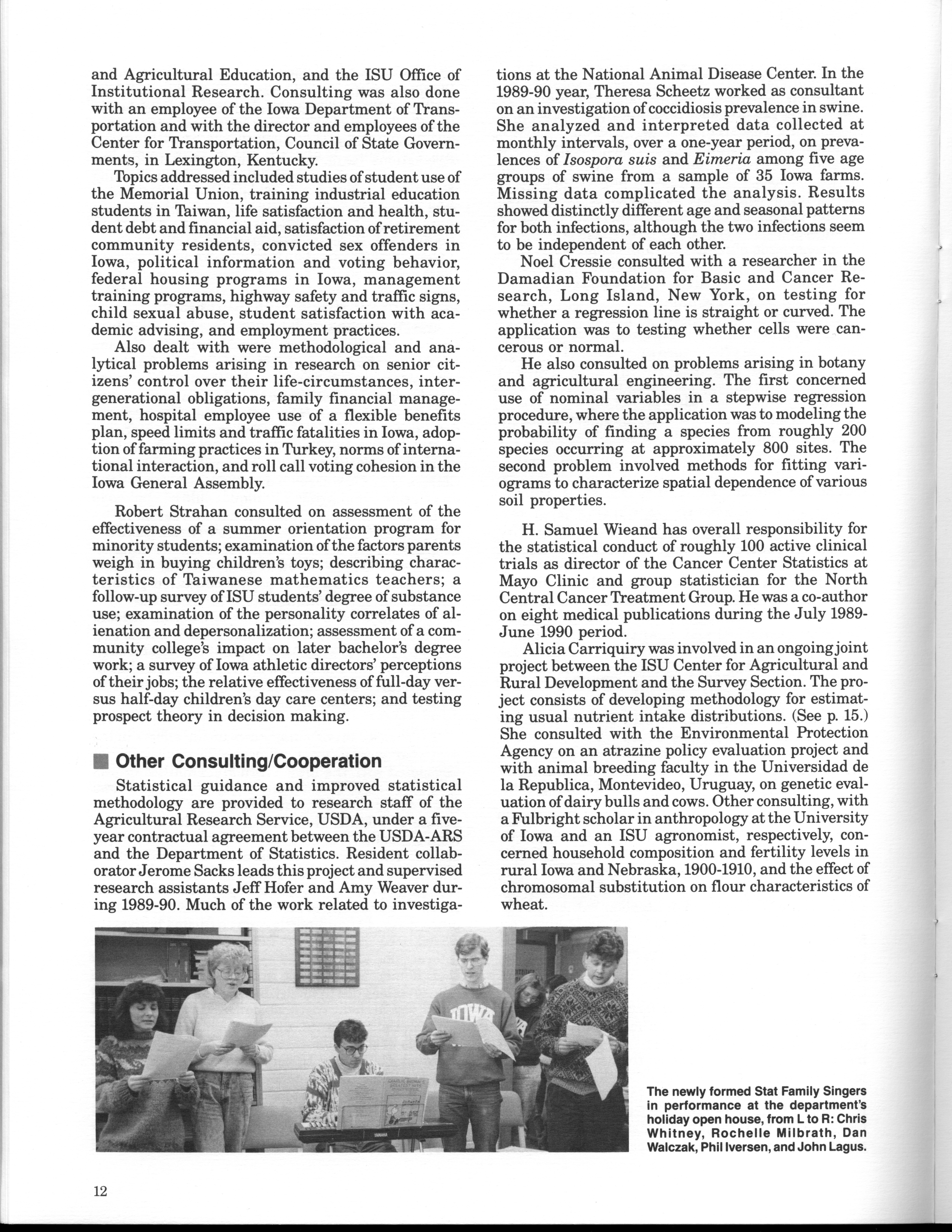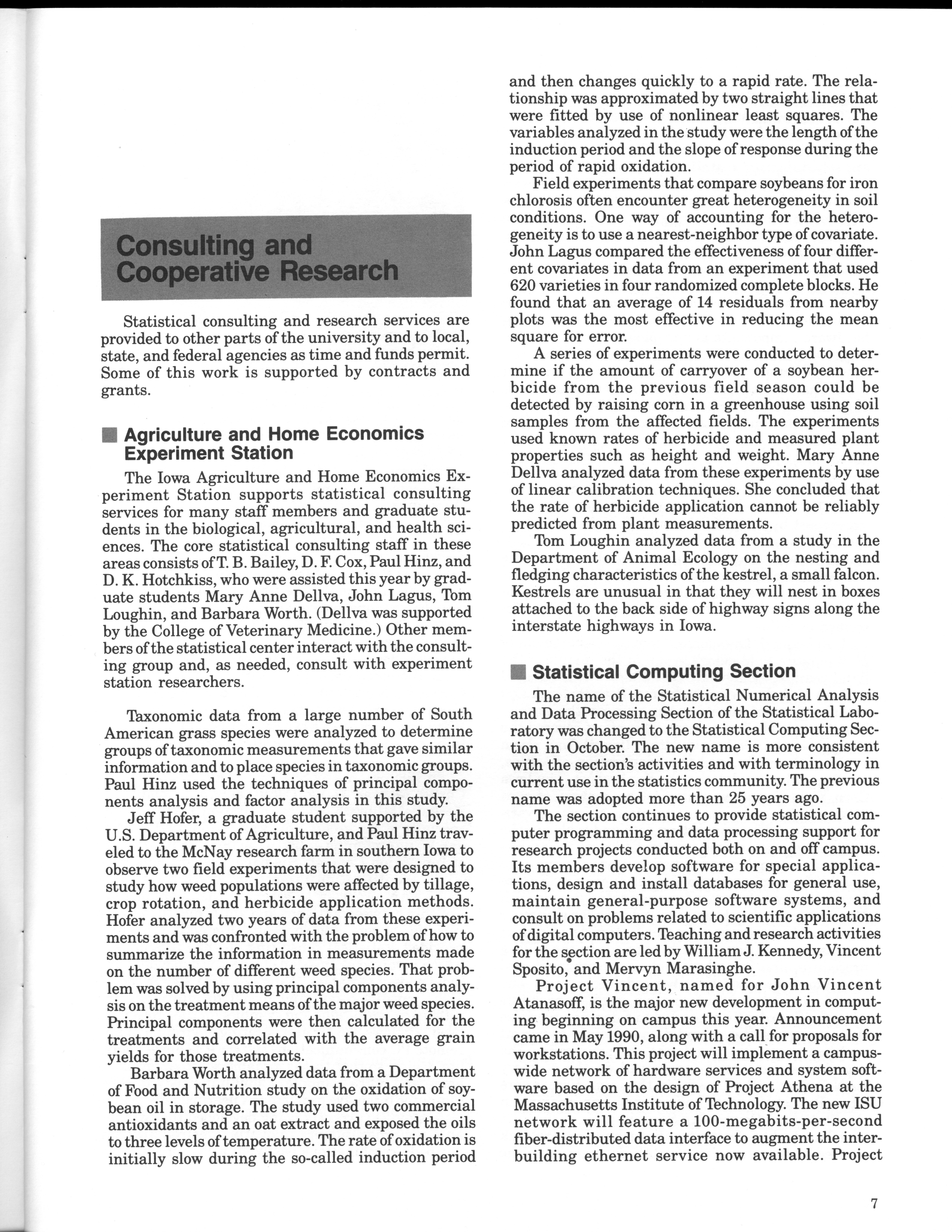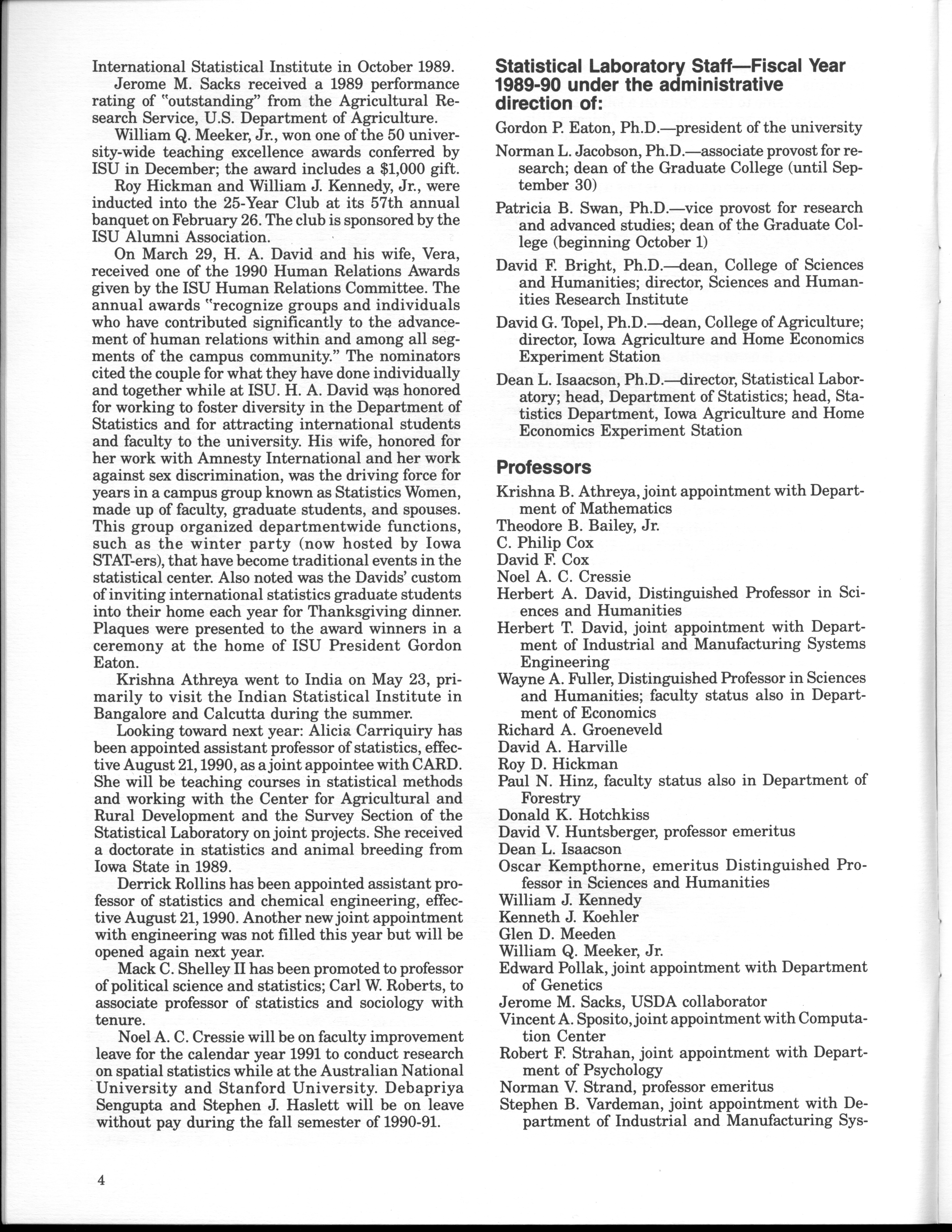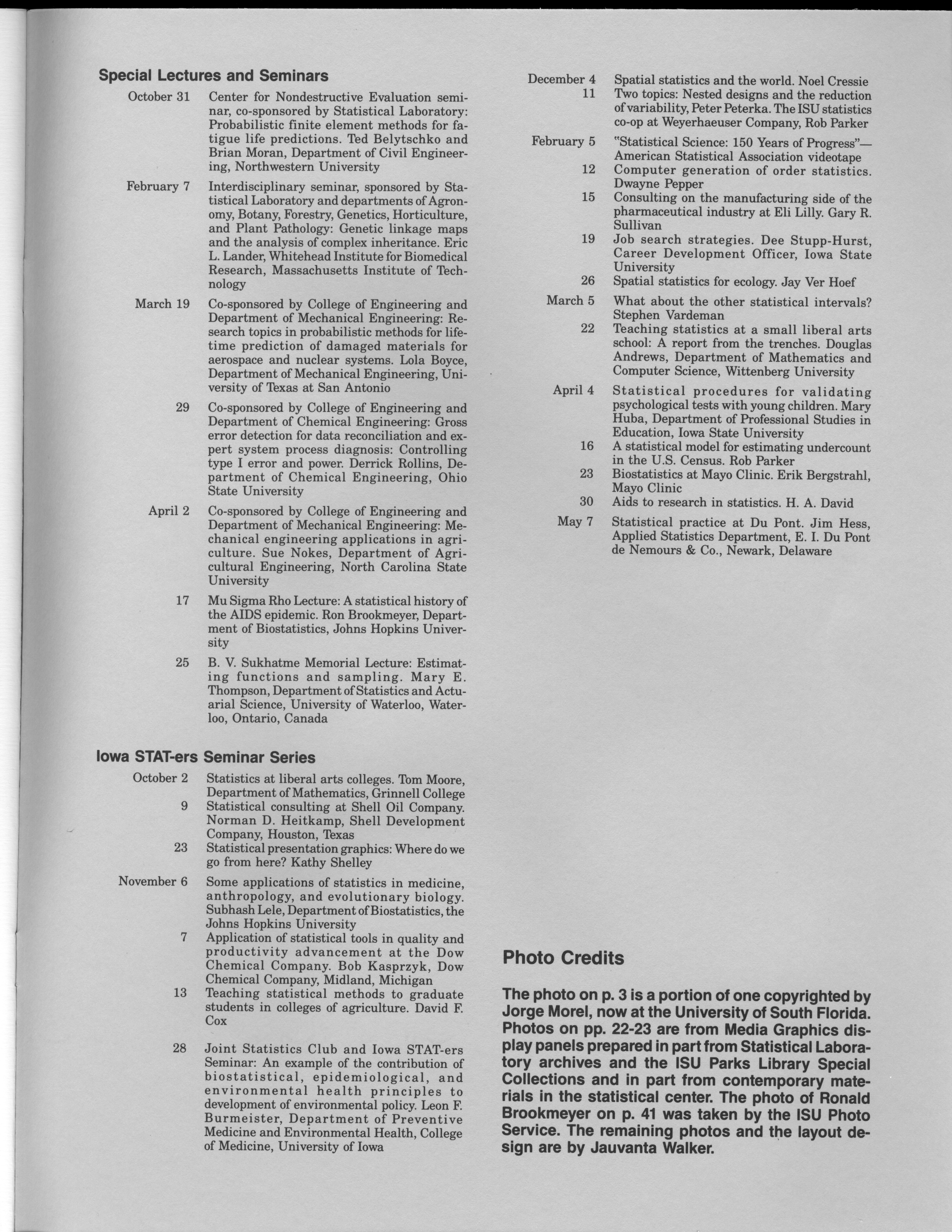 - "Statistical Laboratory Annual Report, July 1, 1989 to June 30, 1990", Iowa State University Statistical Laboratory Annual Reports, Iowa State University Library Digital Collections