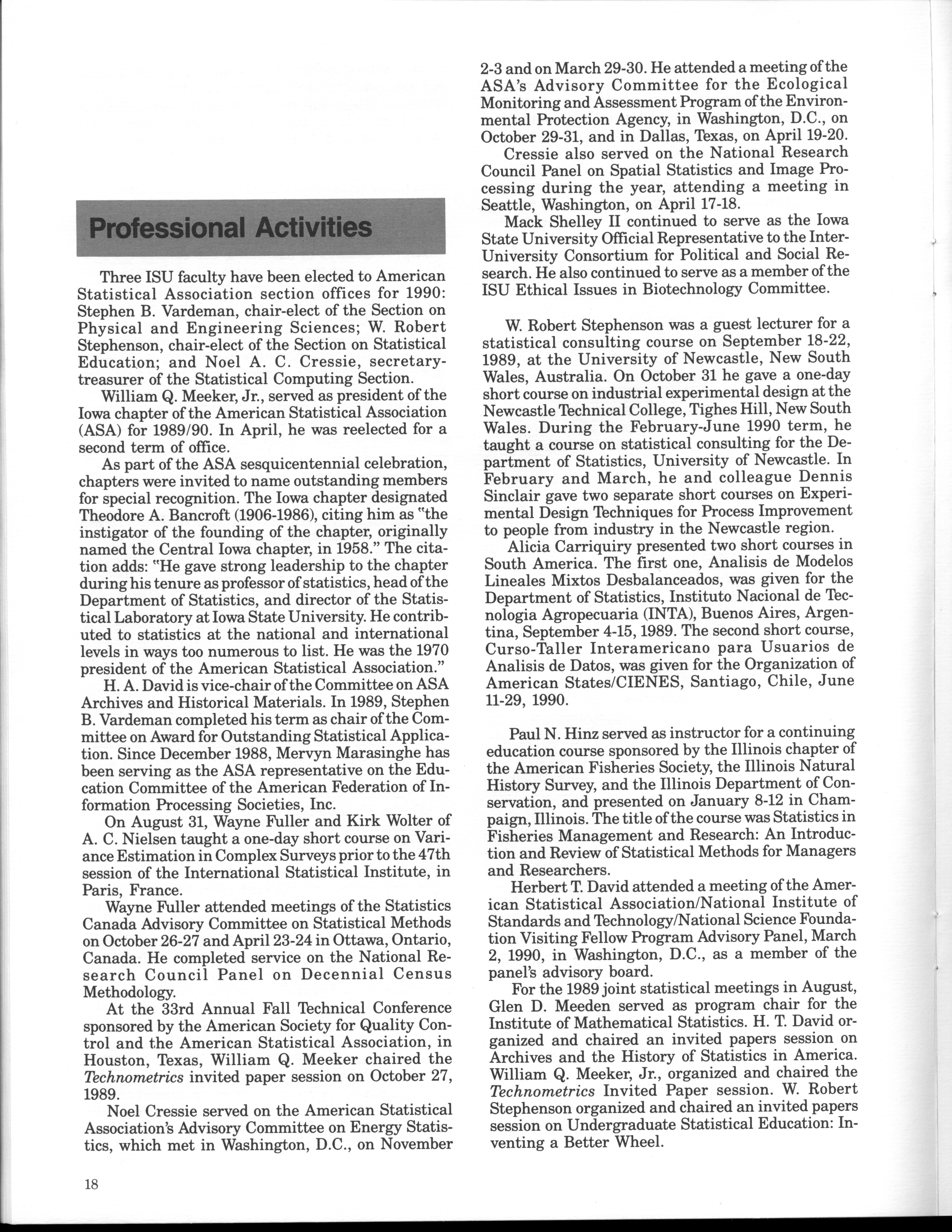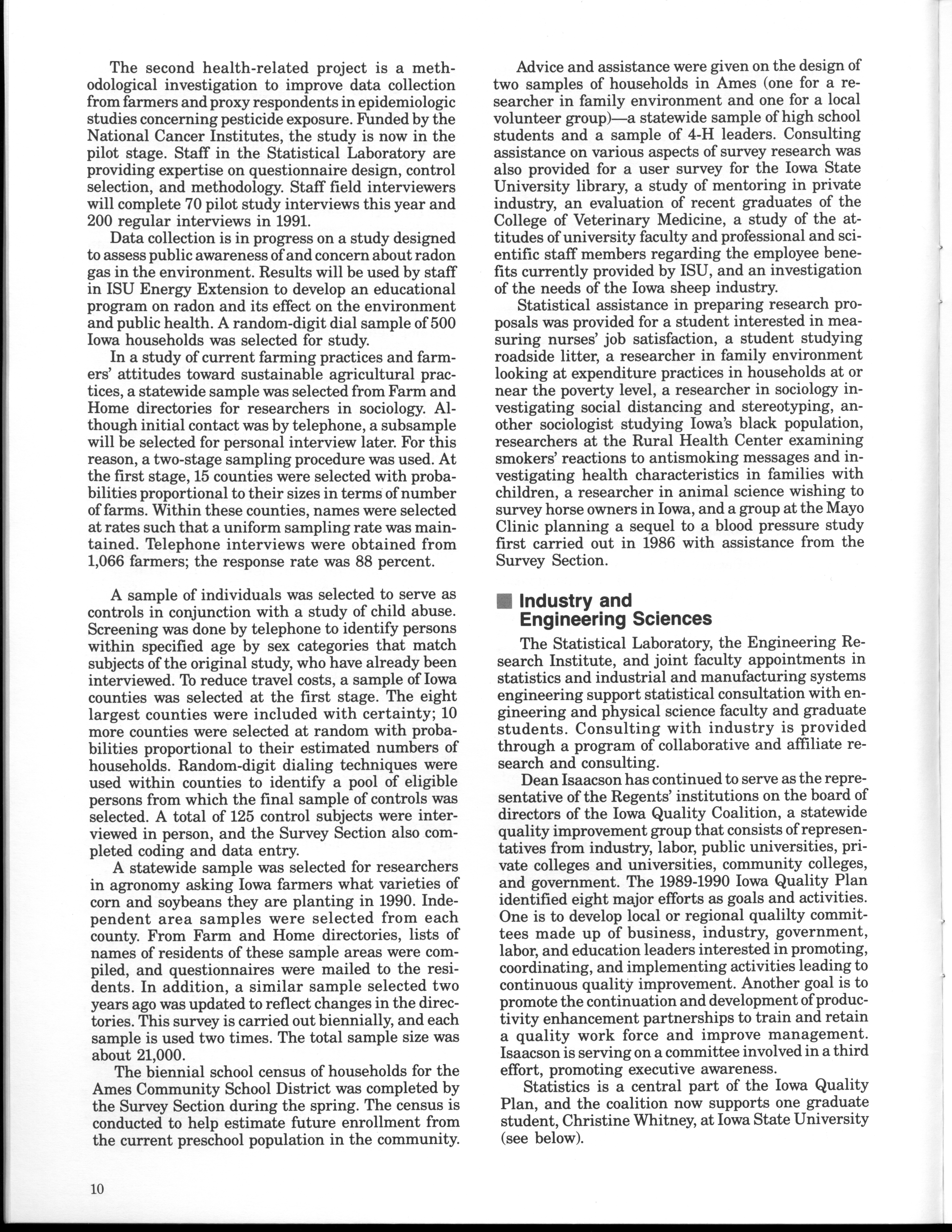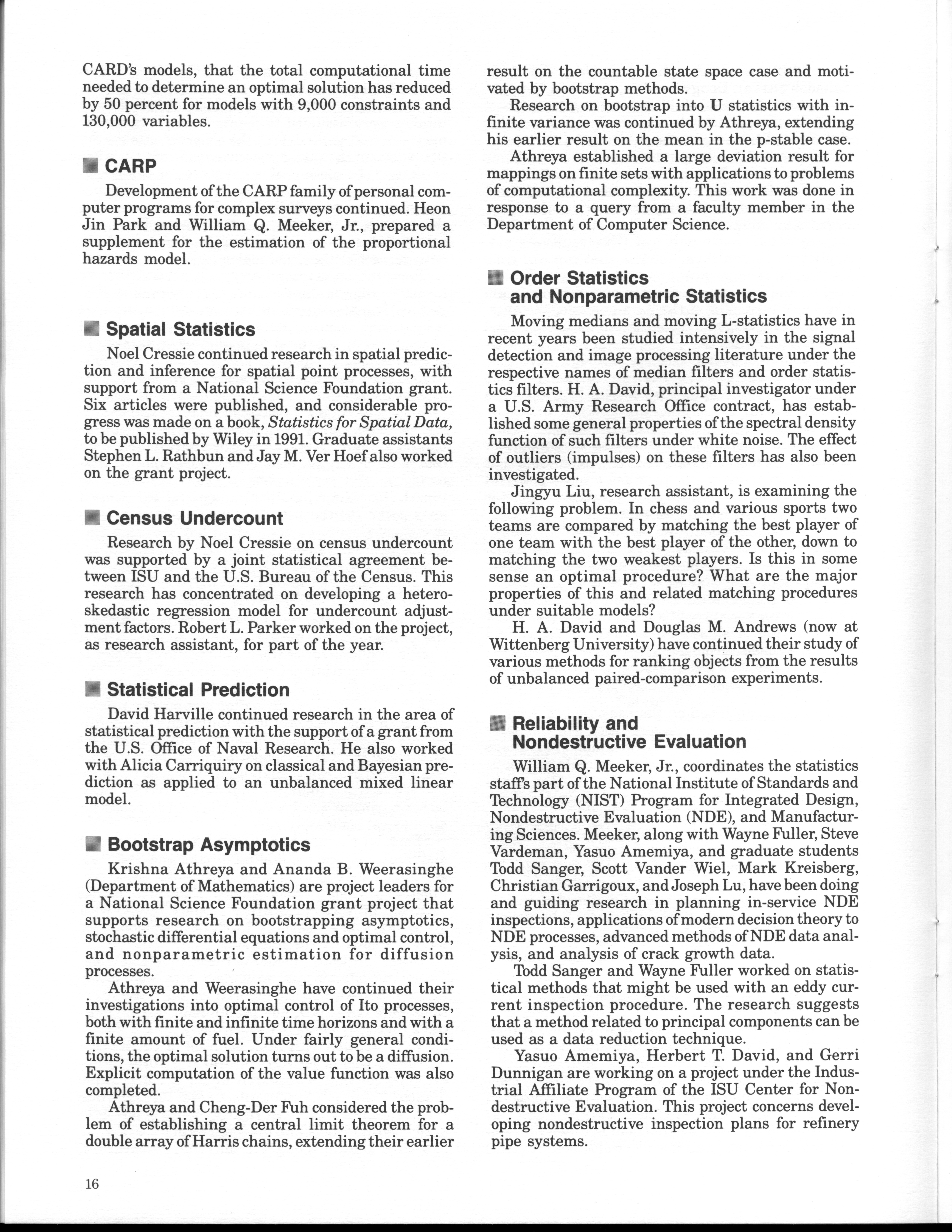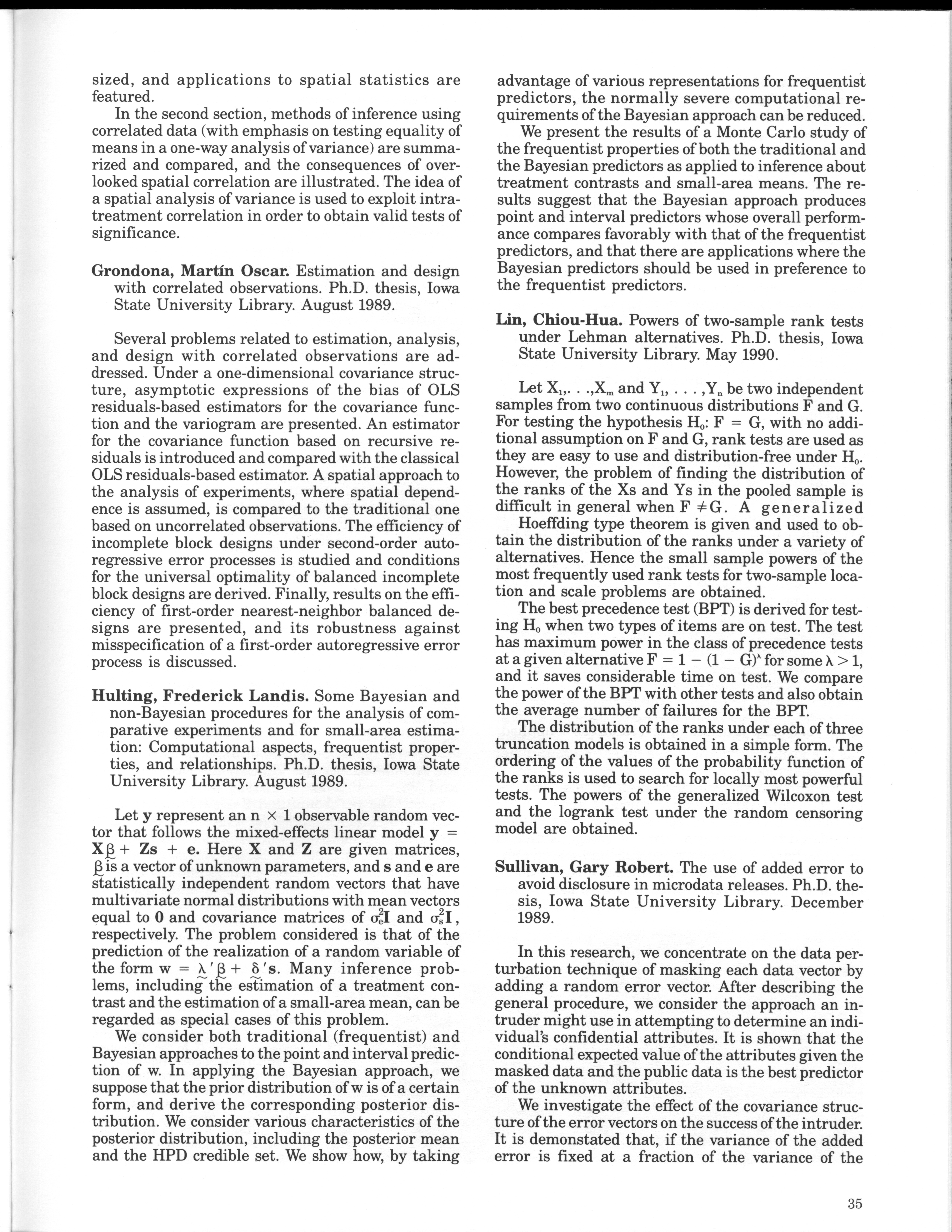 - "Statistical Laboratory Annual Report, July 1, 1989 to June 30, 1990", Iowa State University Statistical Laboratory Annual Reports, Iowa State University Library Digital Collections