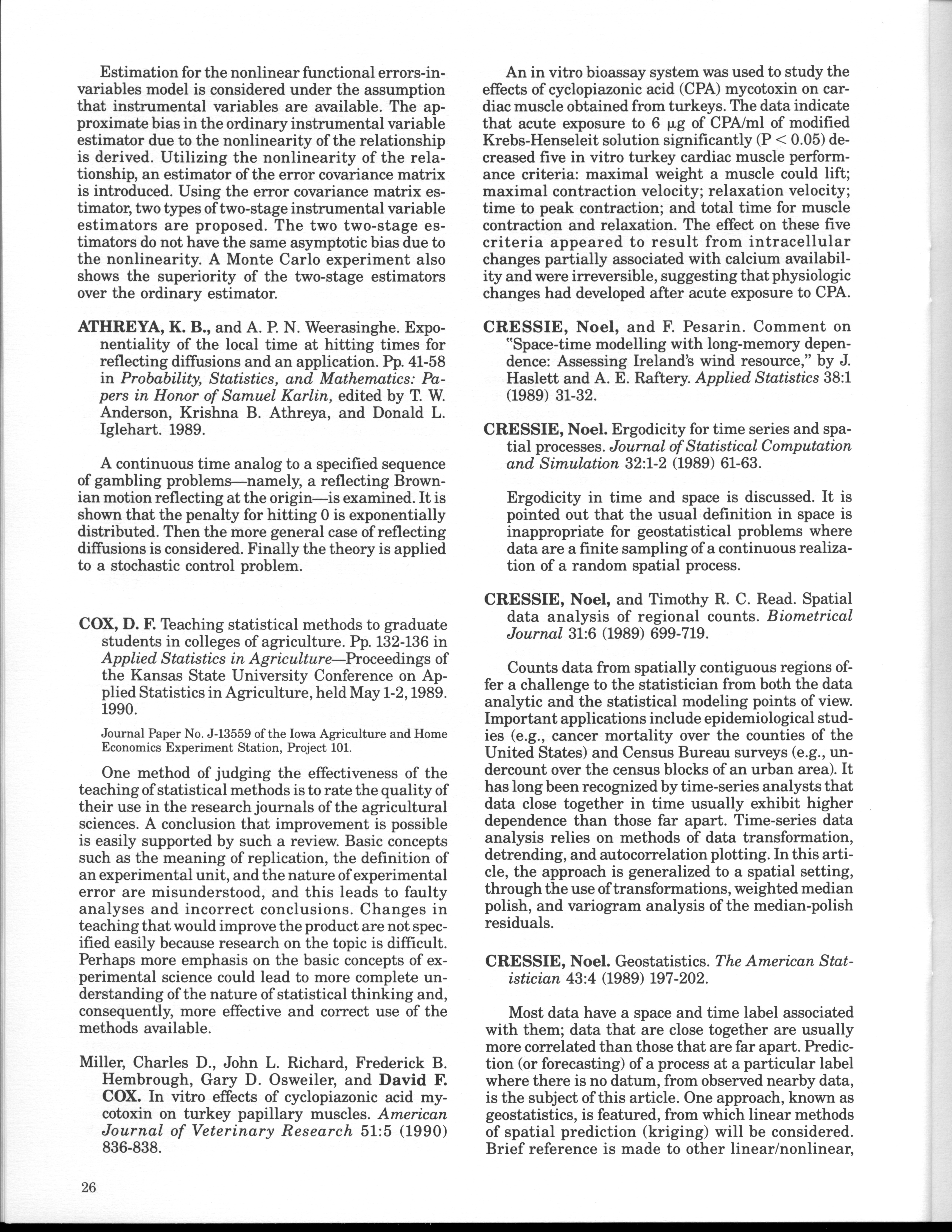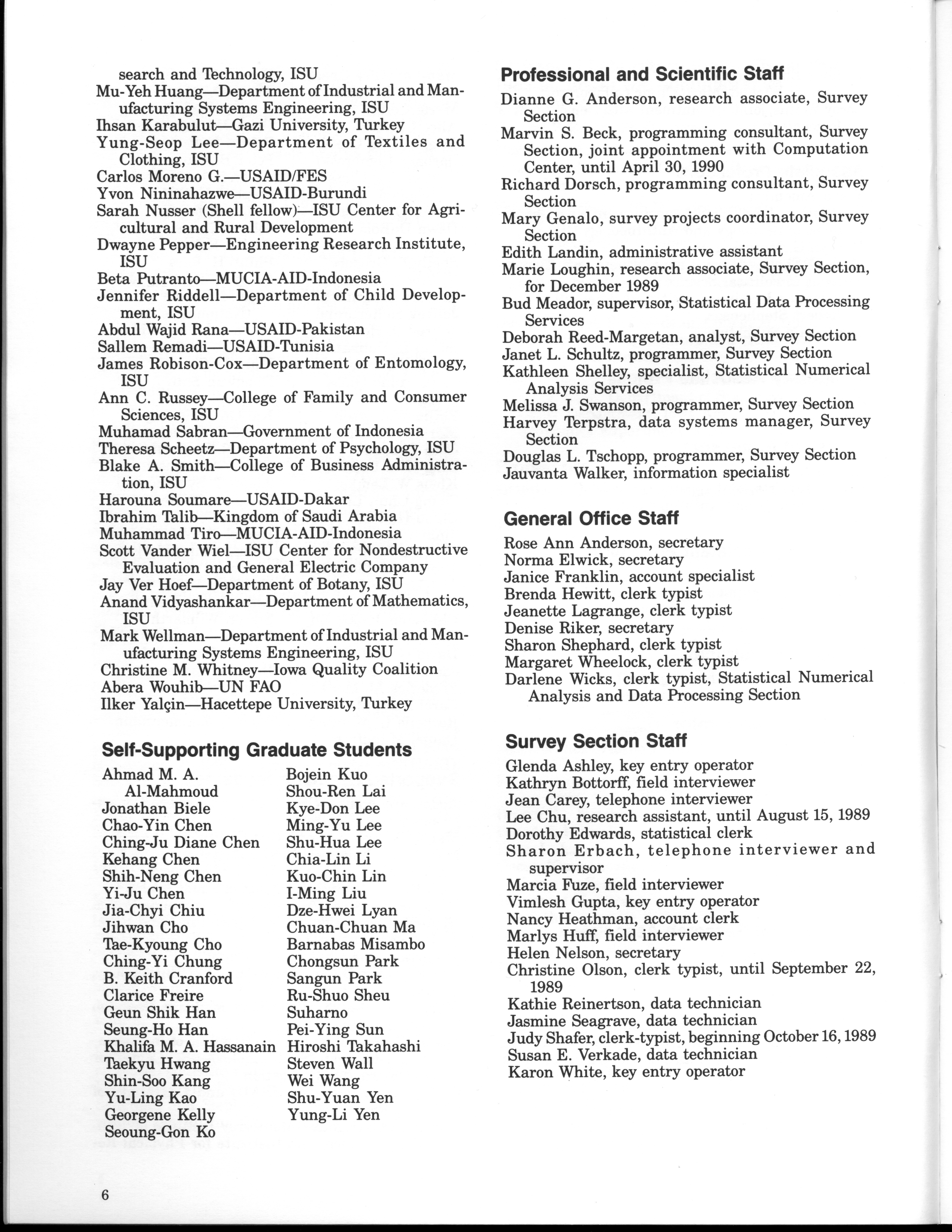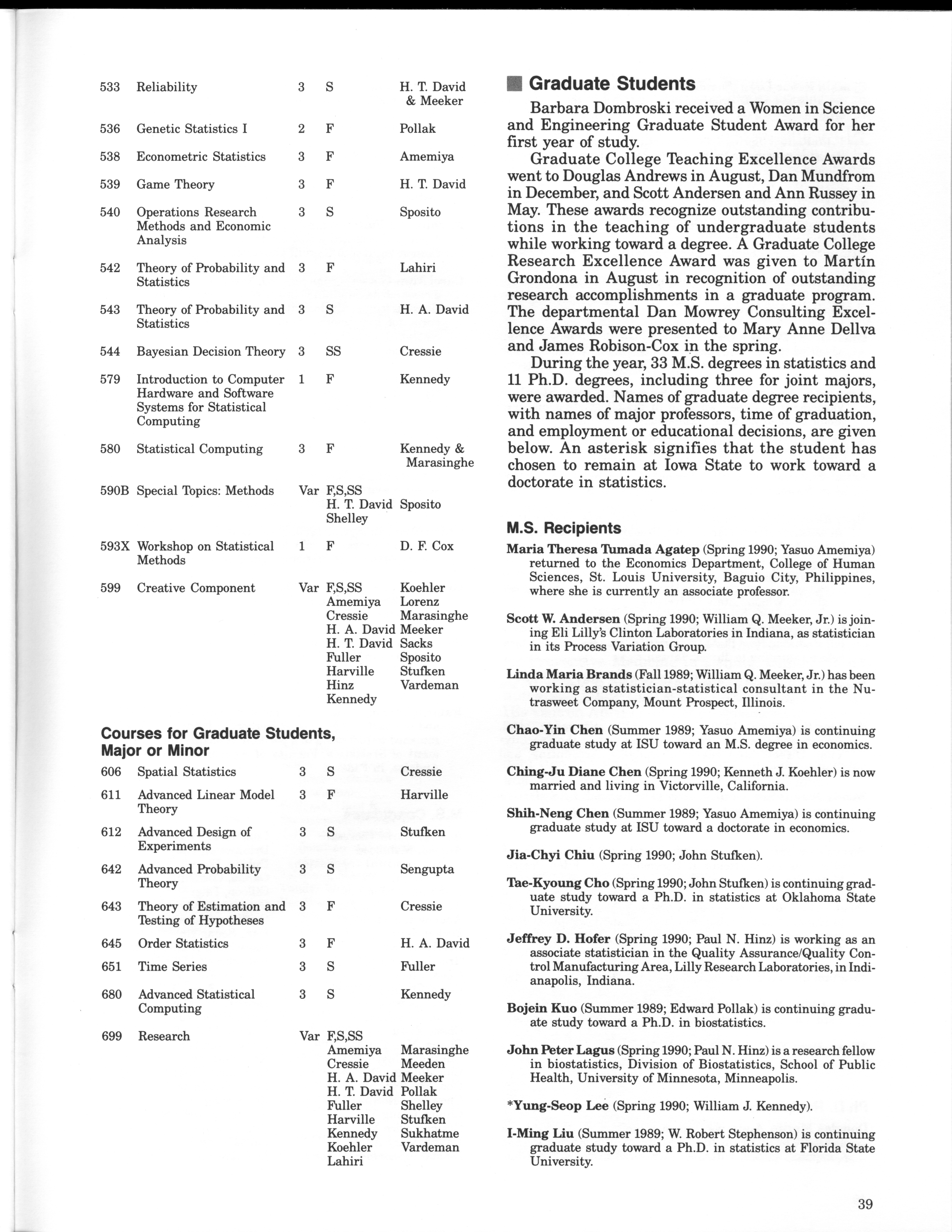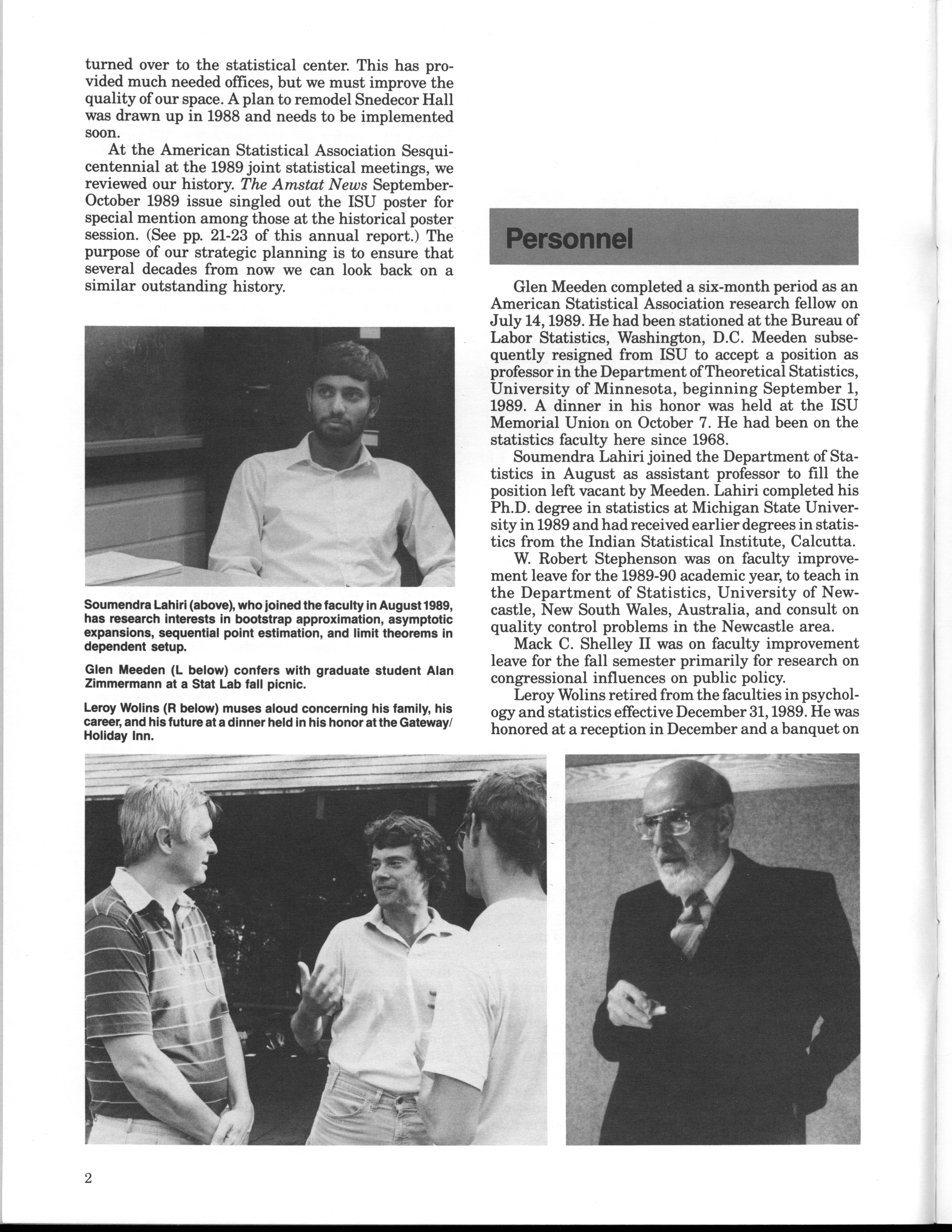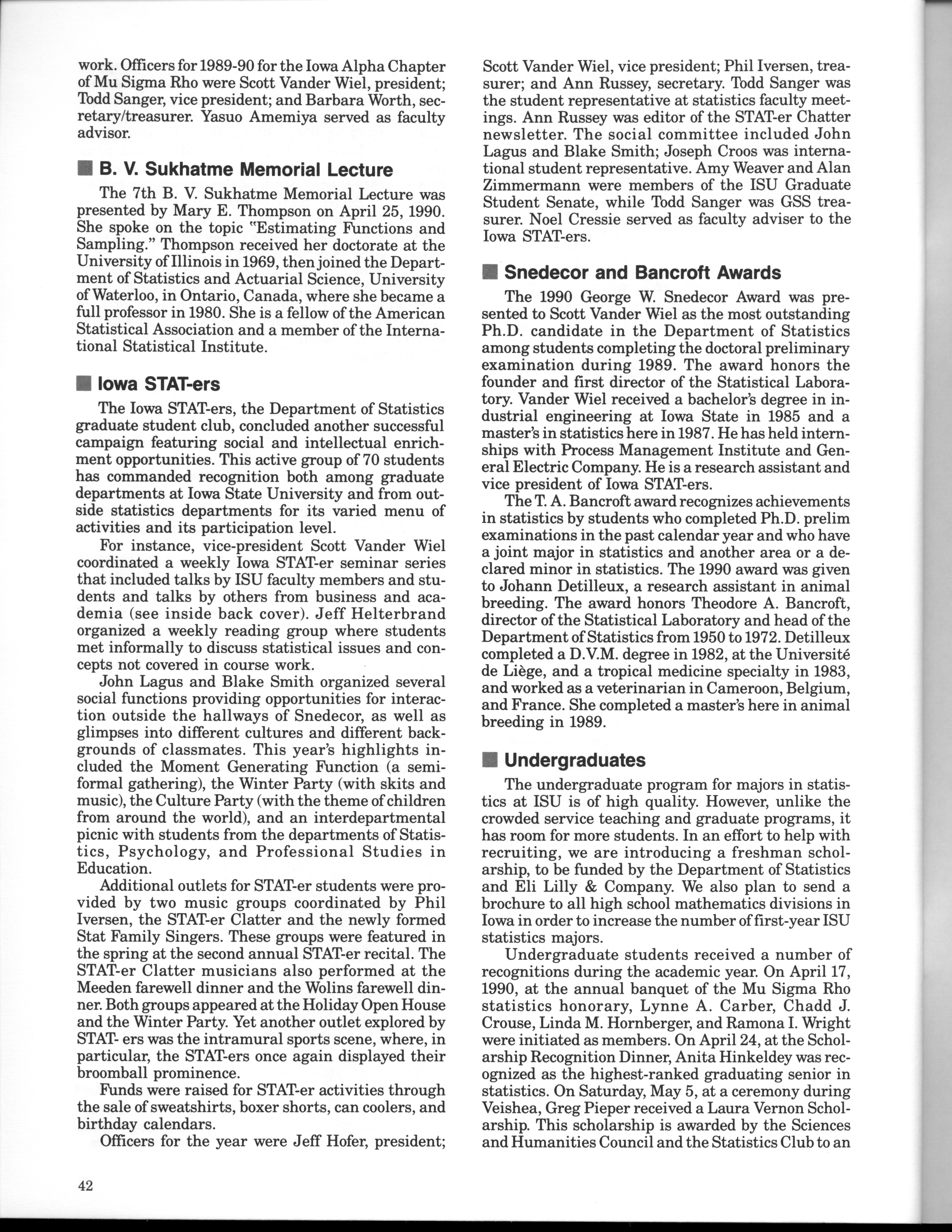 - "Statistical Laboratory Annual Report, July 1, 1989 to June 30, 1990", Iowa State University Statistical Laboratory Annual Reports, Iowa State University Library Digital Collections
