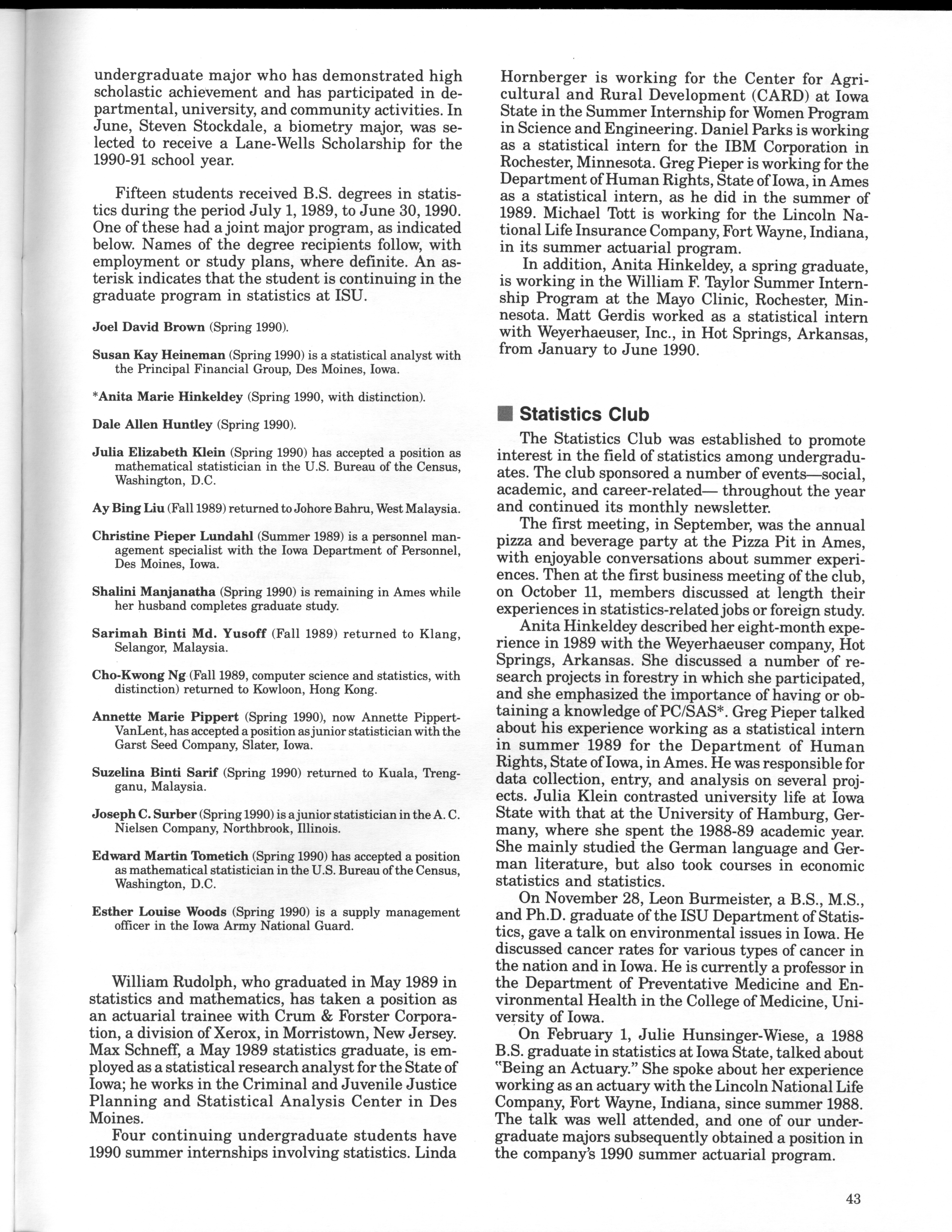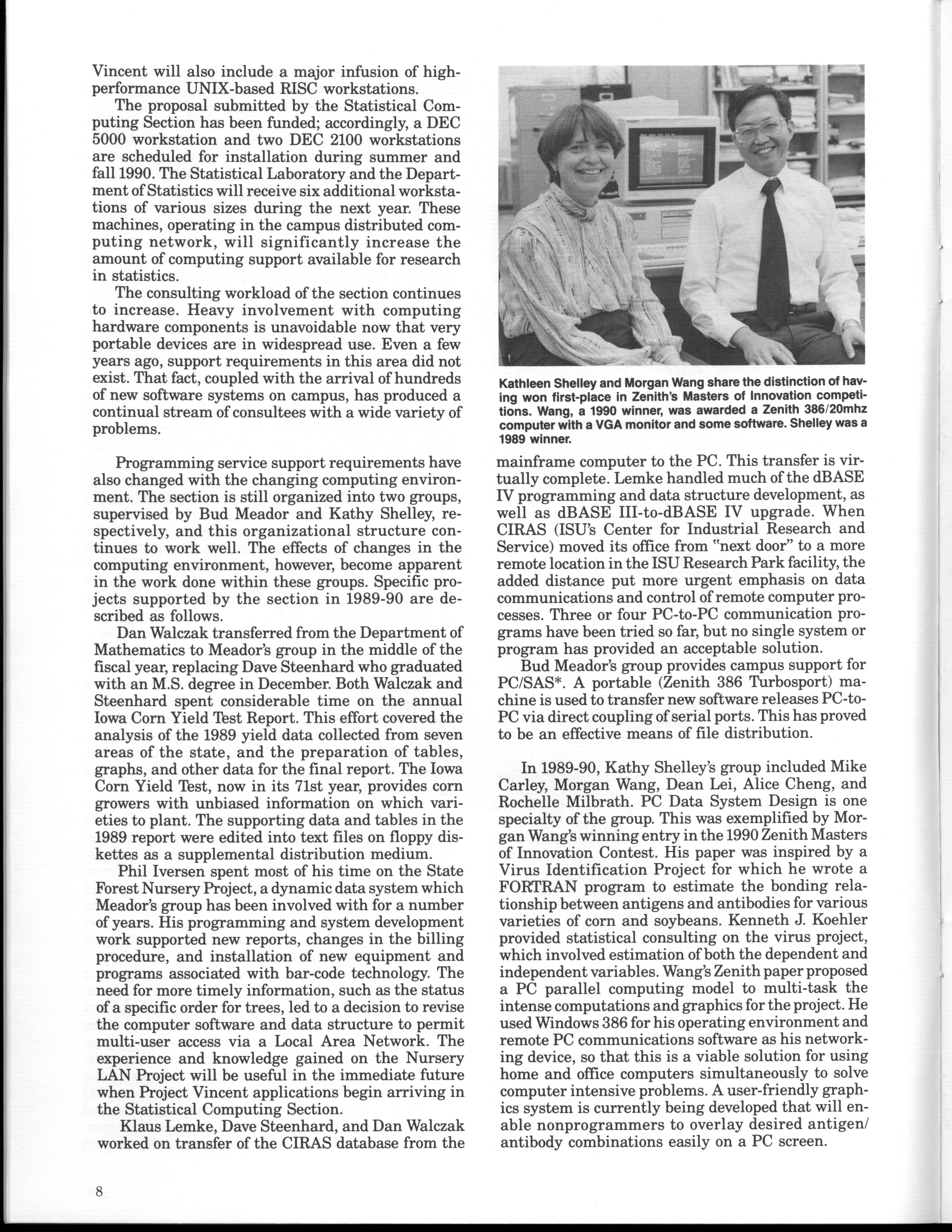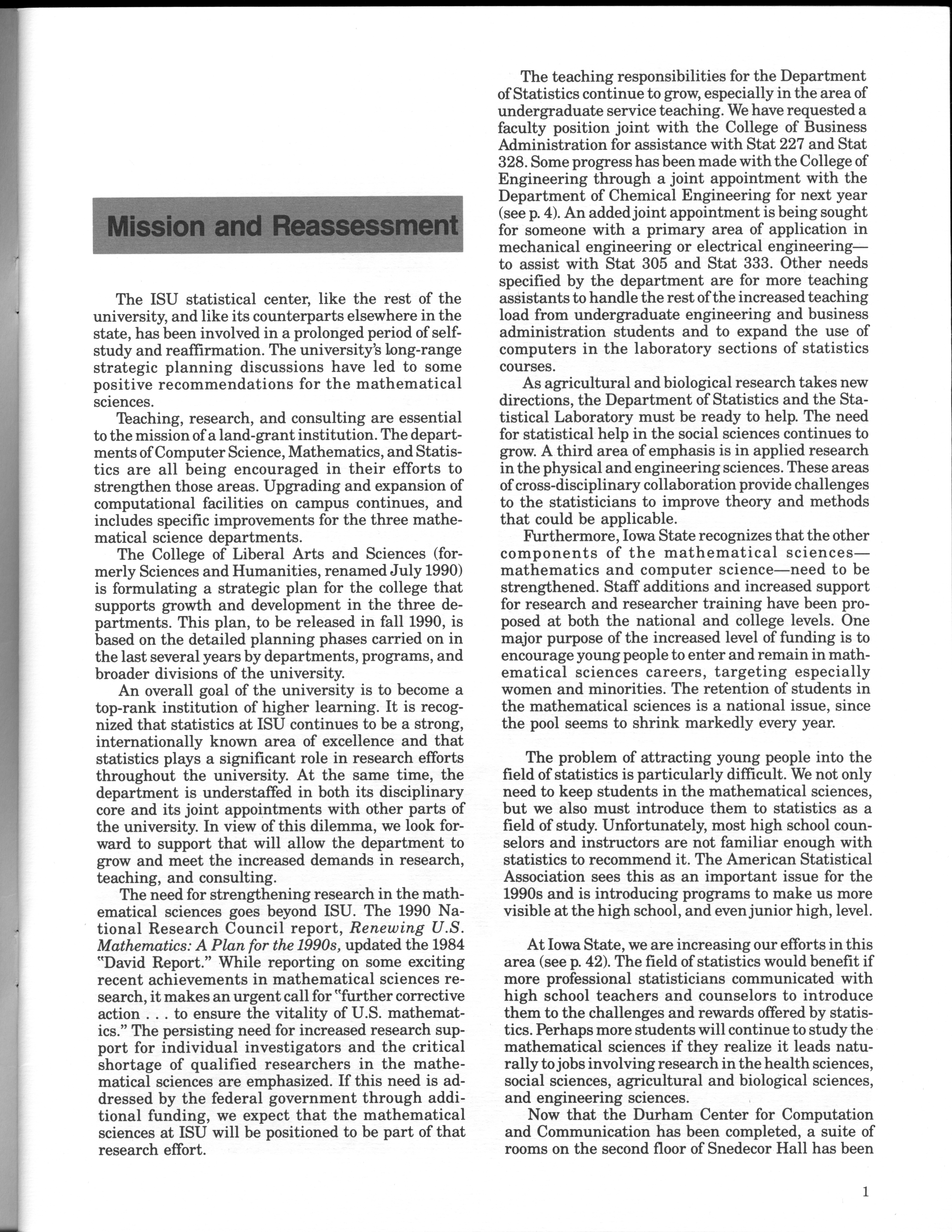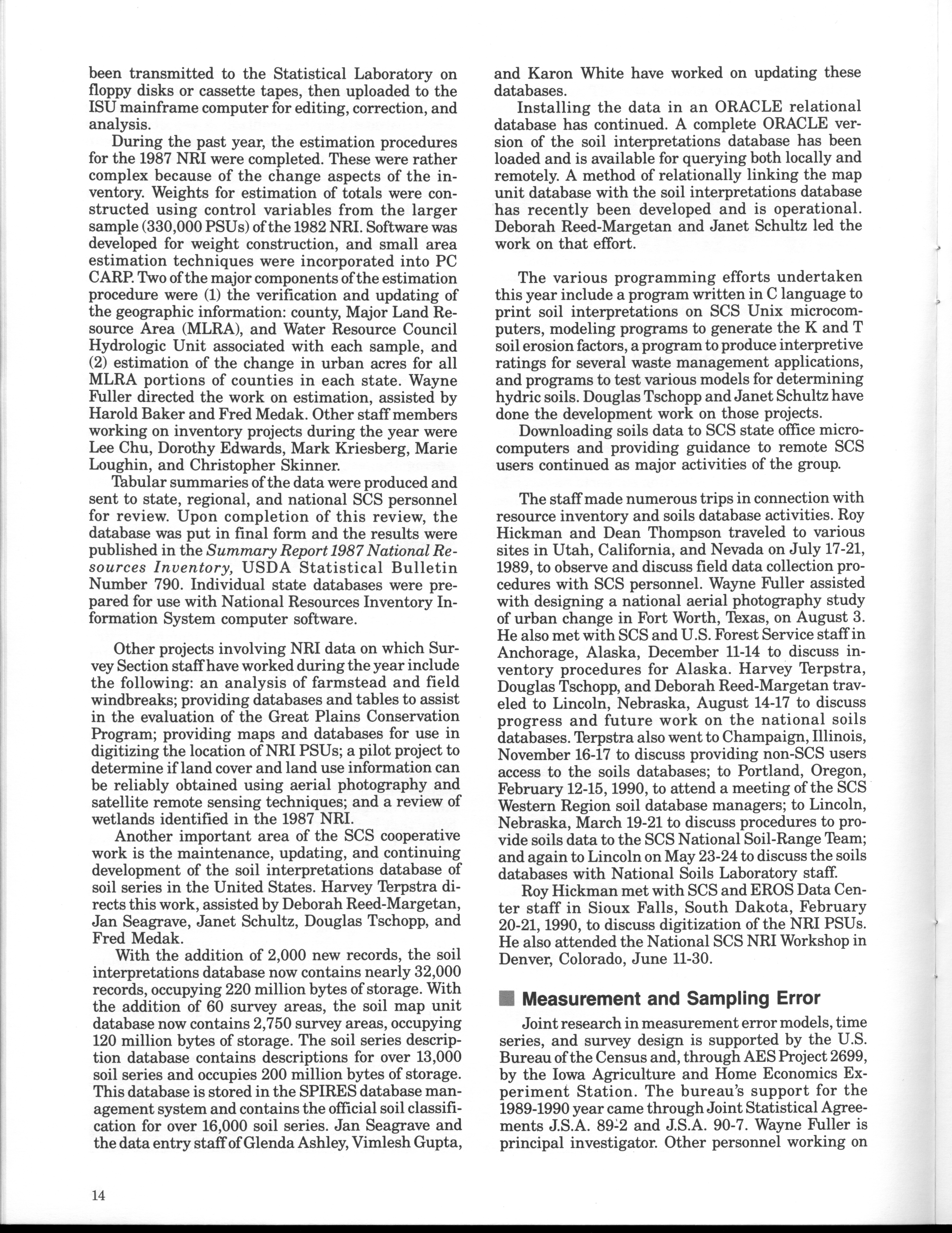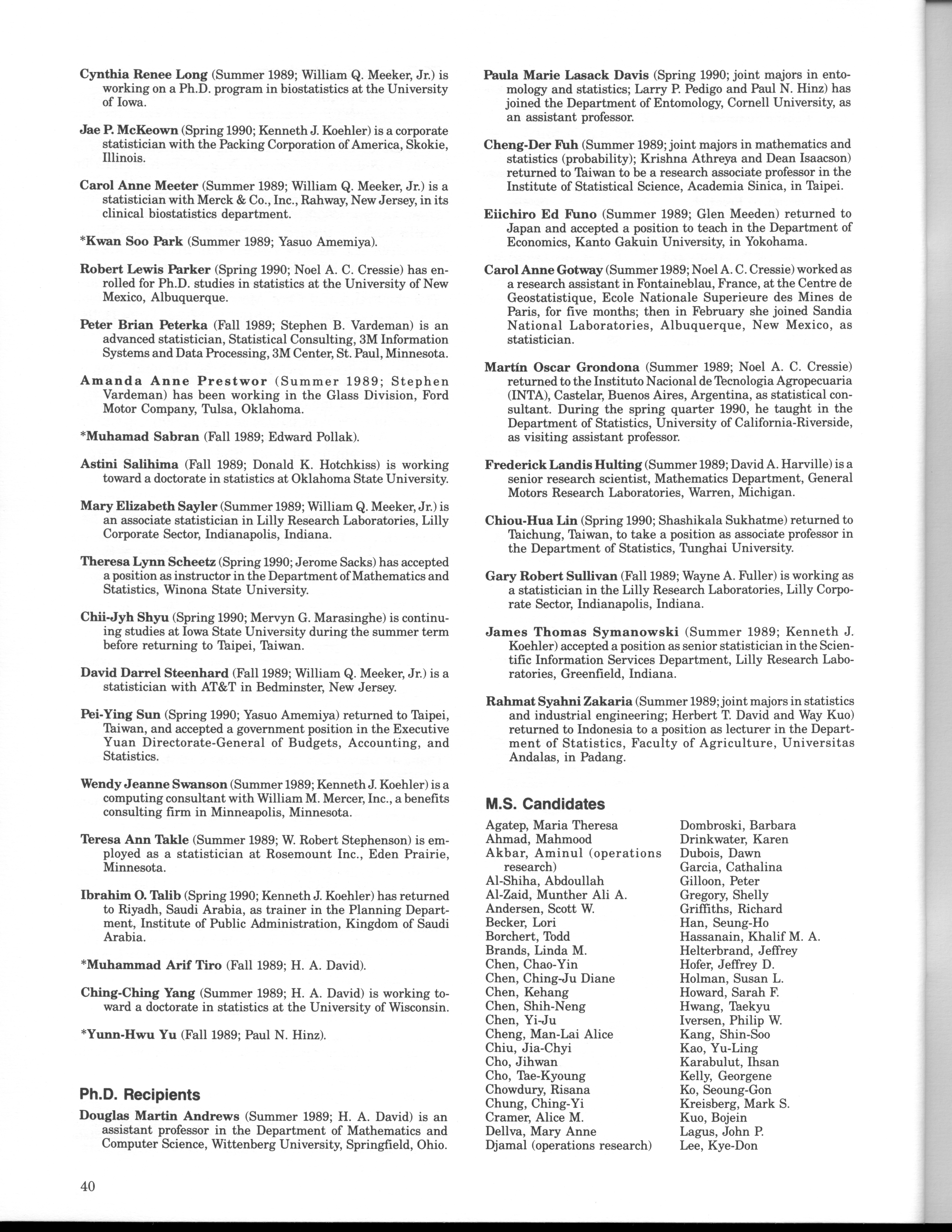 - "Statistical Laboratory Annual Report, July 1, 1989 to June 30, 1990", Iowa State University Statistical Laboratory Annual Reports, Iowa State University Library Digital Collections