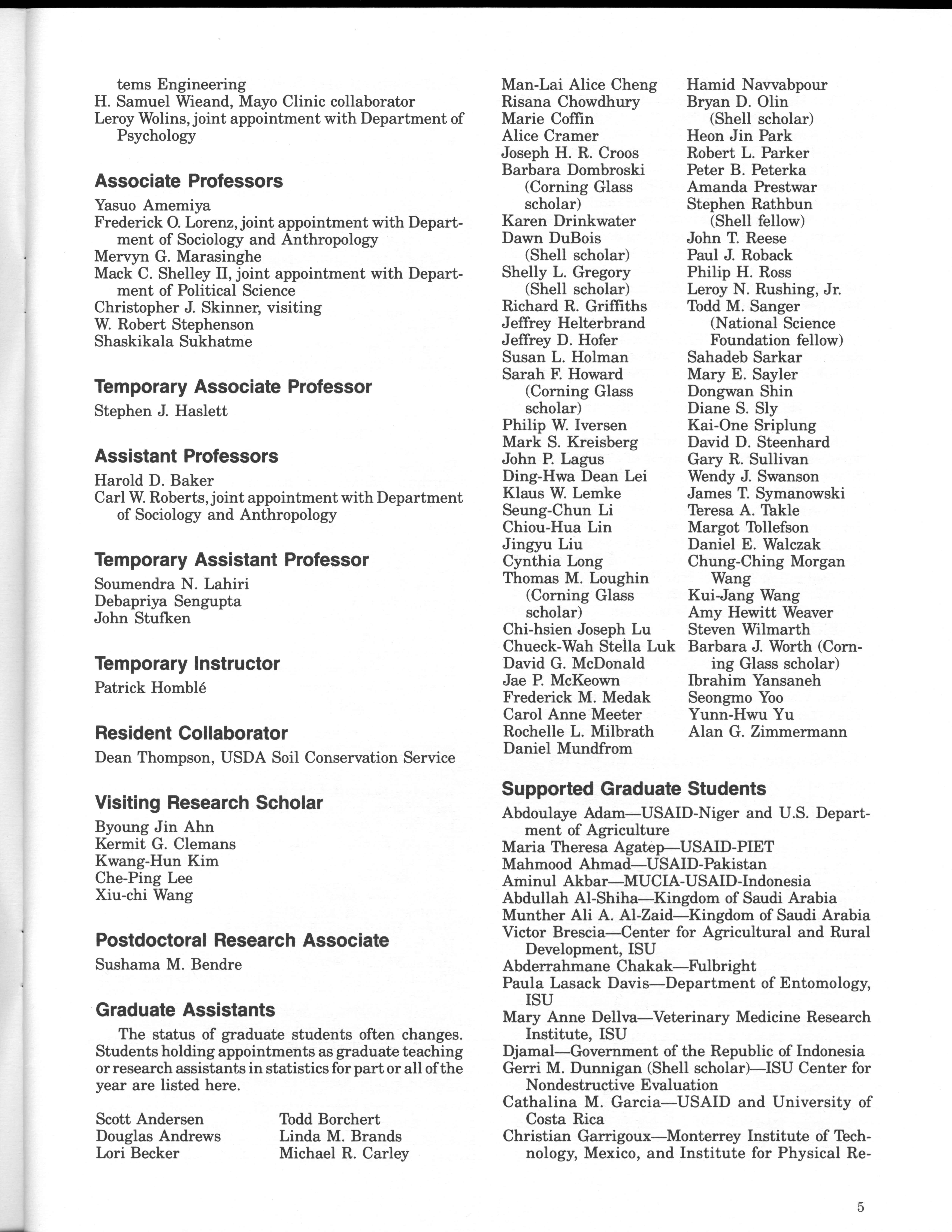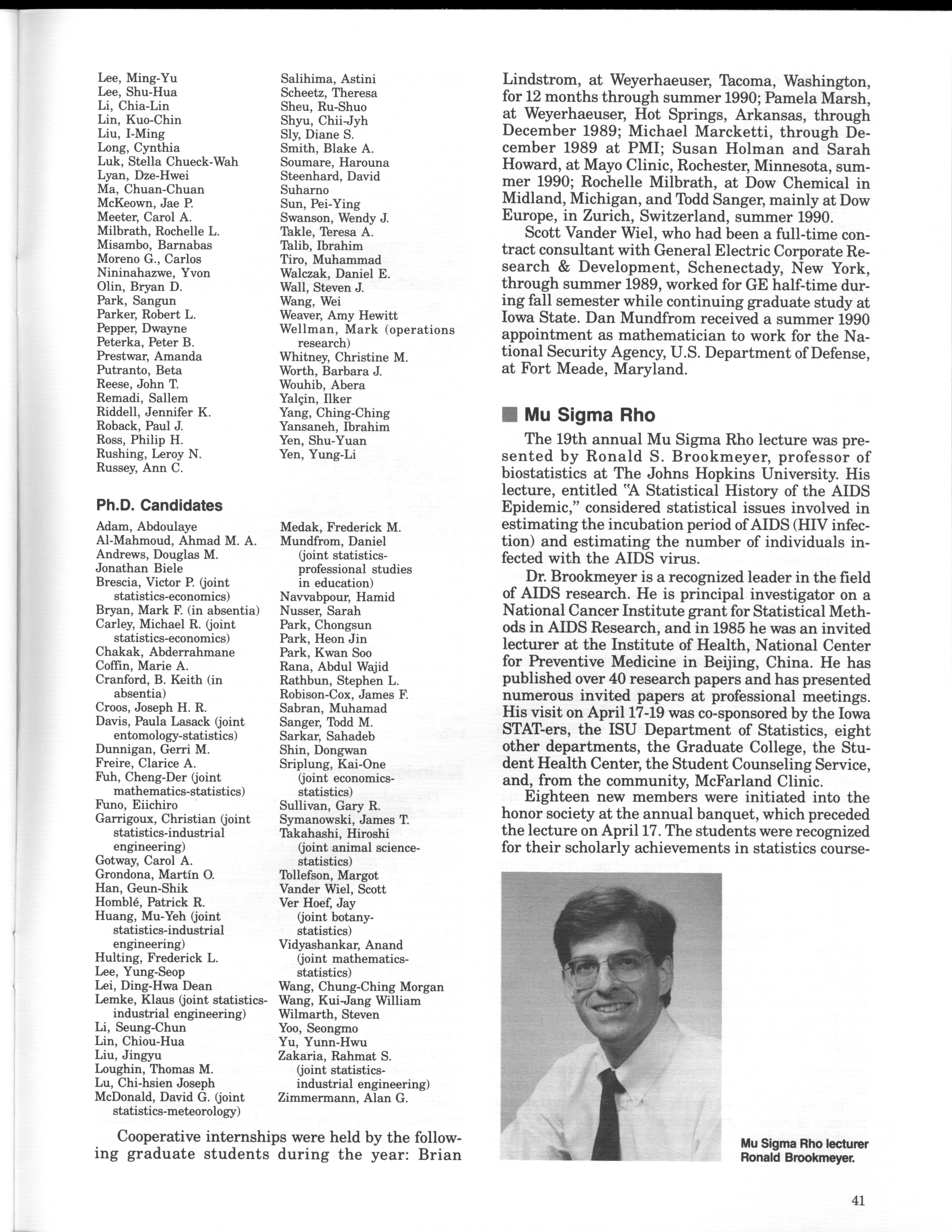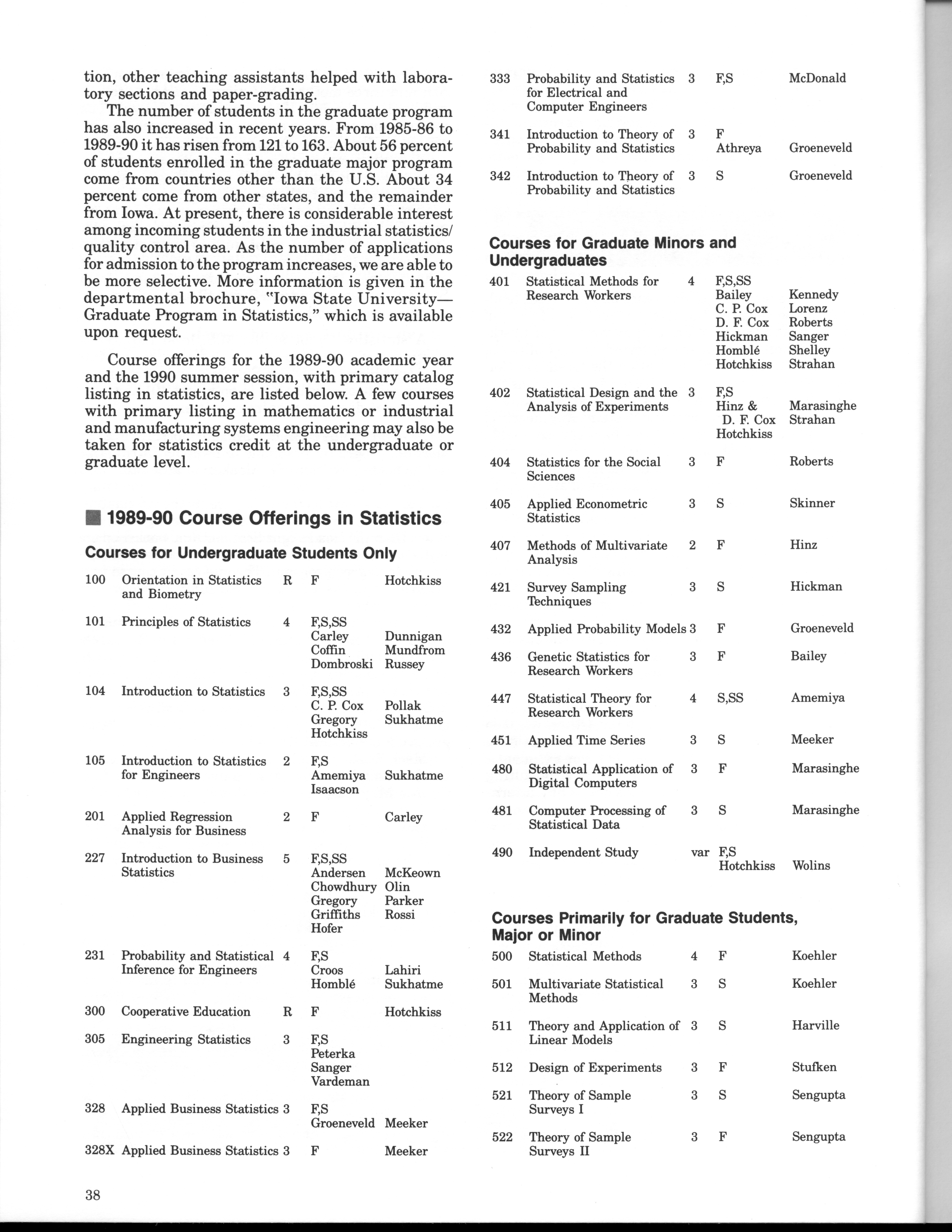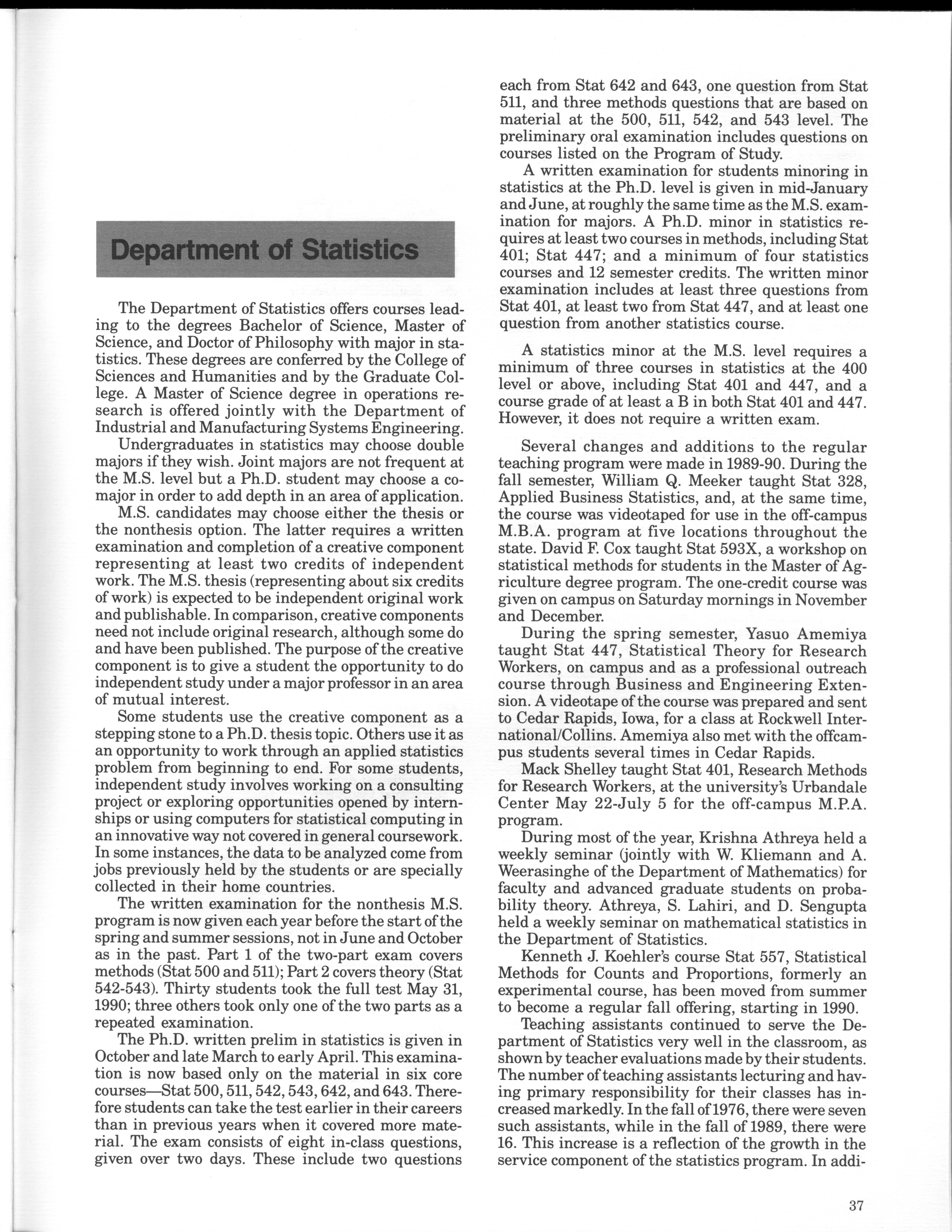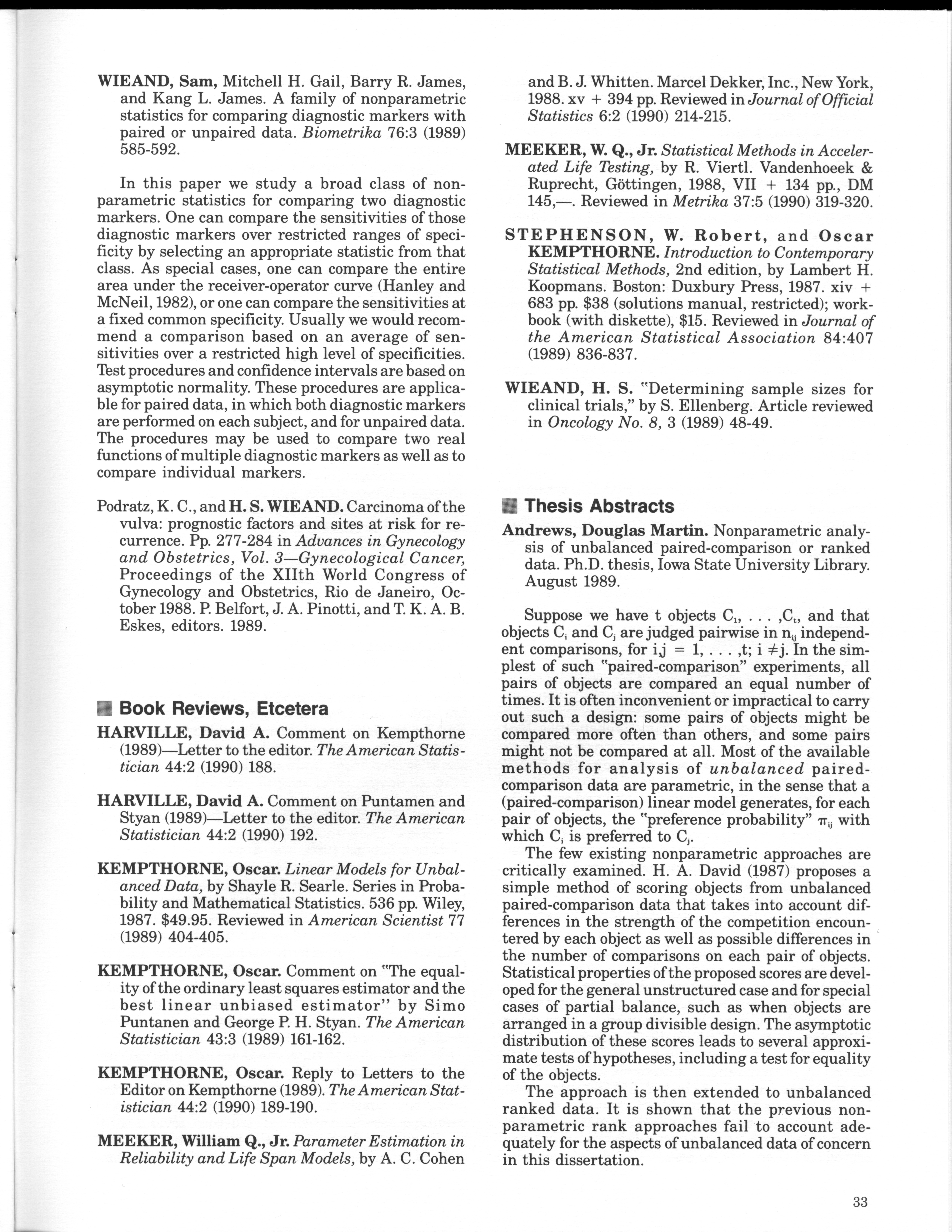 - "Statistical Laboratory Annual Report, July 1, 1989 to June 30, 1990", Iowa State University Statistical Laboratory Annual Reports, Iowa State University Library Digital Collections