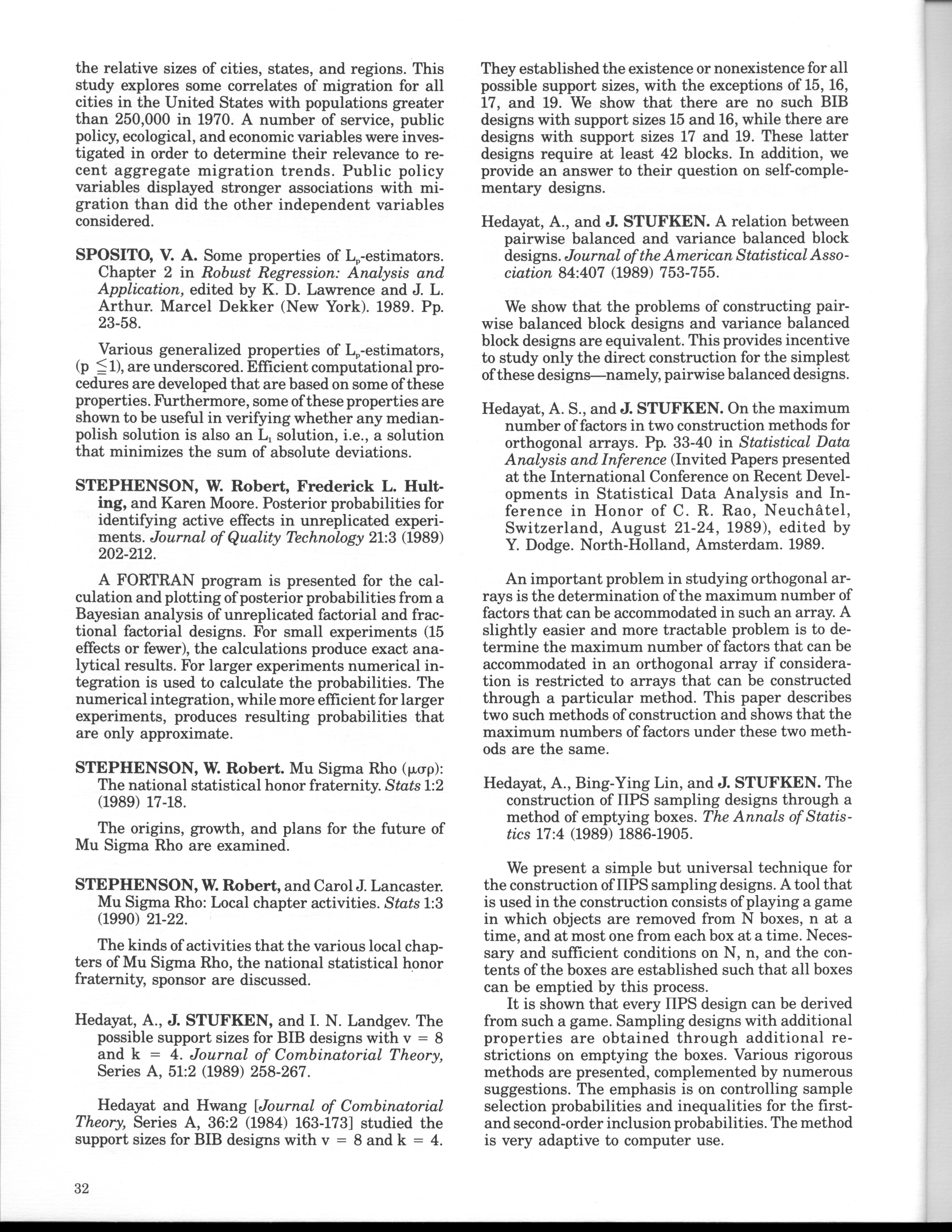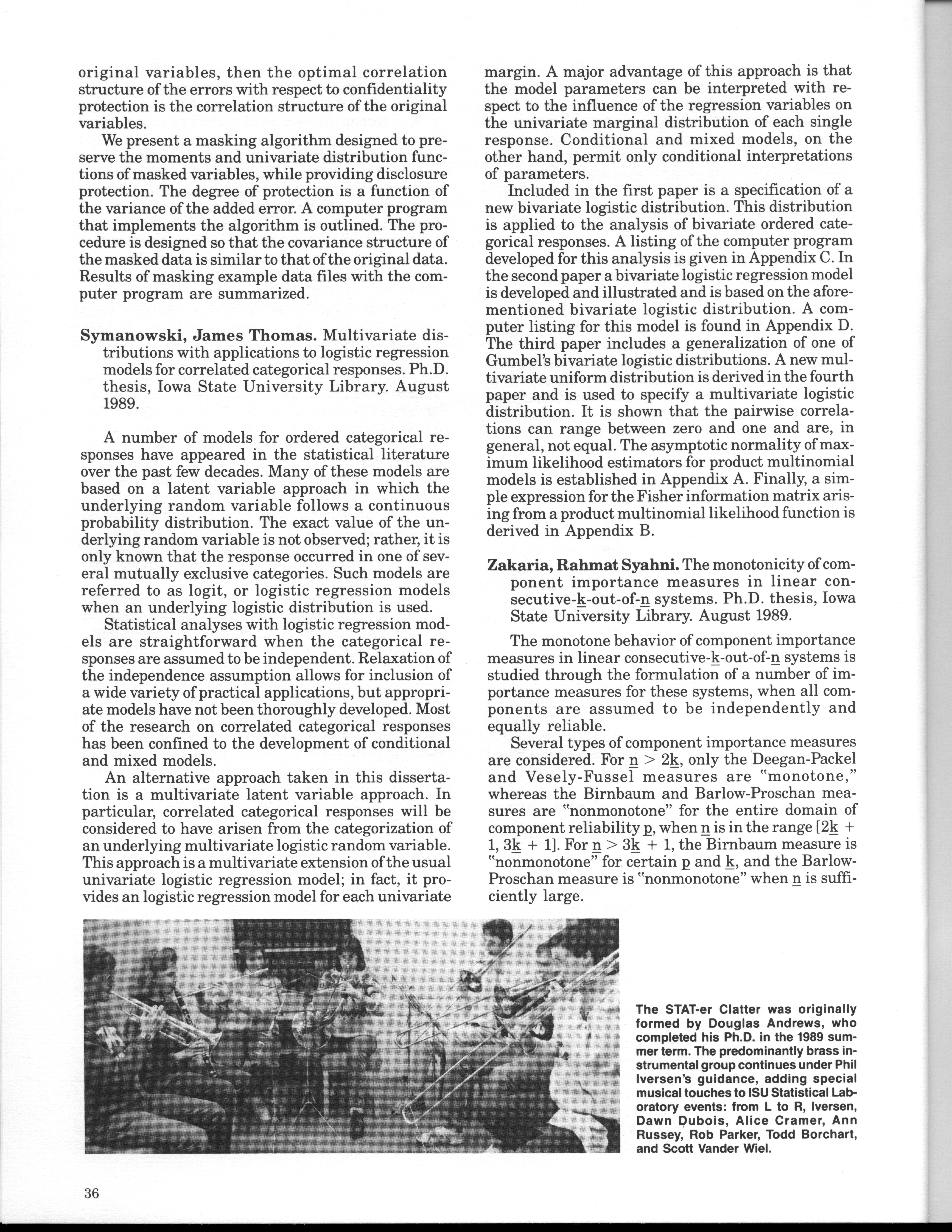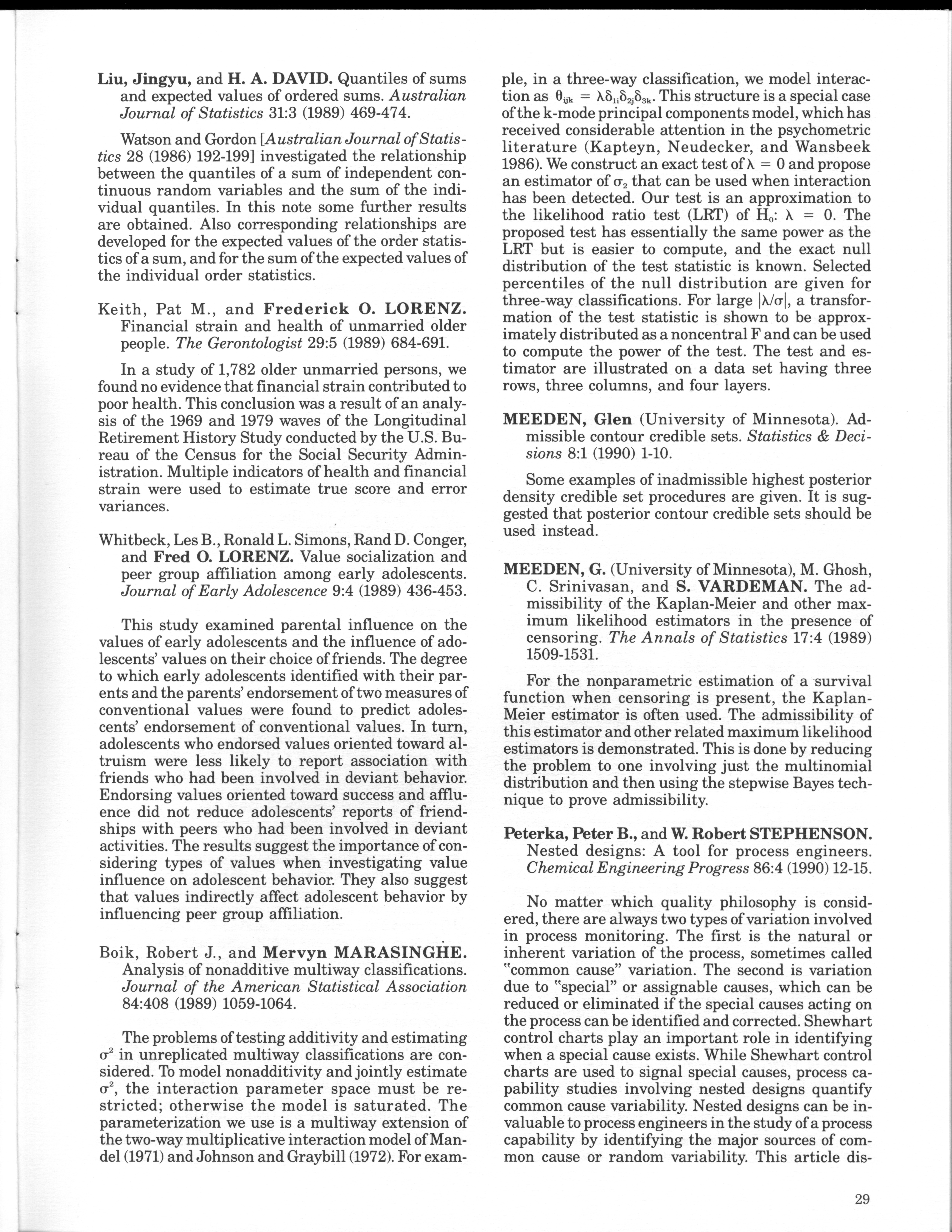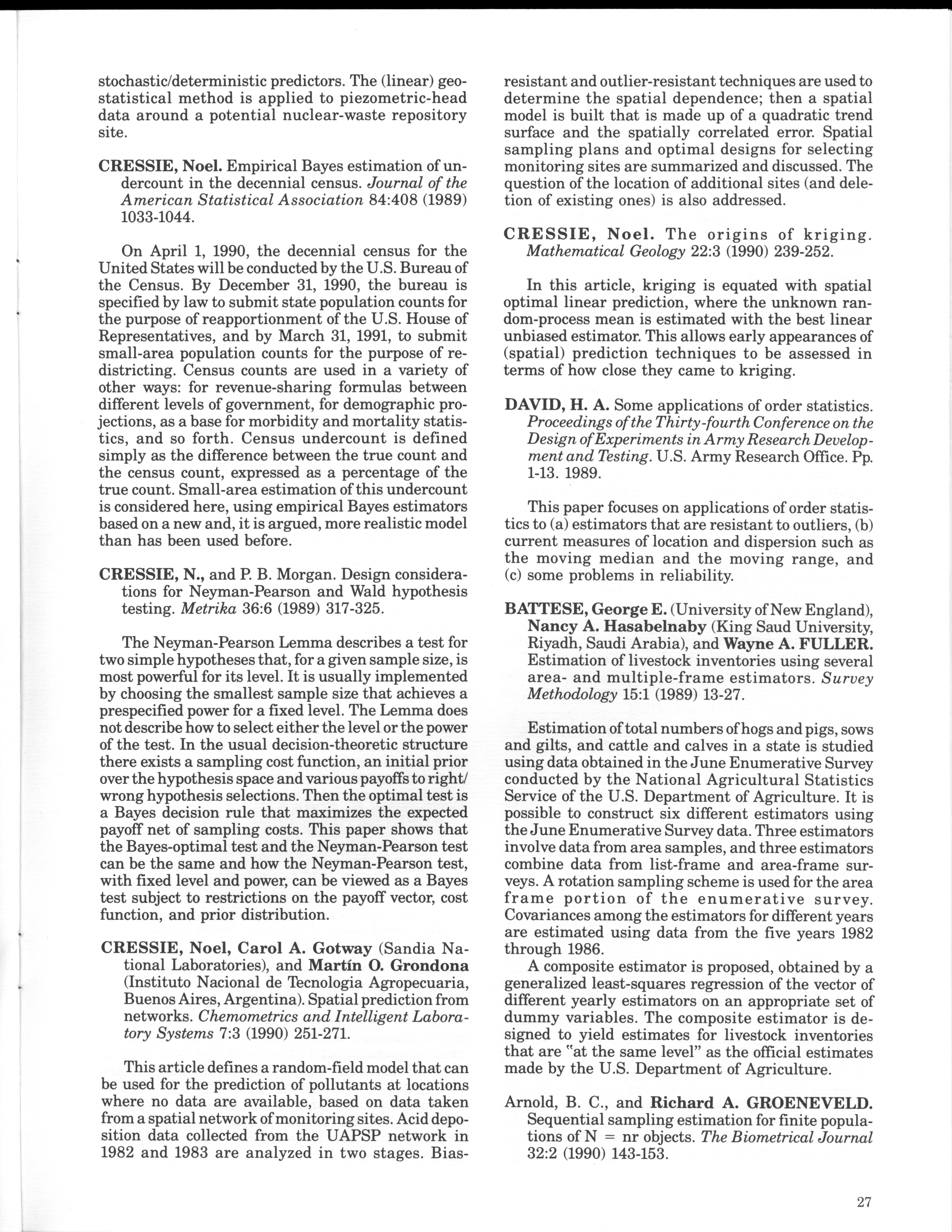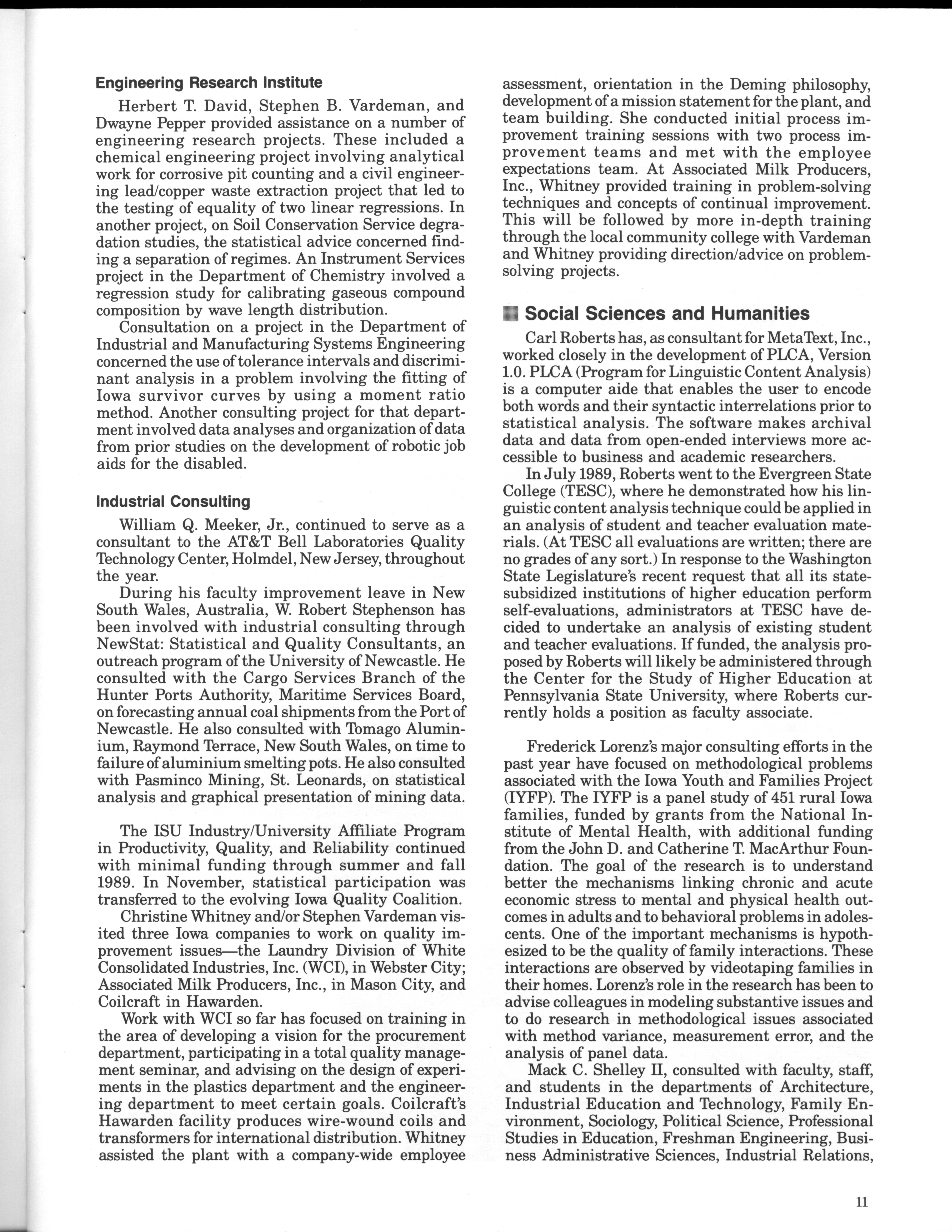 - "Statistical Laboratory Annual Report, July 1, 1989 to June 30, 1990", Iowa State University Statistical Laboratory Annual Reports, Iowa State University Library Digital Collections
