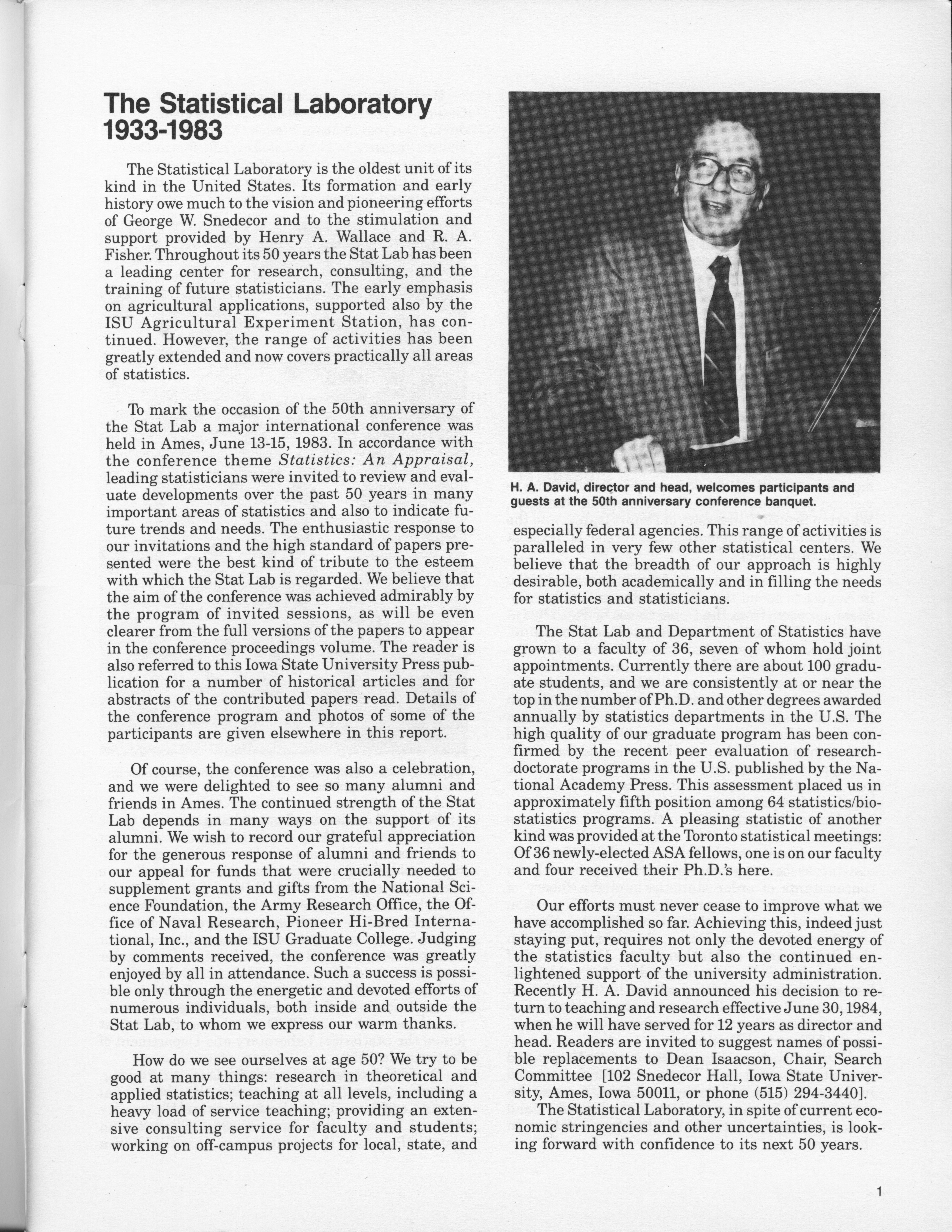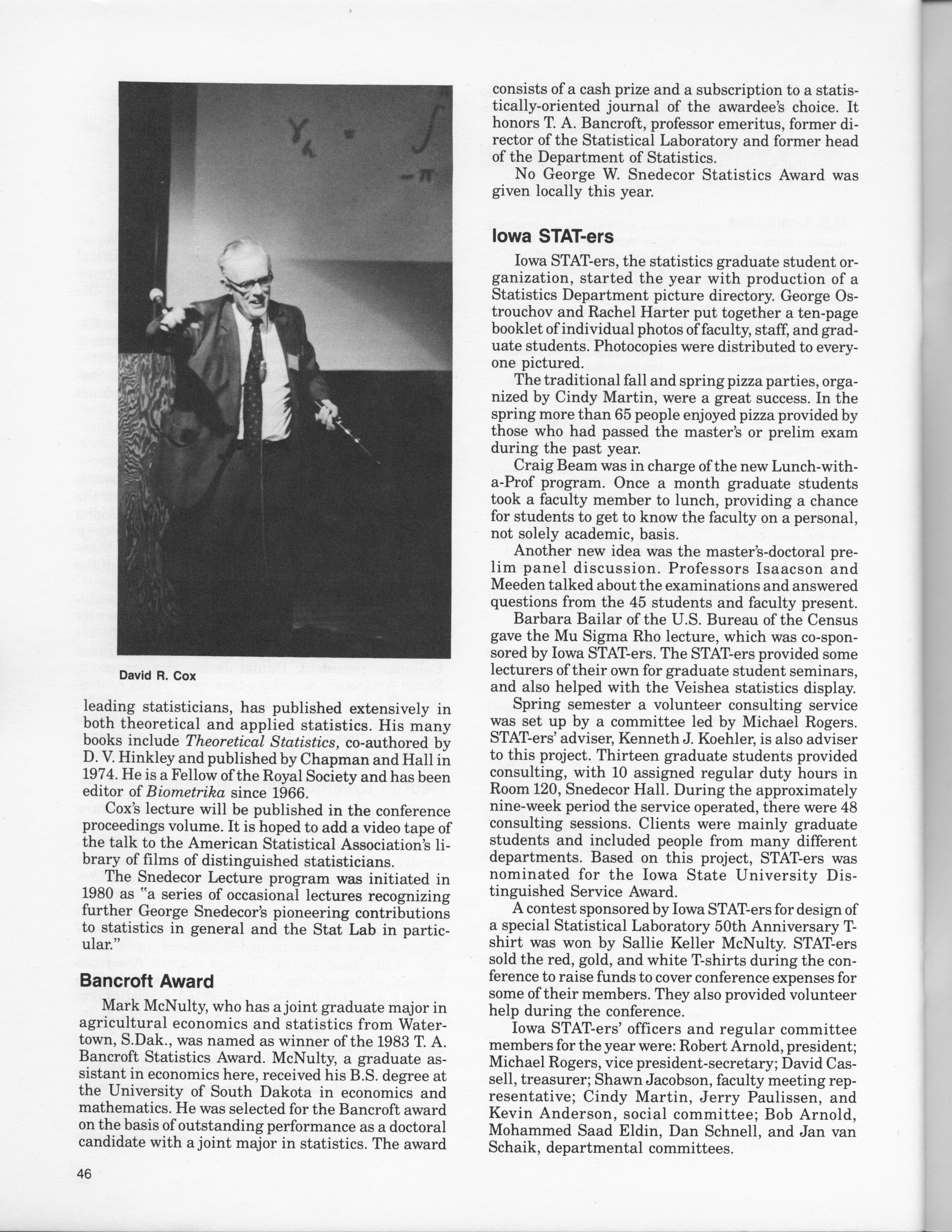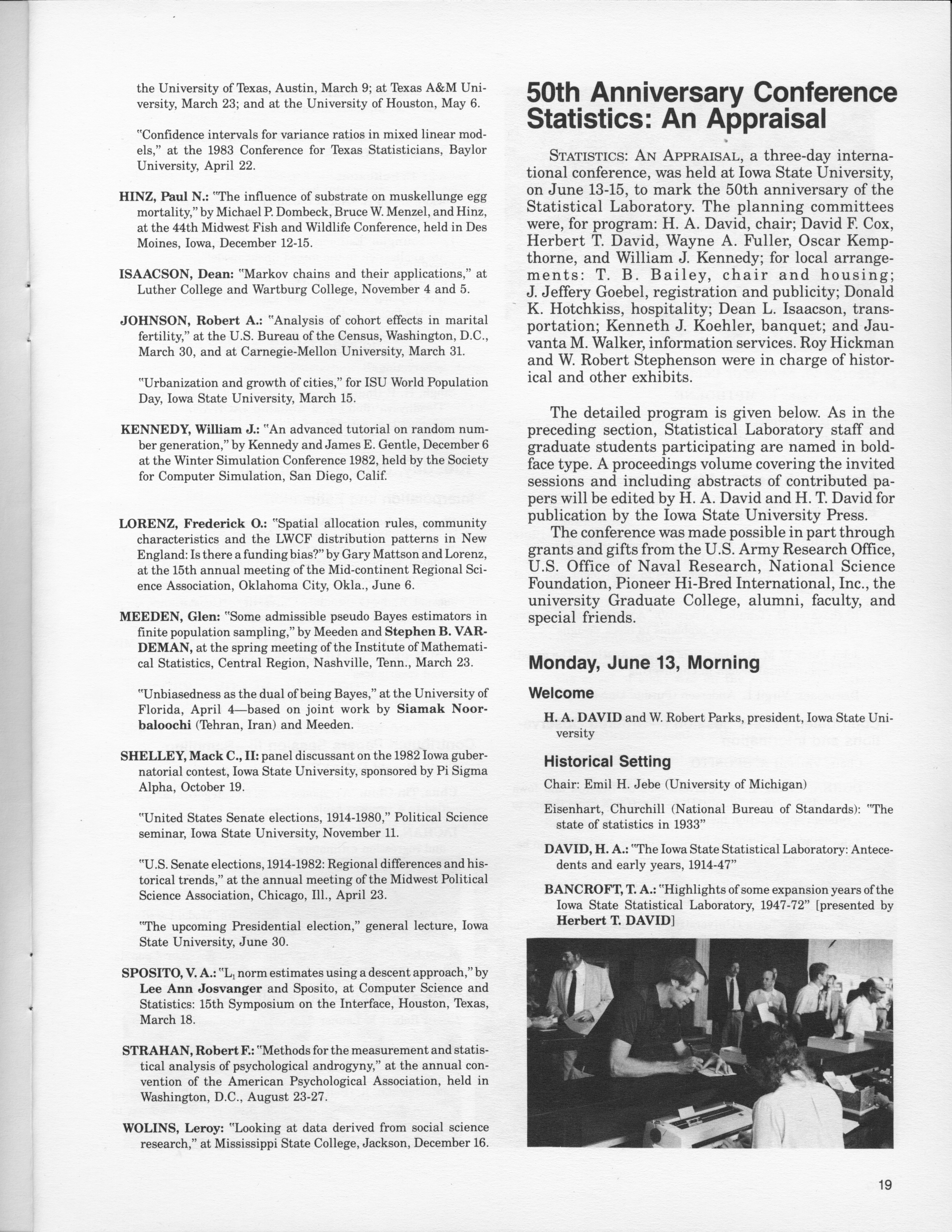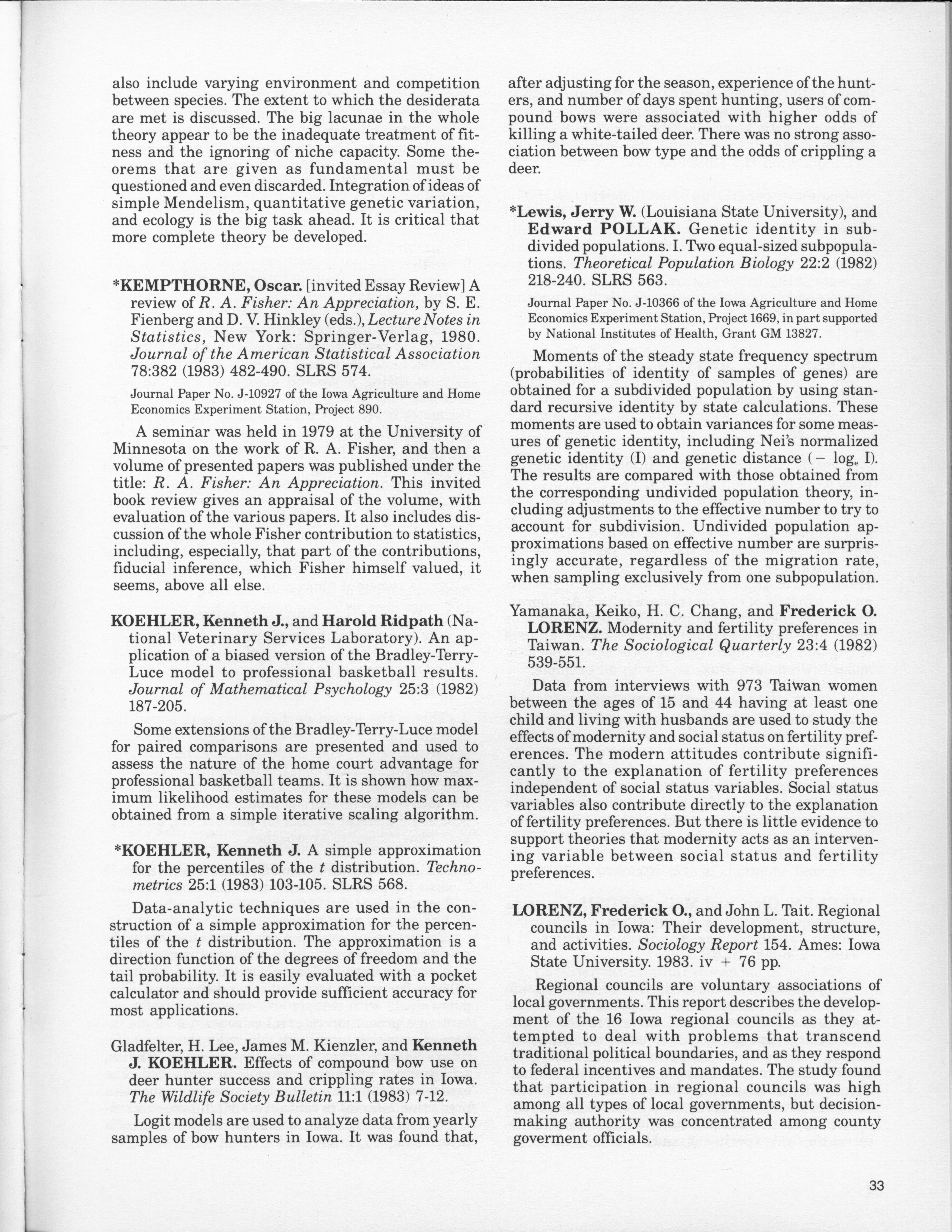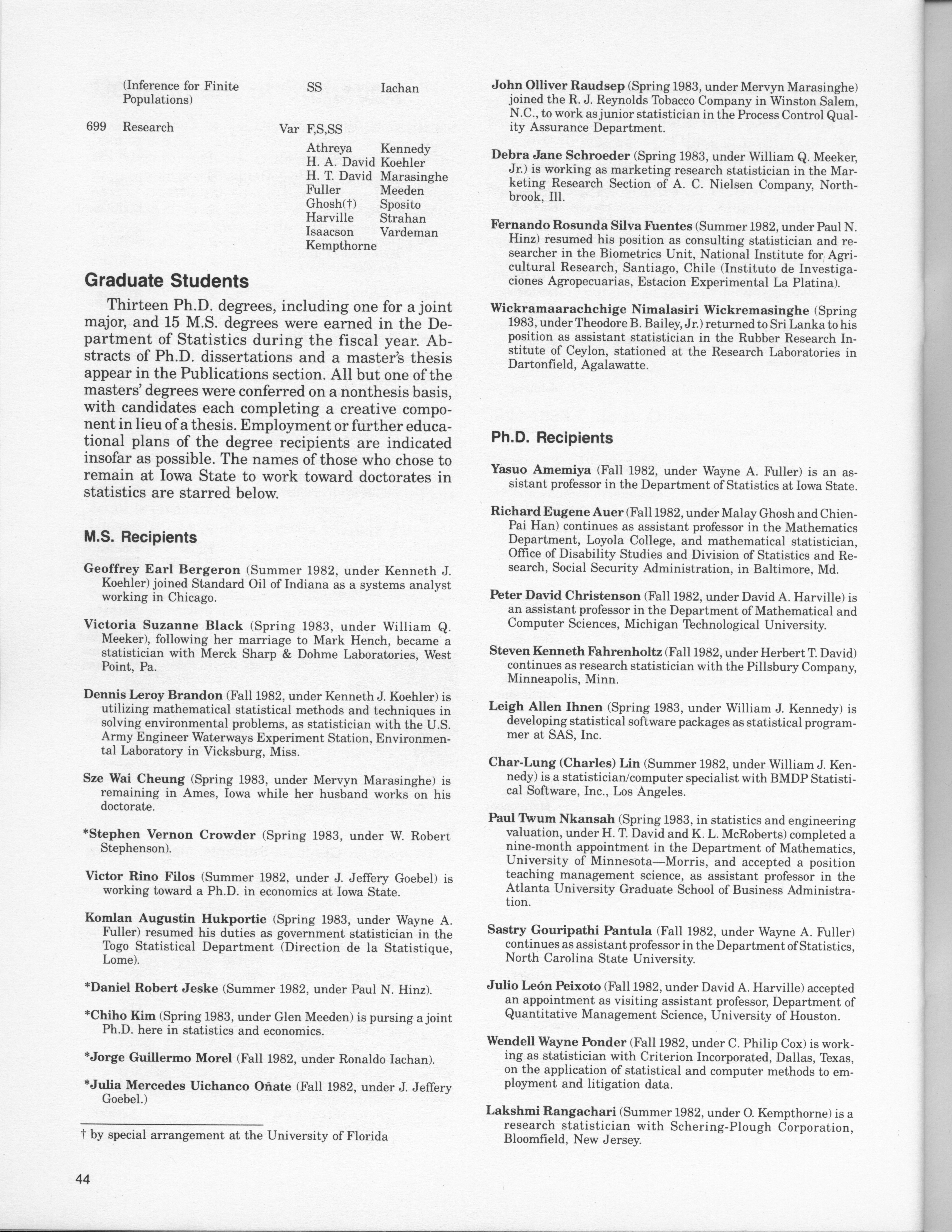 - "Statistical Laboratory Annual Report, July 1, 1982 to June 30, 1983", Iowa State University Statistical Laboratory Annual Reports, Iowa State University Library Digital Collections