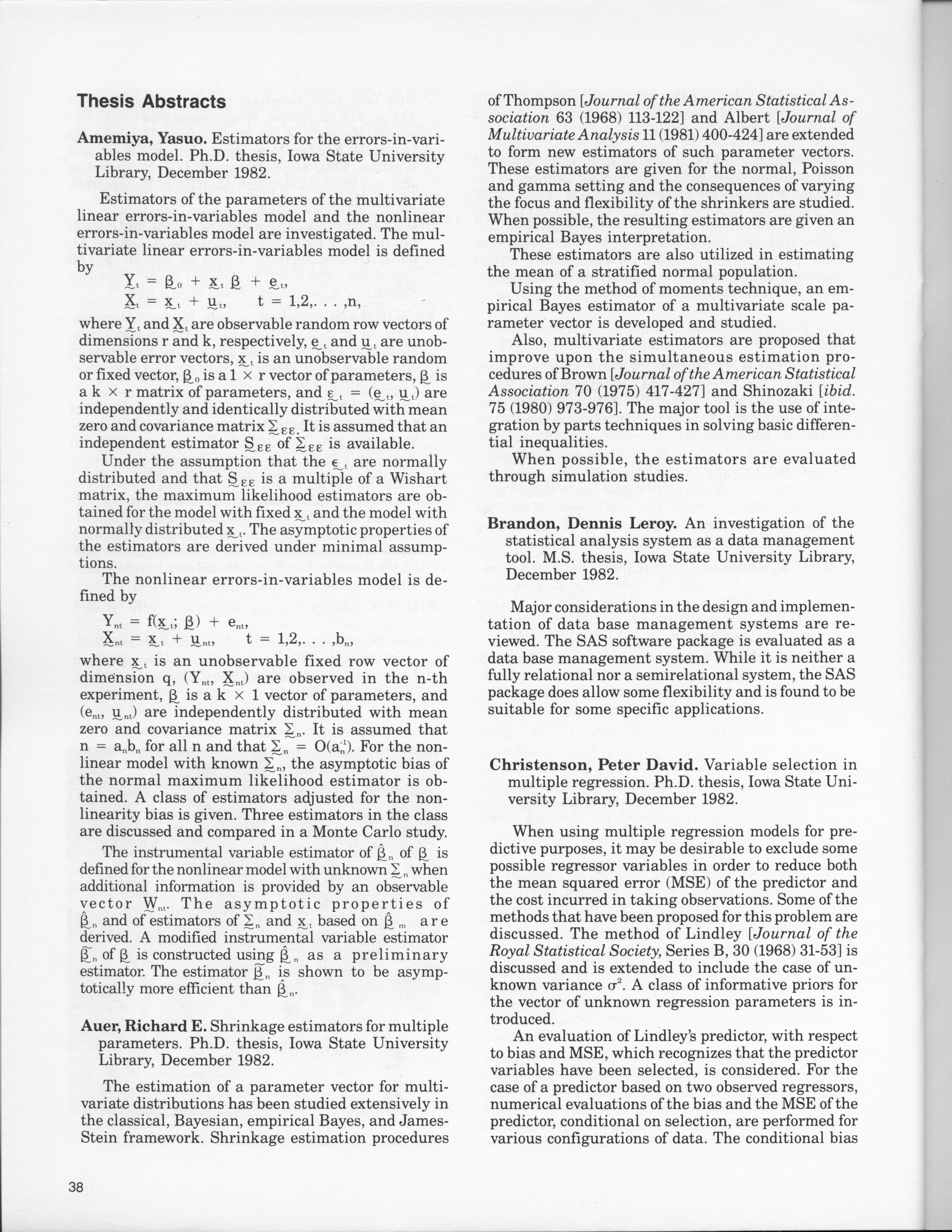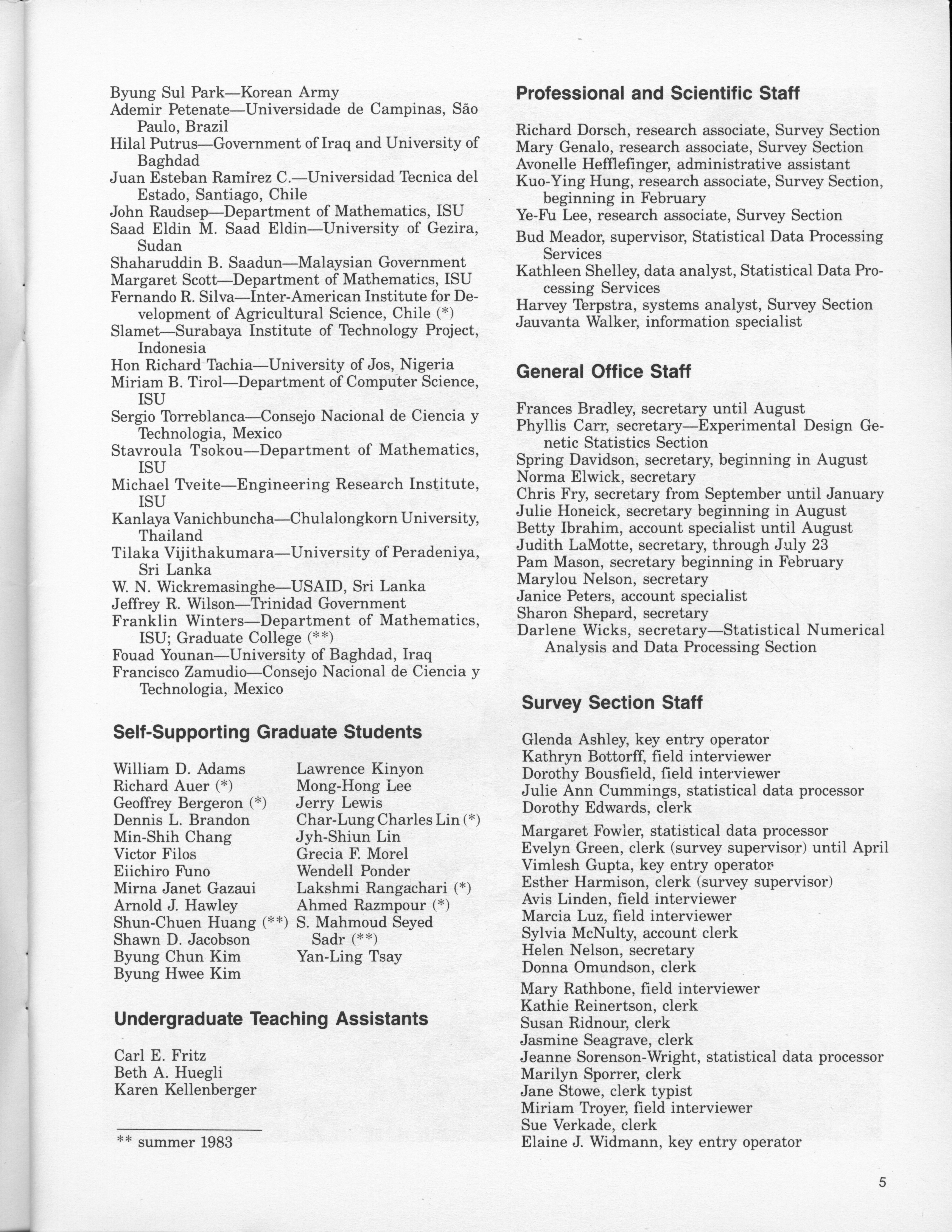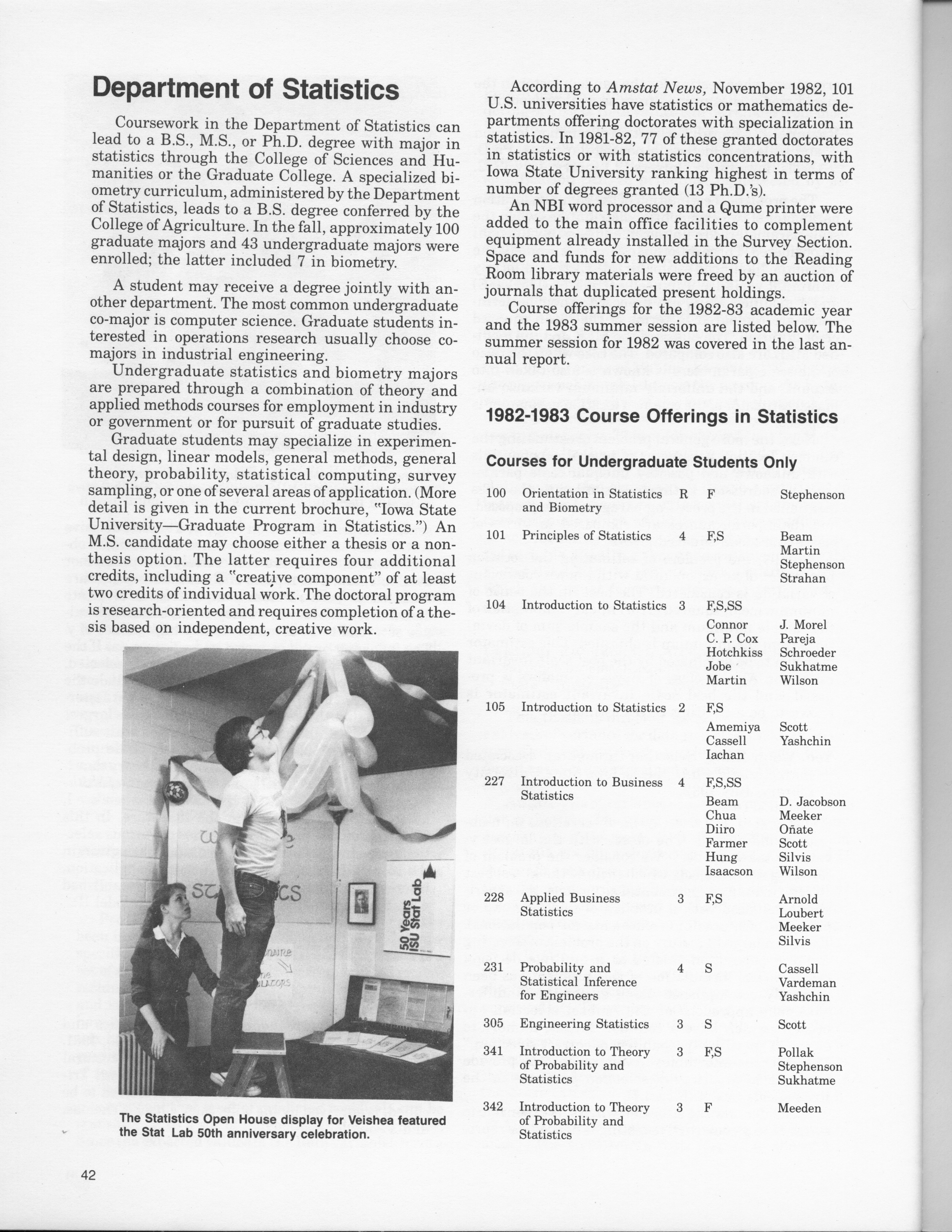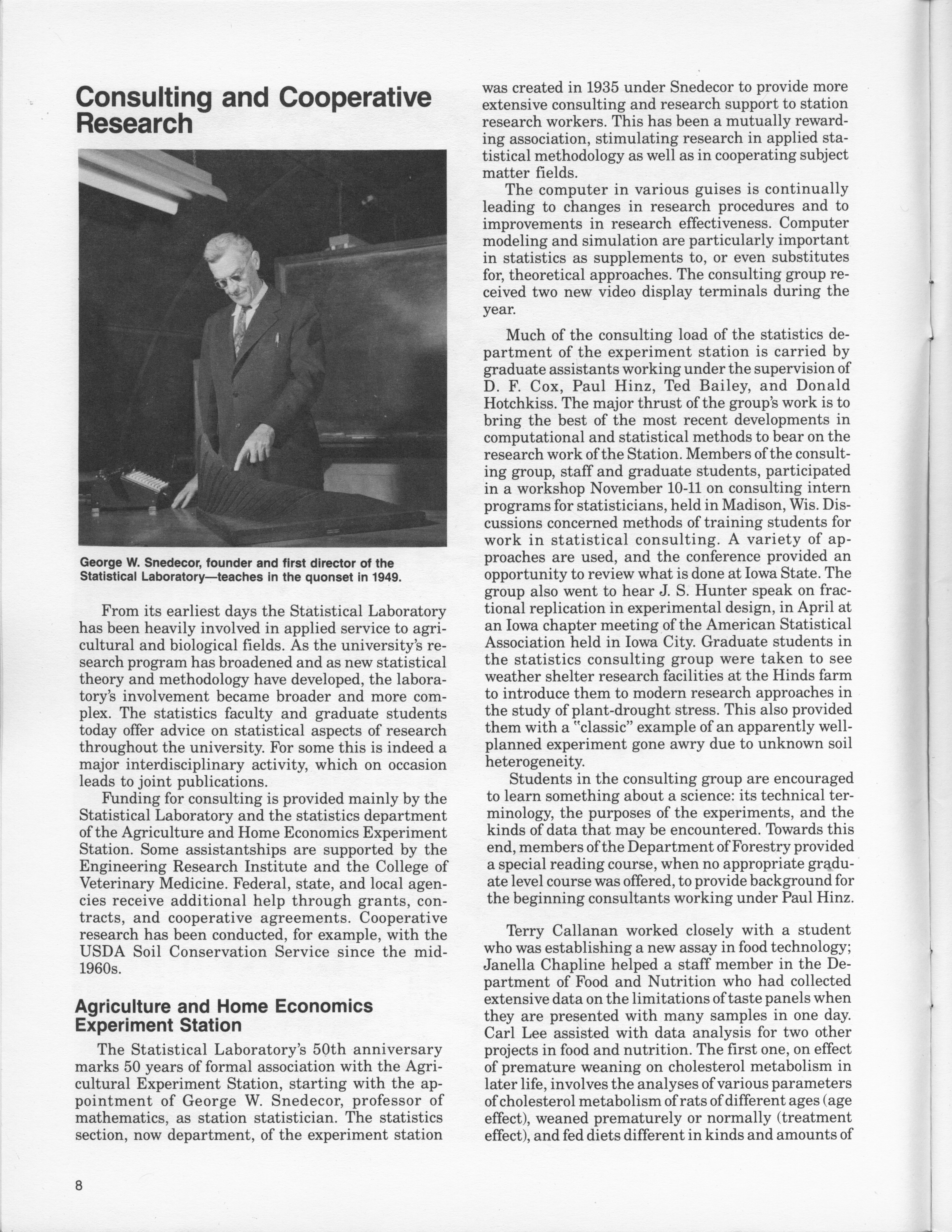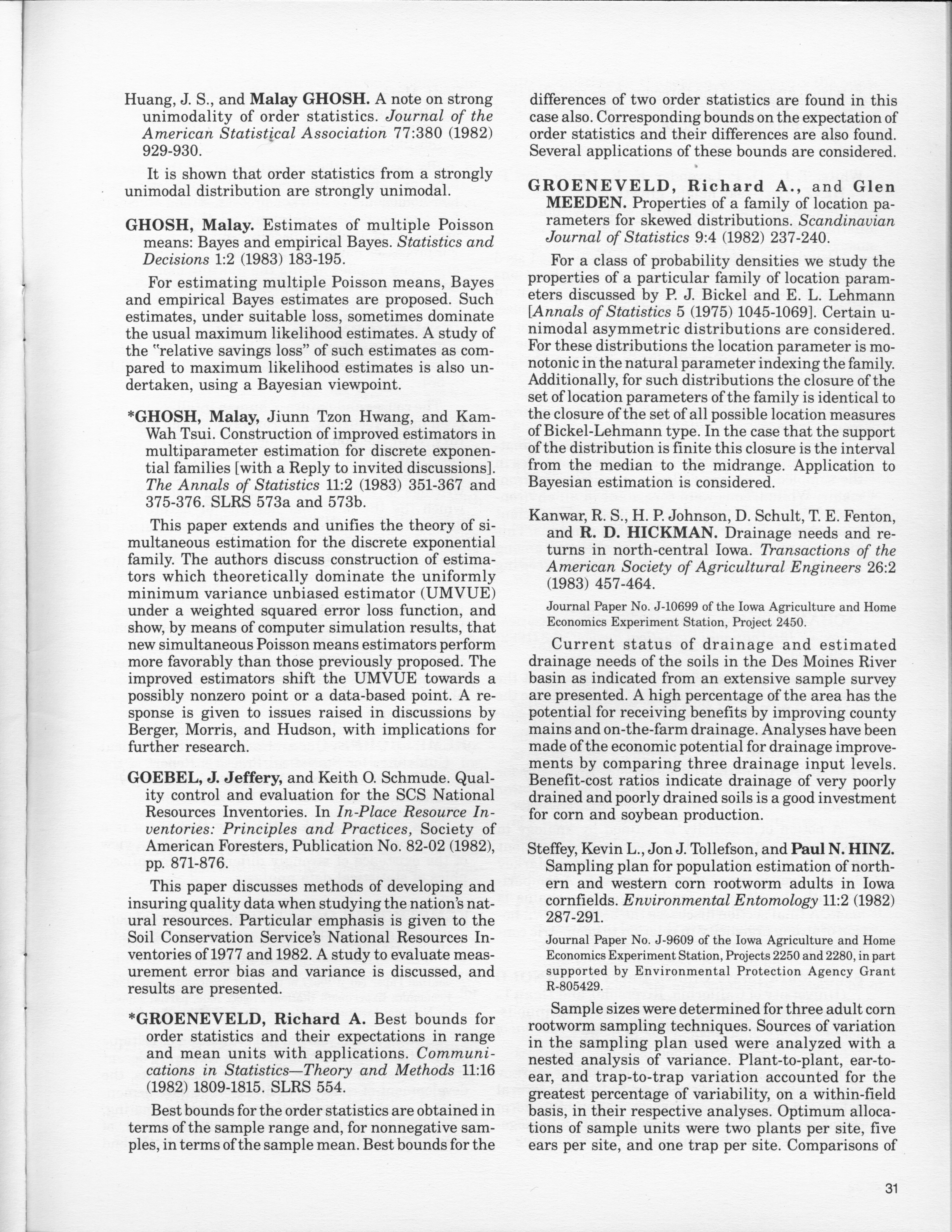 - "Statistical Laboratory Annual Report, July 1, 1982 to June 30, 1983", Iowa State University Statistical Laboratory Annual Reports, Iowa State University Library Digital Collections