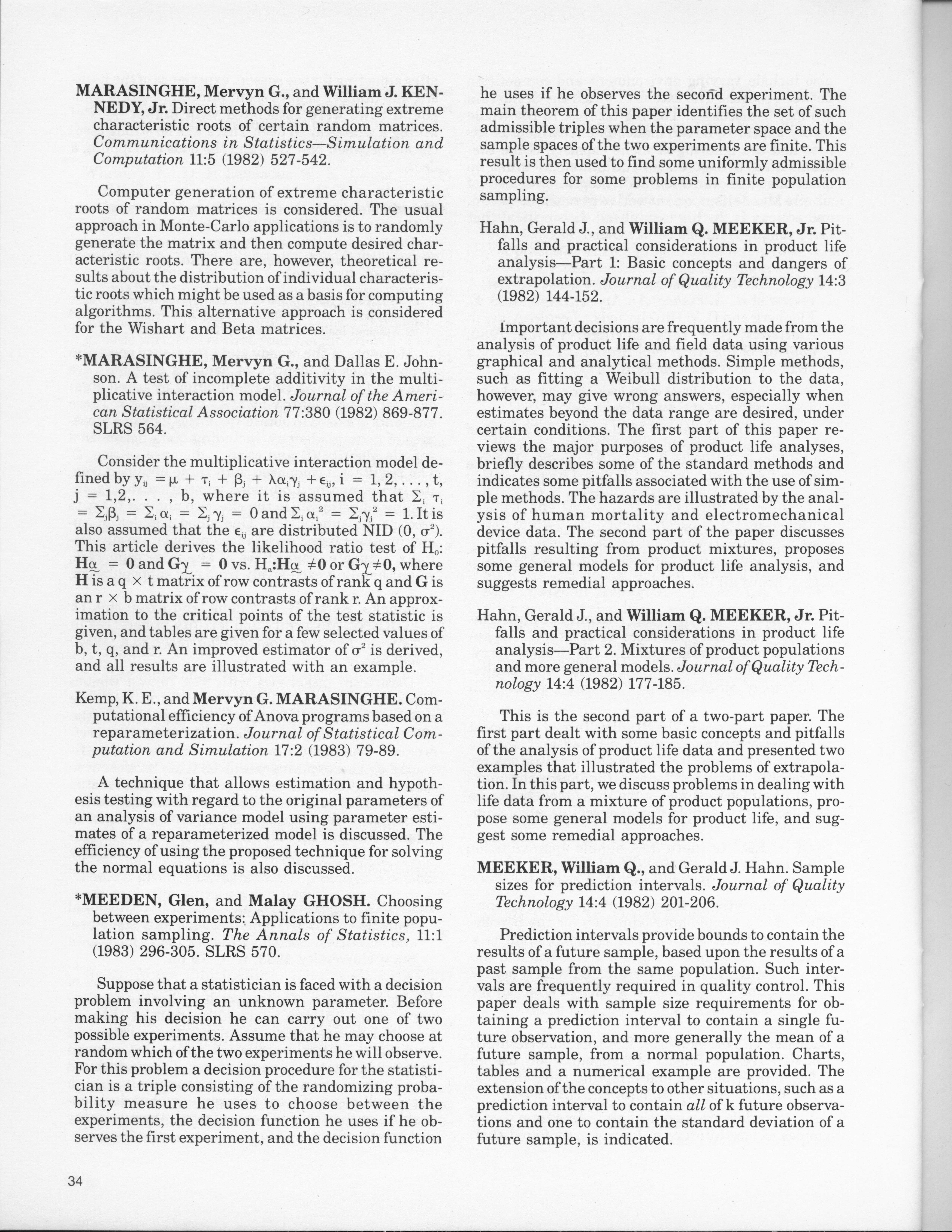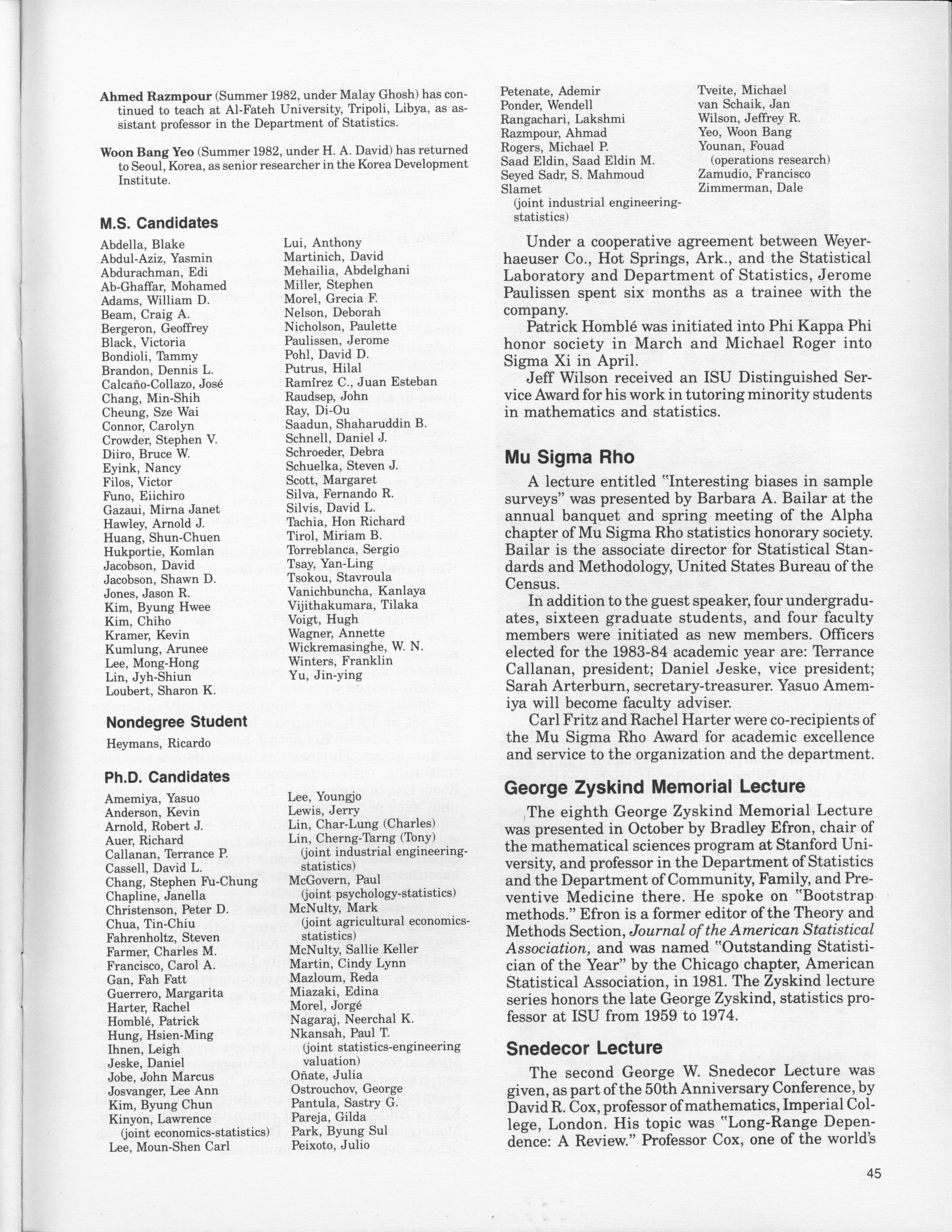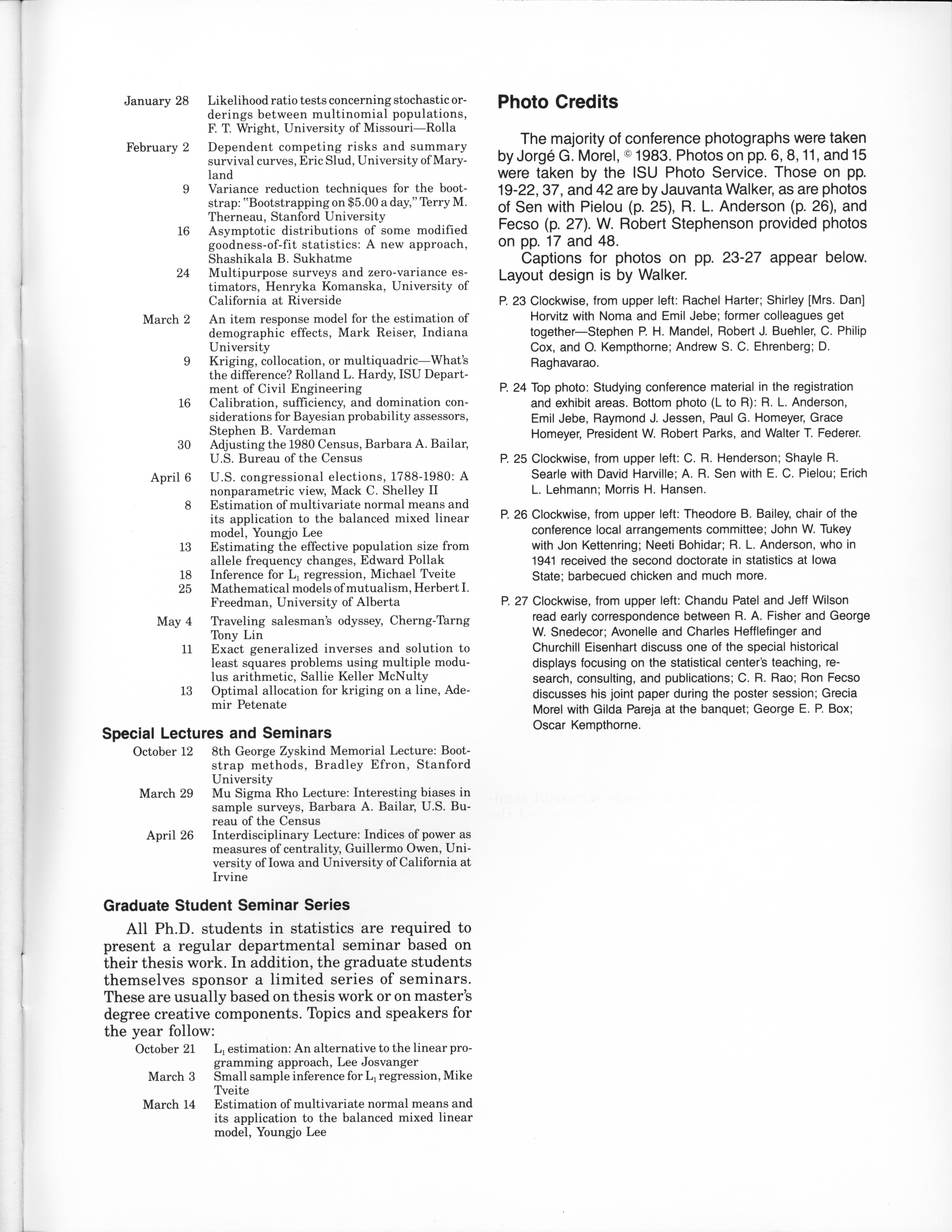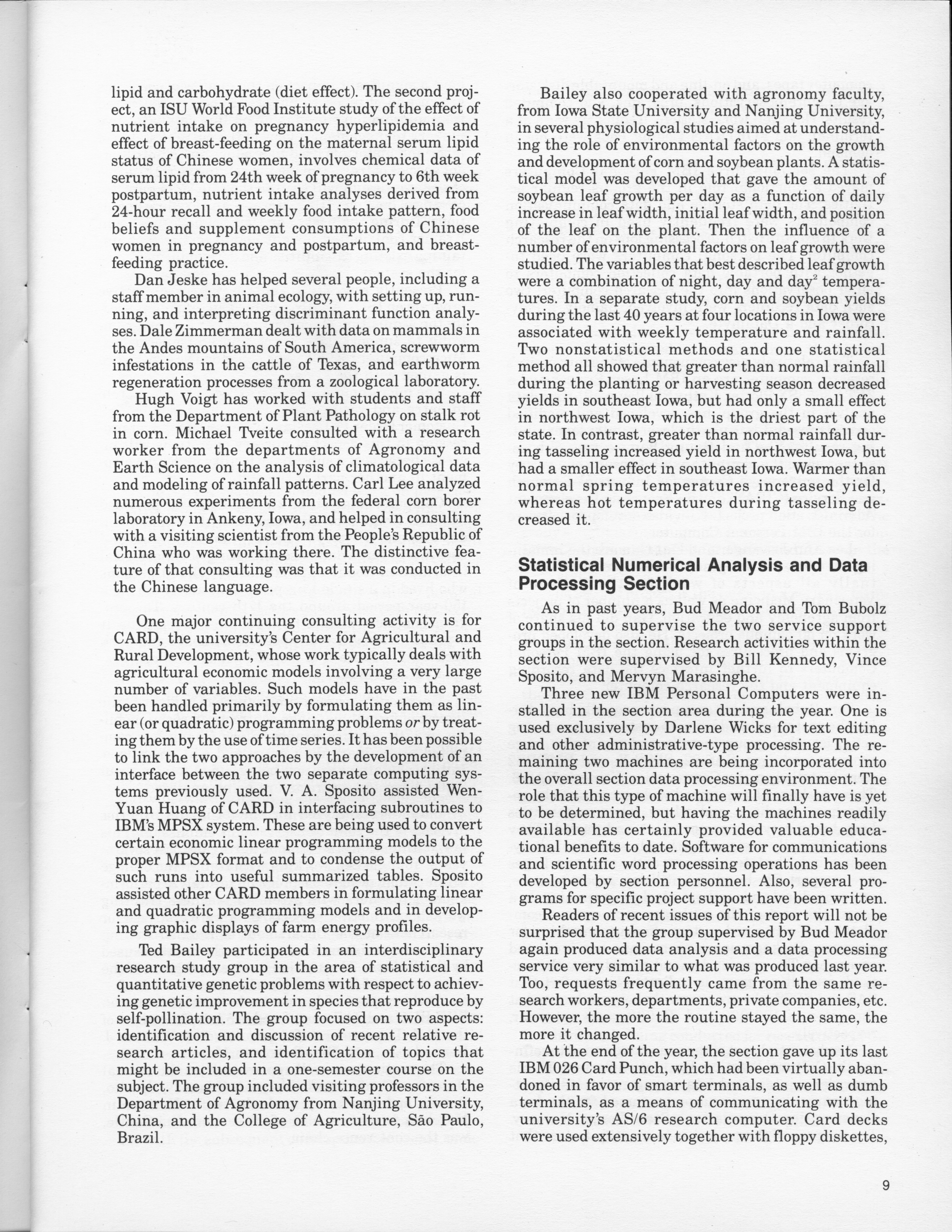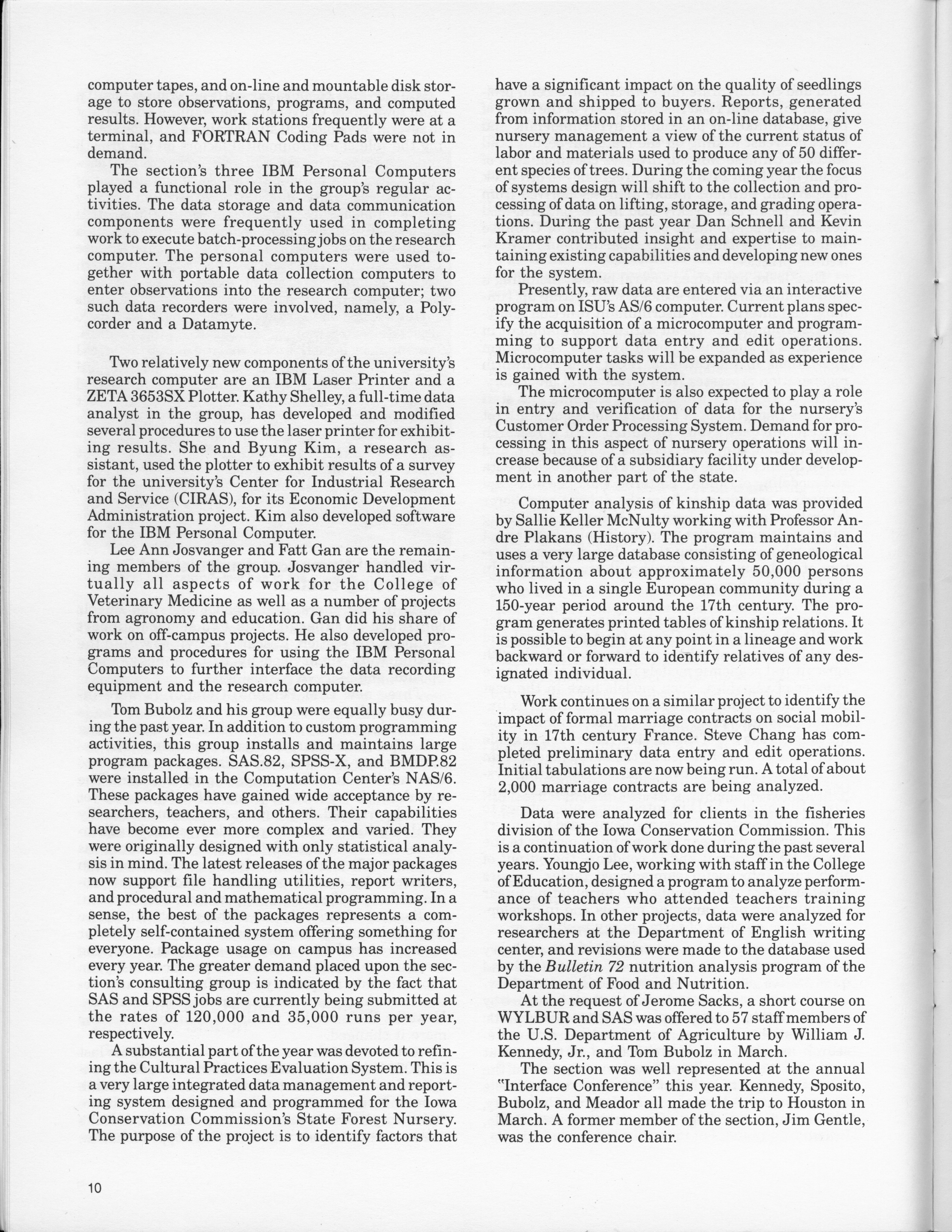 - "Statistical Laboratory Annual Report, July 1, 1982 to June 30, 1983", Iowa State University Statistical Laboratory Annual Reports, Iowa State University Library Digital Collections