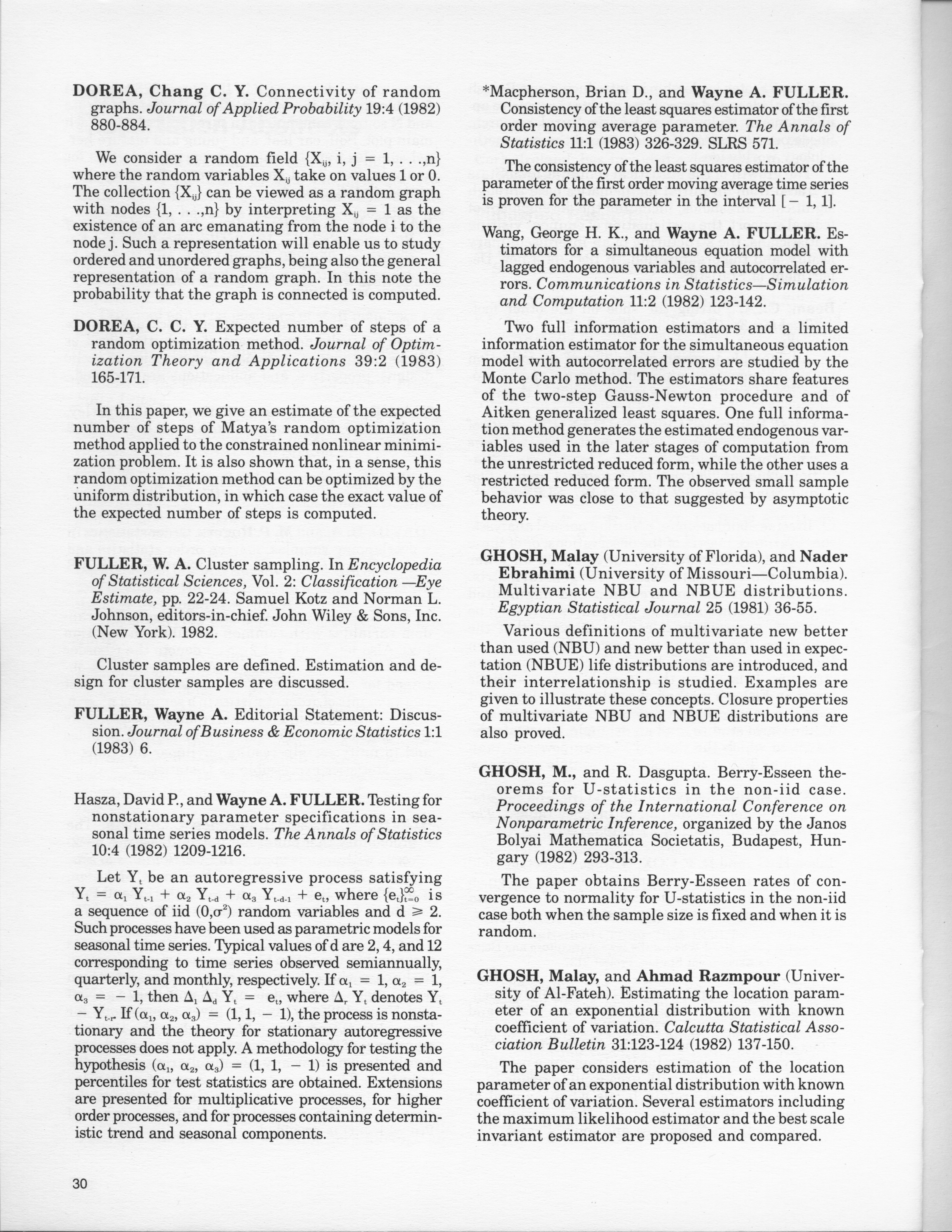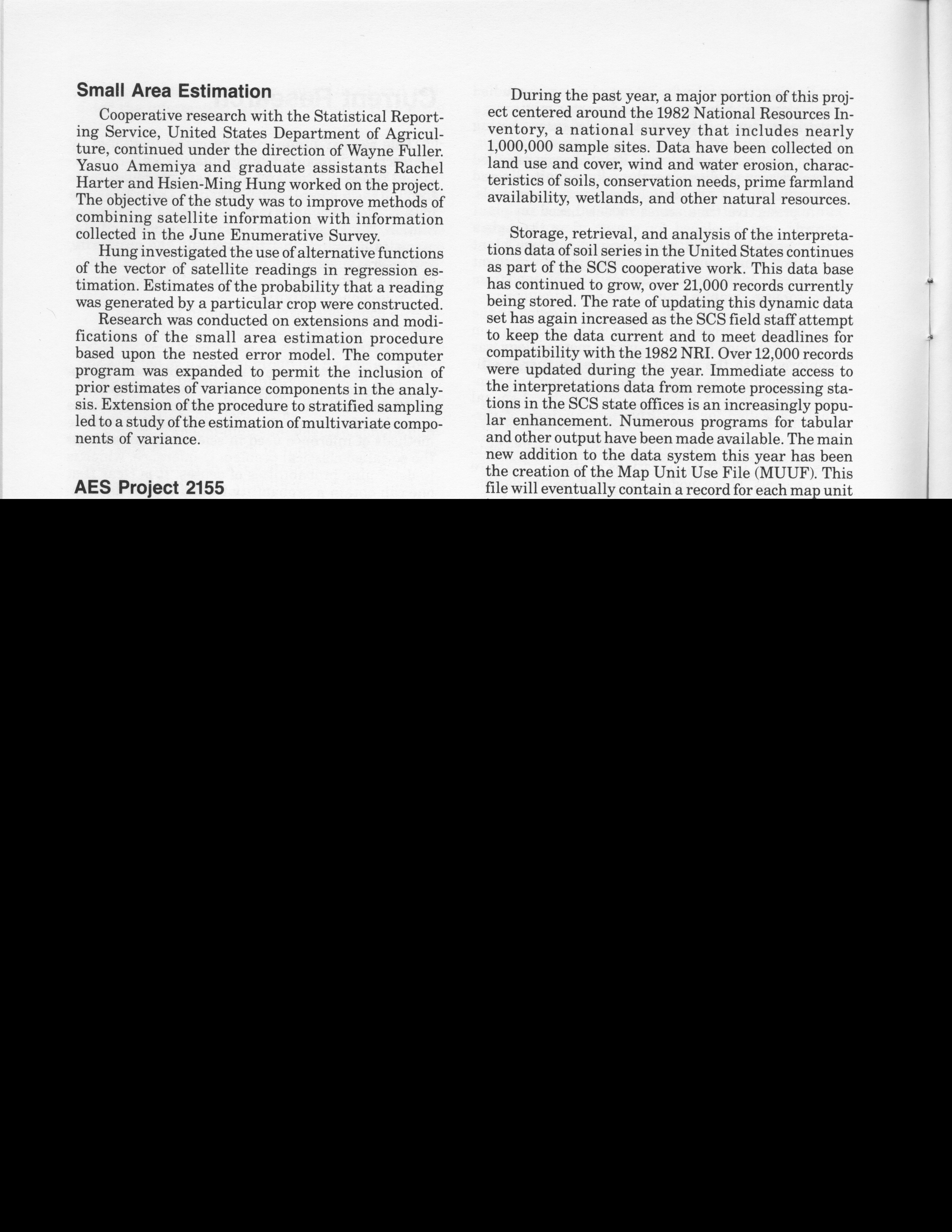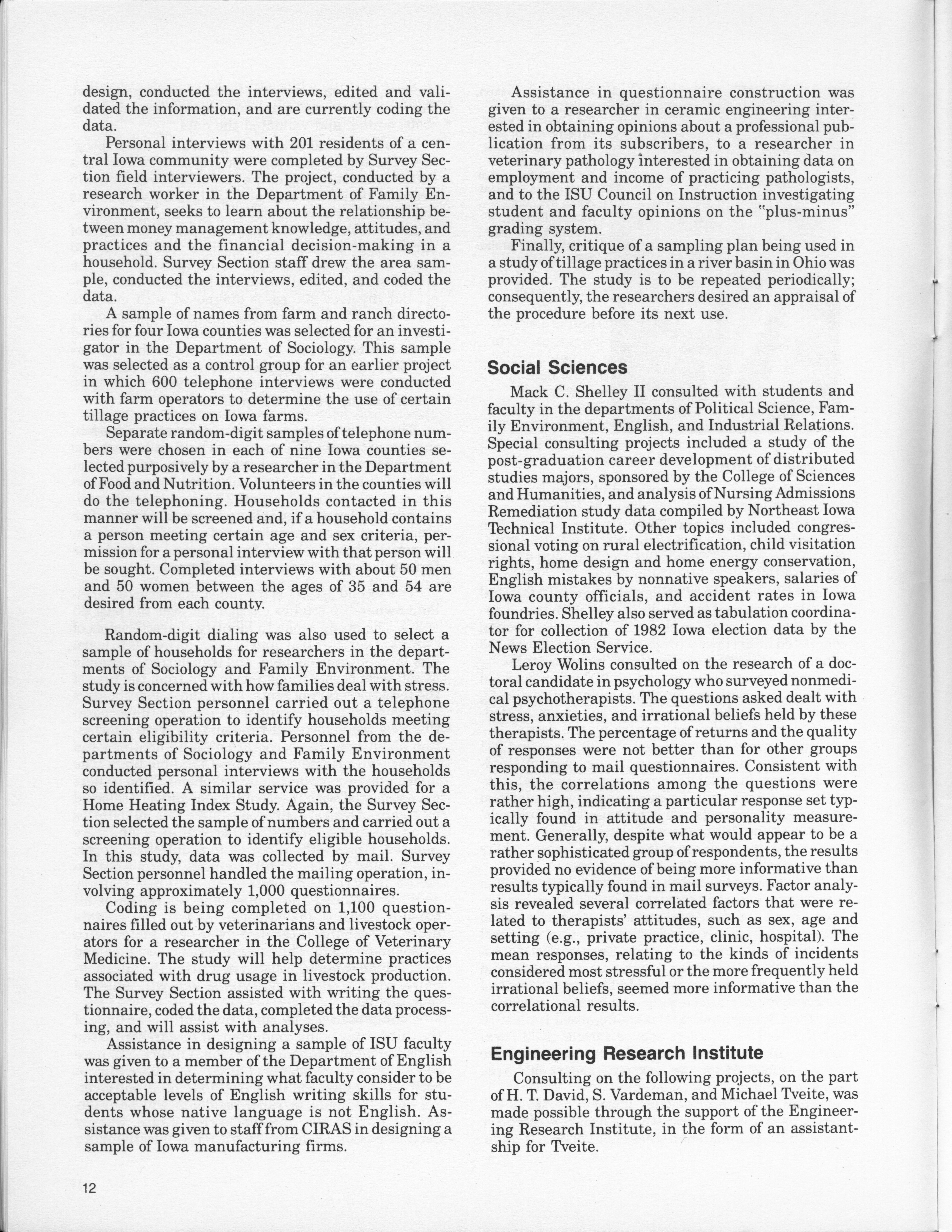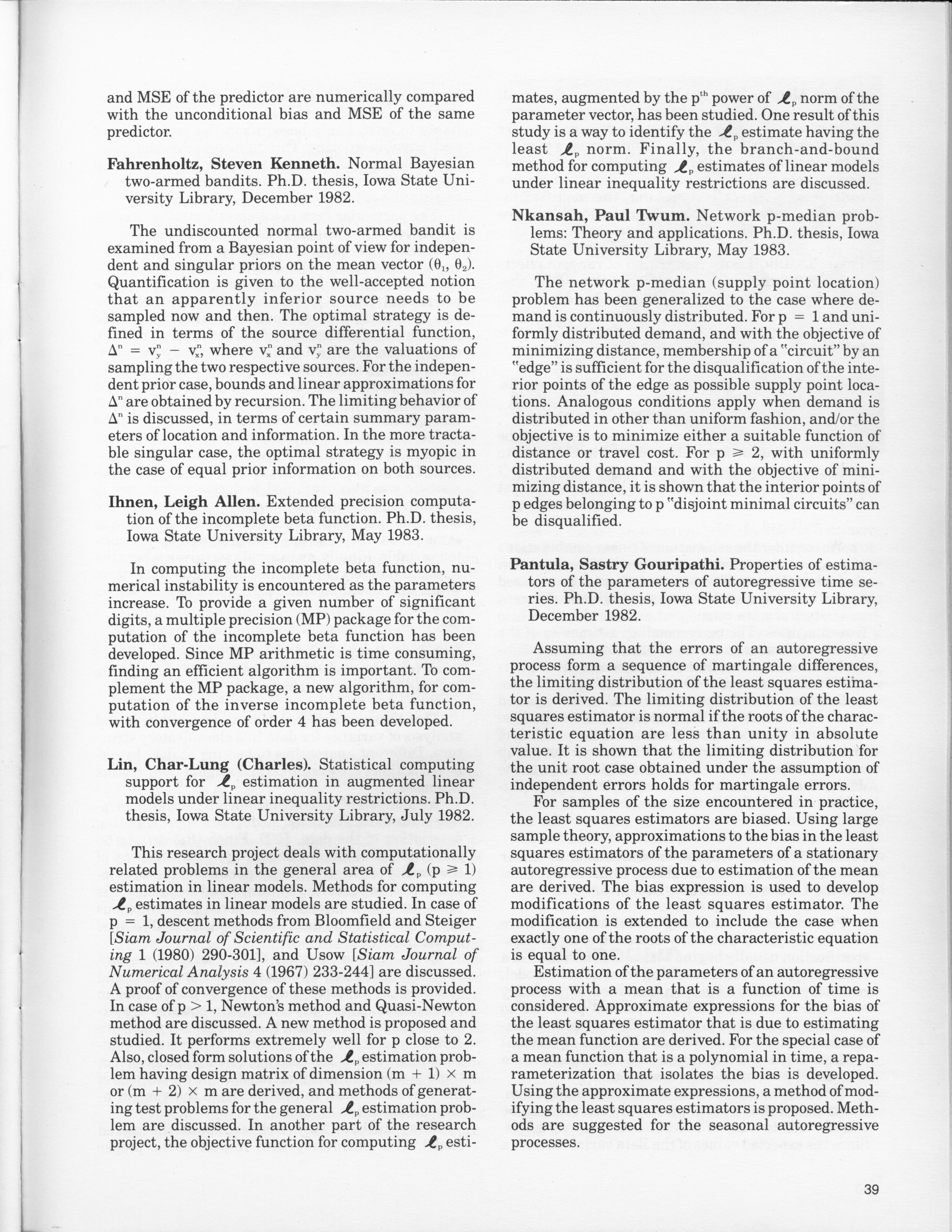 - "Statistical Laboratory Annual Report, July 1, 1982 to June 30, 1983", Iowa State University Statistical Laboratory Annual Reports, Iowa State University Library Digital Collections