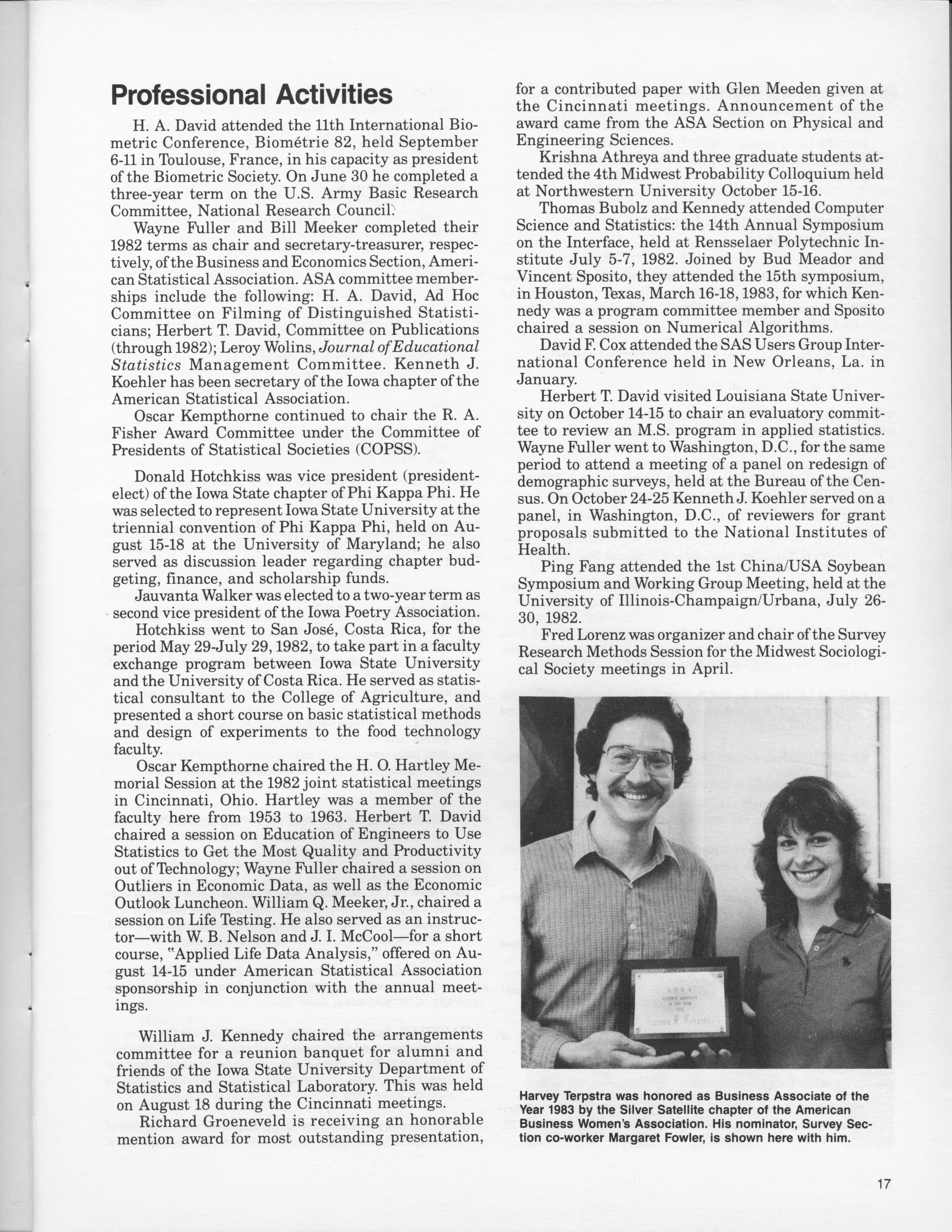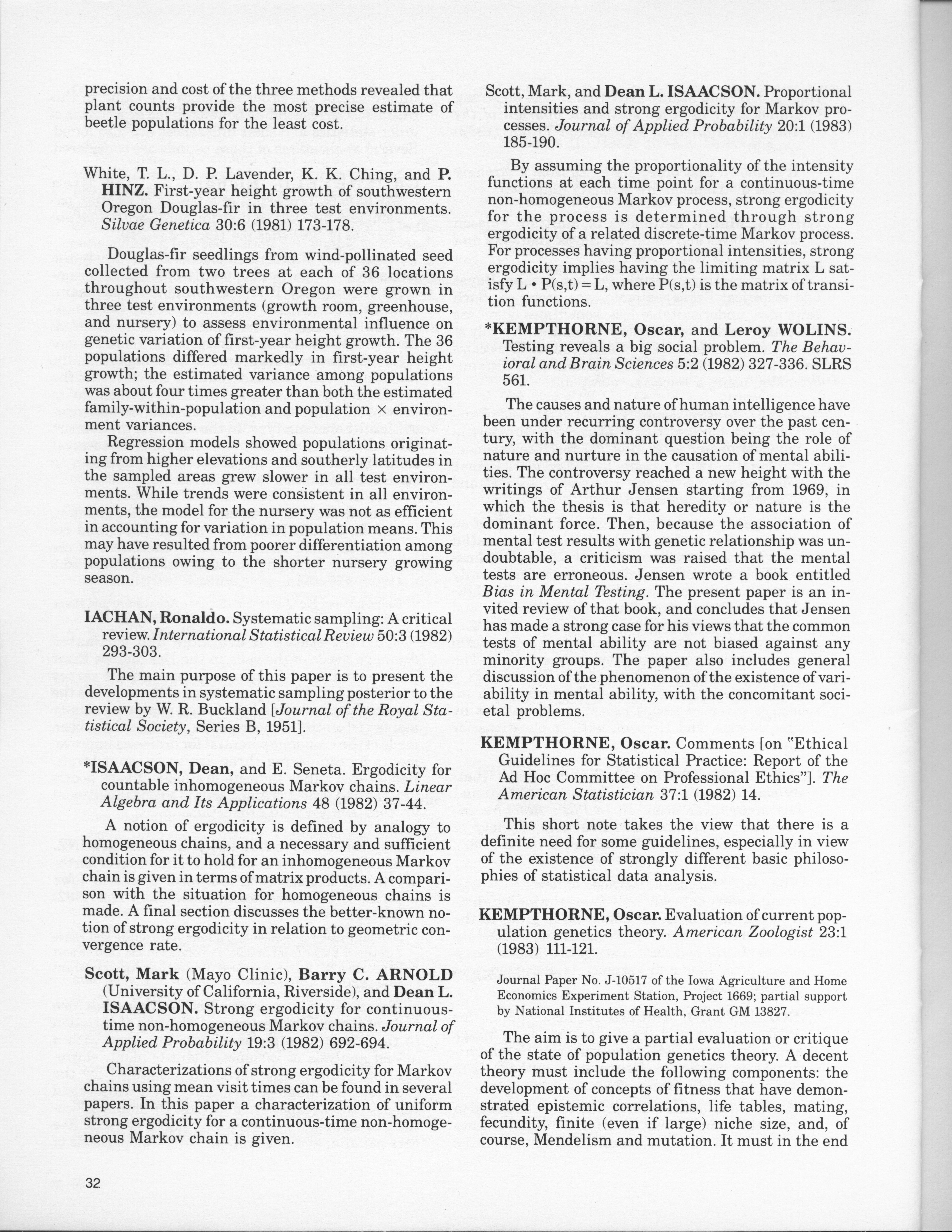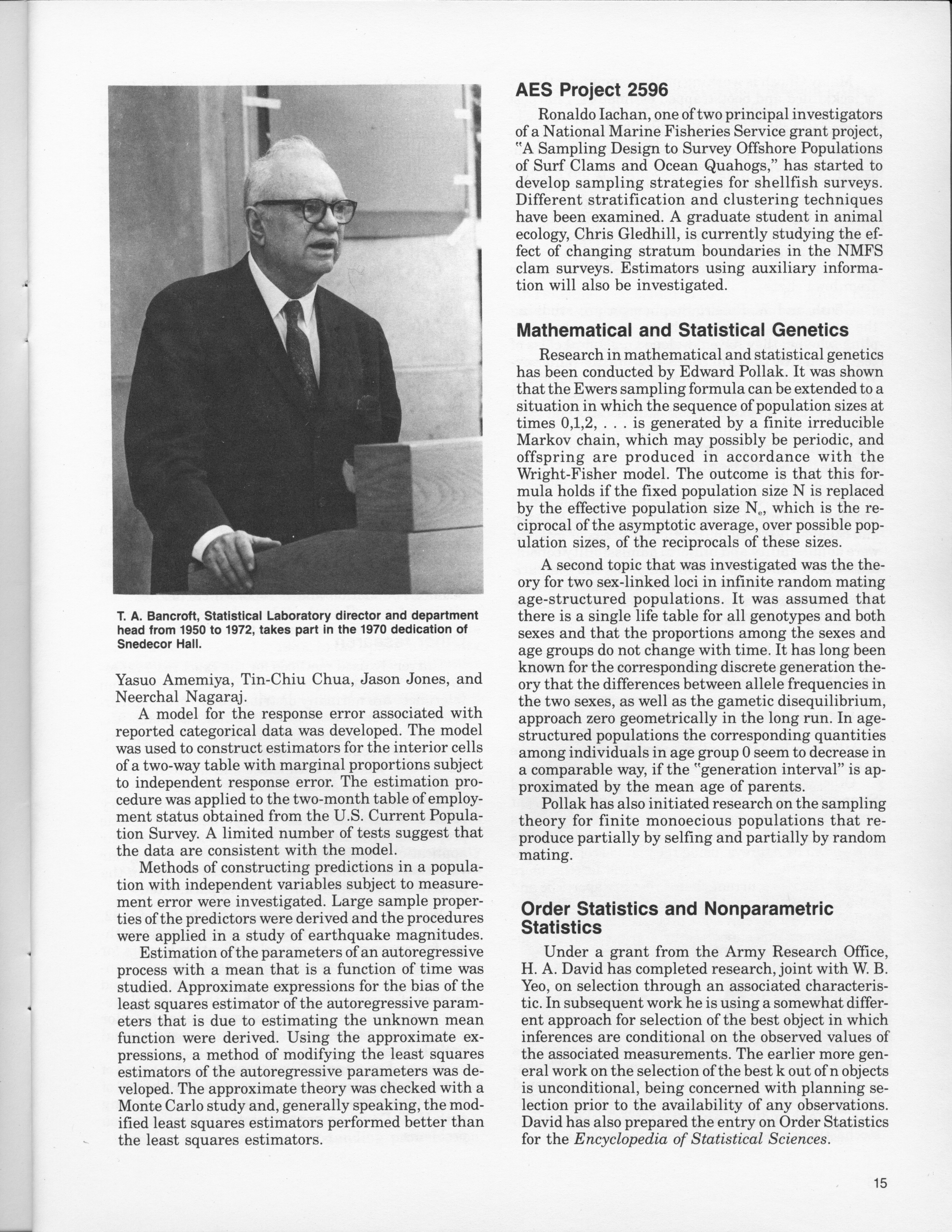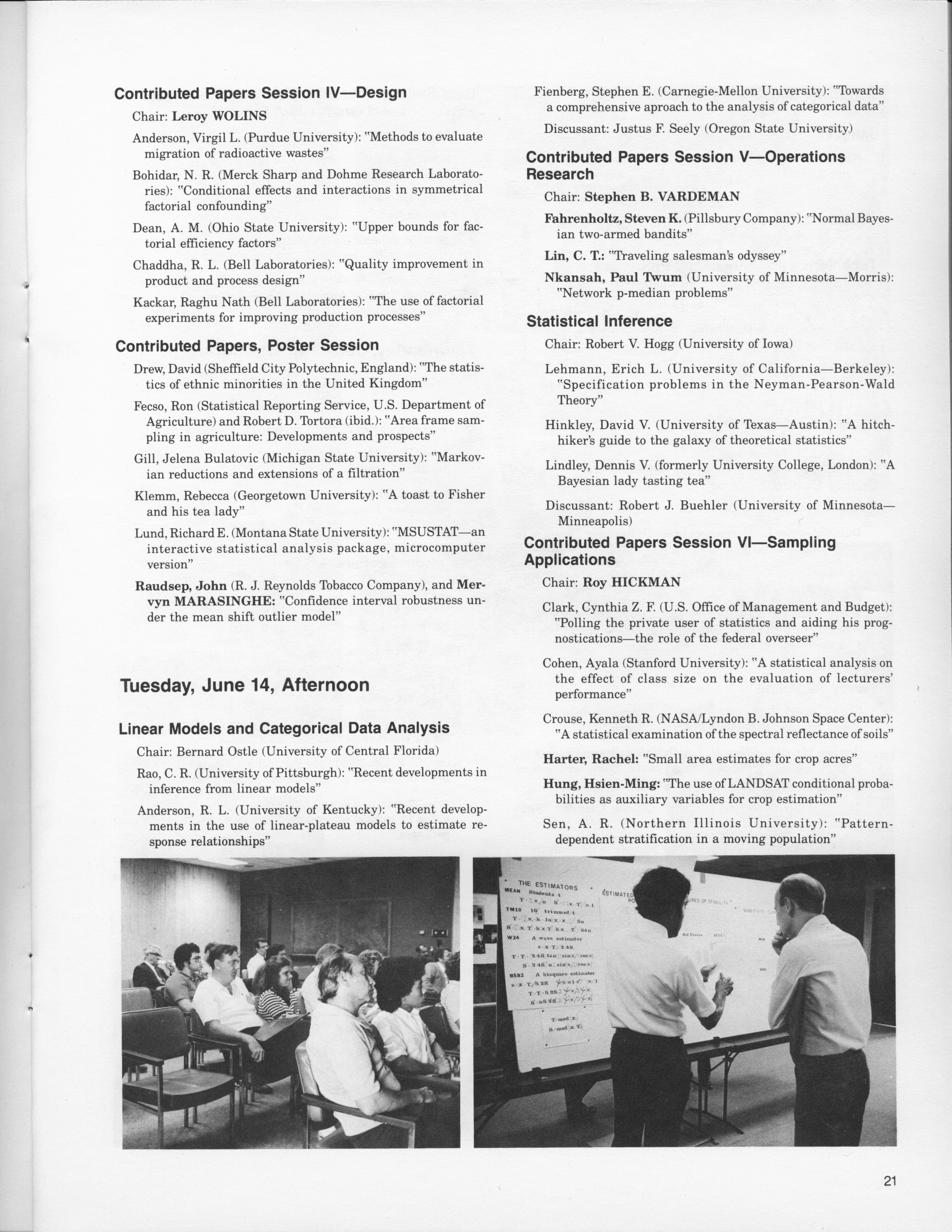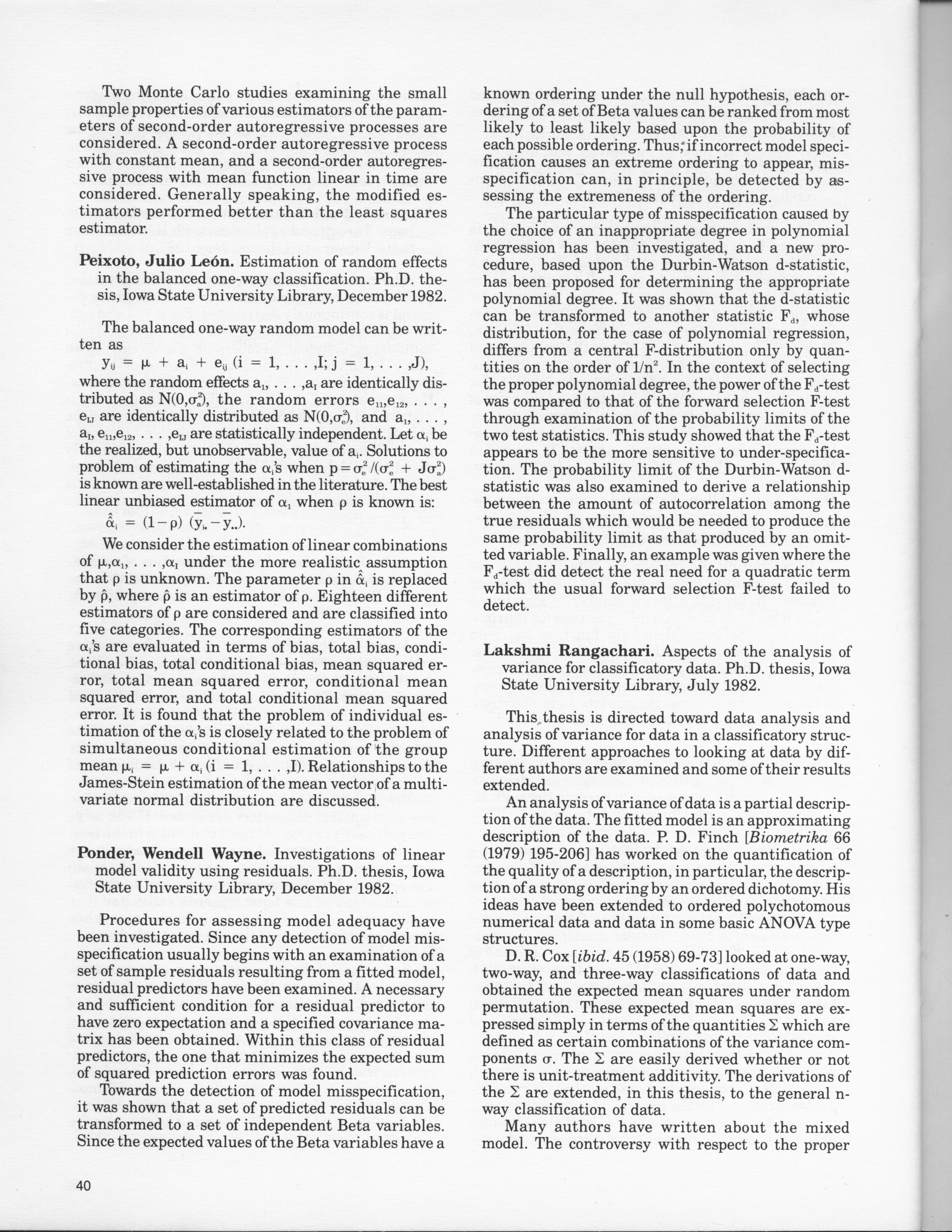 - "Statistical Laboratory Annual Report, July 1, 1982 to June 30, 1983", Iowa State University Statistical Laboratory Annual Reports, Iowa State University Library Digital Collections