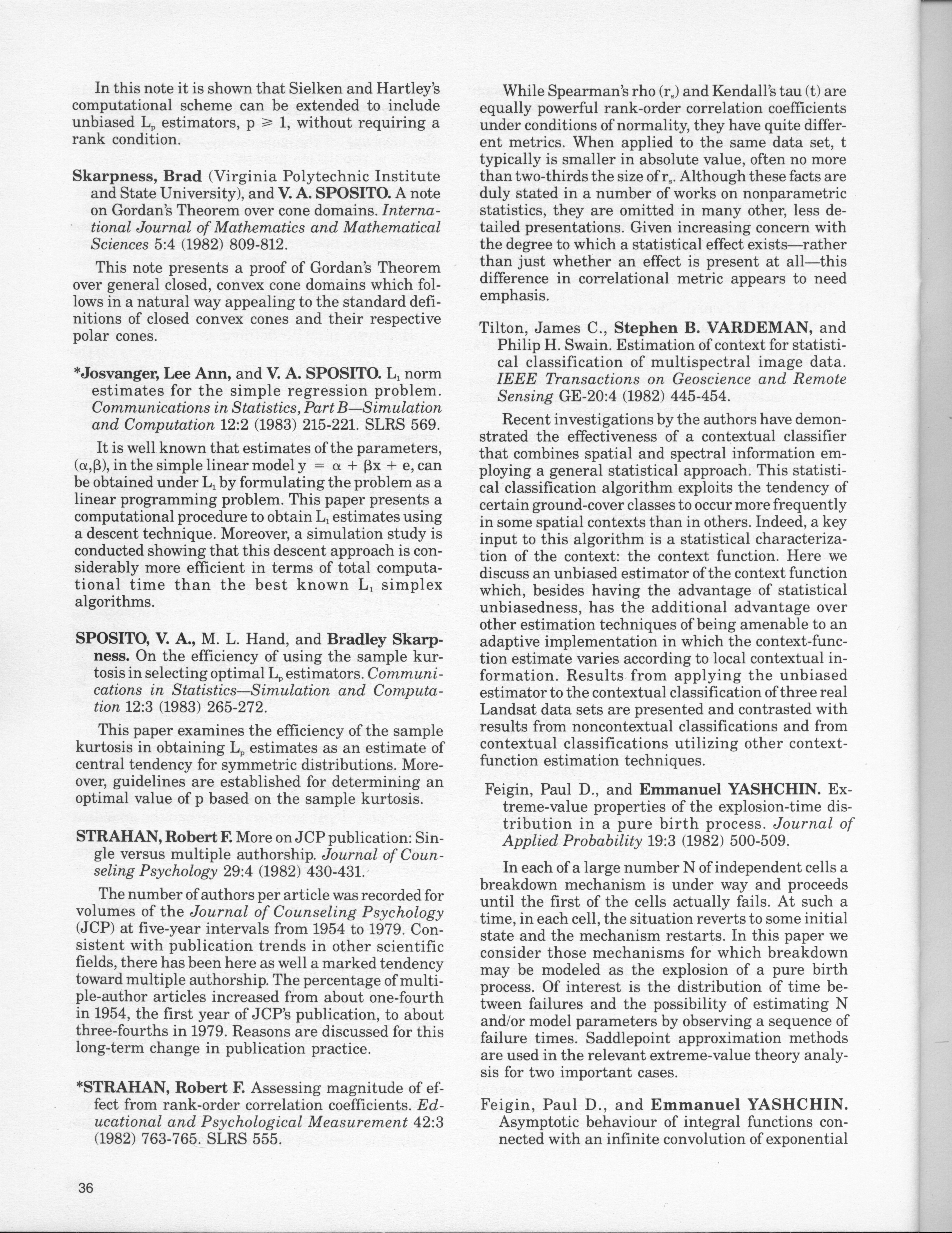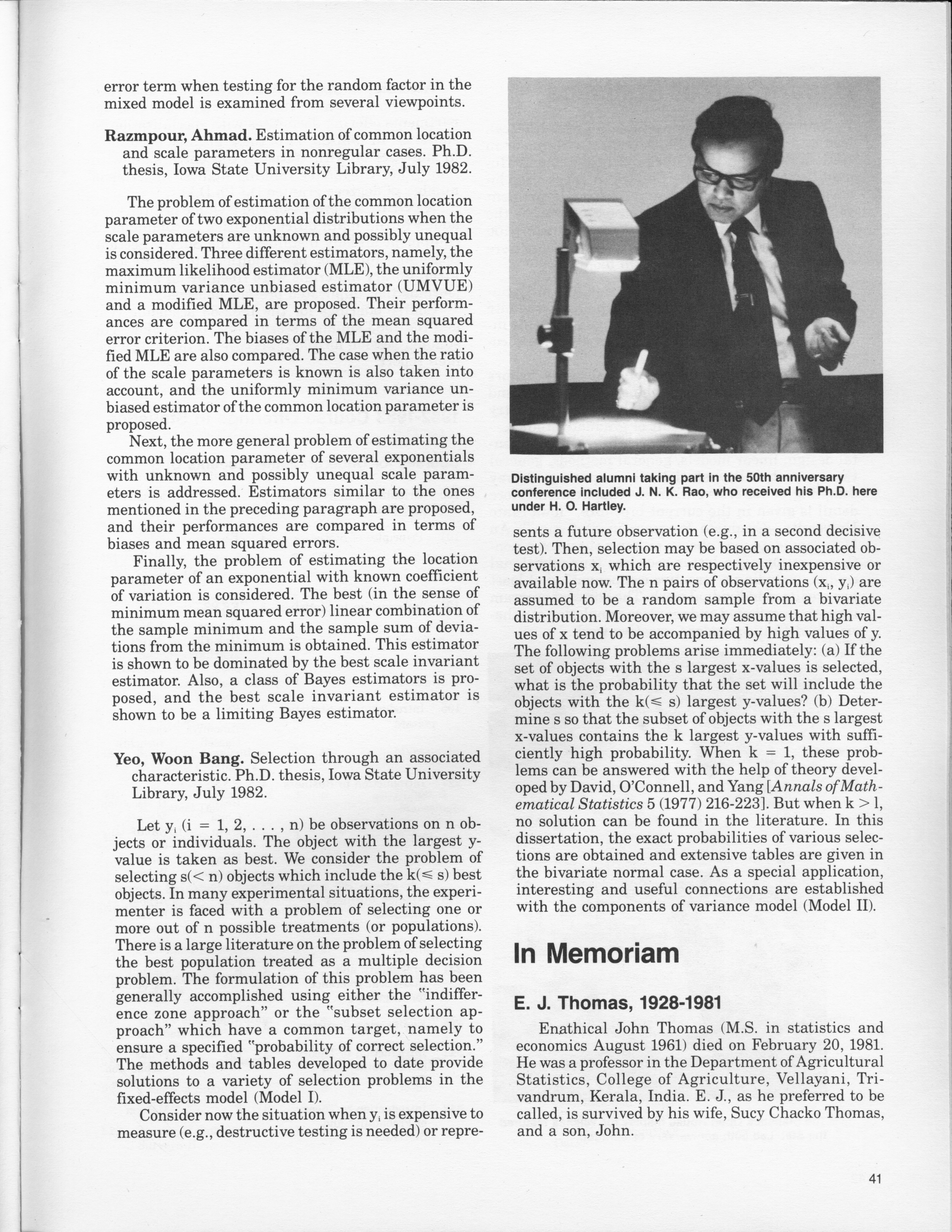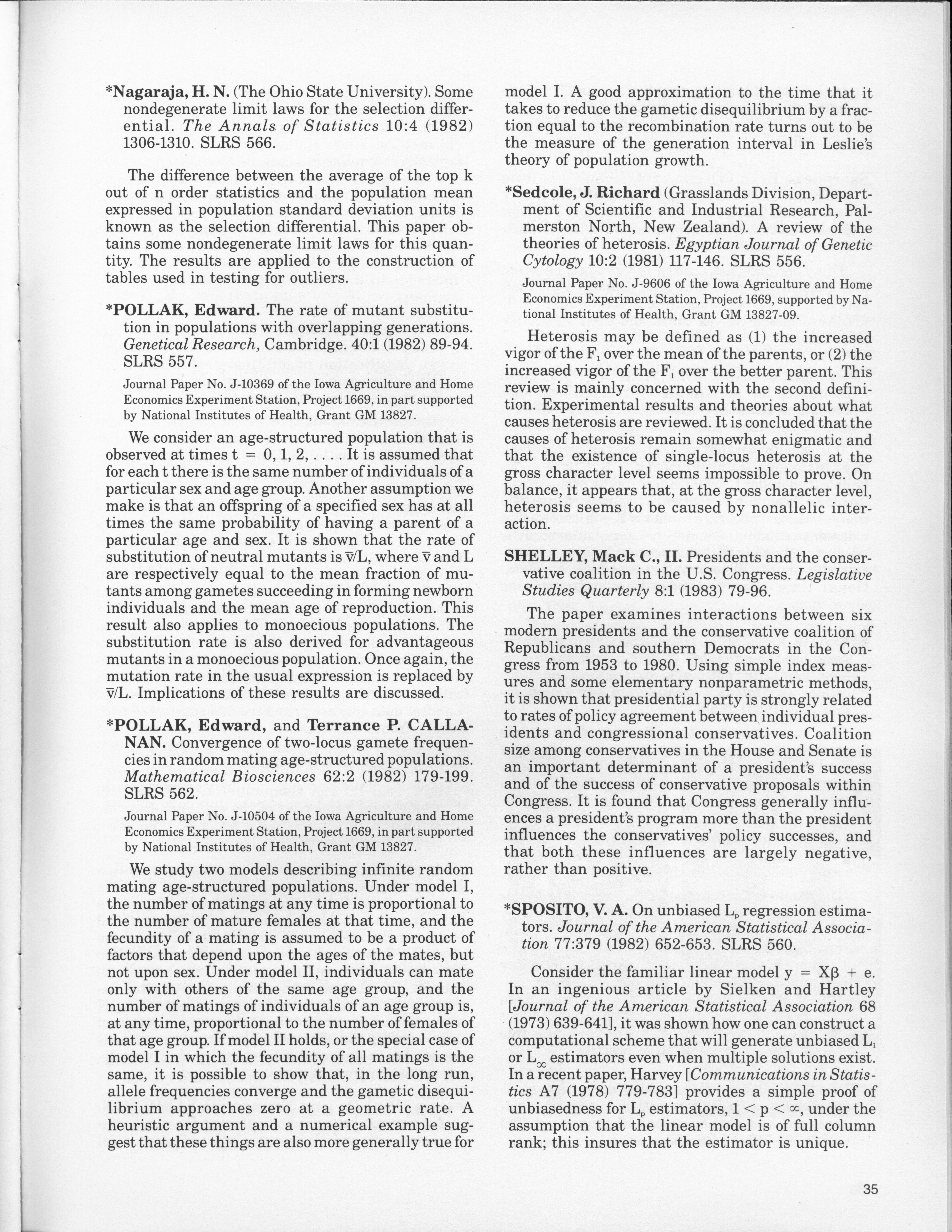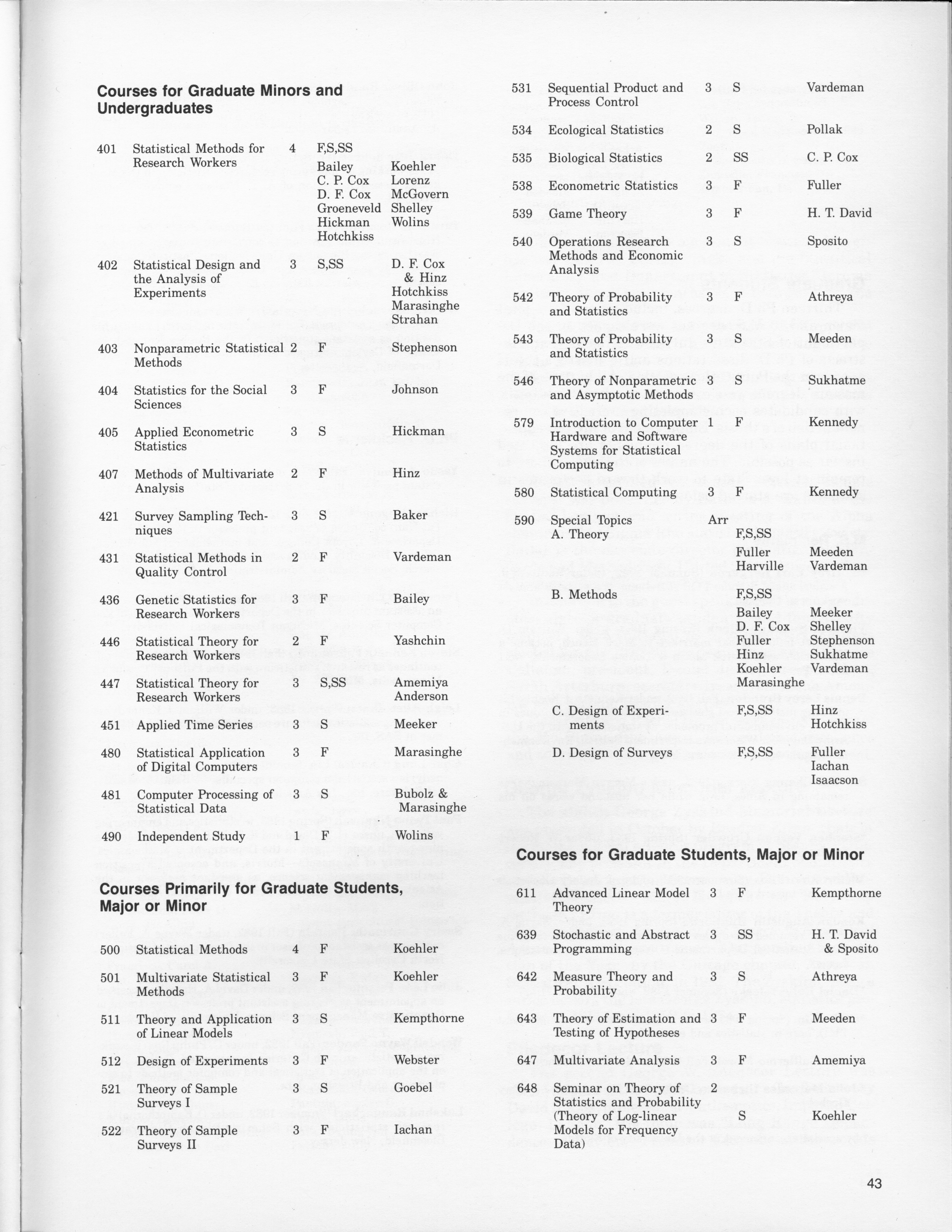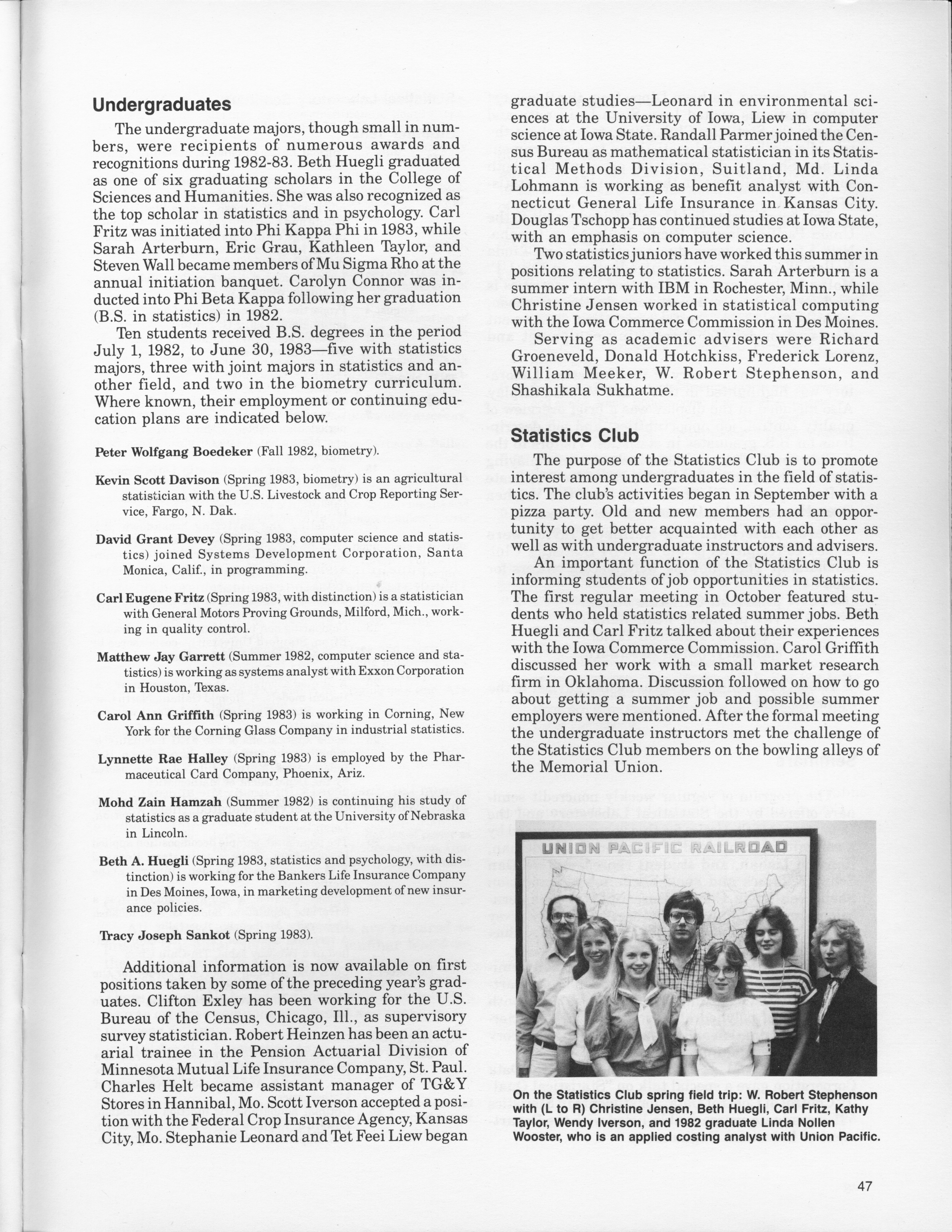 - "Statistical Laboratory Annual Report, July 1, 1982 to June 30, 1983", Iowa State University Statistical Laboratory Annual Reports, Iowa State University Library Digital Collections