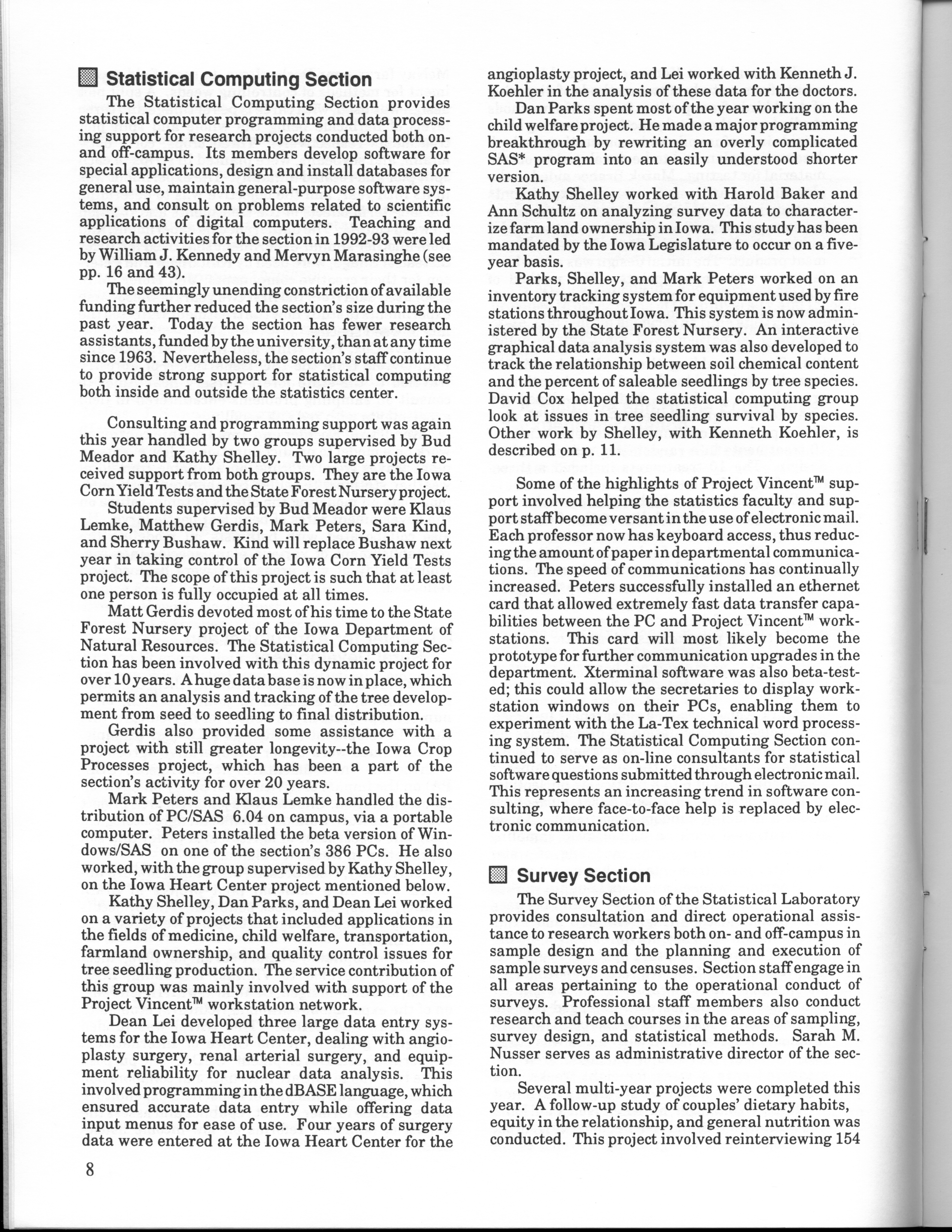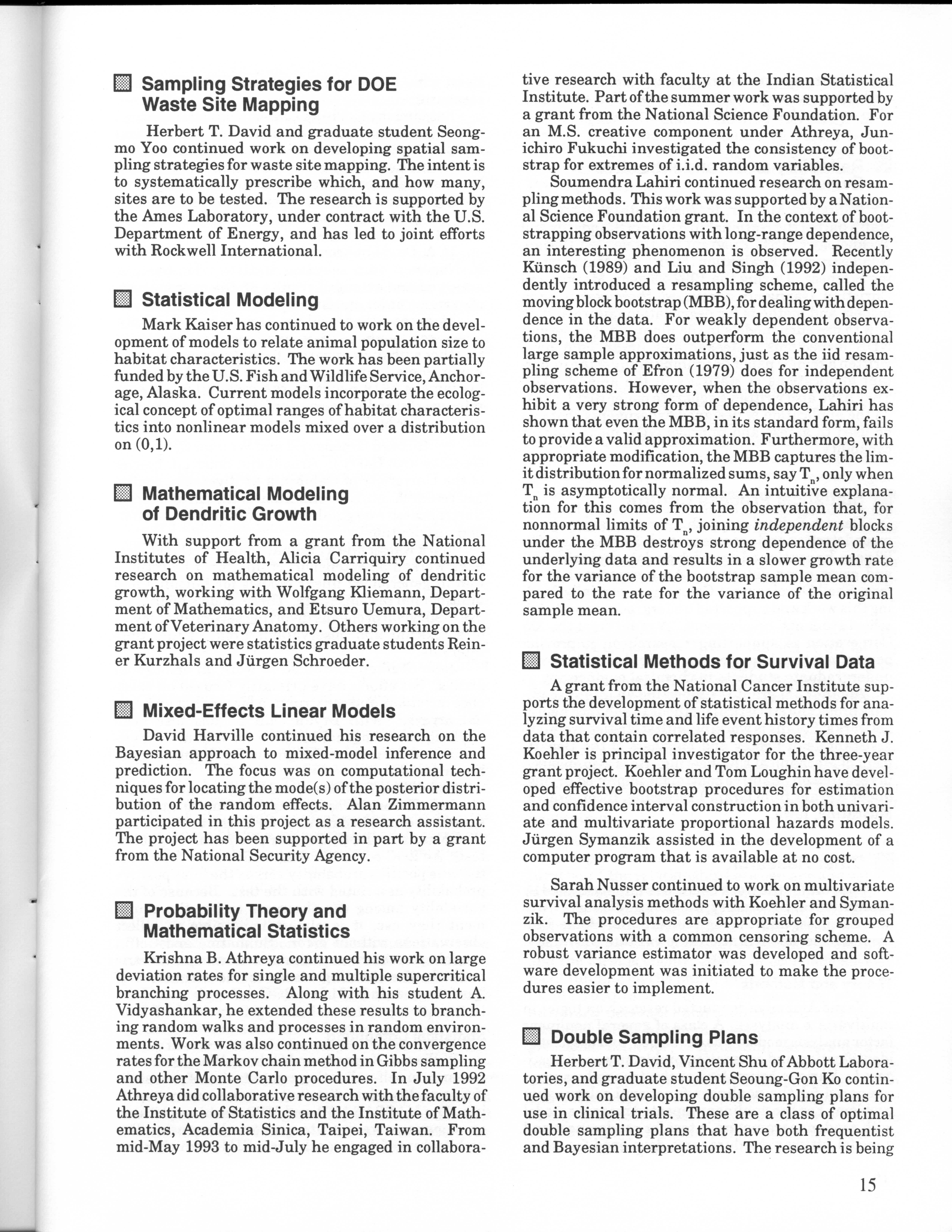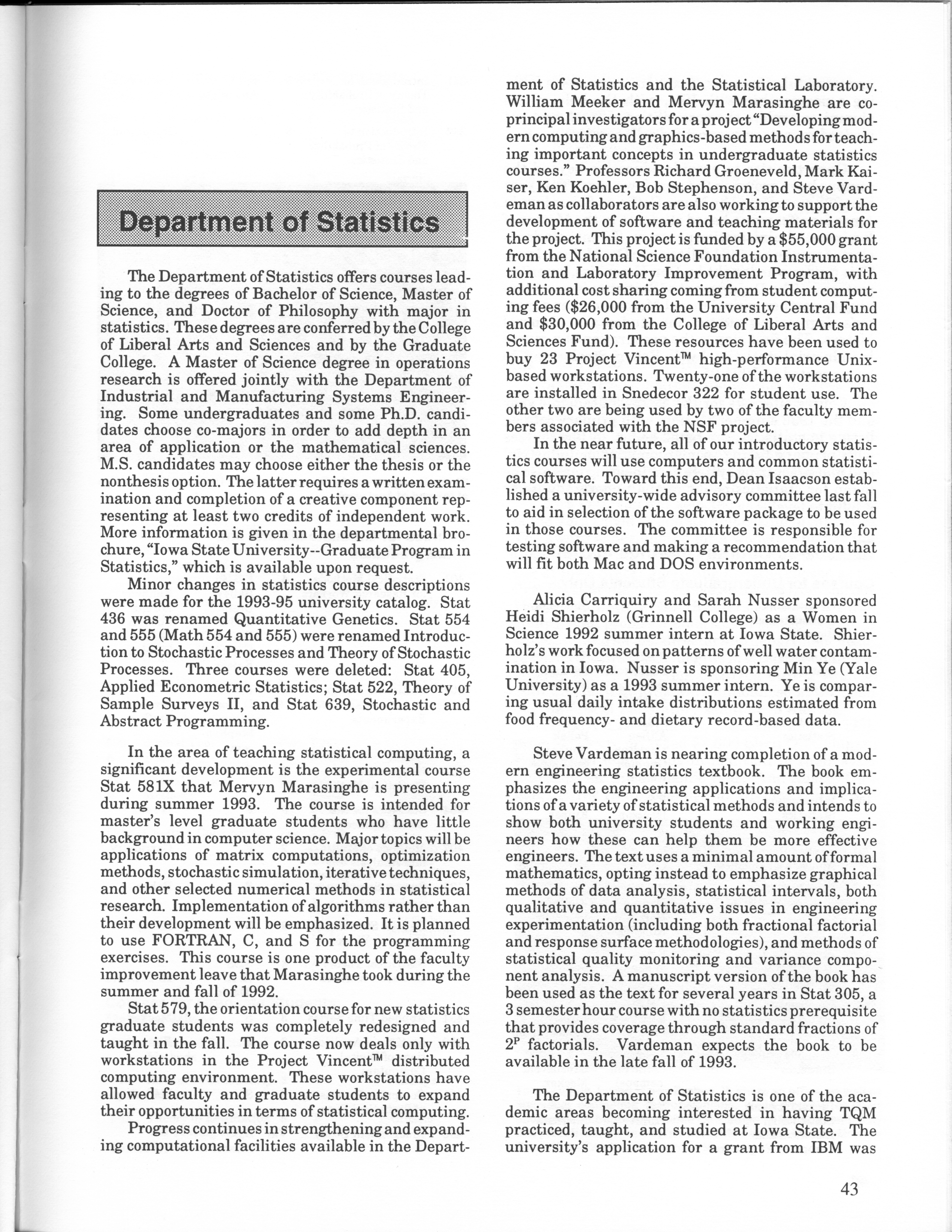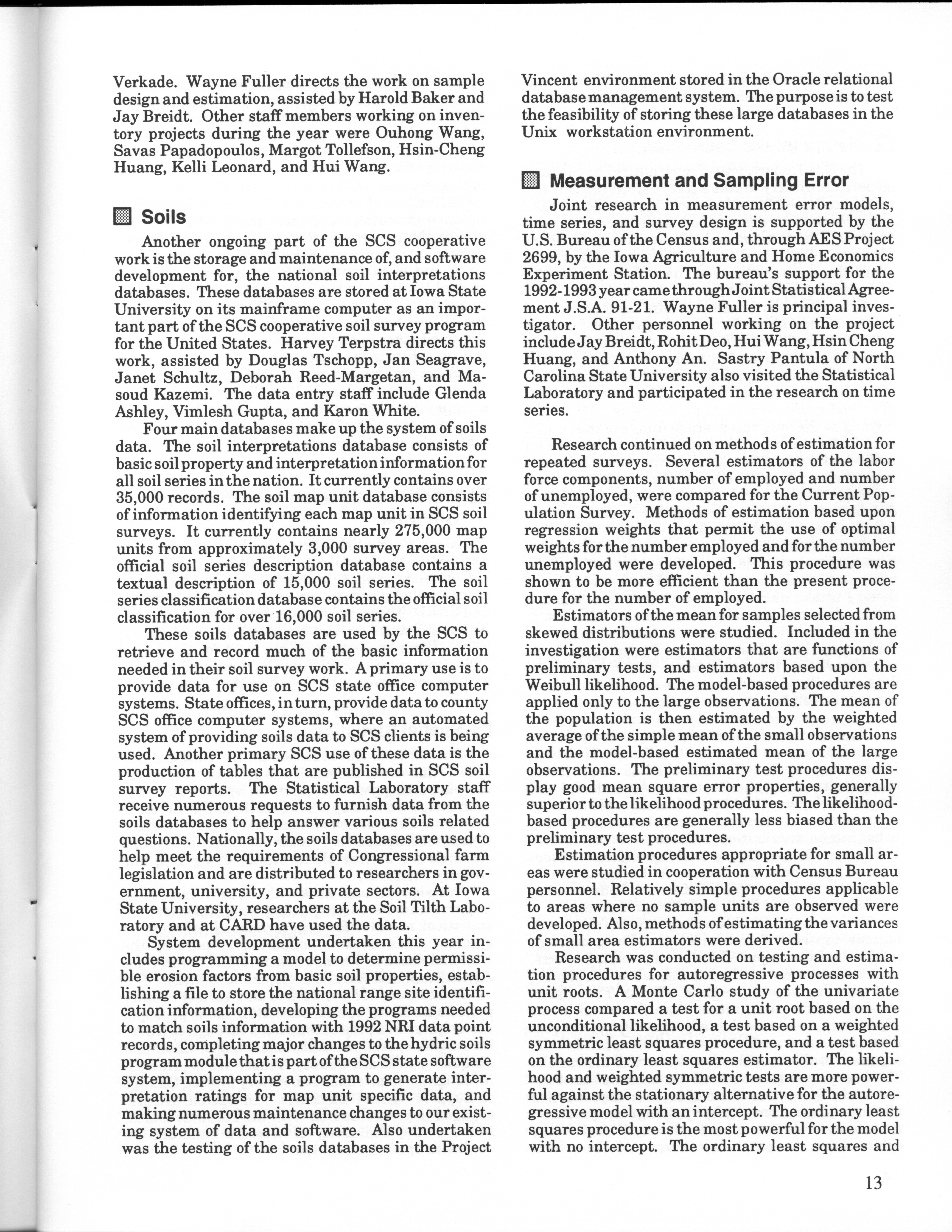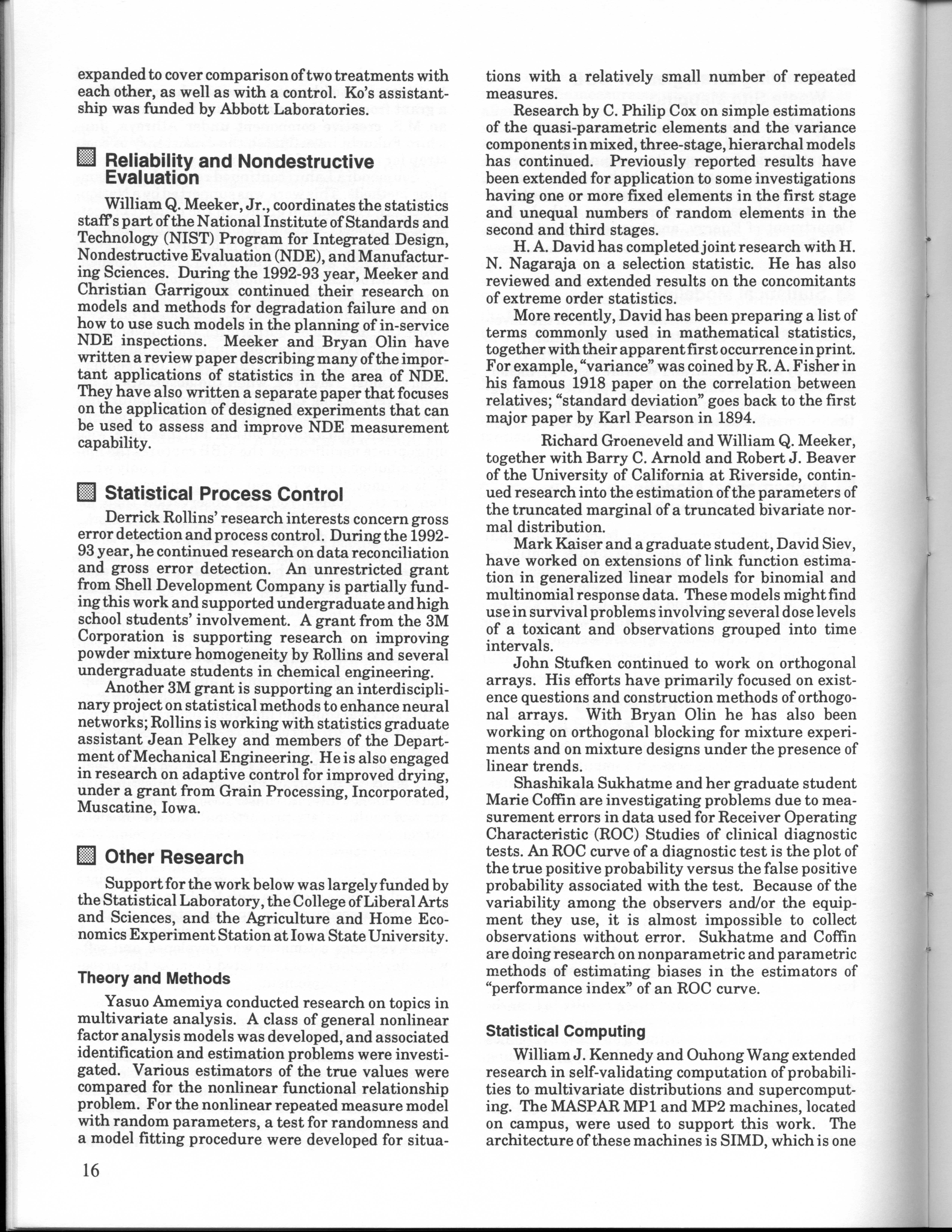 - "Statistical Laboratory Annual Report, July 1, 1992 to June 30, 1993", Iowa State University Statistical Laboratory Annual Reports, Iowa State University Library Digital Collections