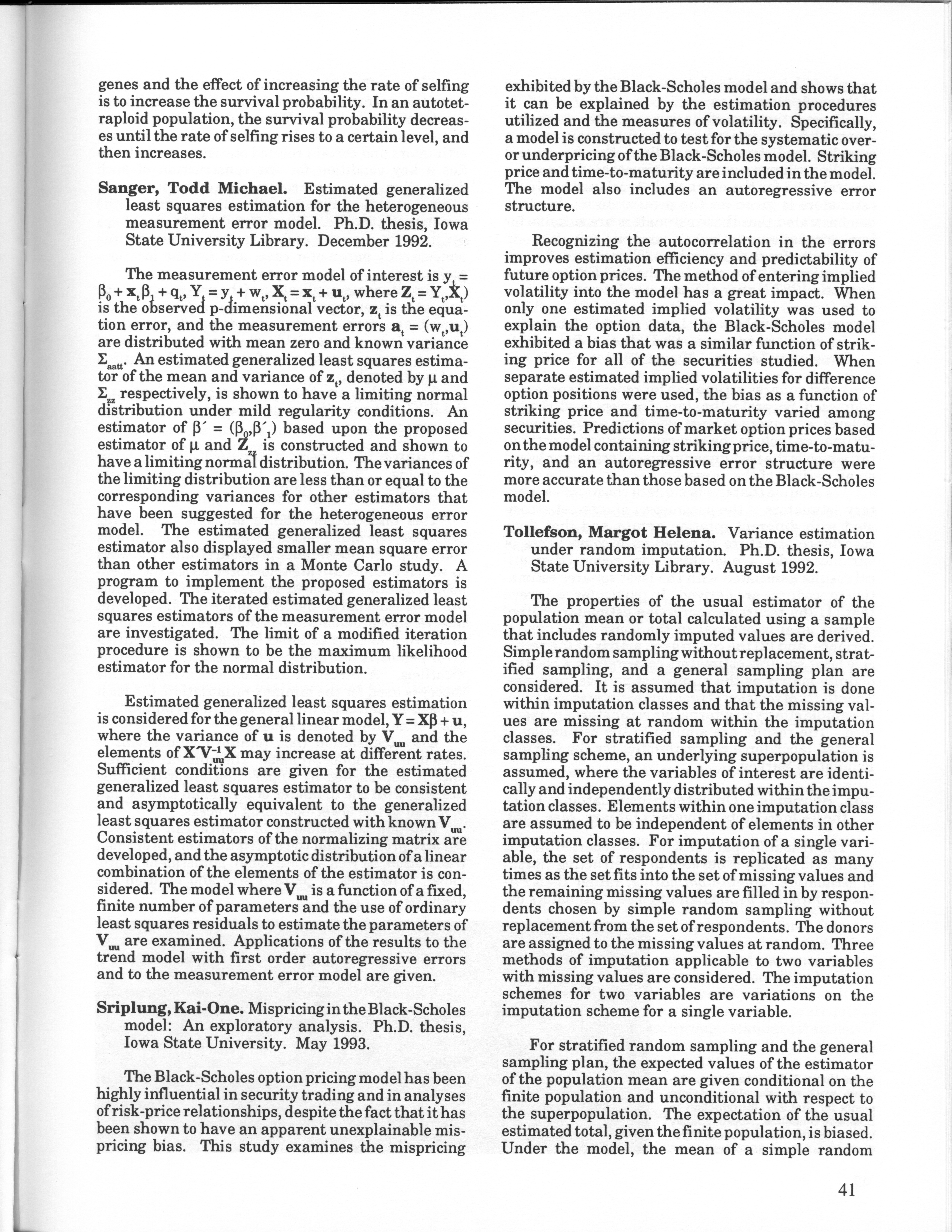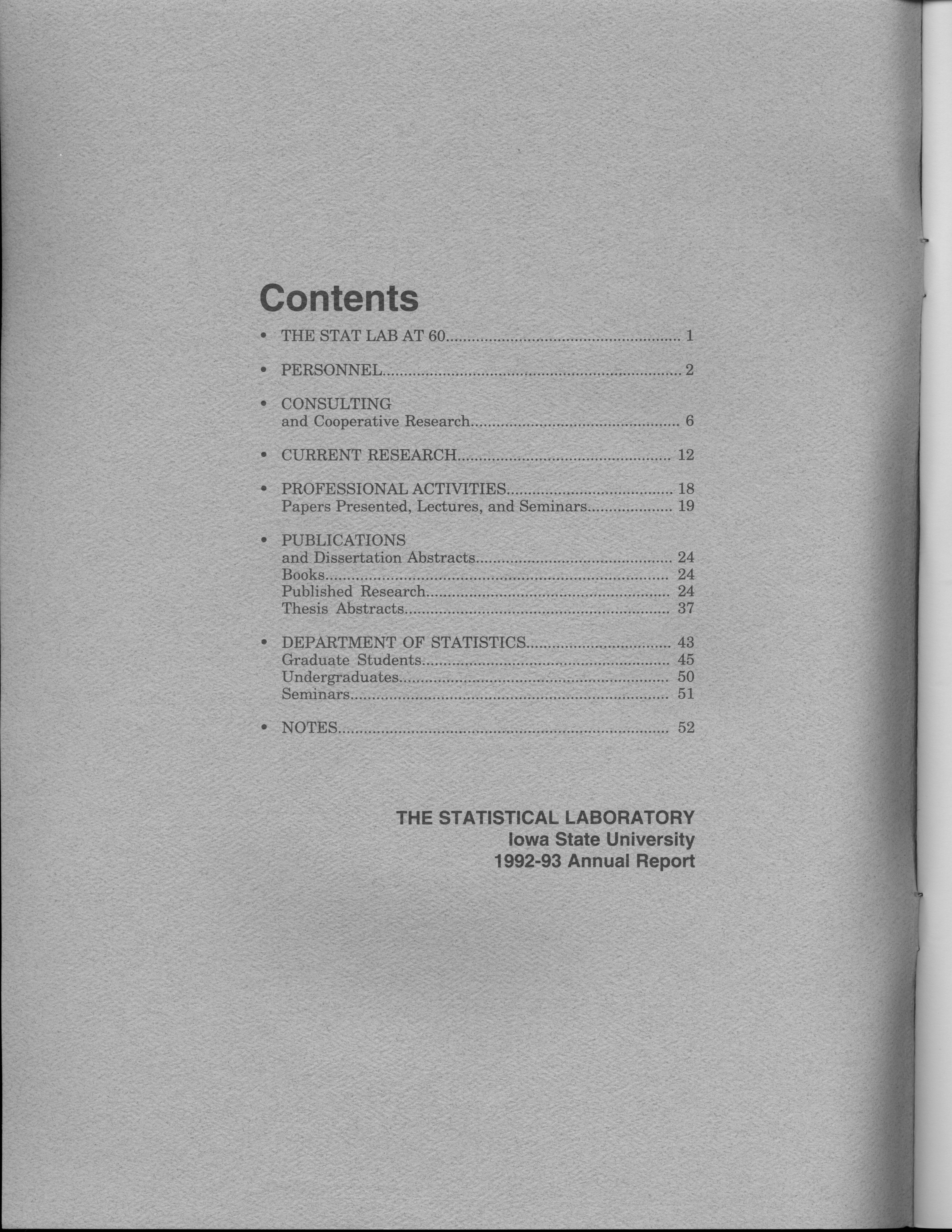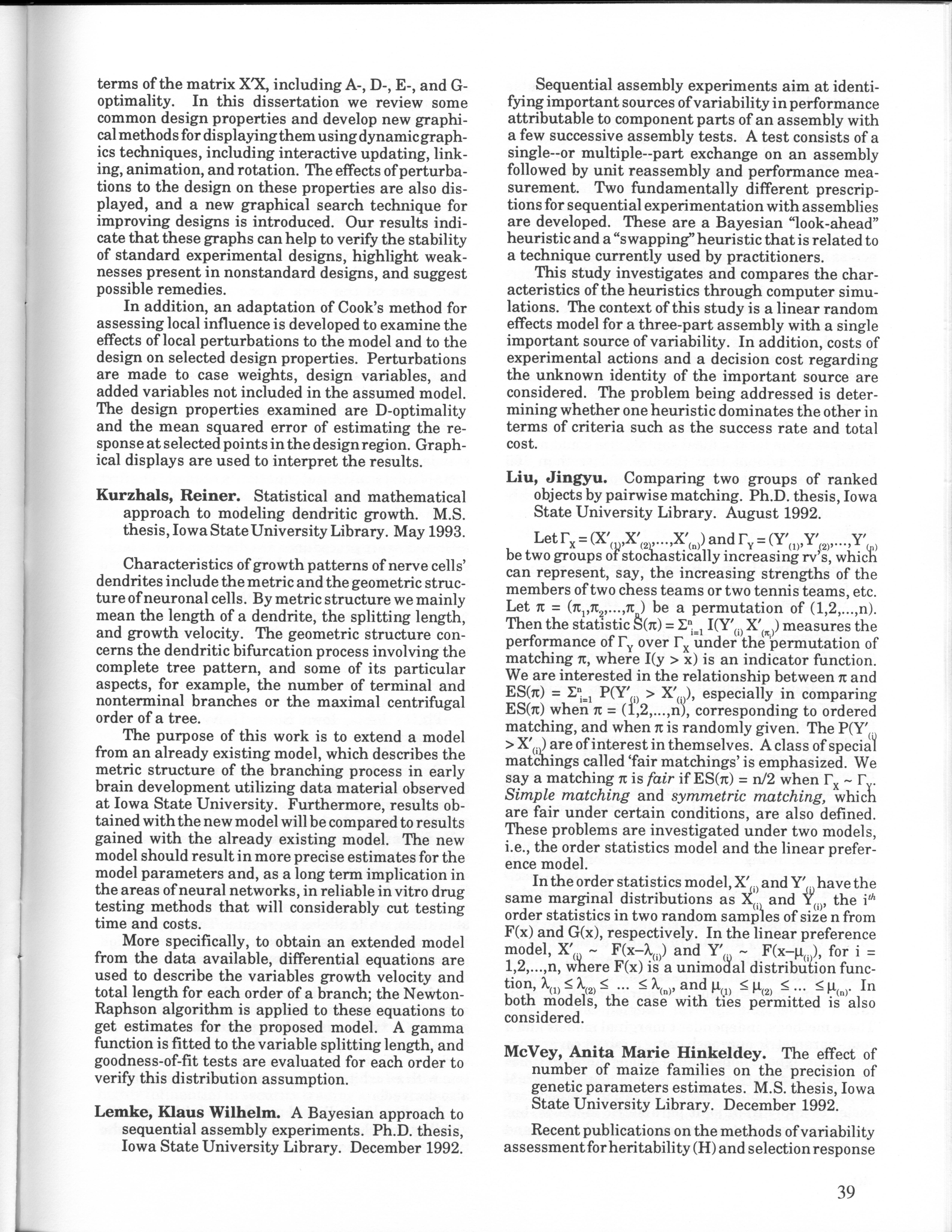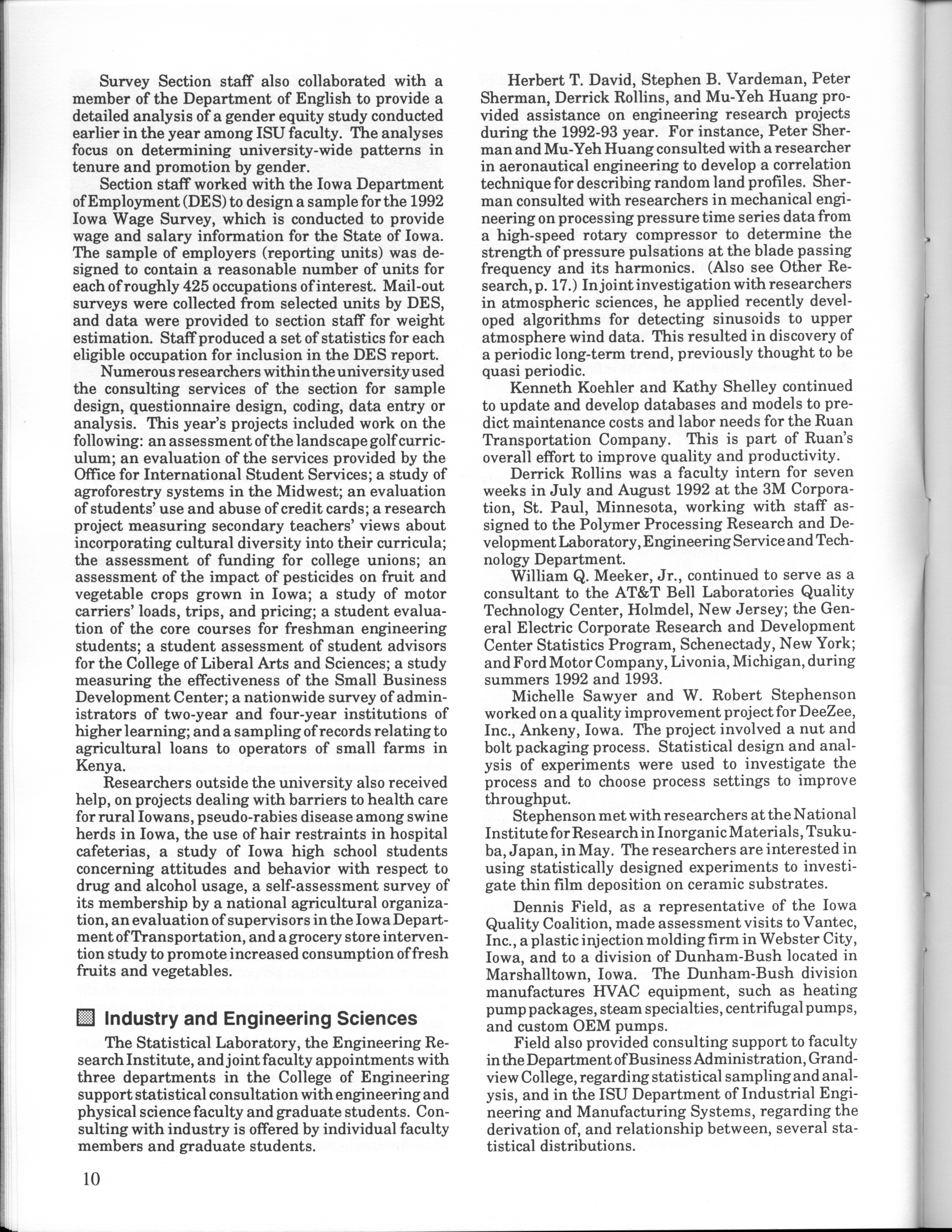 - "Statistical Laboratory Annual Report, July 1, 1992 to June 30, 1993", Iowa State University Statistical Laboratory Annual Reports, Iowa State University Library Digital Collections
