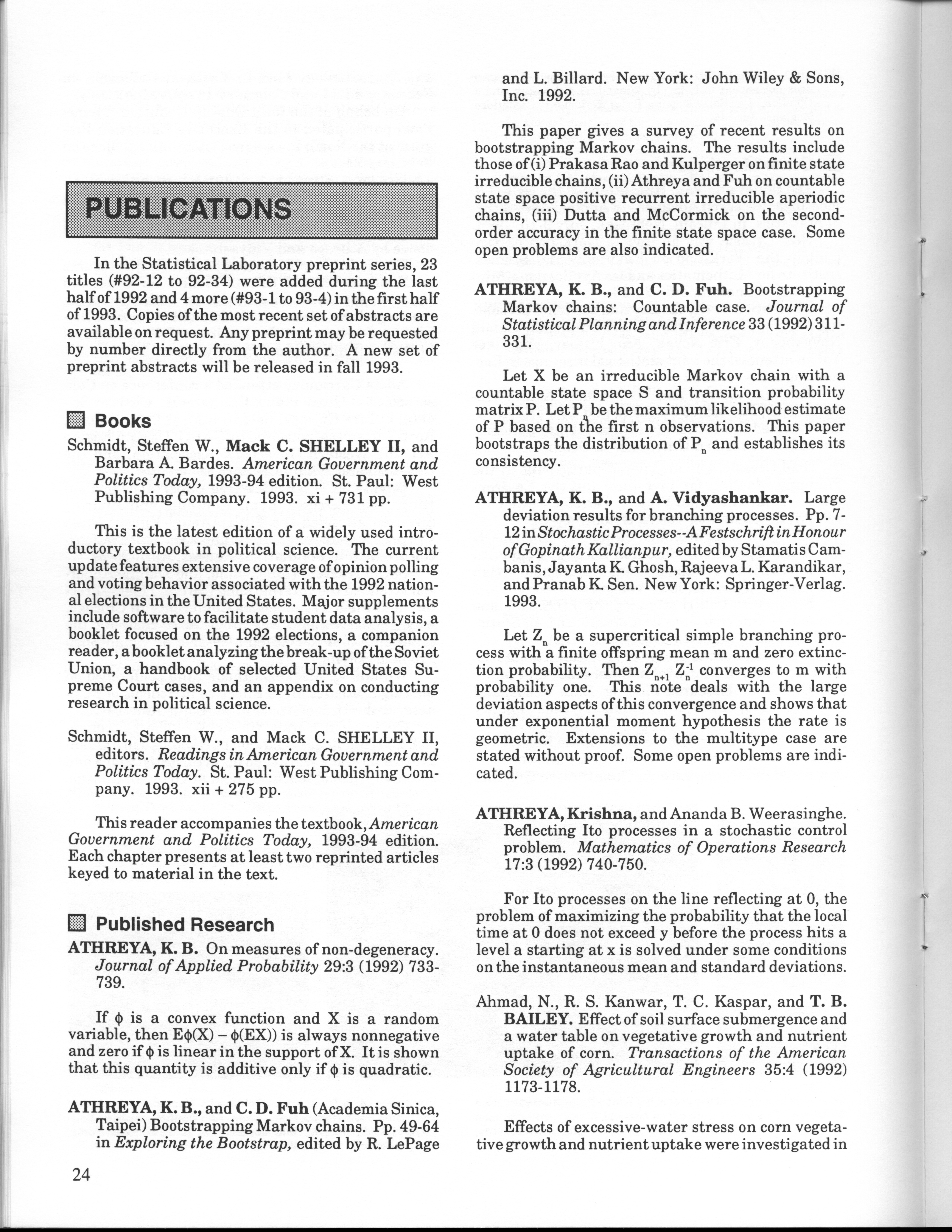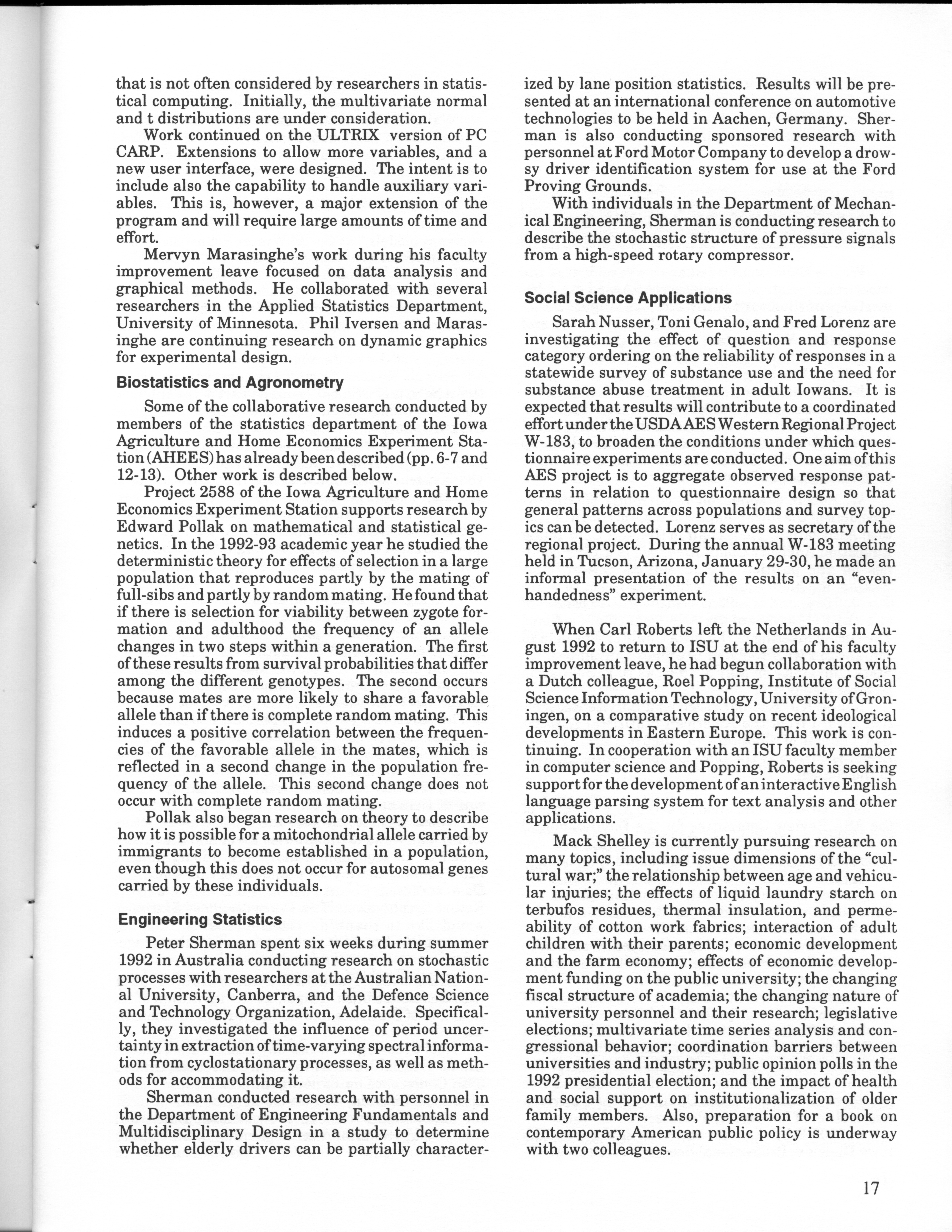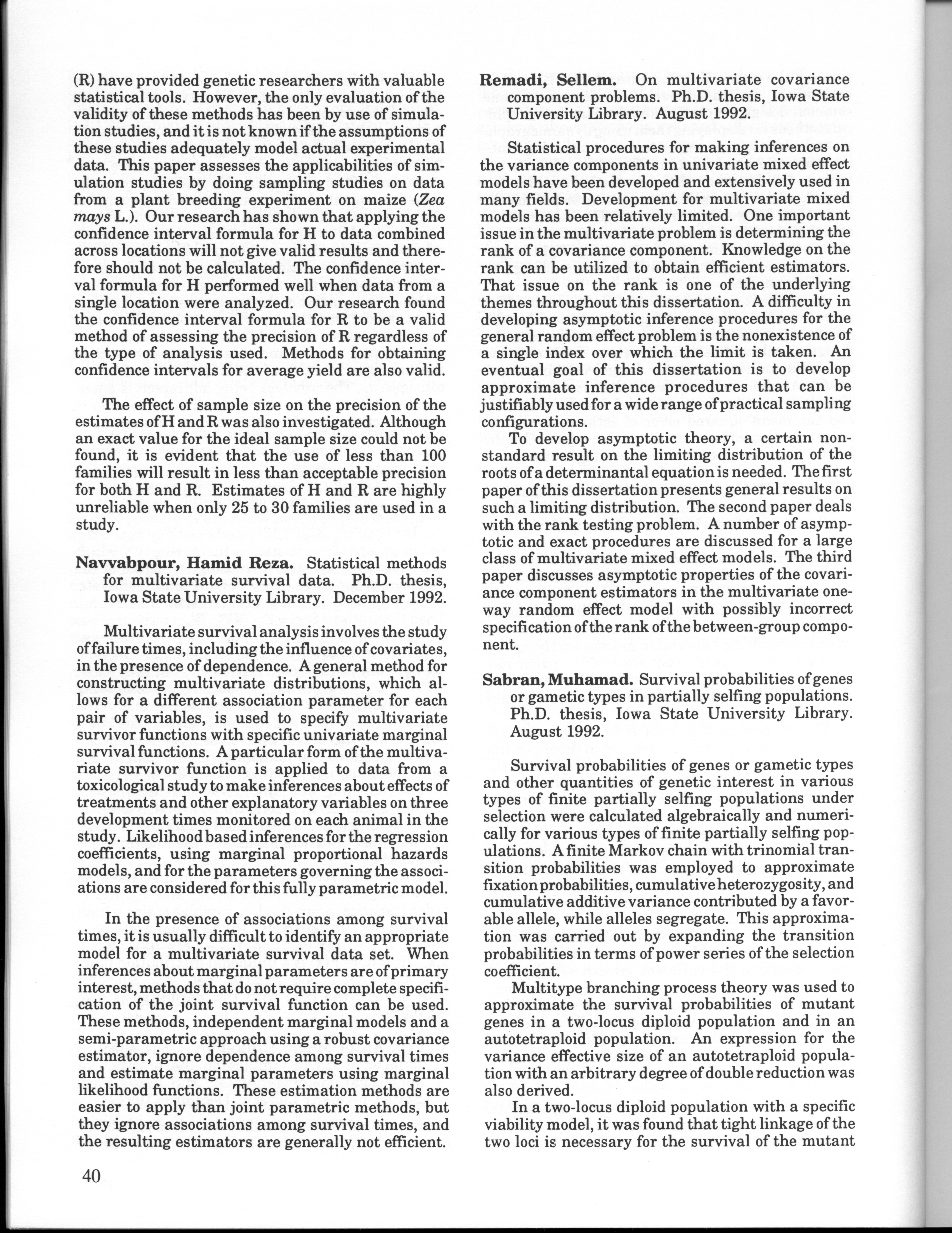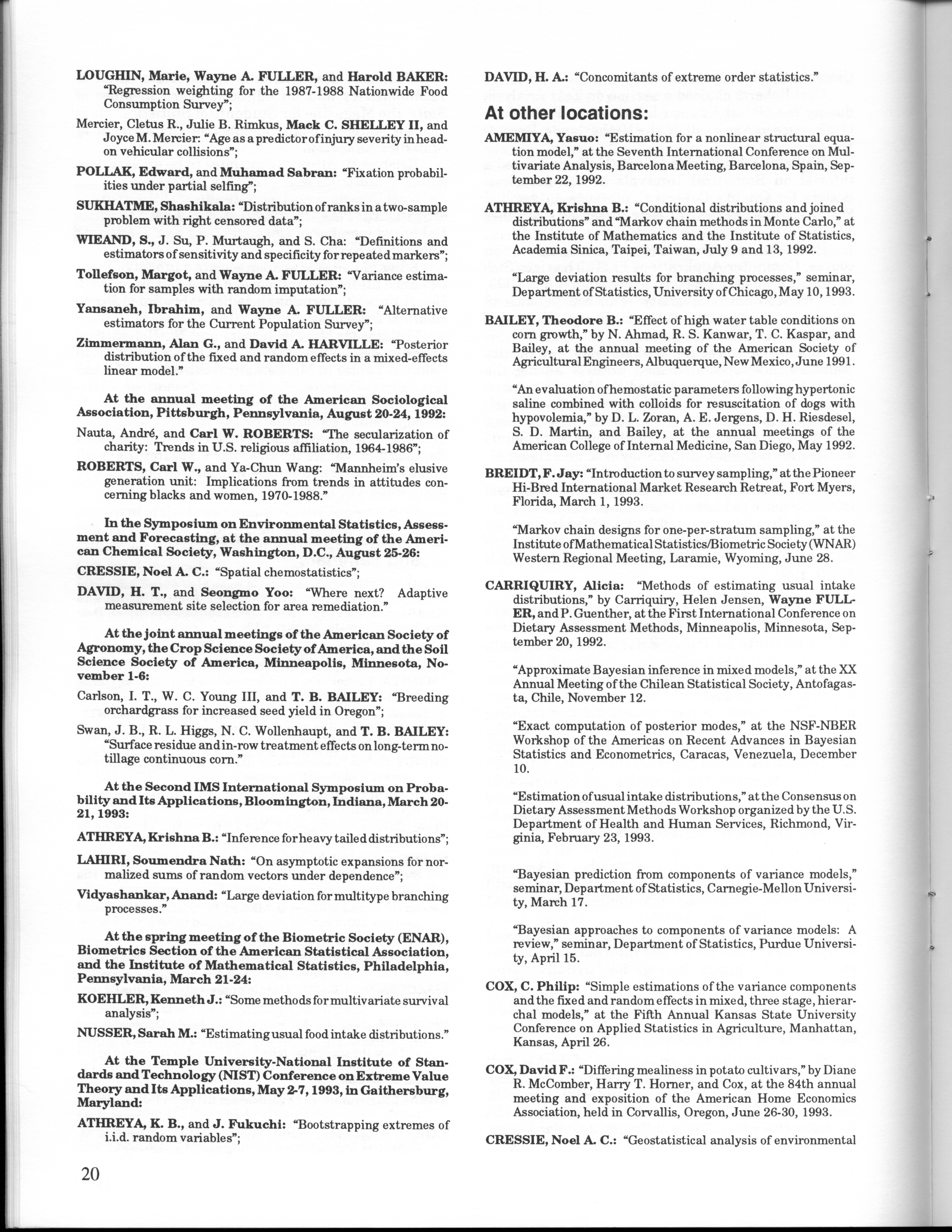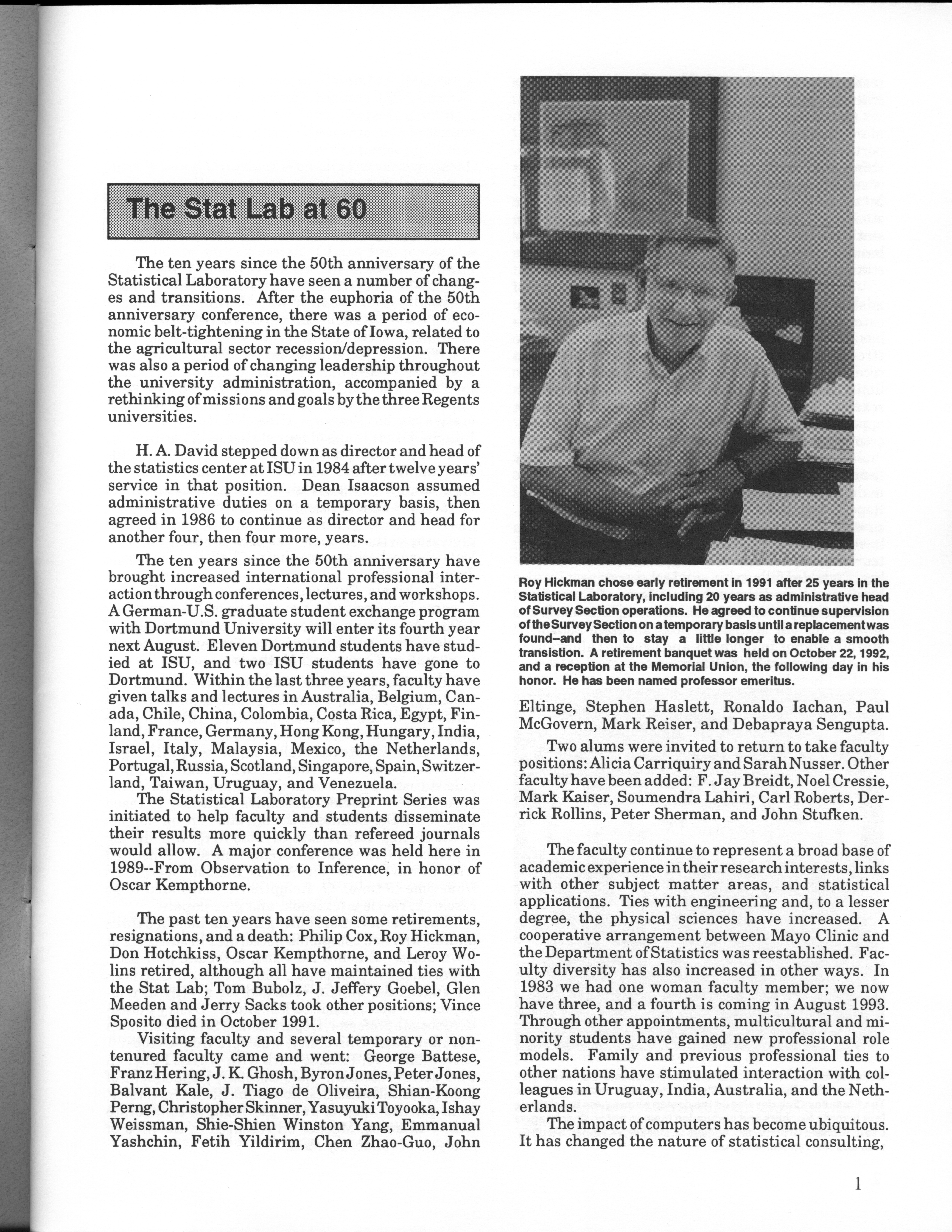 - "Statistical Laboratory Annual Report, July 1, 1992 to June 30, 1993", Iowa State University Statistical Laboratory Annual Reports, Iowa State University Library Digital Collections