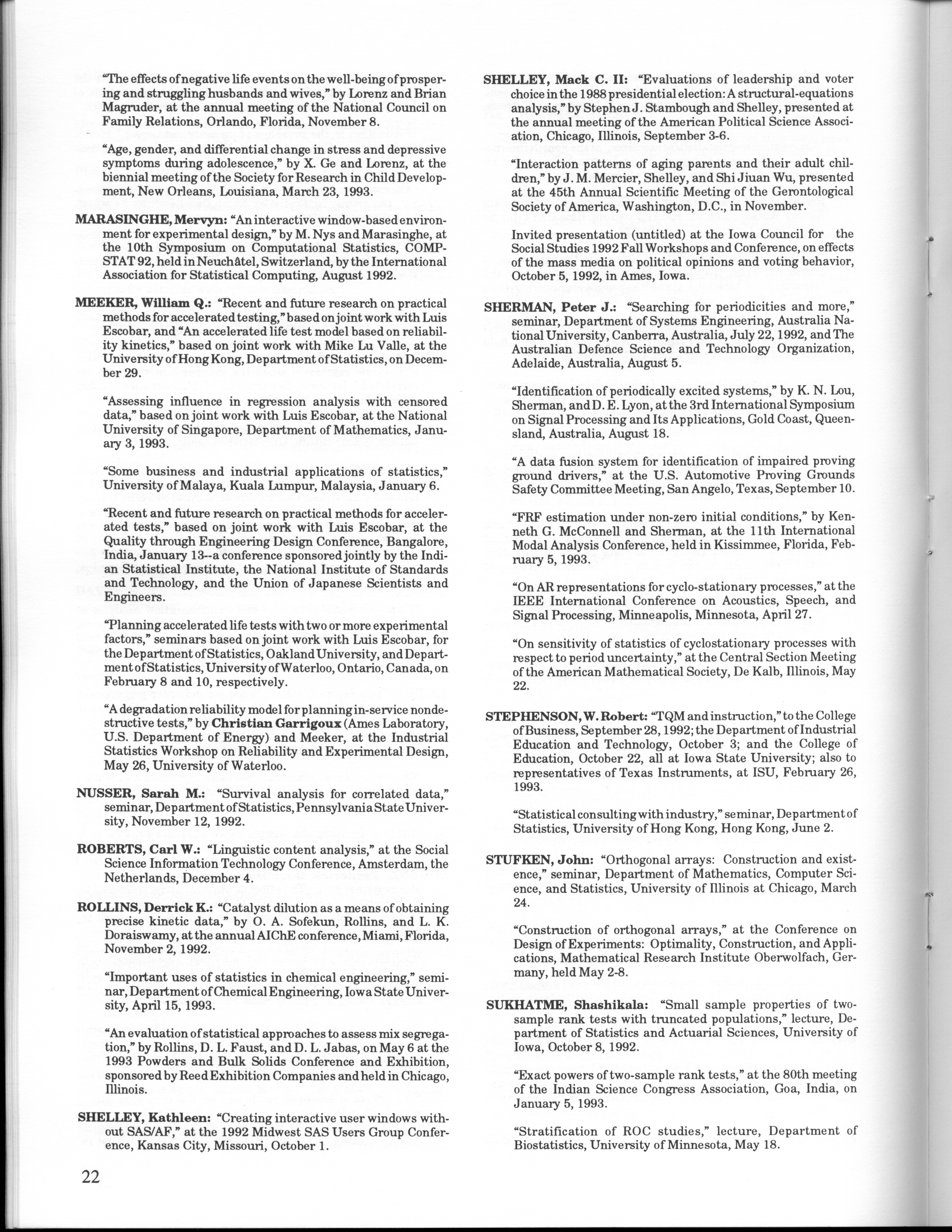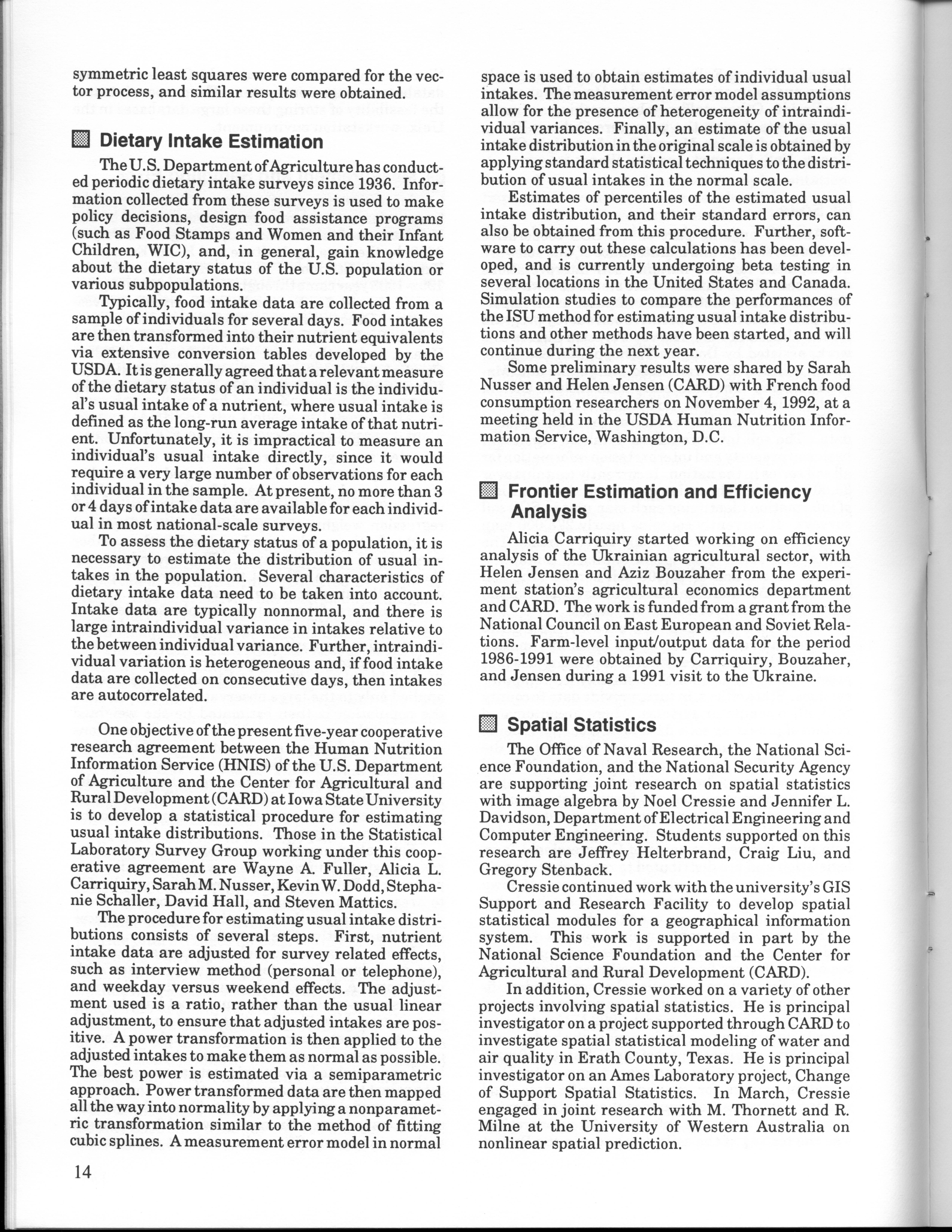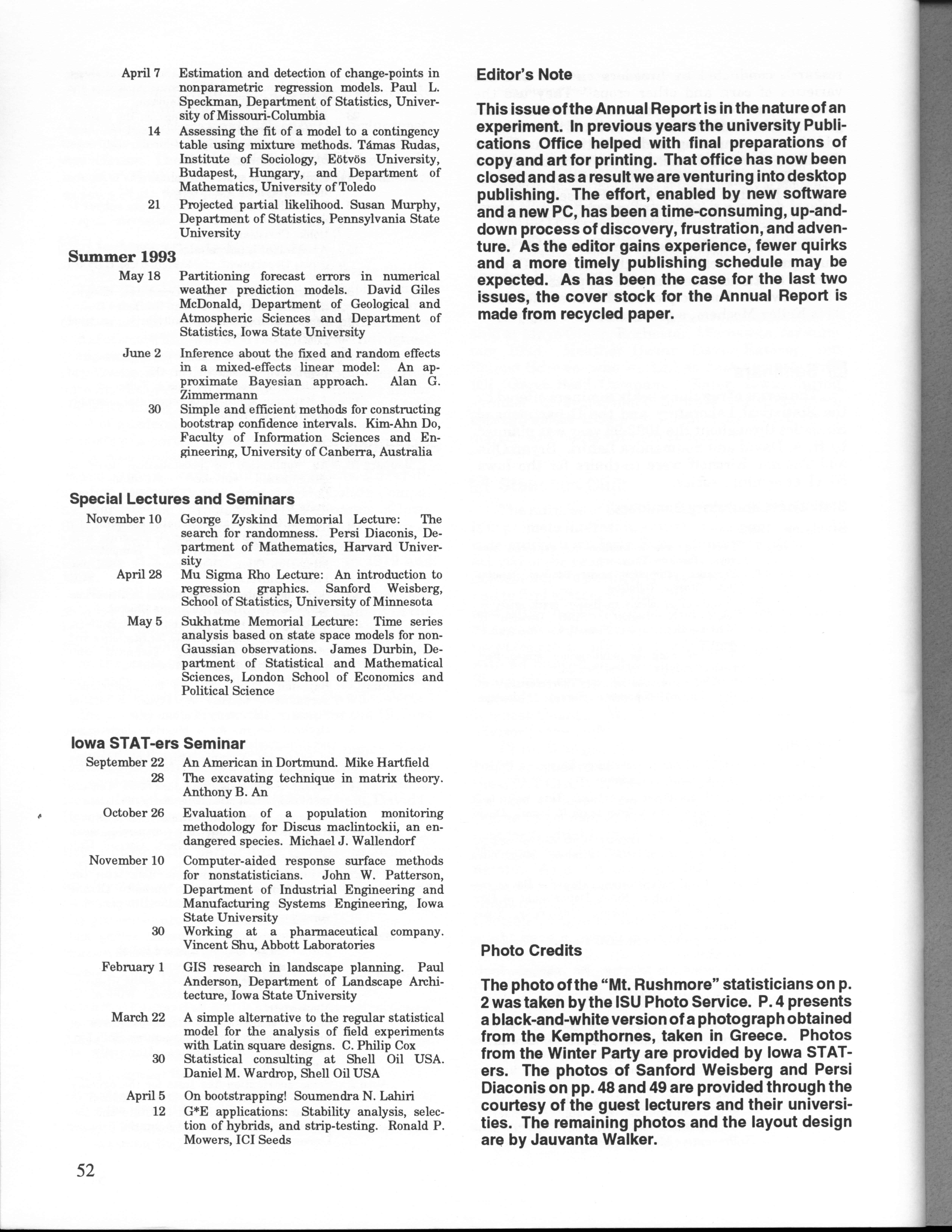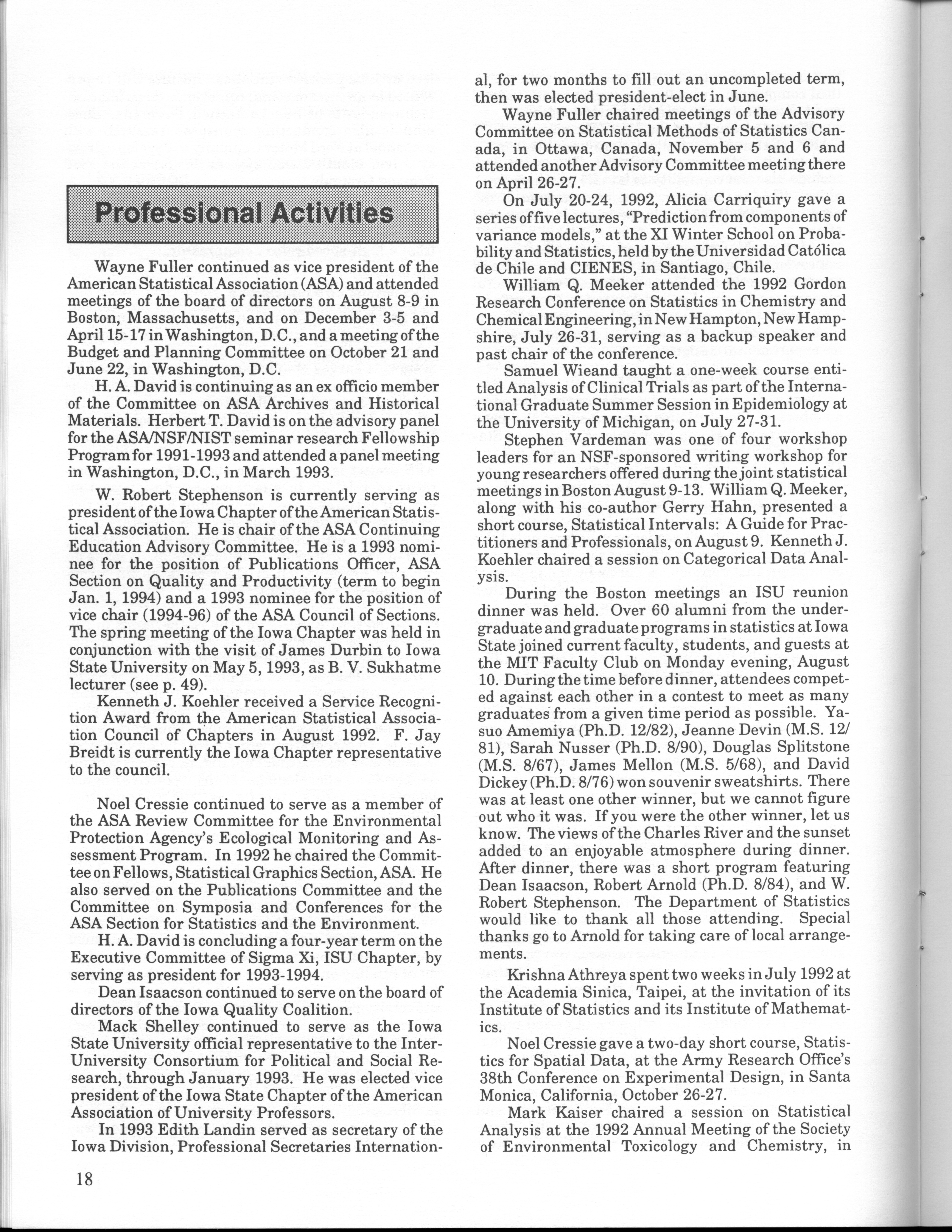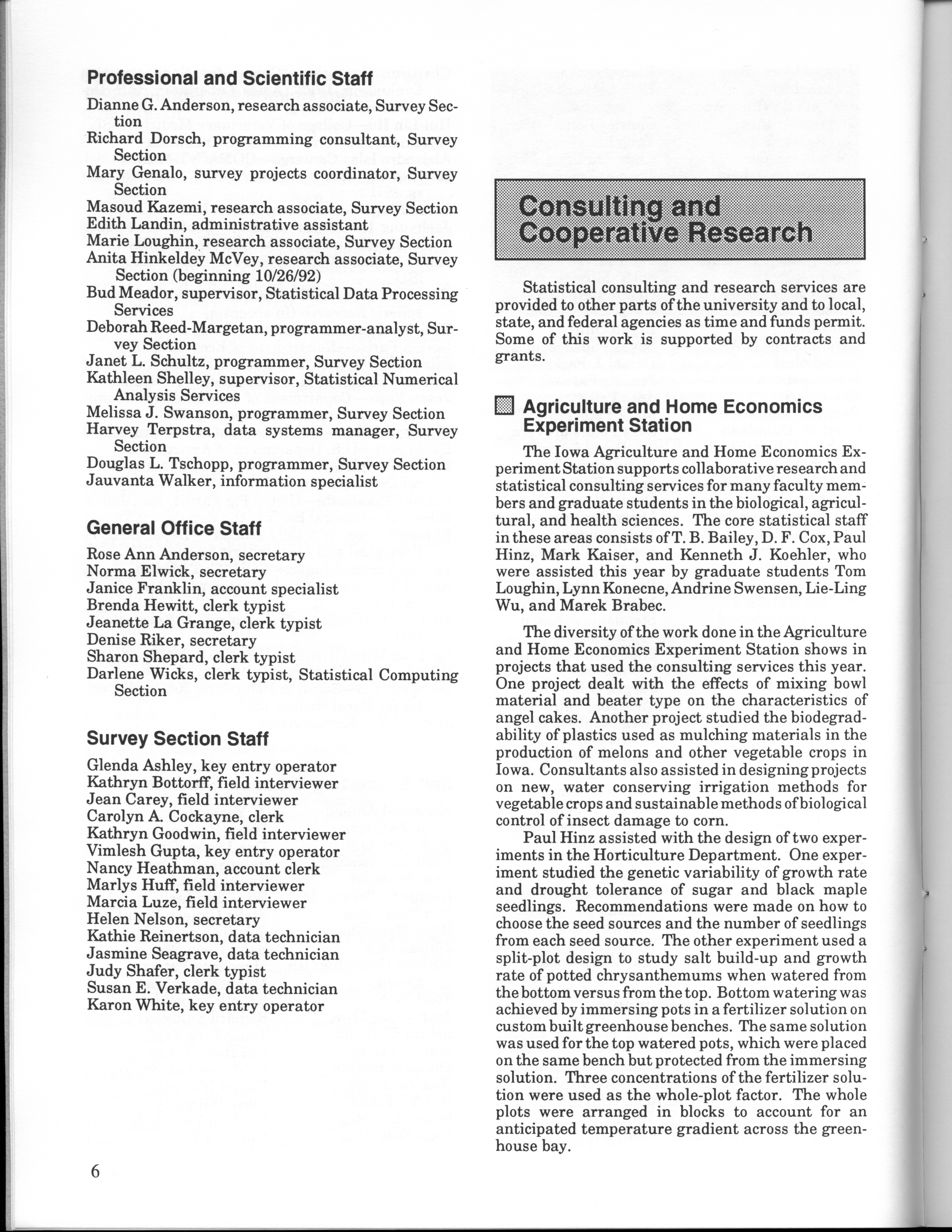 - "Statistical Laboratory Annual Report, July 1, 1992 to June 30, 1993", Iowa State University Statistical Laboratory Annual Reports, Iowa State University Library Digital Collections