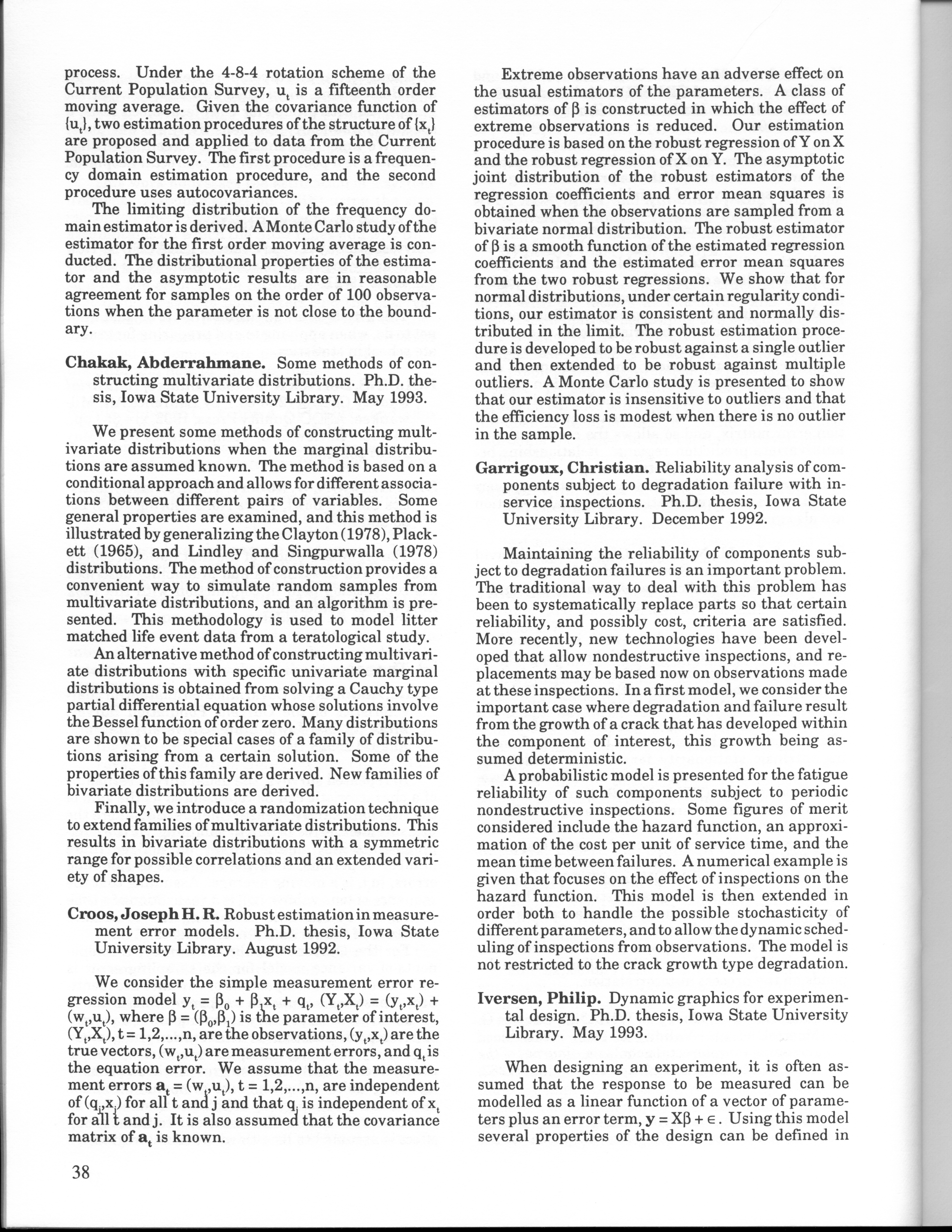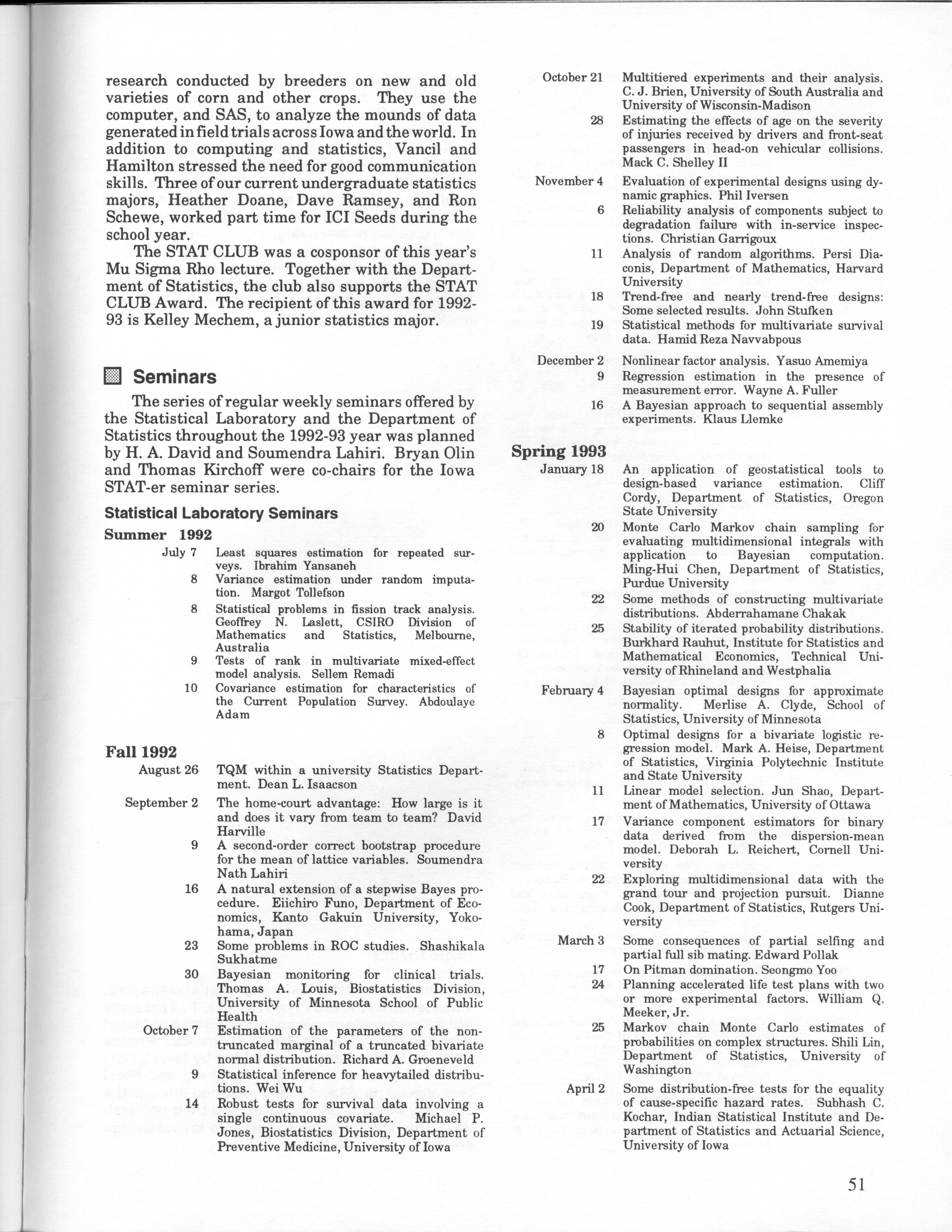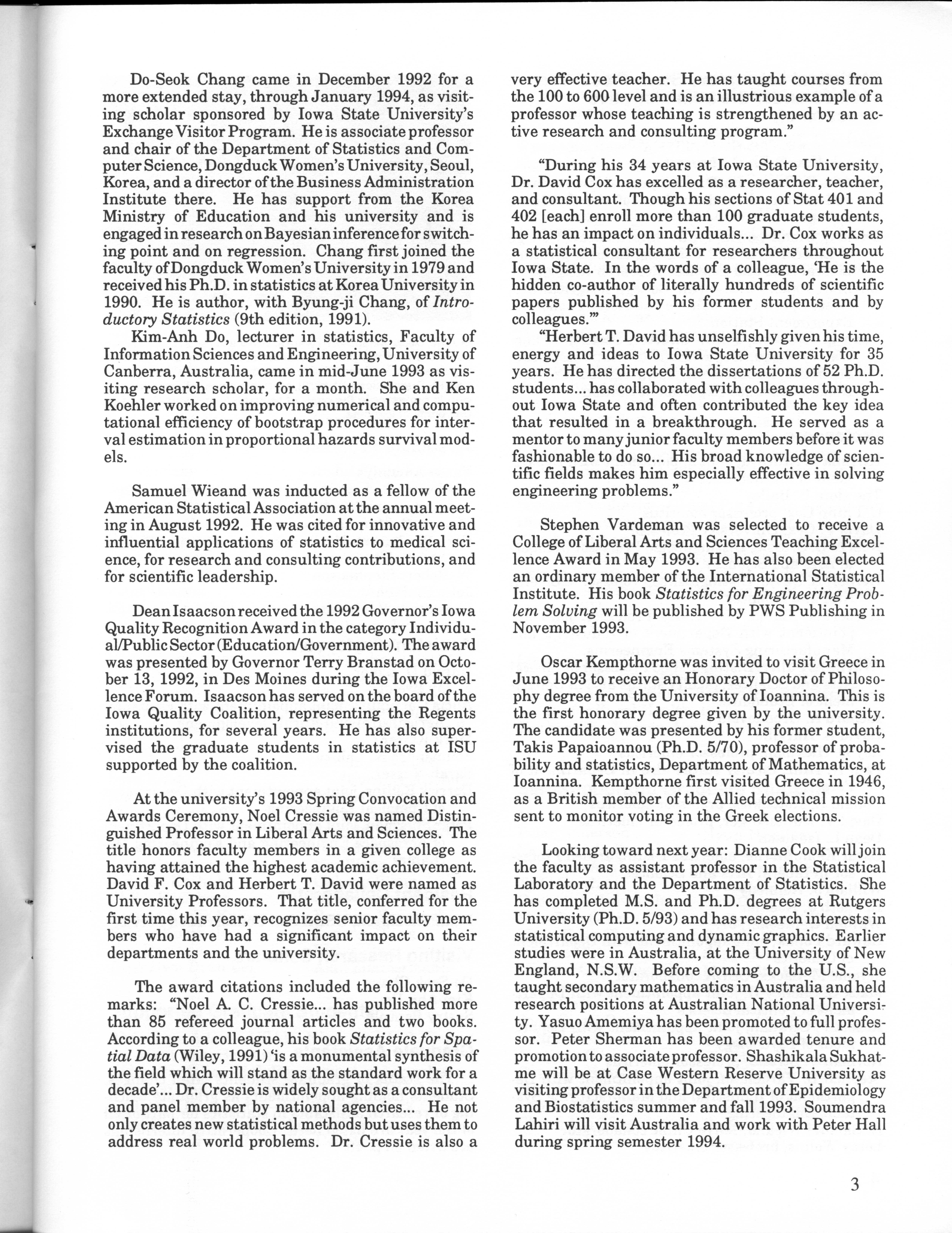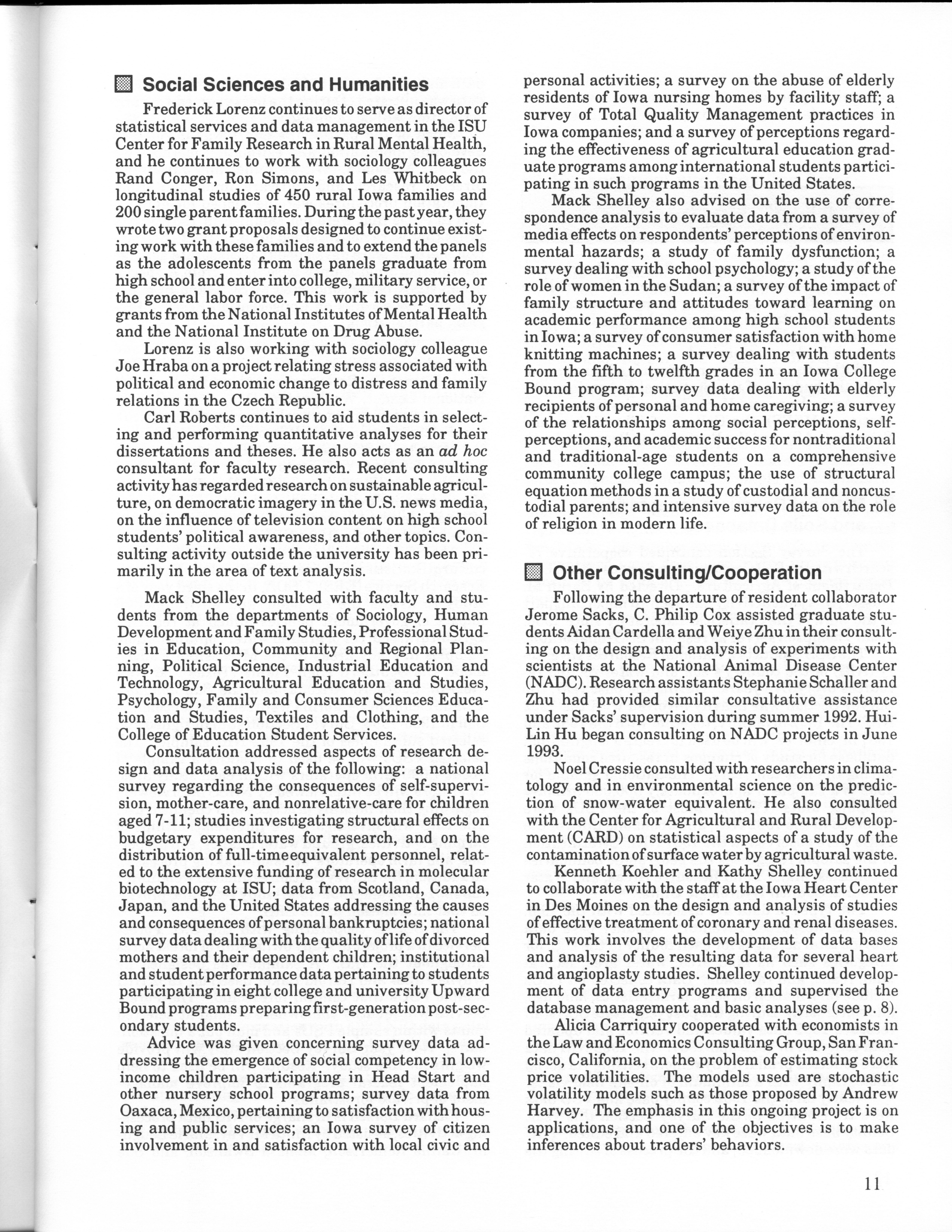 - "Statistical Laboratory Annual Report, July 1, 1992 to June 30, 1993", Iowa State University Statistical Laboratory Annual Reports, Iowa State University Library Digital Collections
