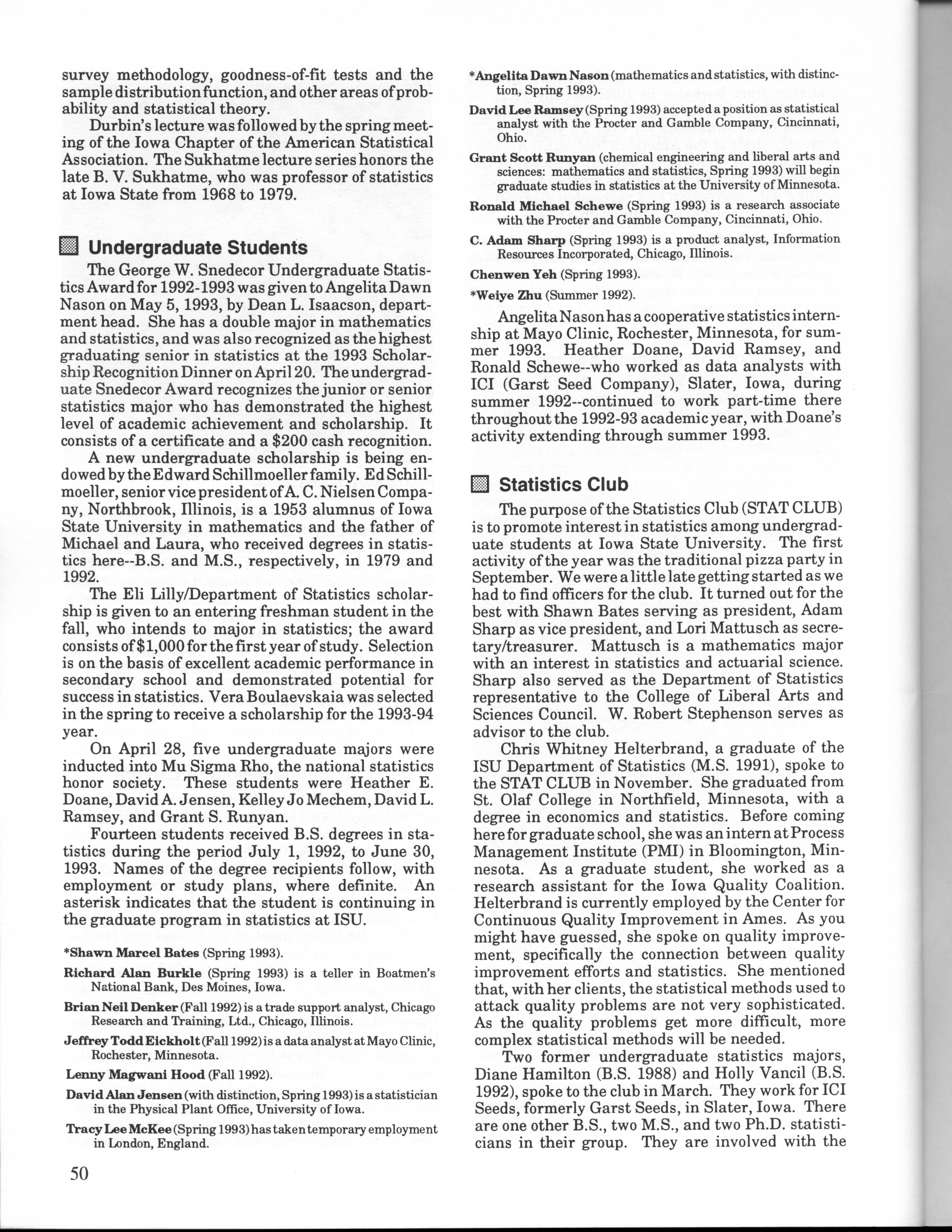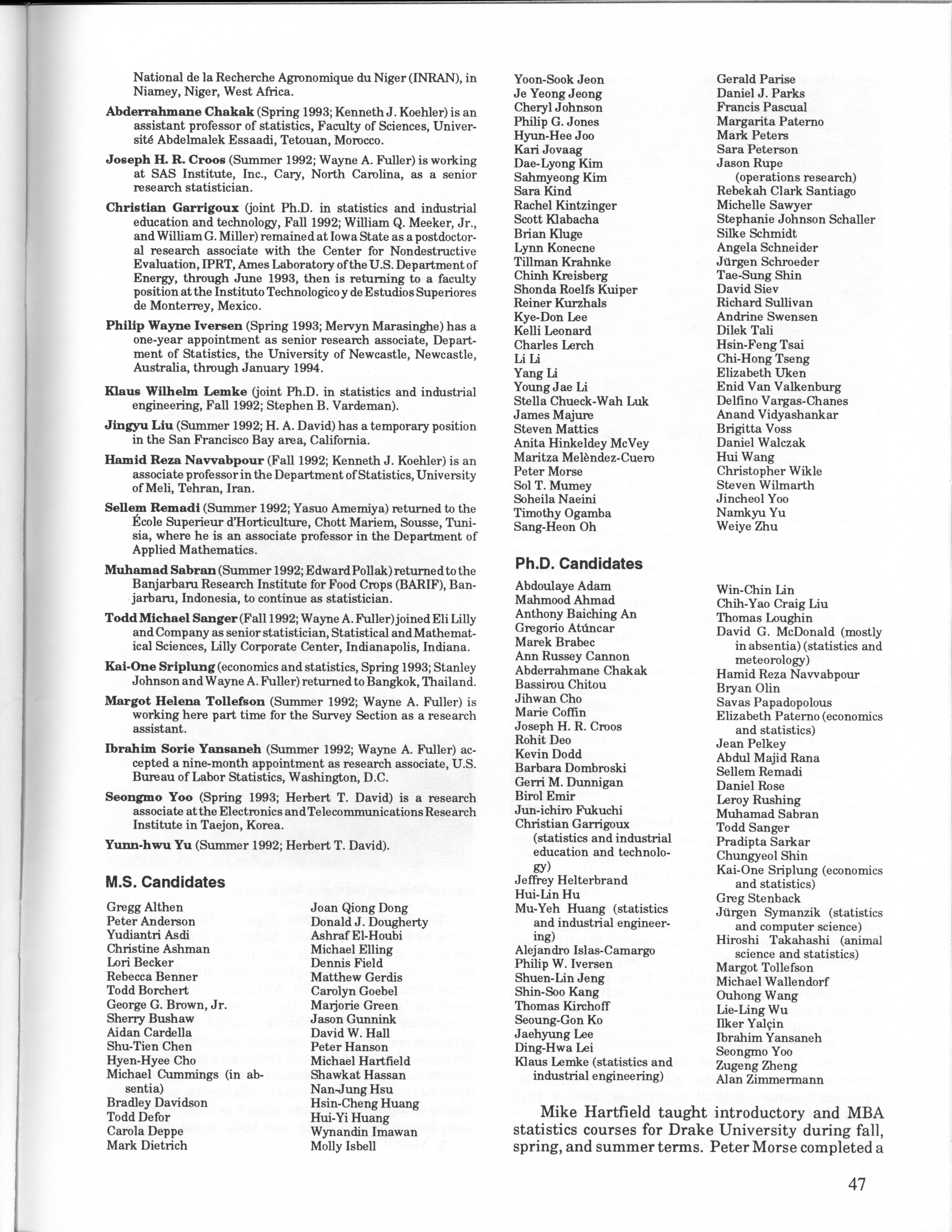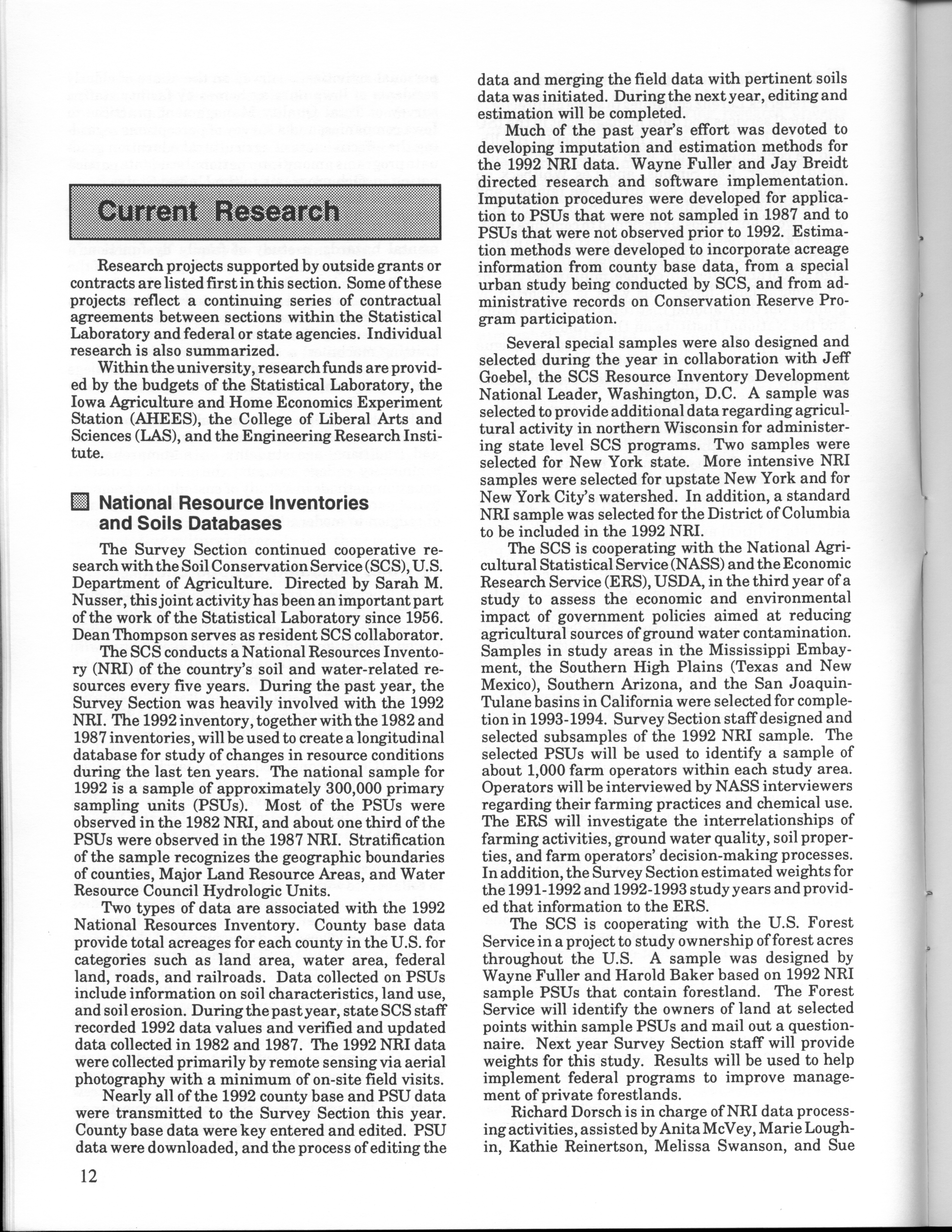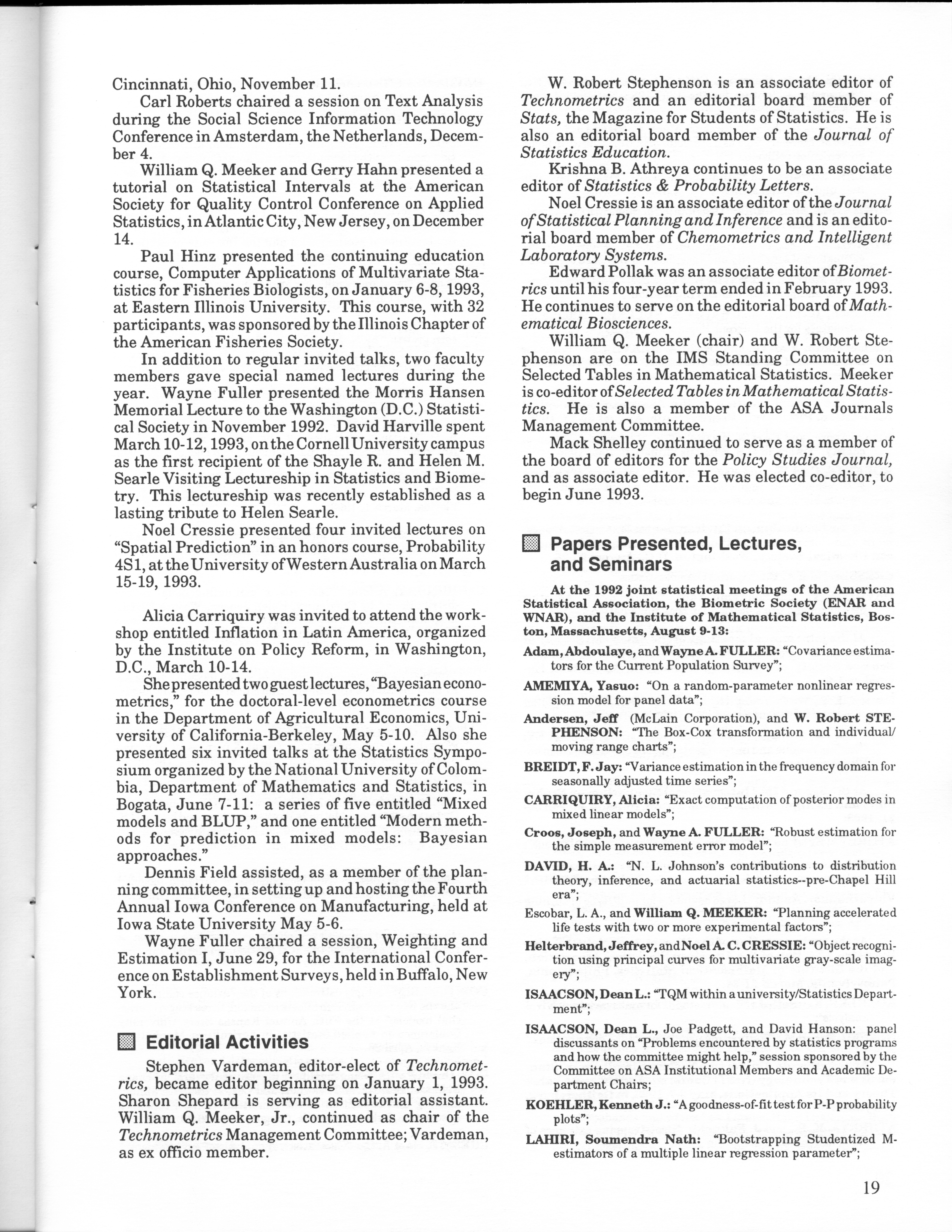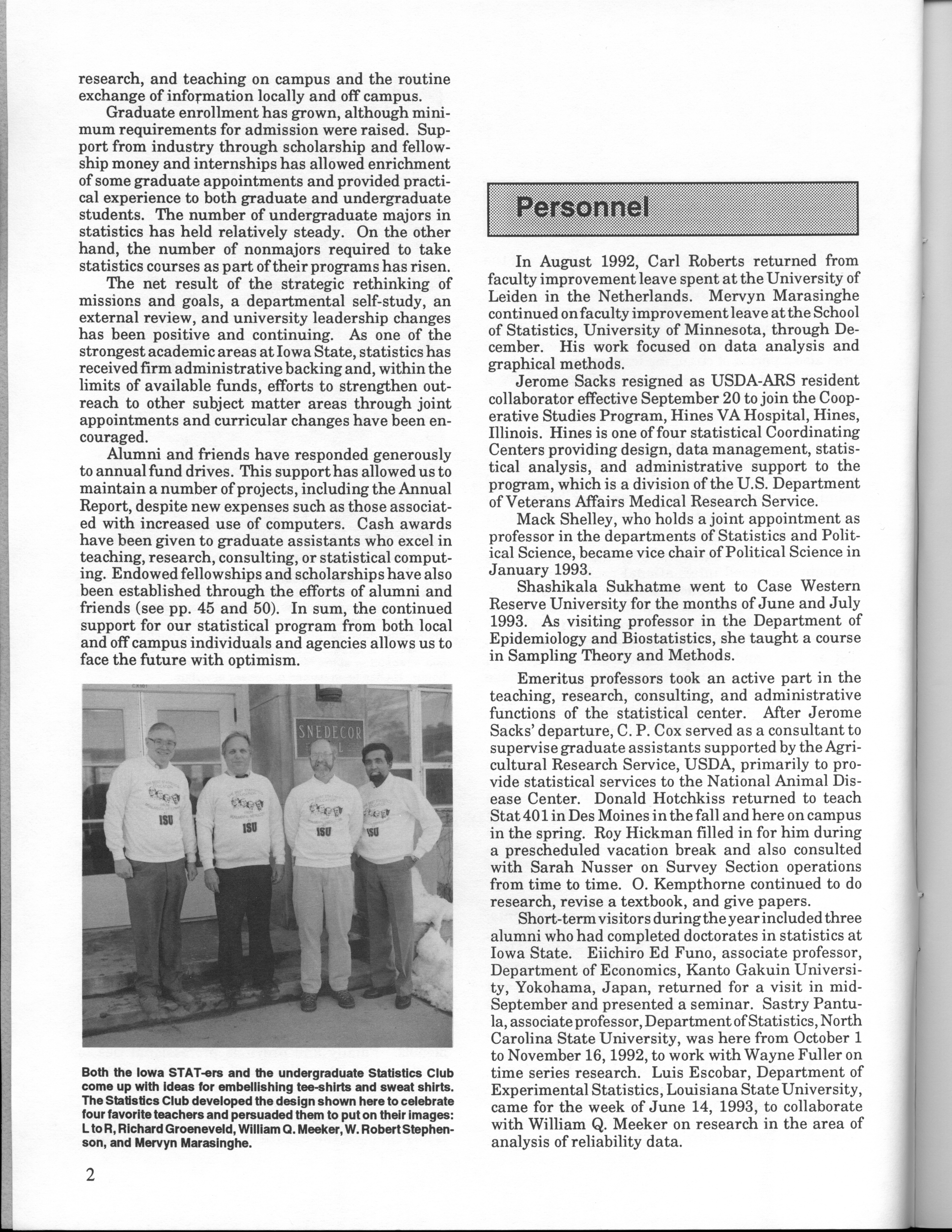 - "Statistical Laboratory Annual Report, July 1, 1992 to June 30, 1993", Iowa State University Statistical Laboratory Annual Reports, Iowa State University Library Digital Collections