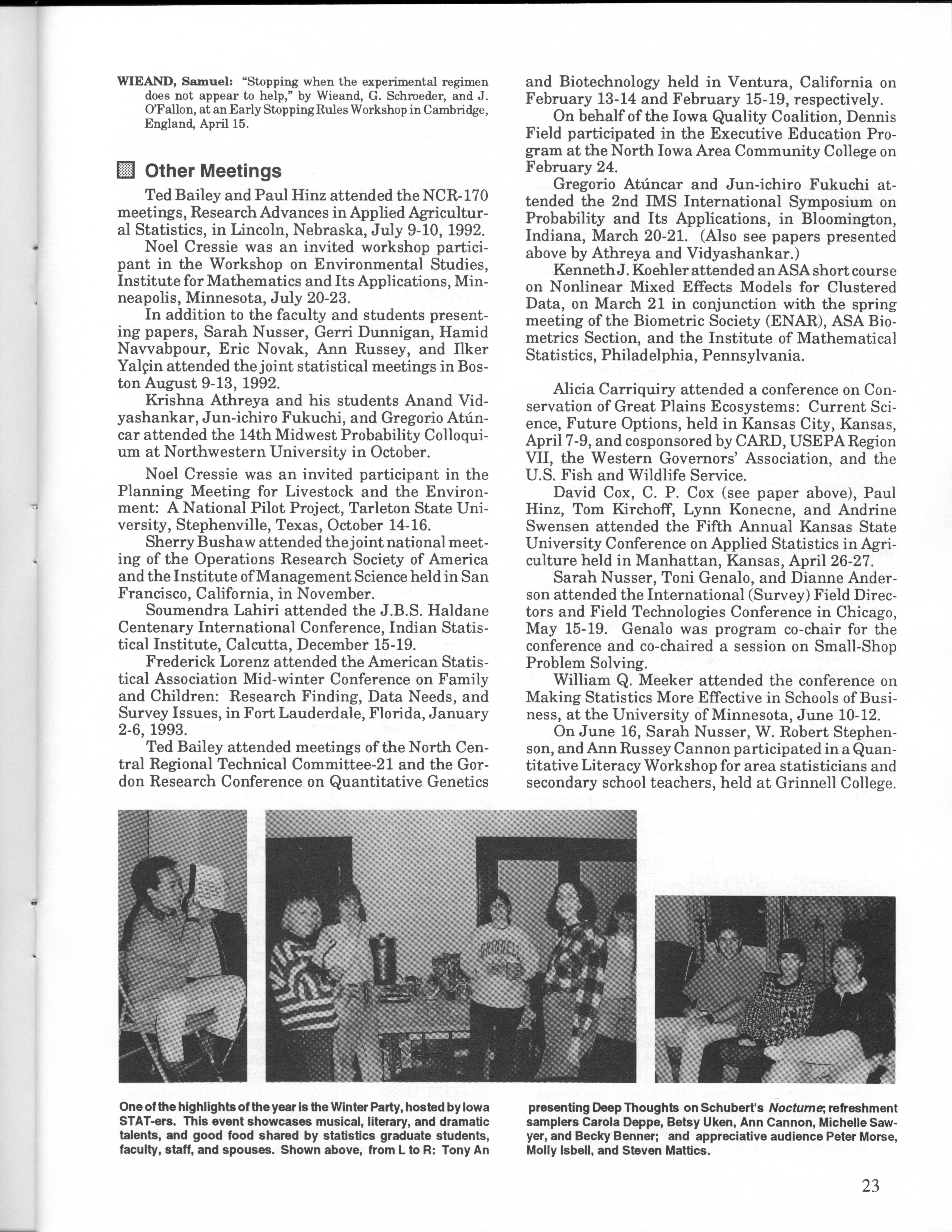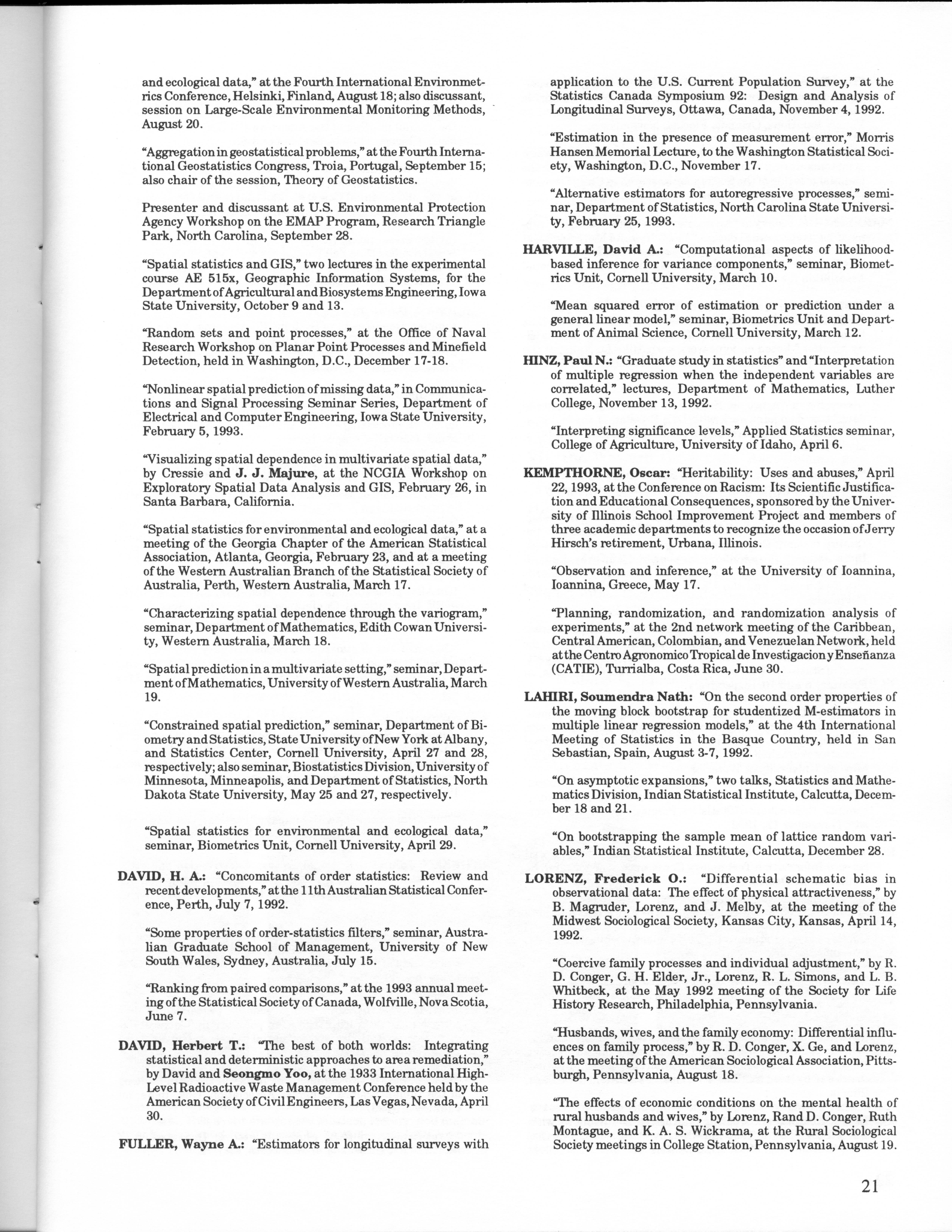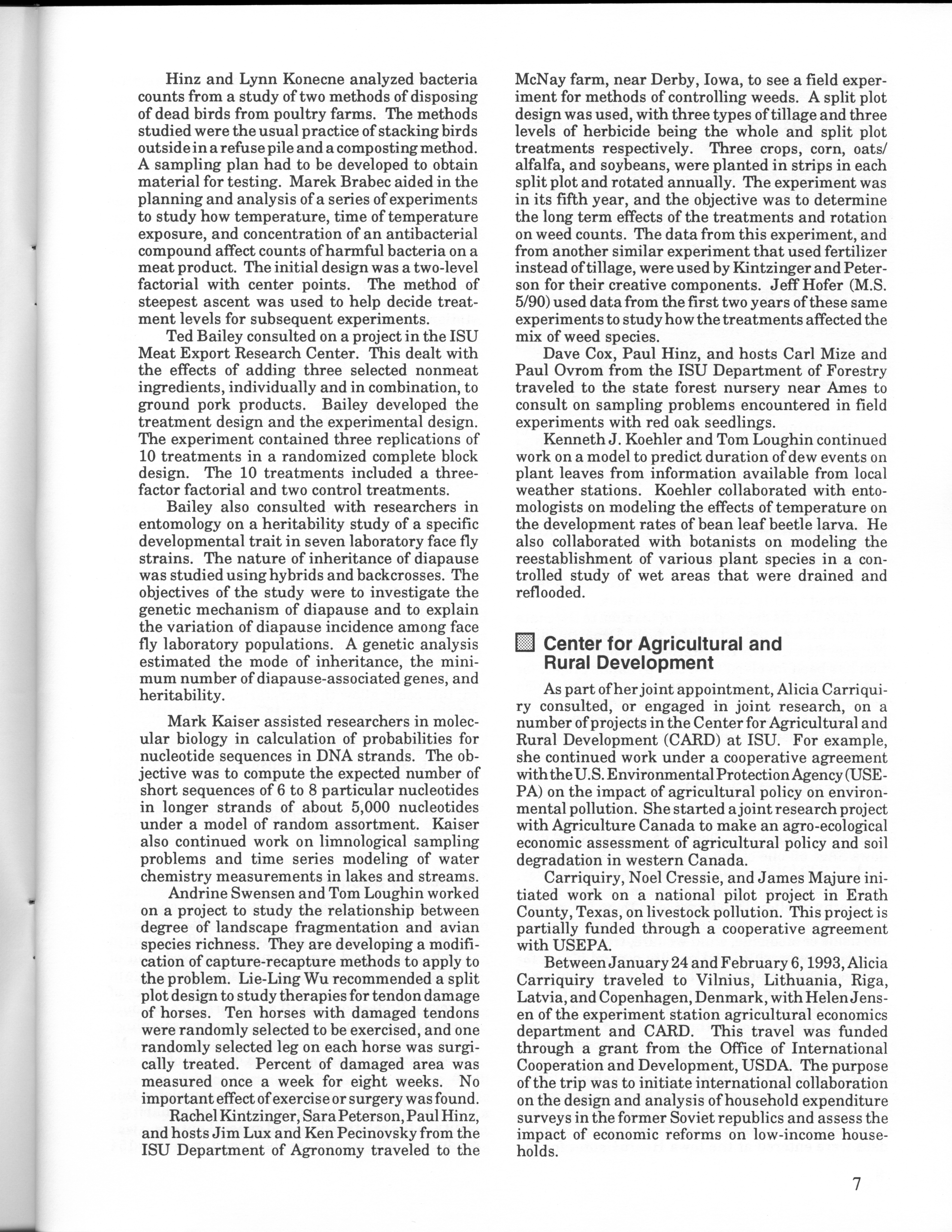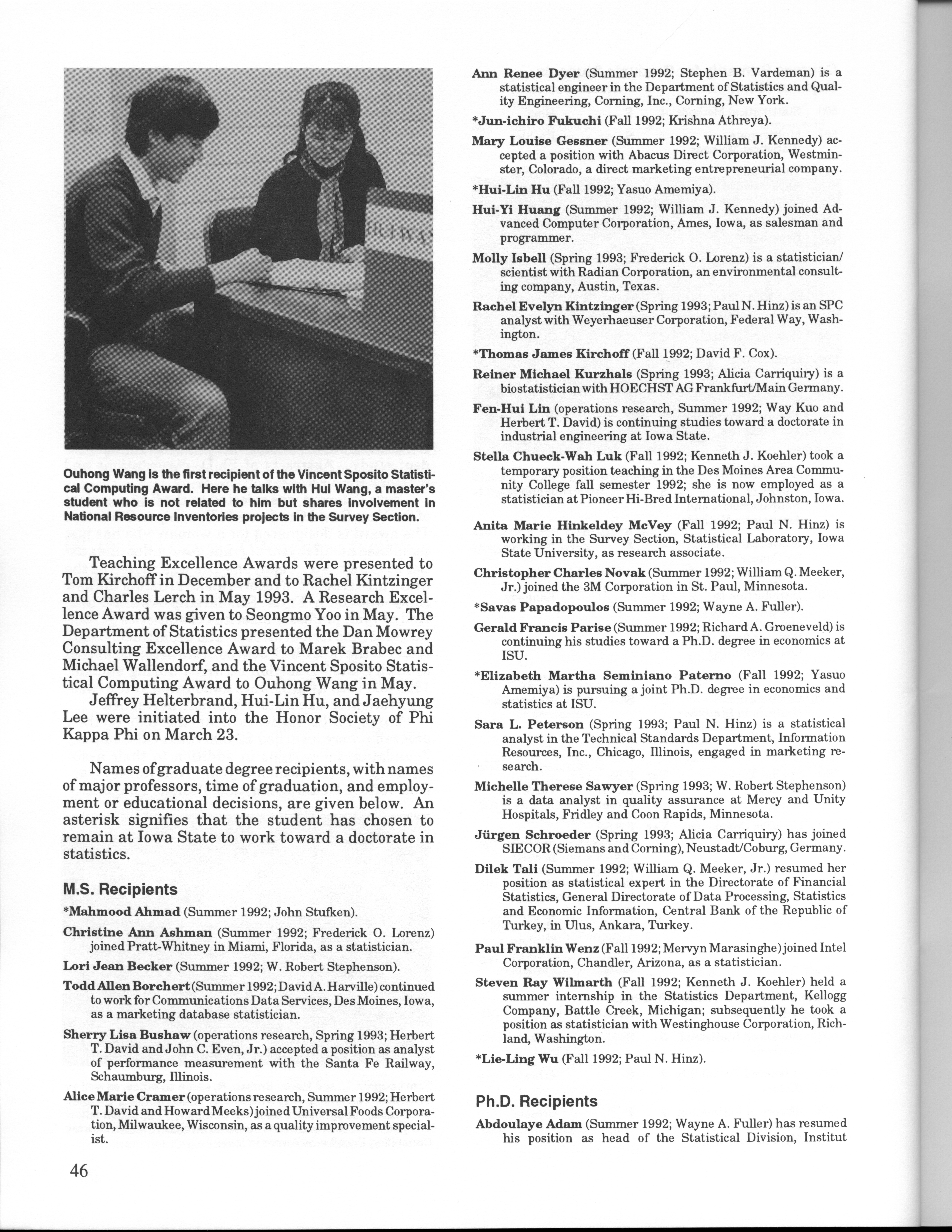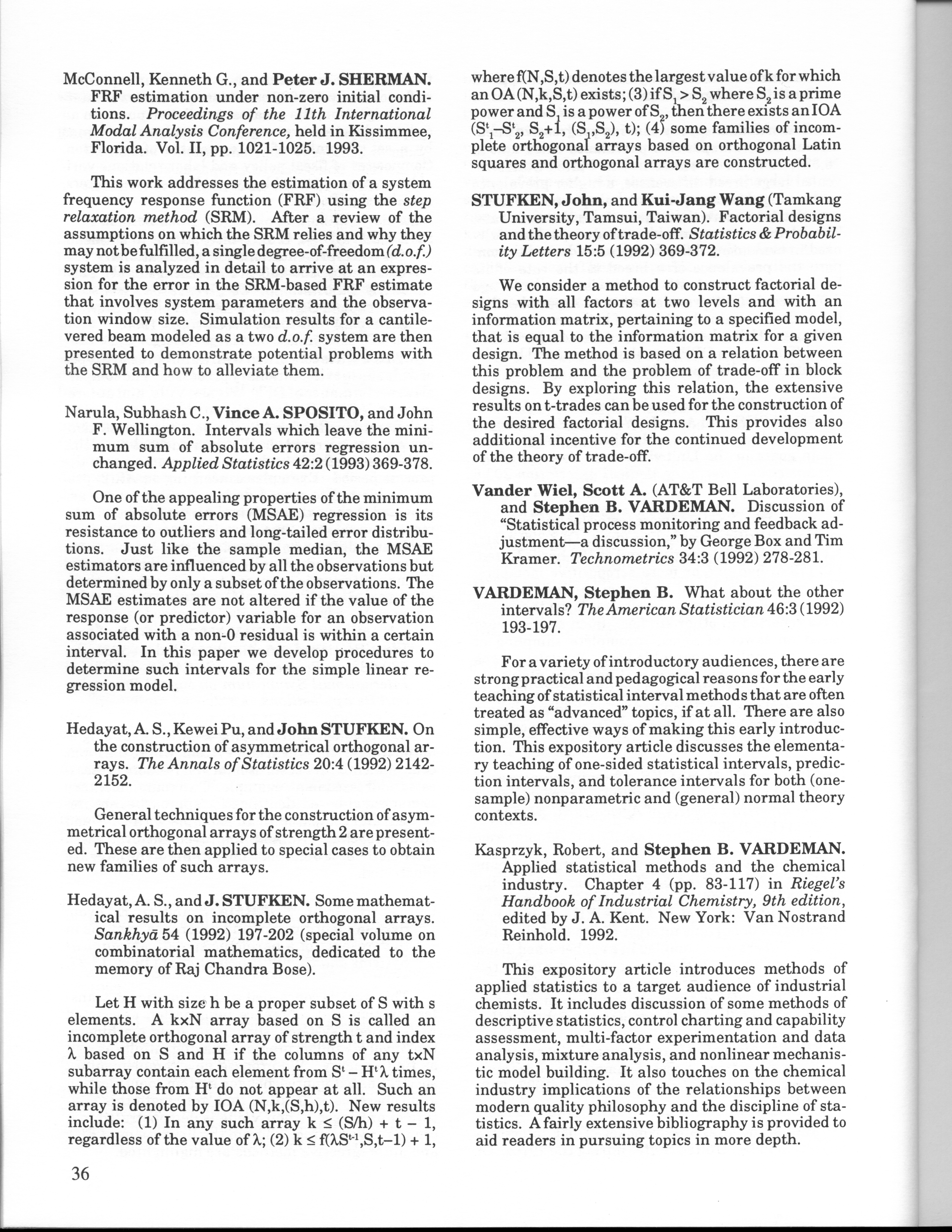 - "Statistical Laboratory Annual Report, July 1, 1992 to June 30, 1993", Iowa State University Statistical Laboratory Annual Reports, Iowa State University Library Digital Collections