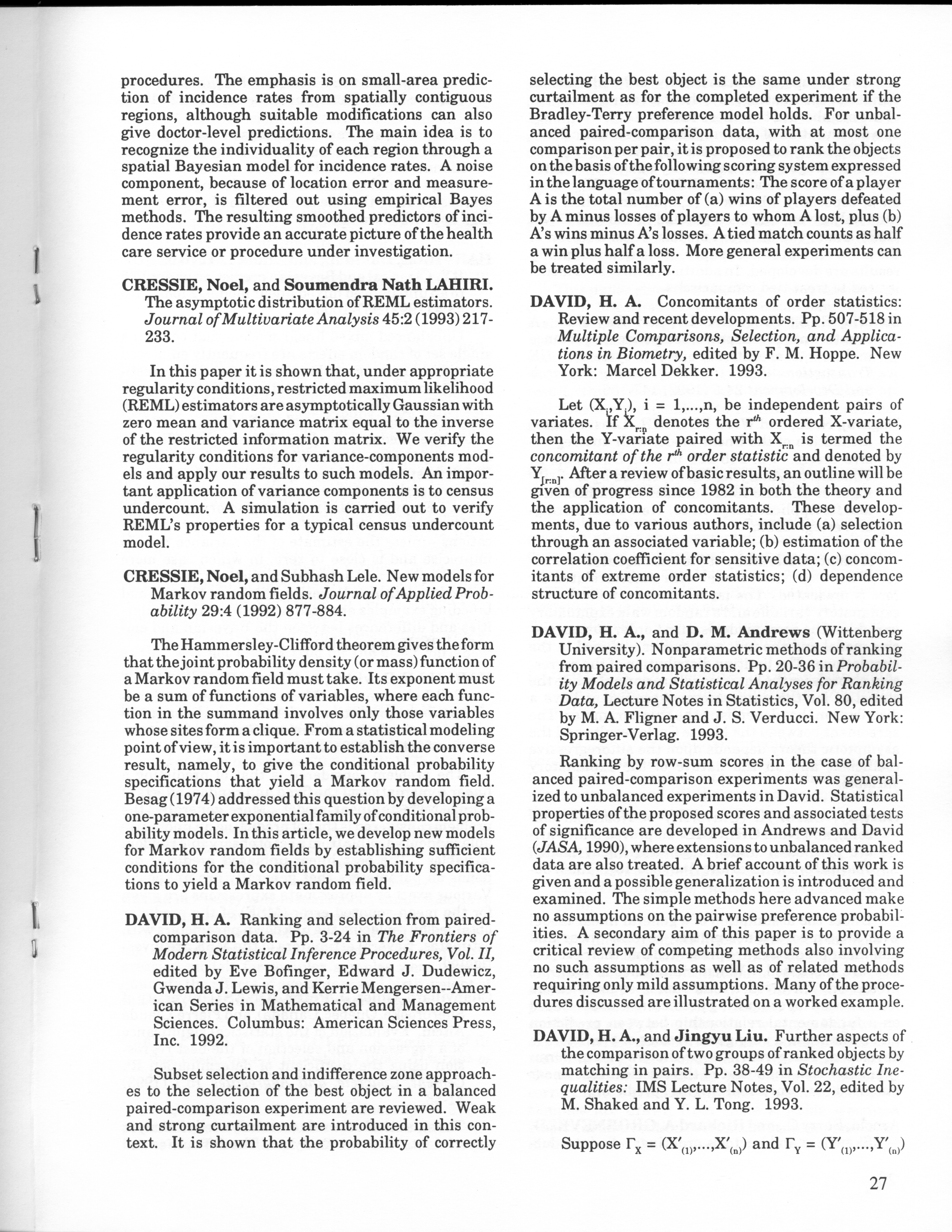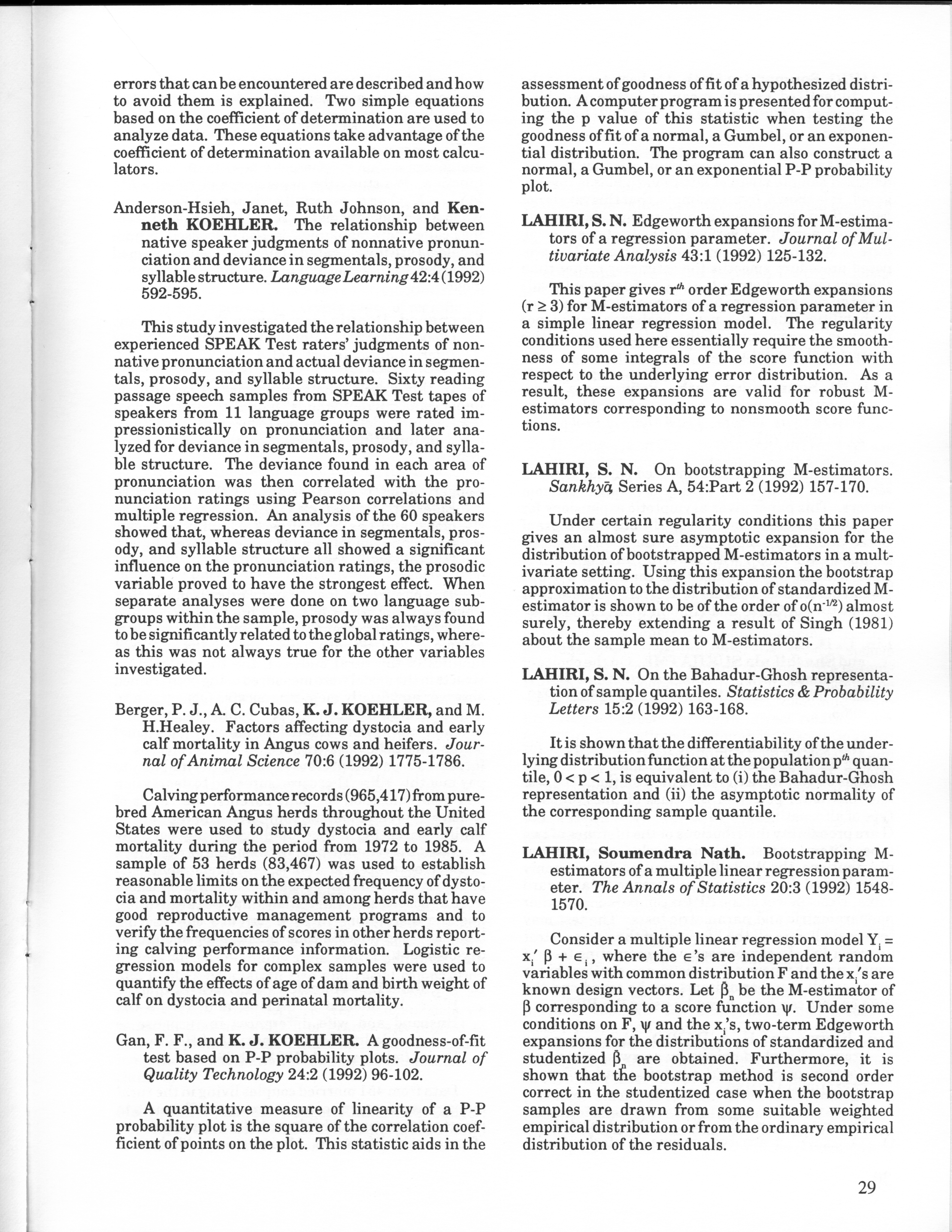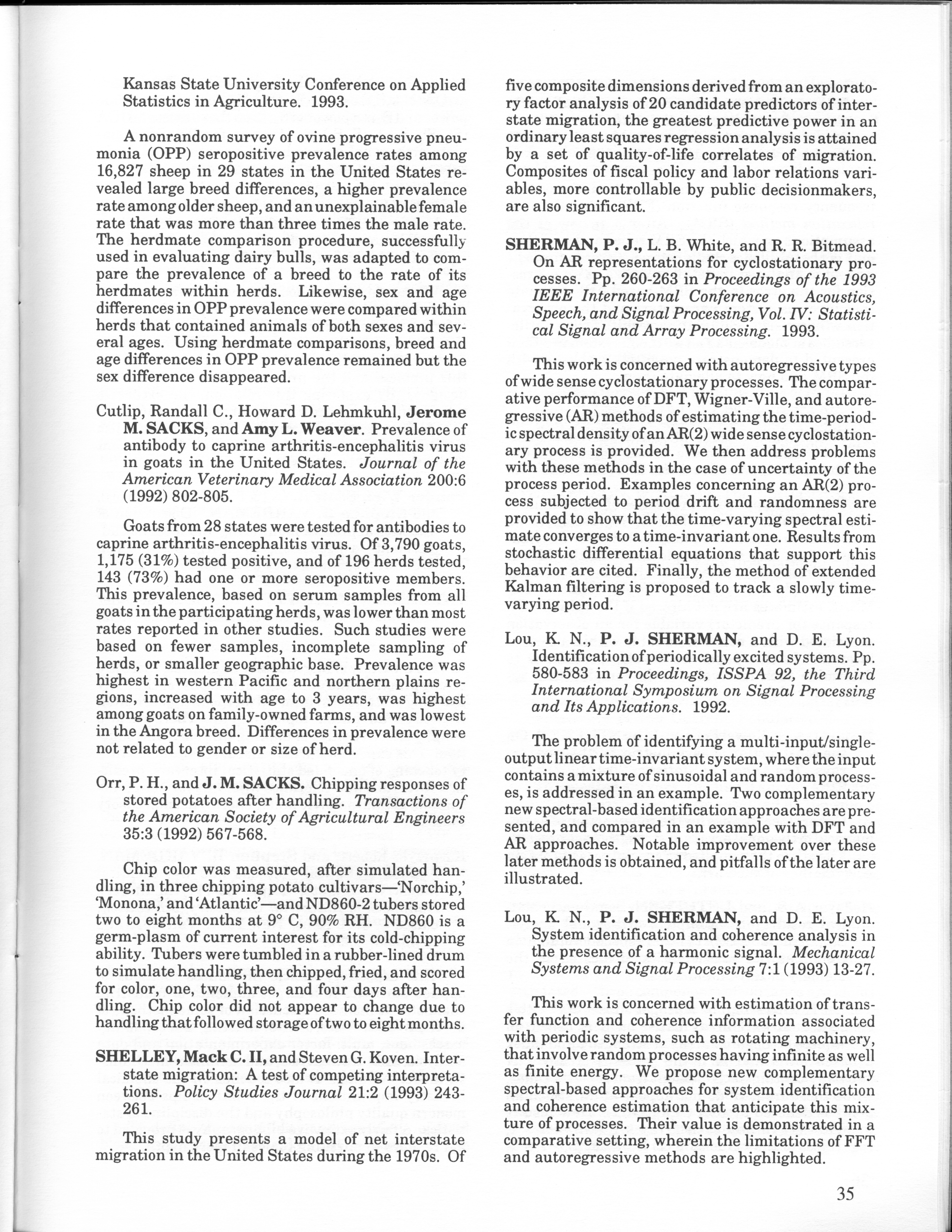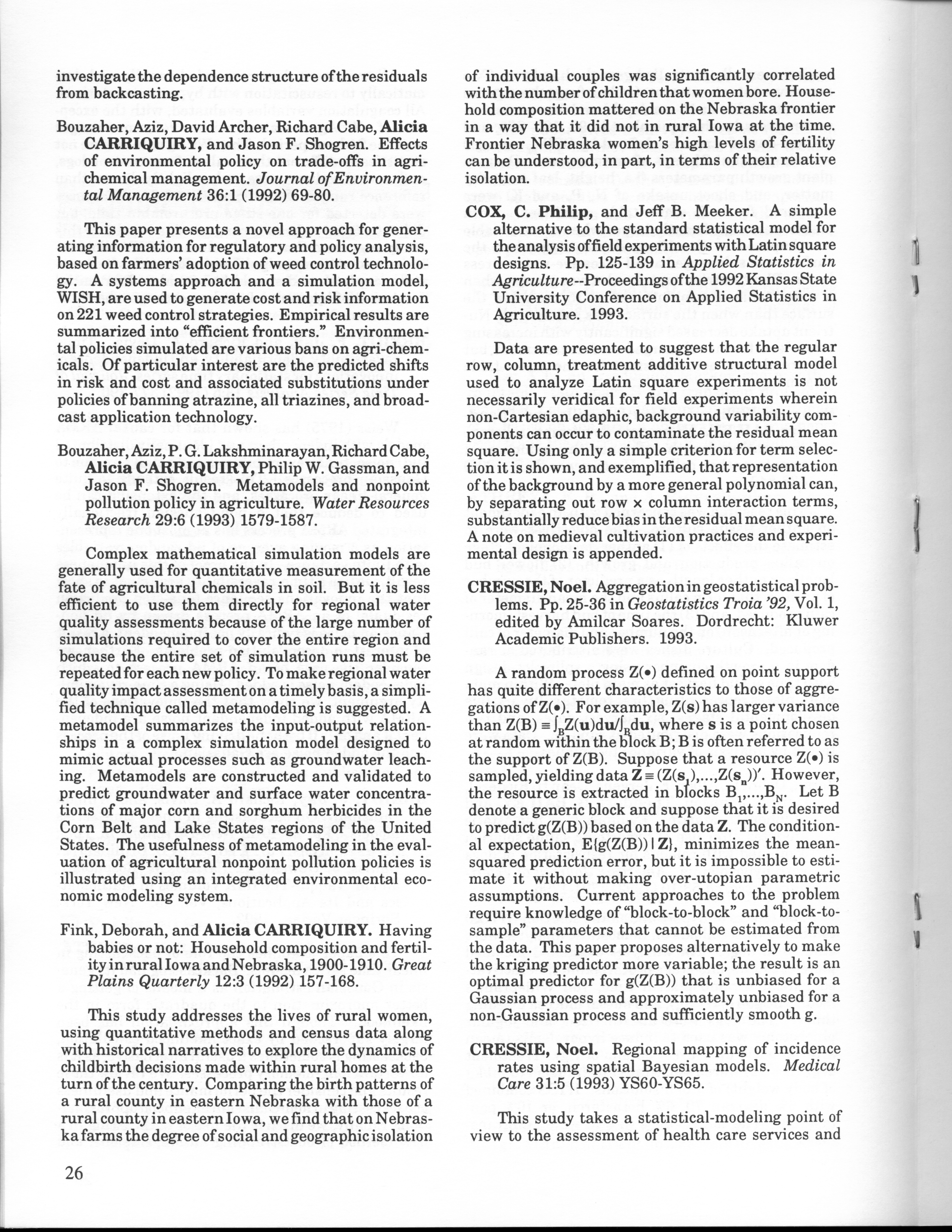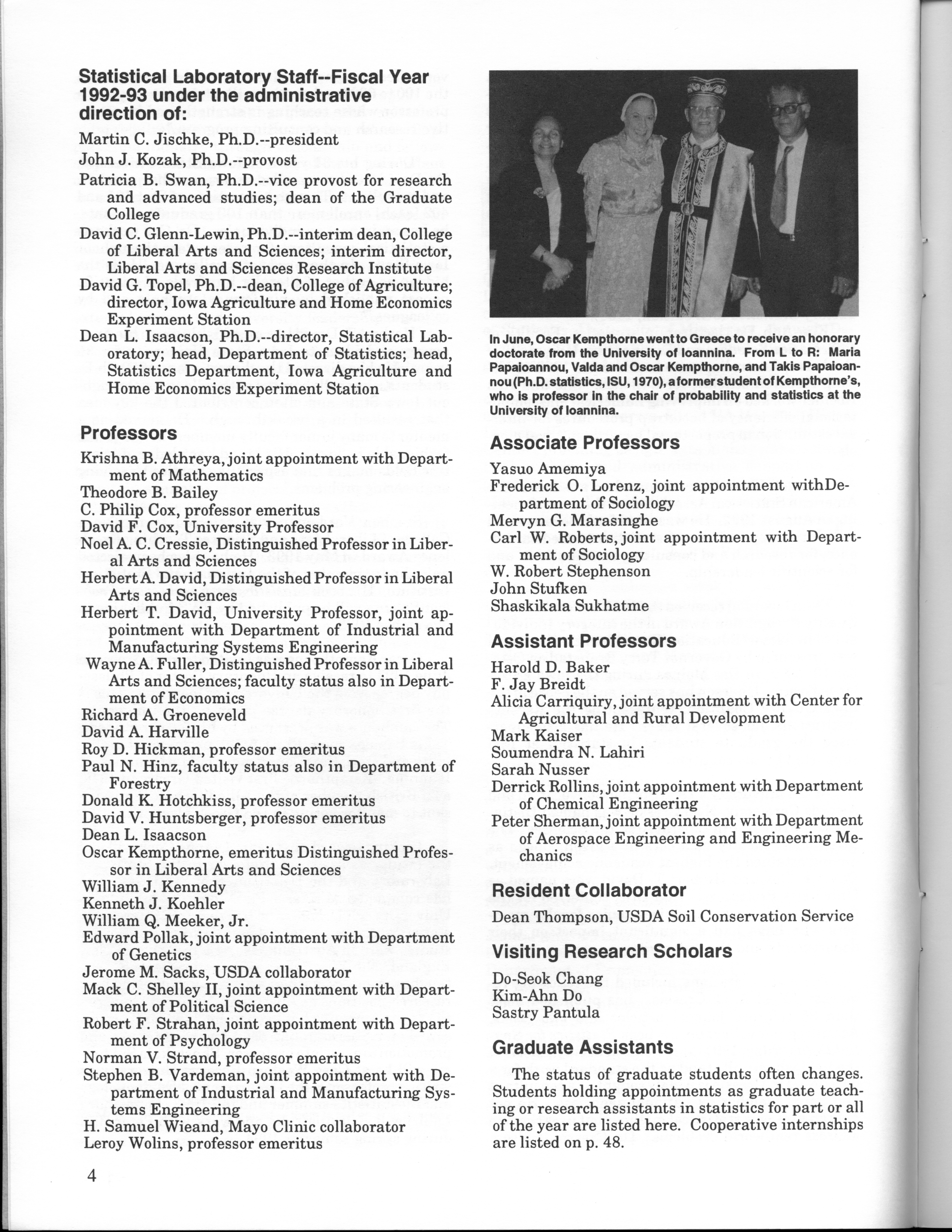 - "Statistical Laboratory Annual Report, July 1, 1992 to June 30, 1993", Iowa State University Statistical Laboratory Annual Reports, Iowa State University Library Digital Collections