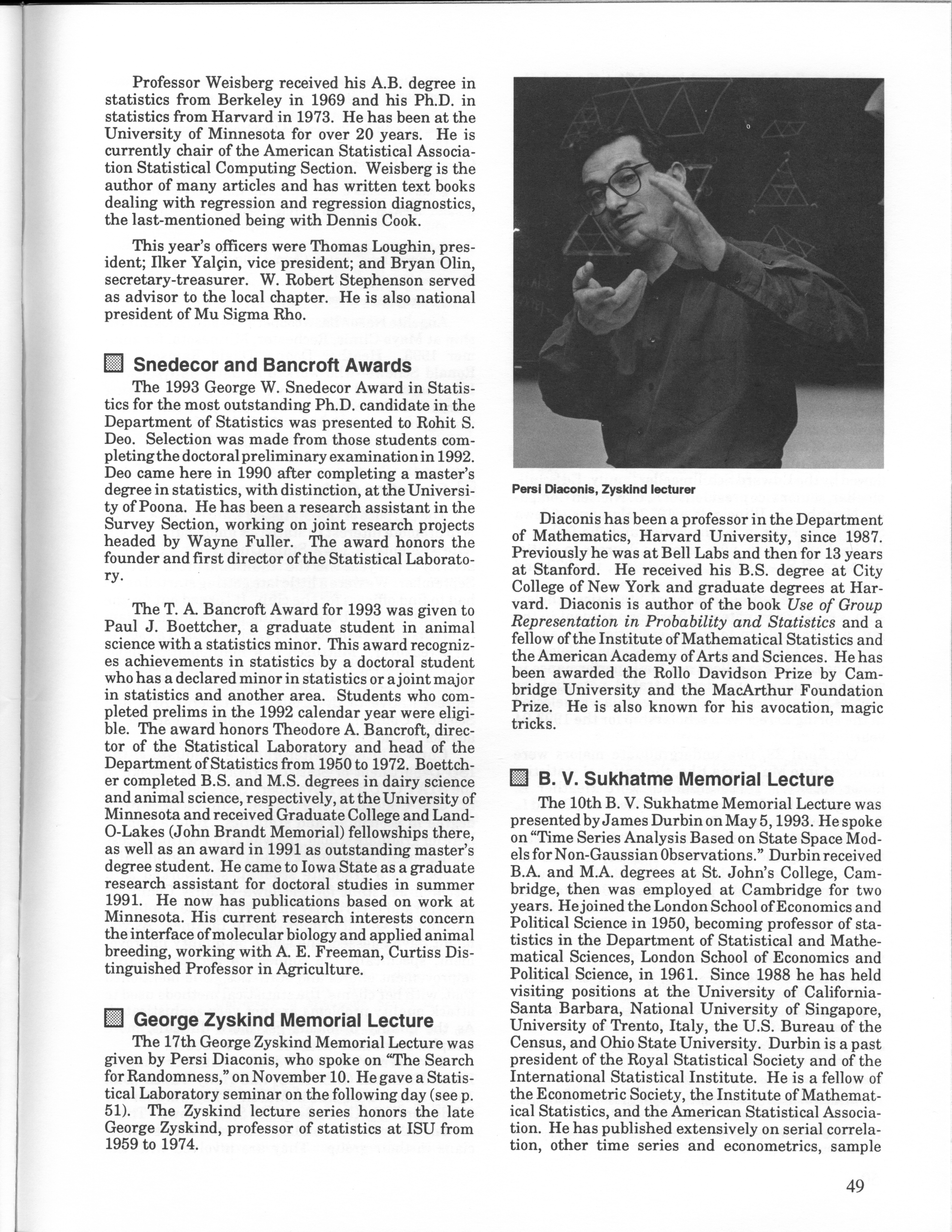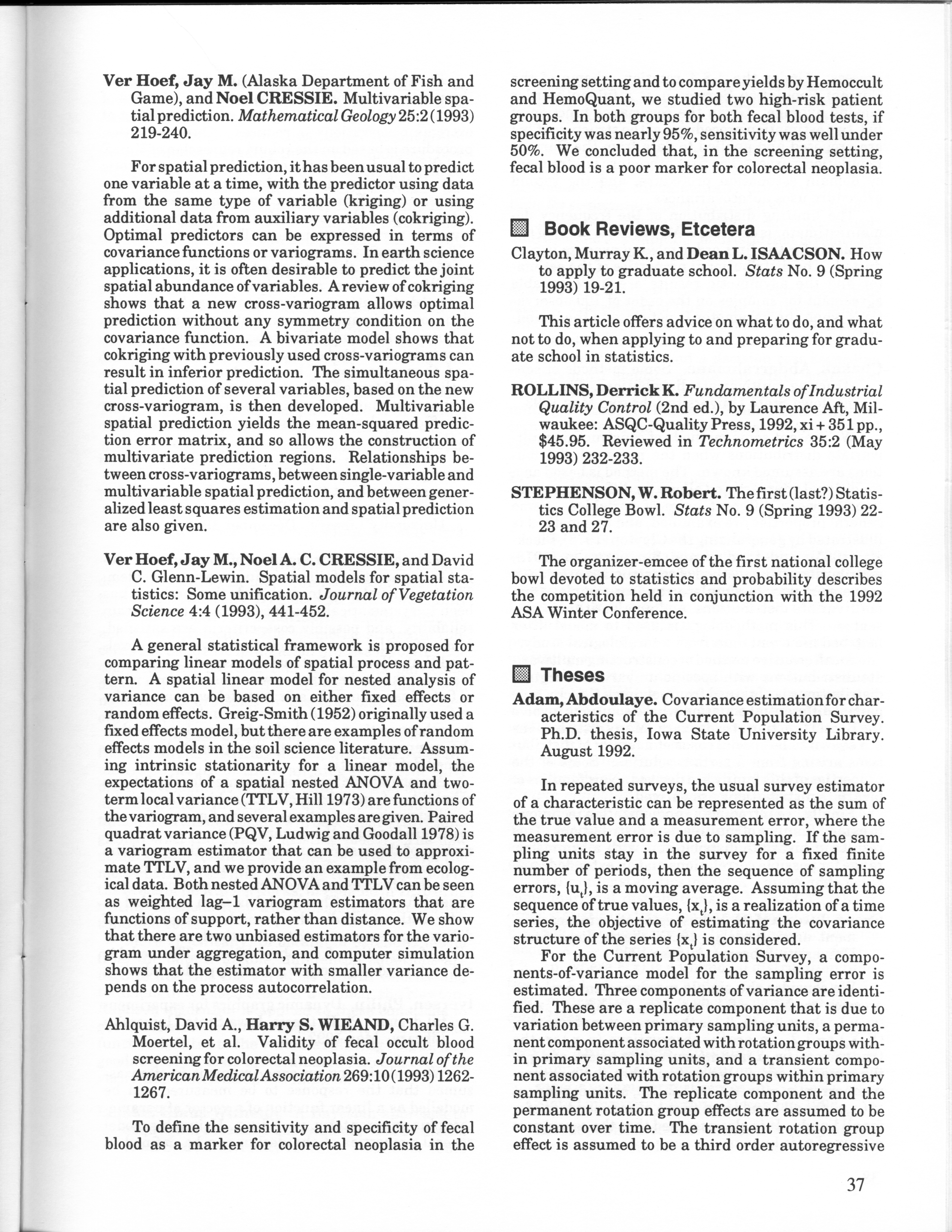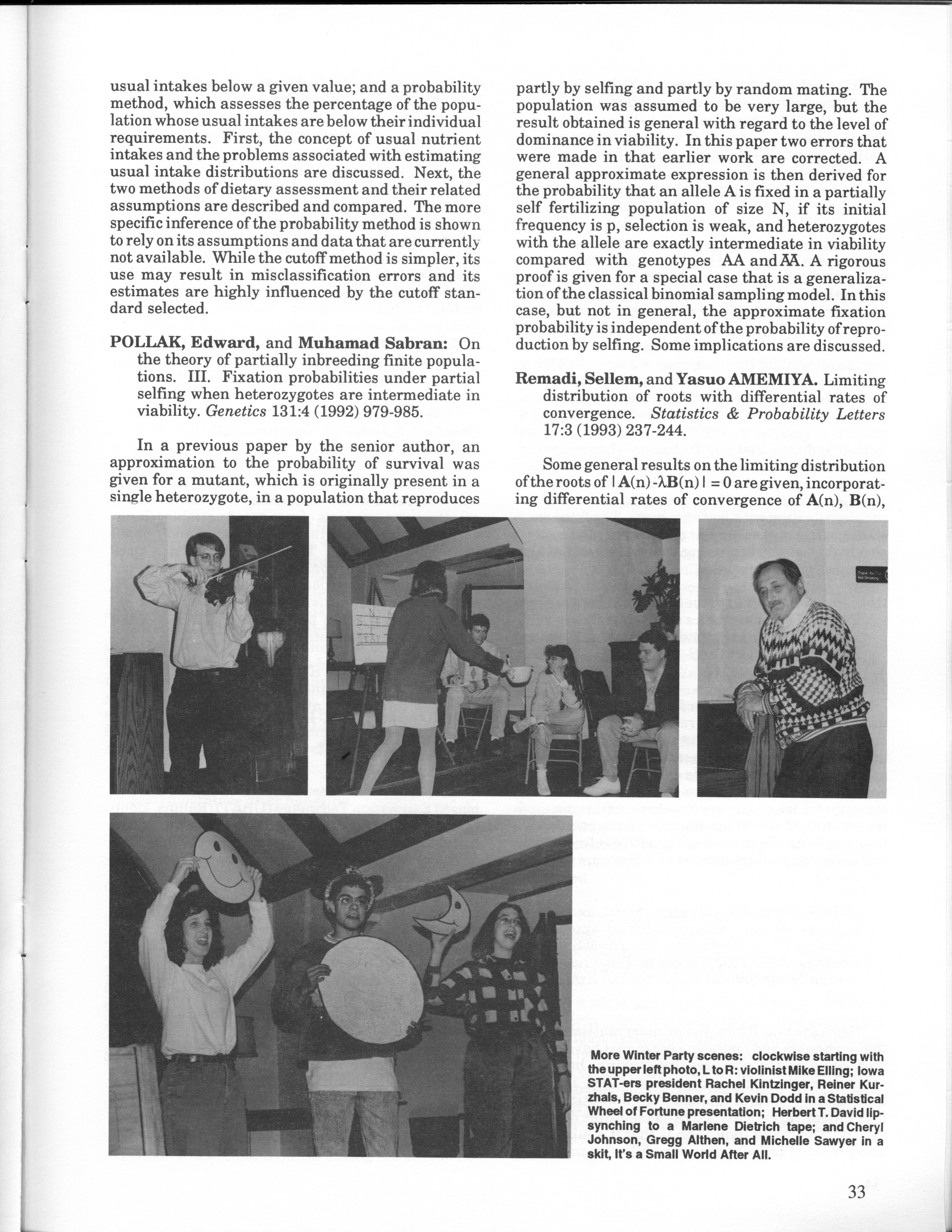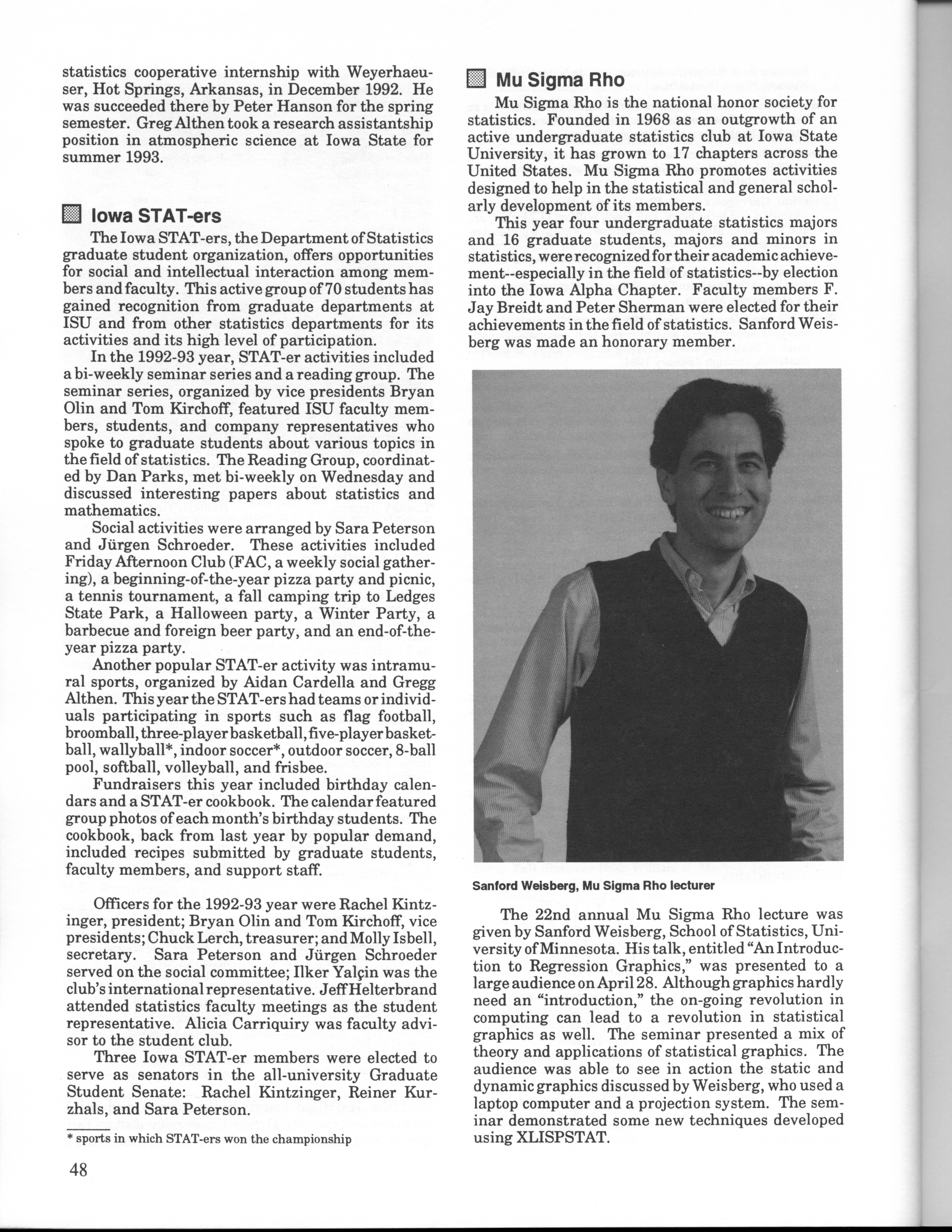 - "Statistical Laboratory Annual Report, July 1, 1992 to June 30, 1993", Iowa State University Statistical Laboratory Annual Reports, Iowa State University Library Digital Collections