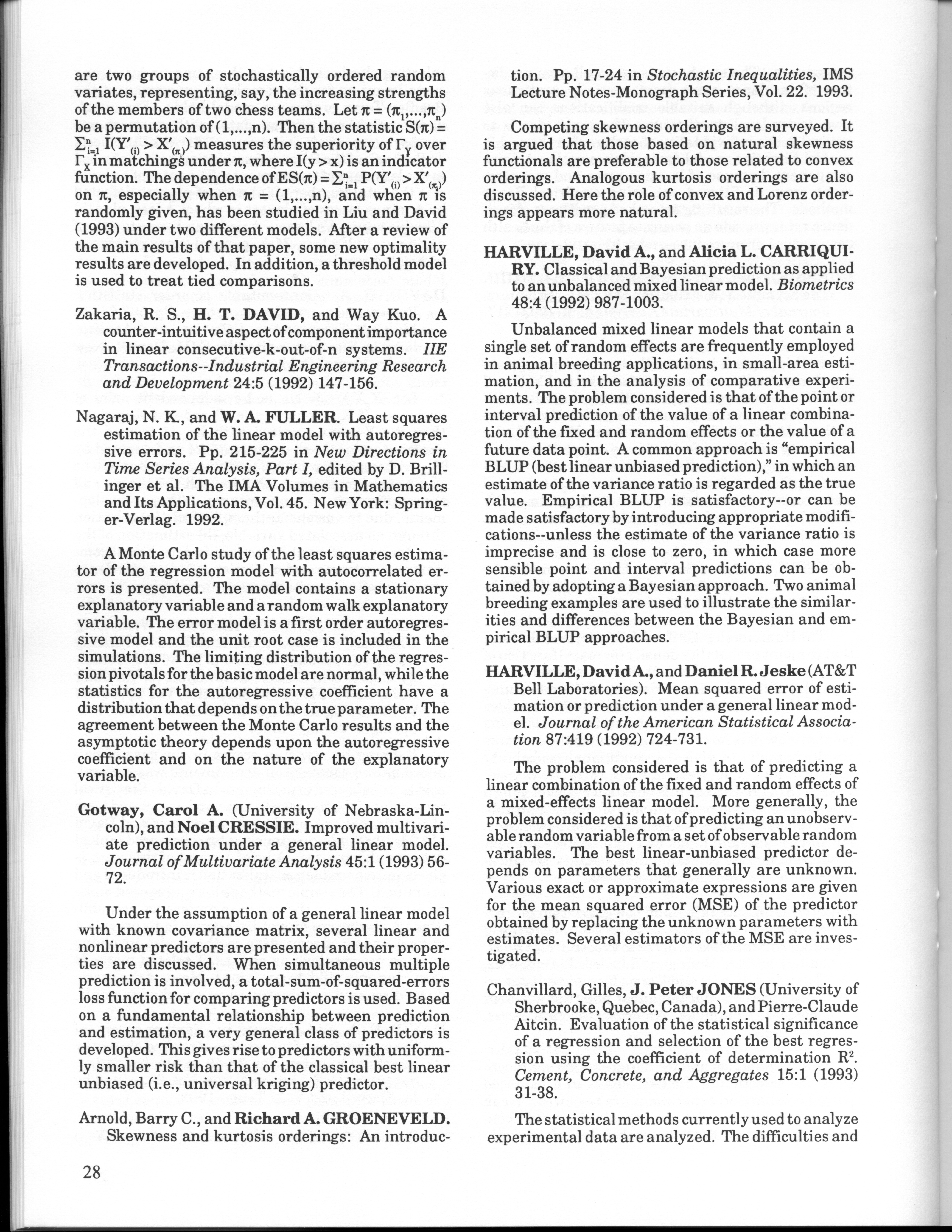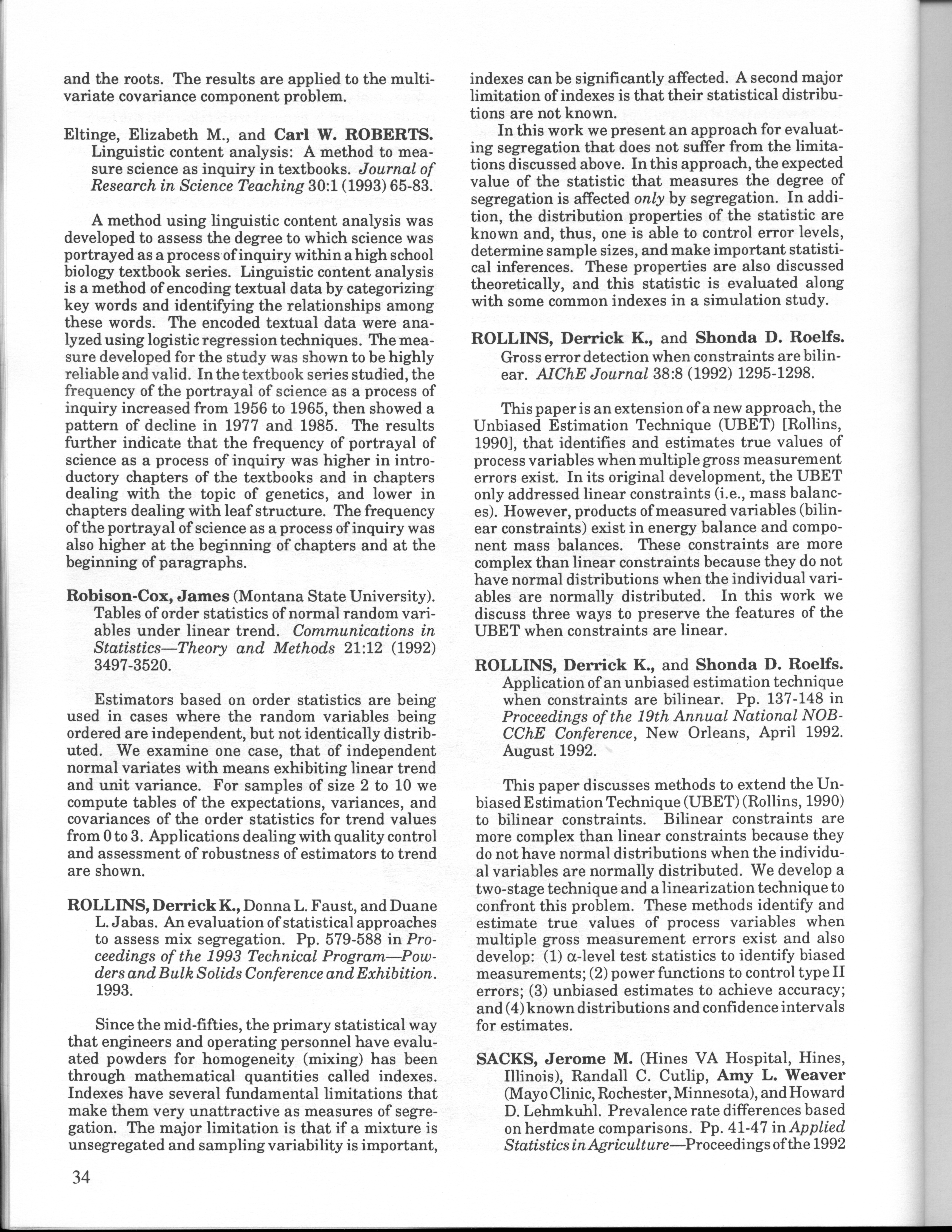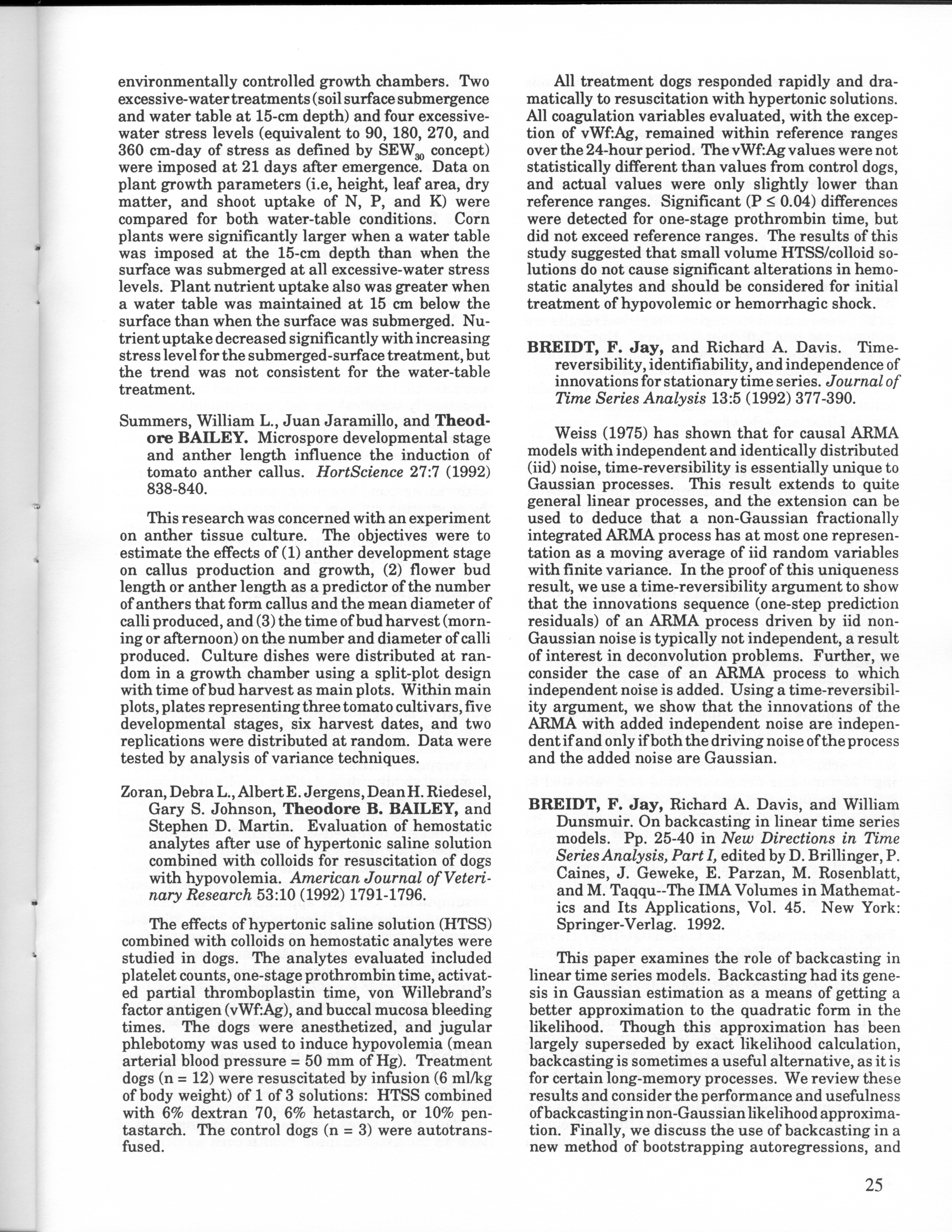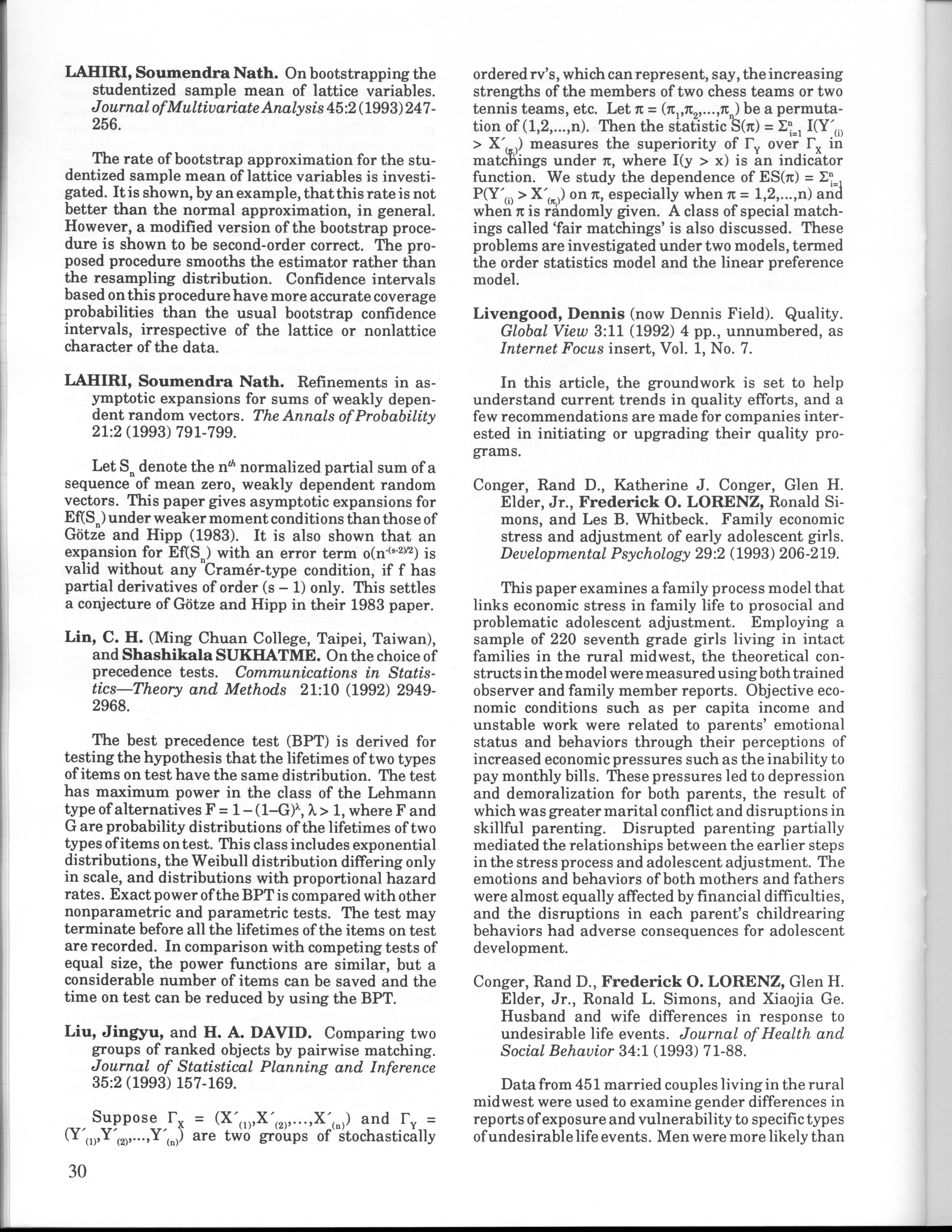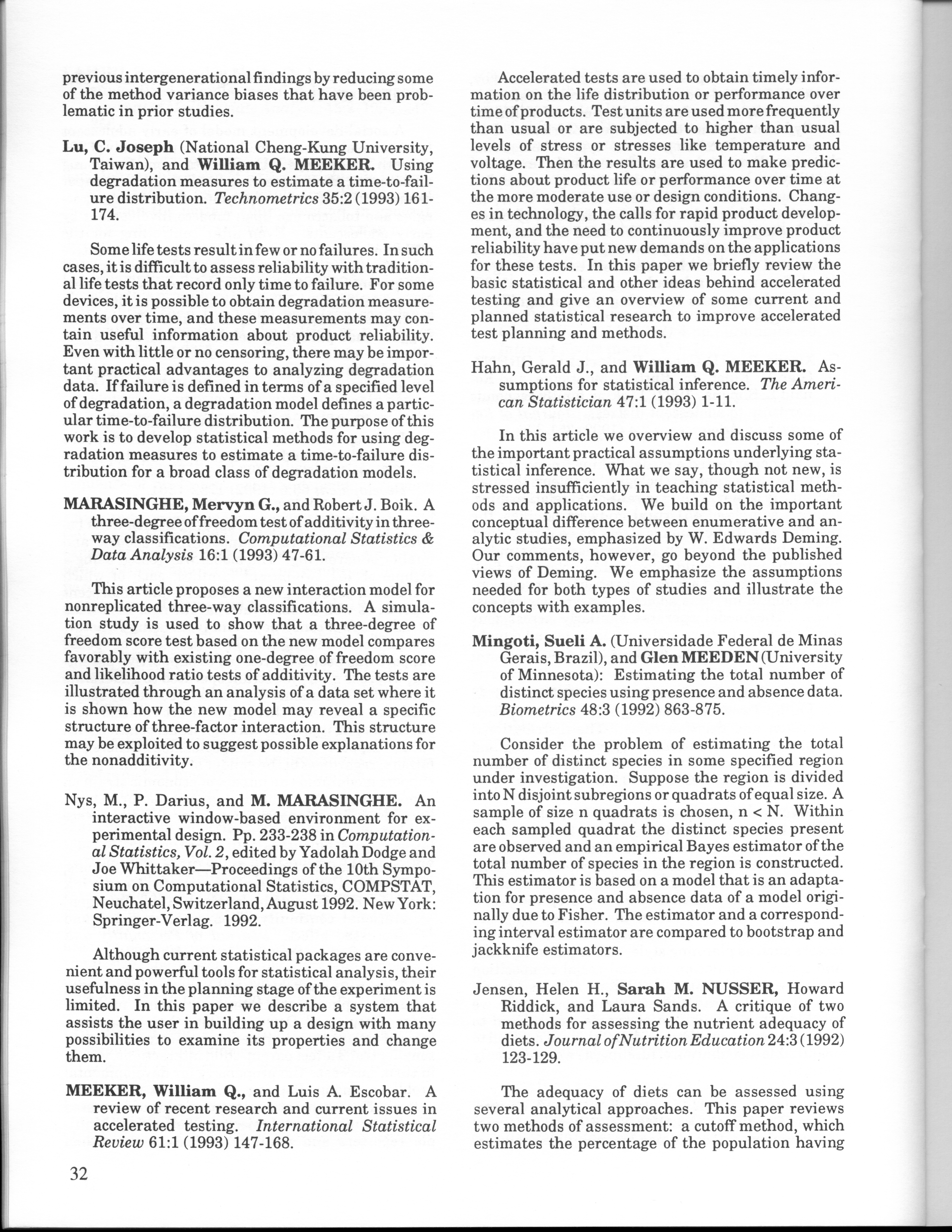 - "Statistical Laboratory Annual Report, July 1, 1992 to June 30, 1993", Iowa State University Statistical Laboratory Annual Reports, Iowa State University Library Digital Collections