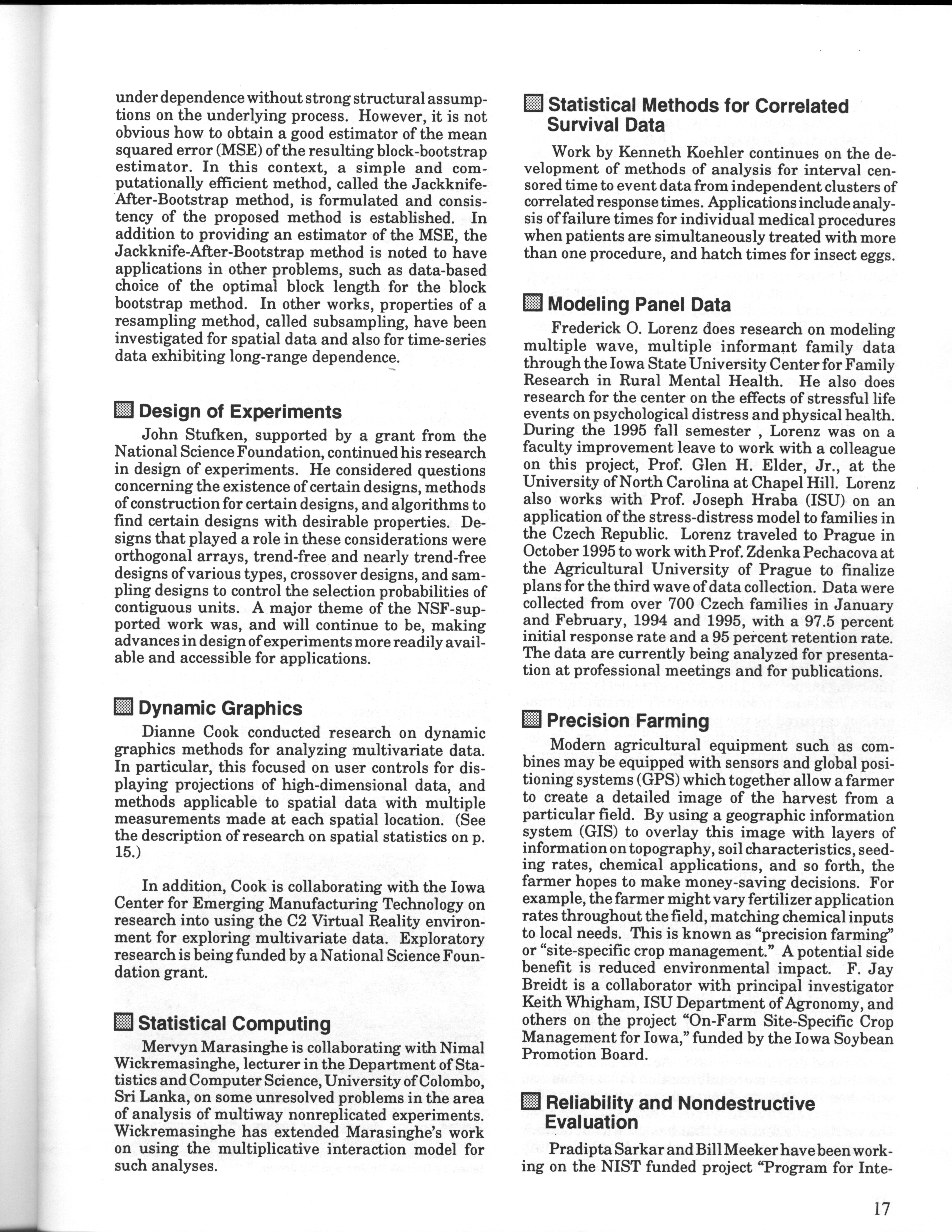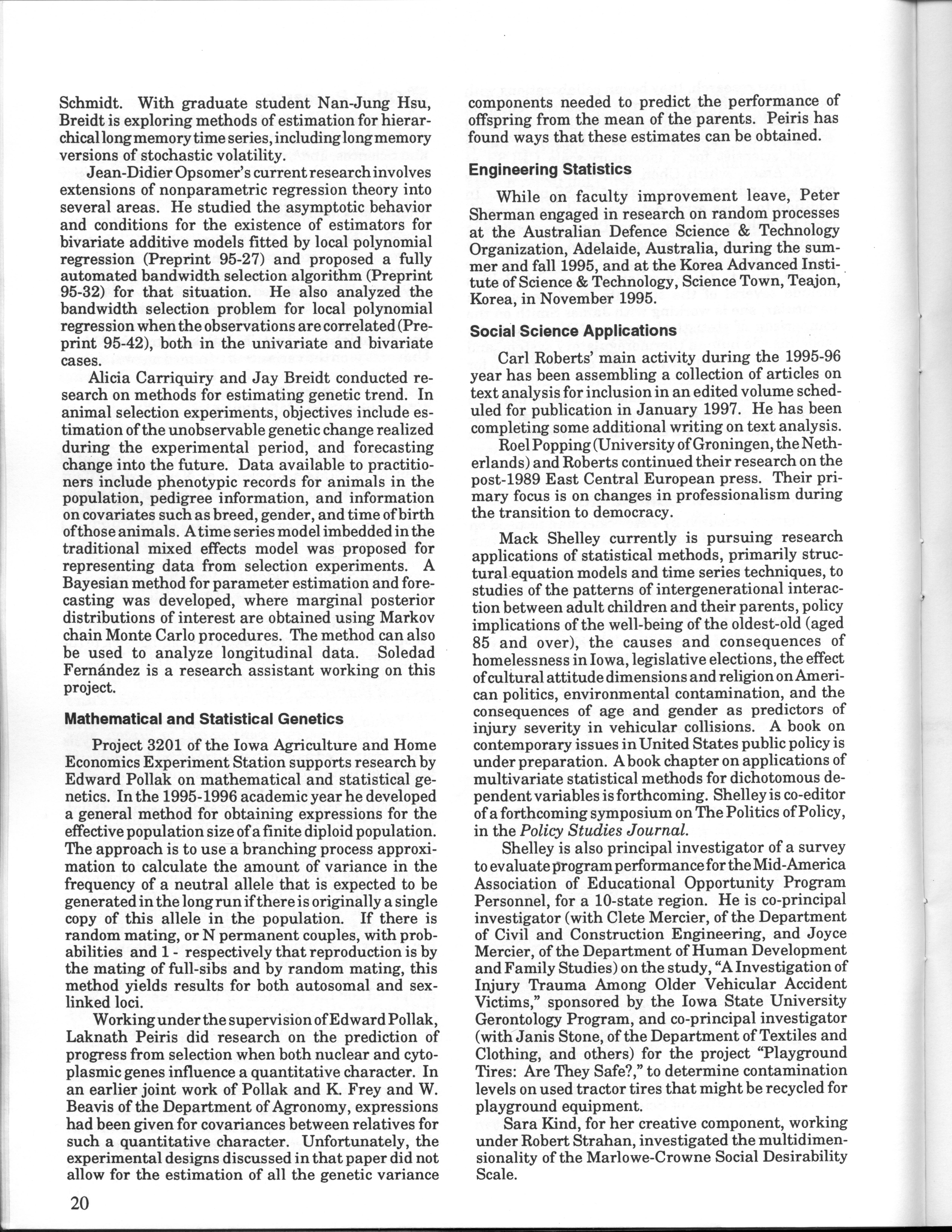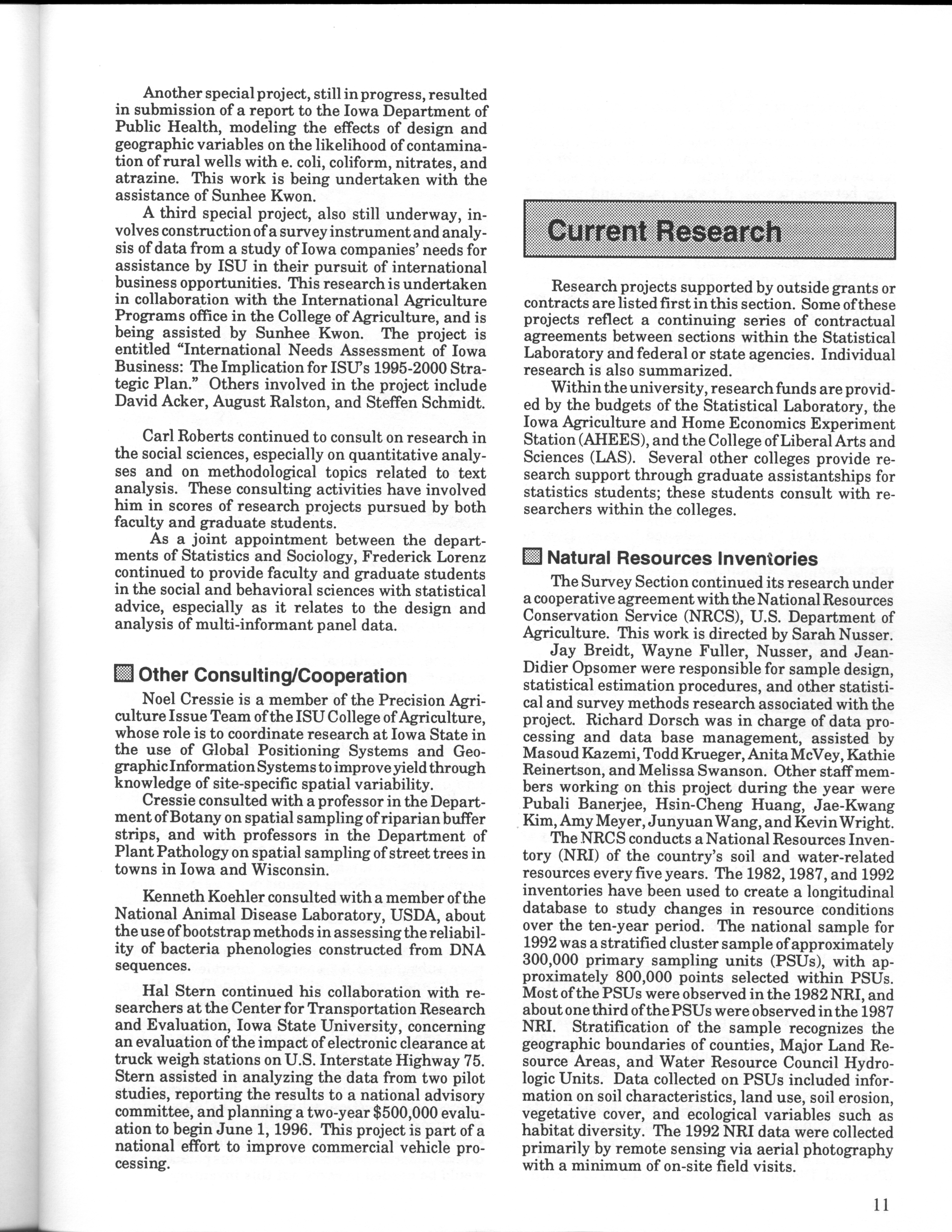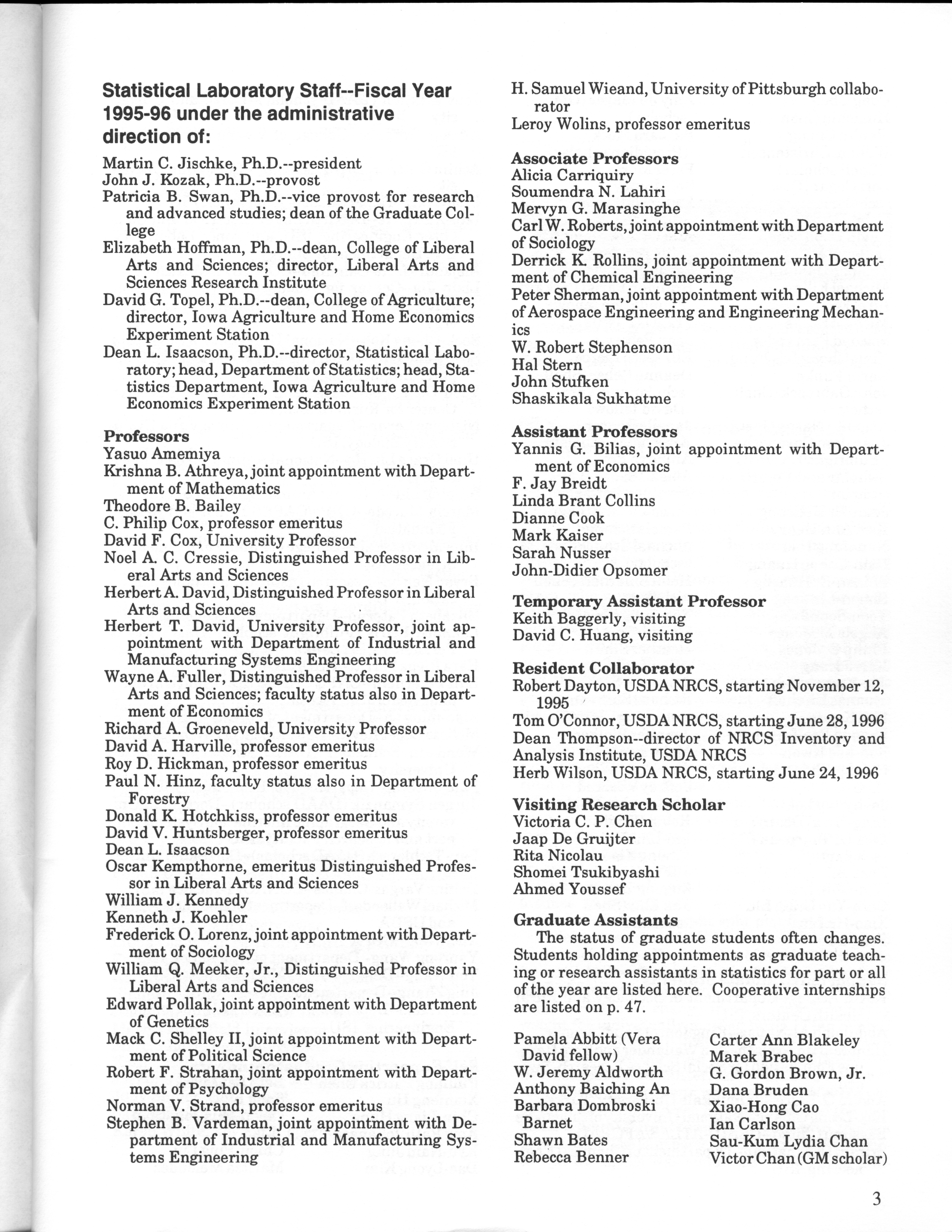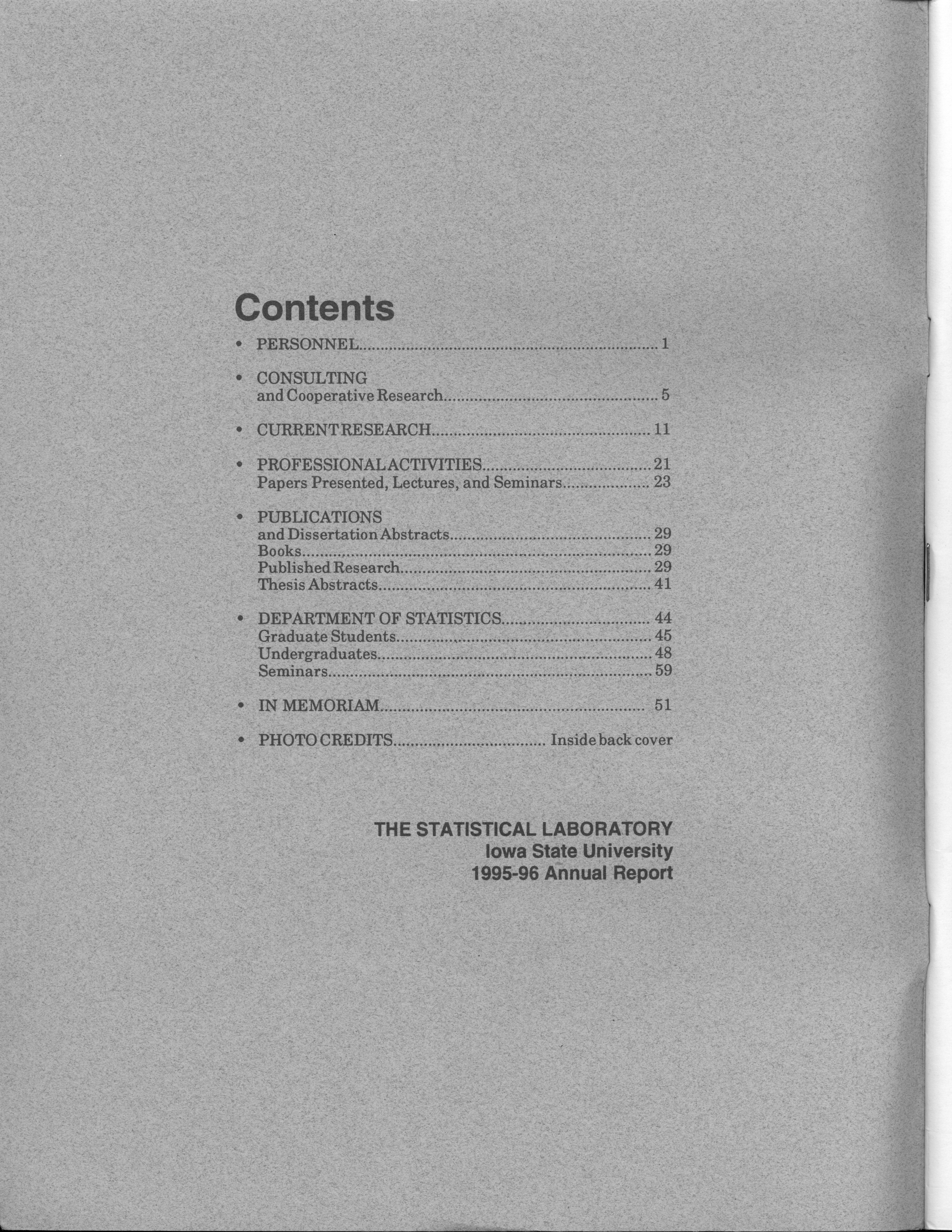 - "Statistical Laboratory Annual Report, July 1, 1995 to June 30, 1996", Iowa State University Statistical Laboratory Annual Reports, Iowa State University Library Digital Collections