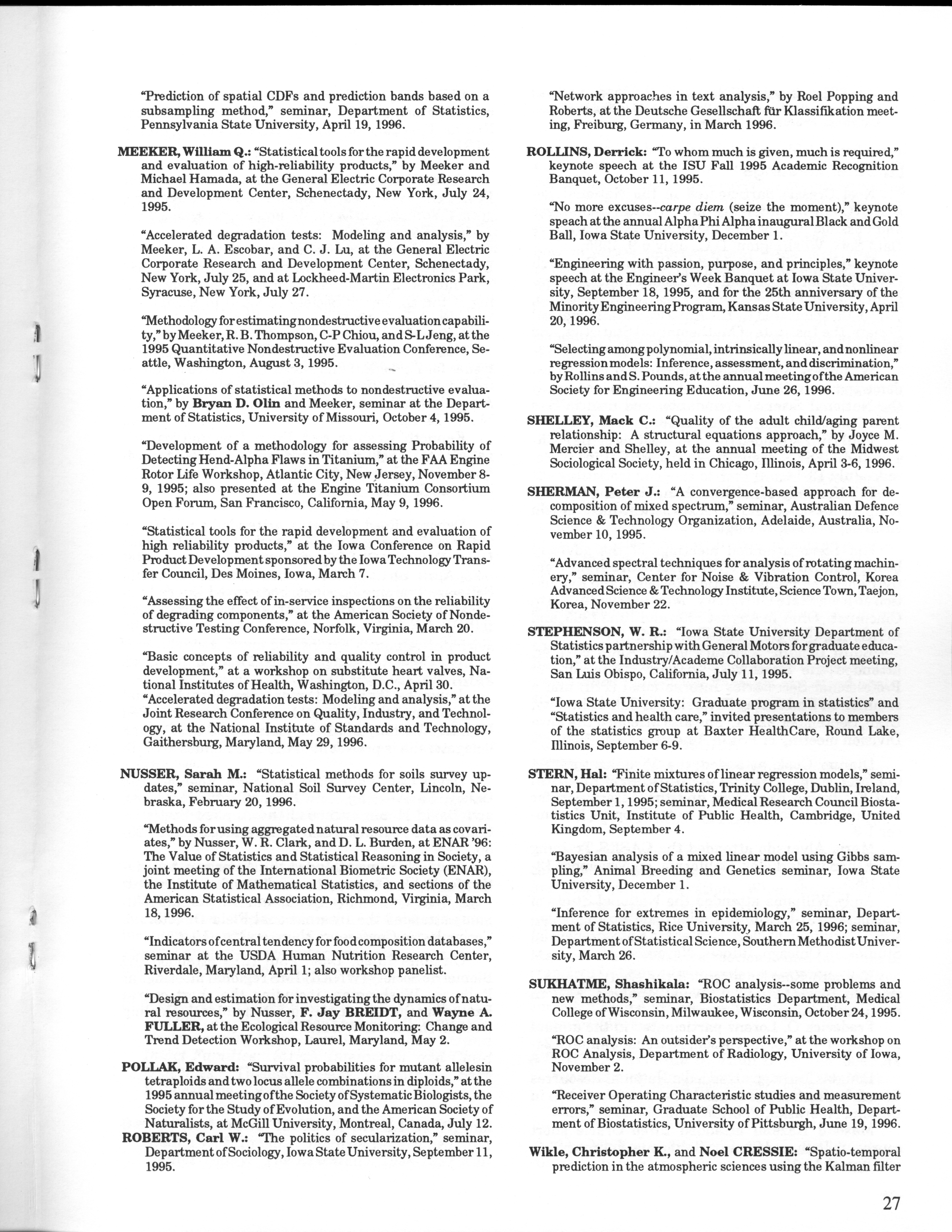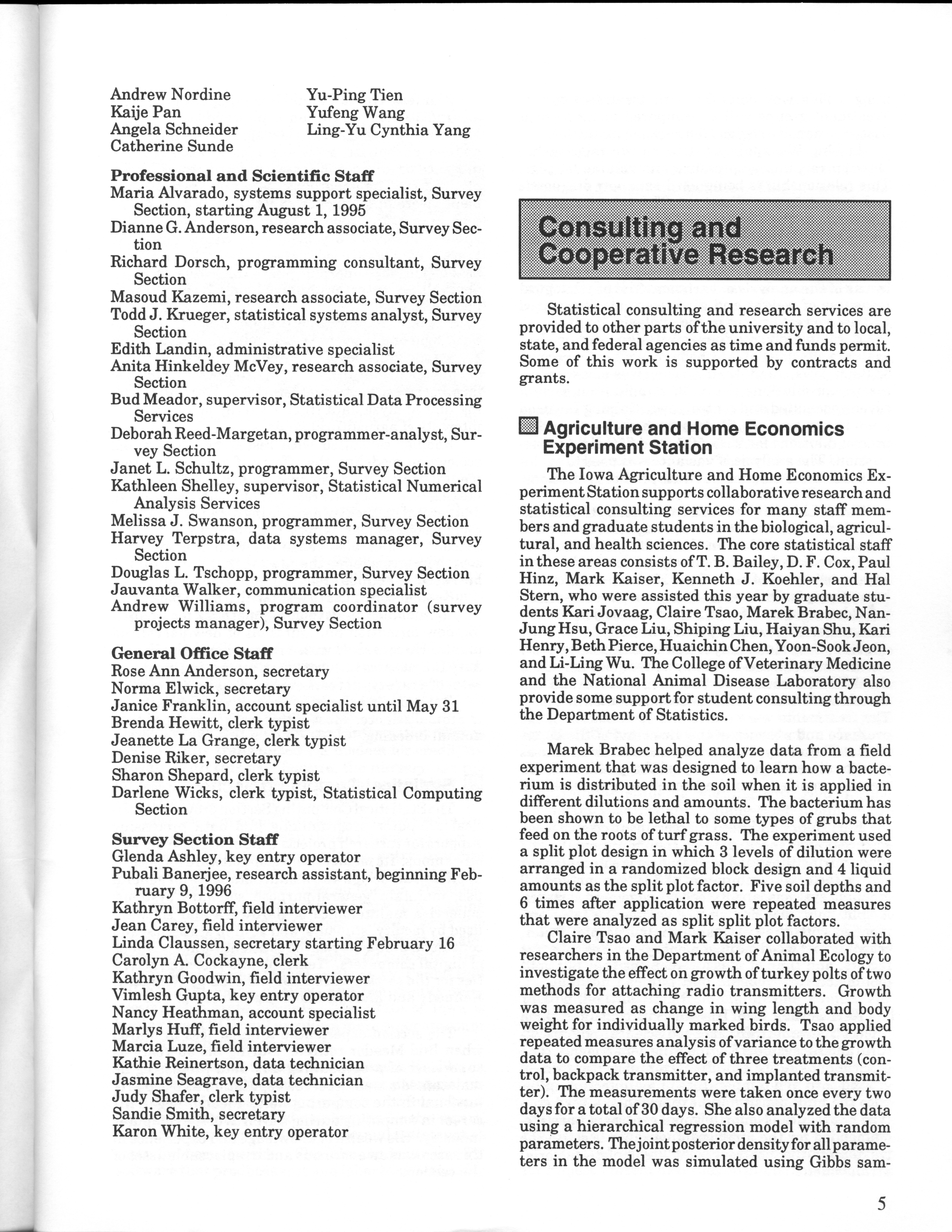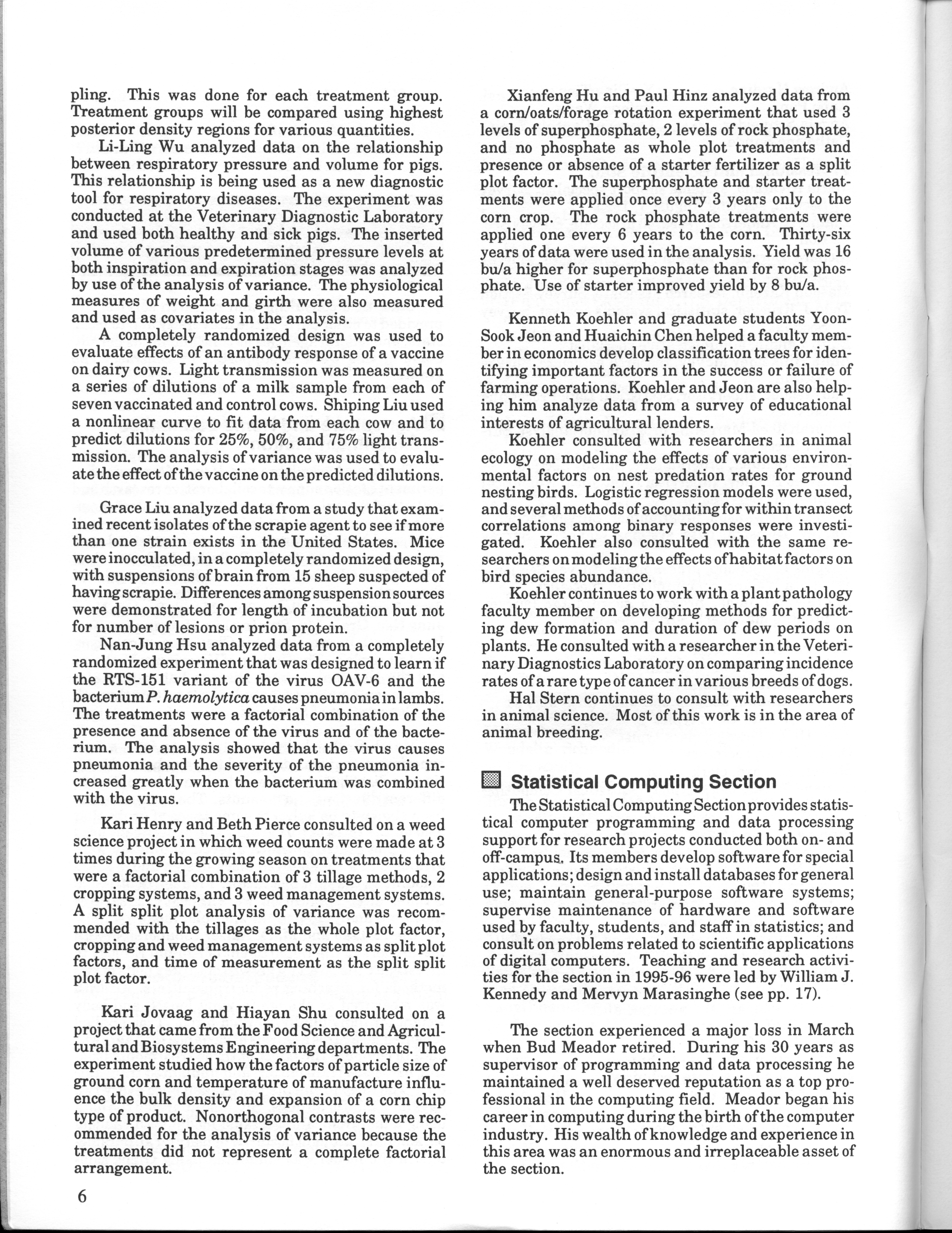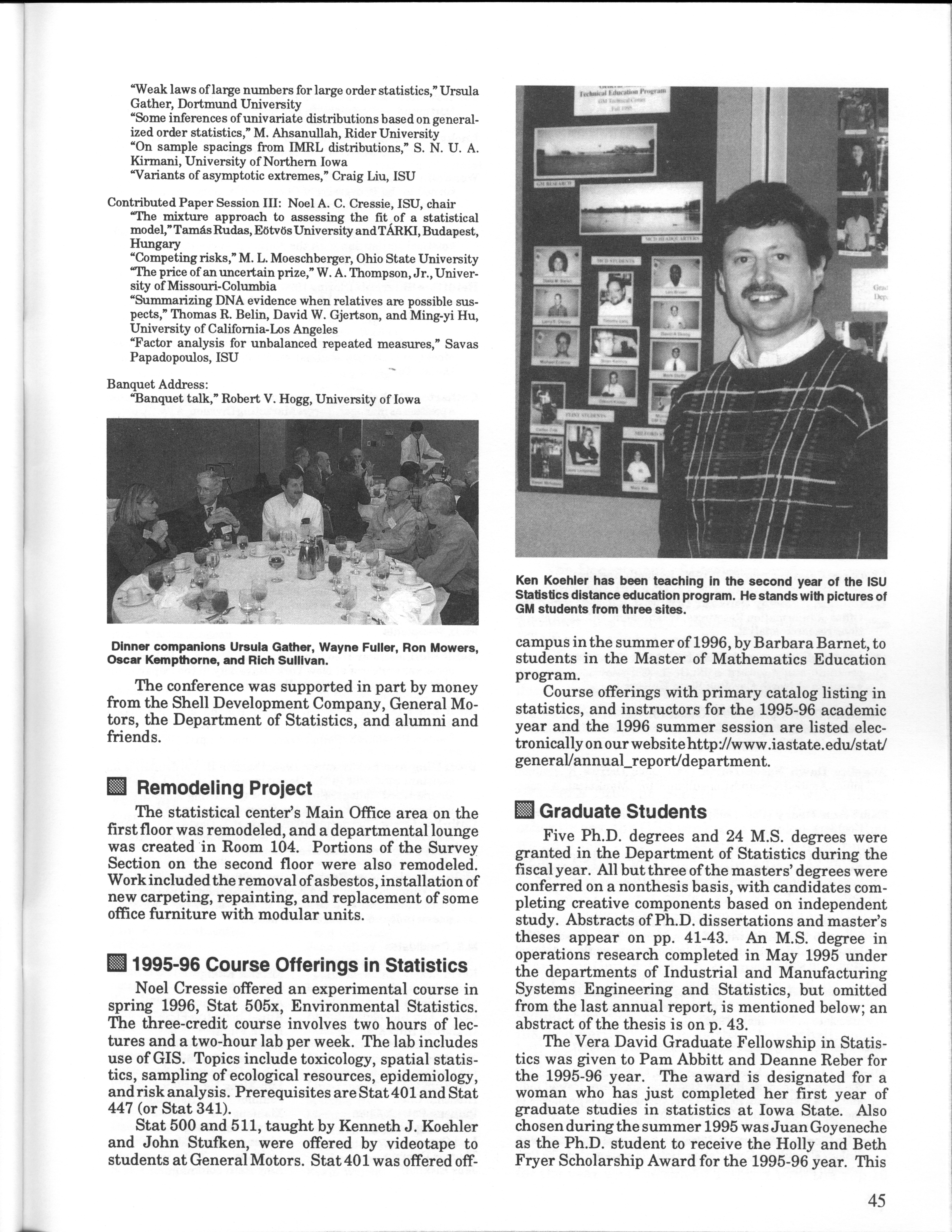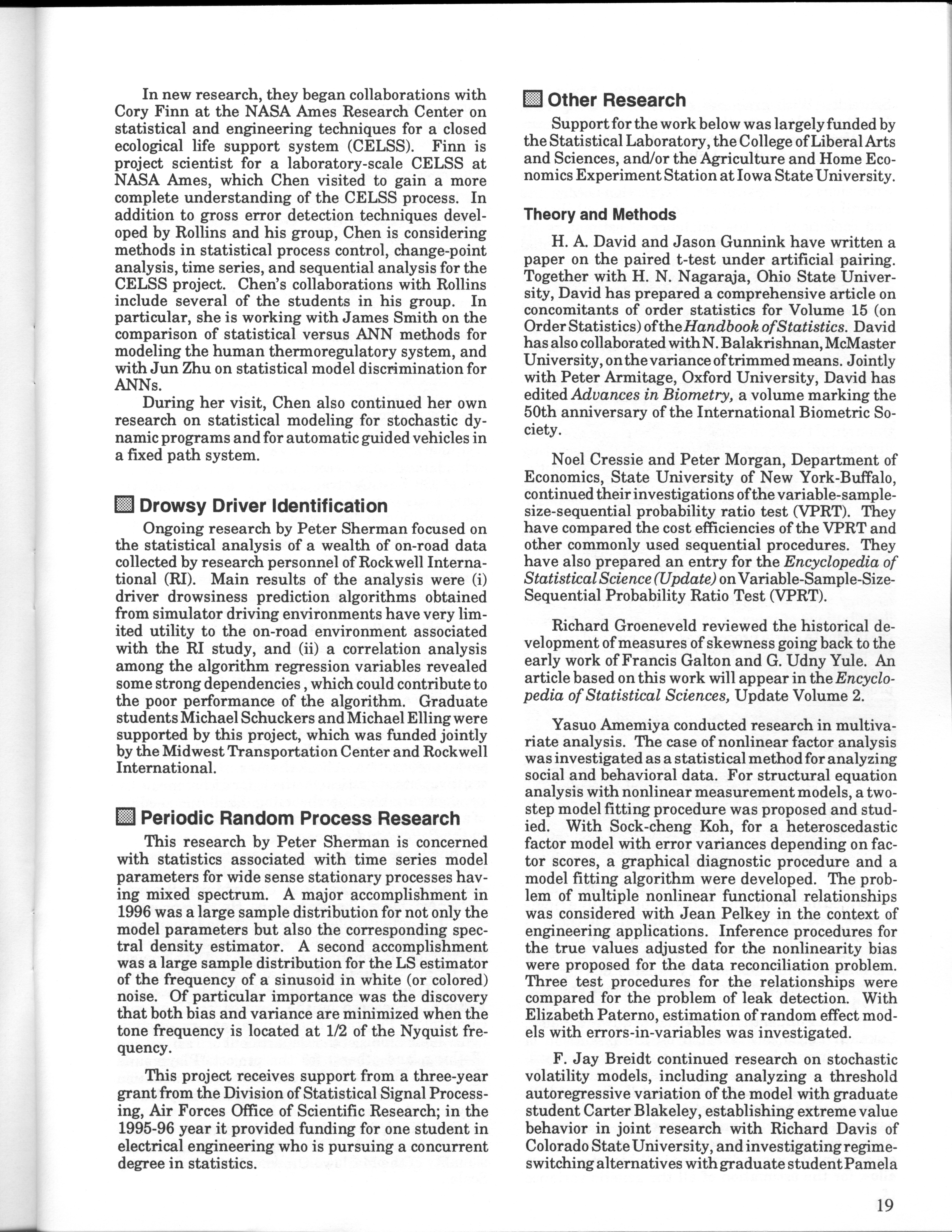 - "Statistical Laboratory Annual Report, July 1, 1995 to June 30, 1996", Iowa State University Statistical Laboratory Annual Reports, Iowa State University Library Digital Collections