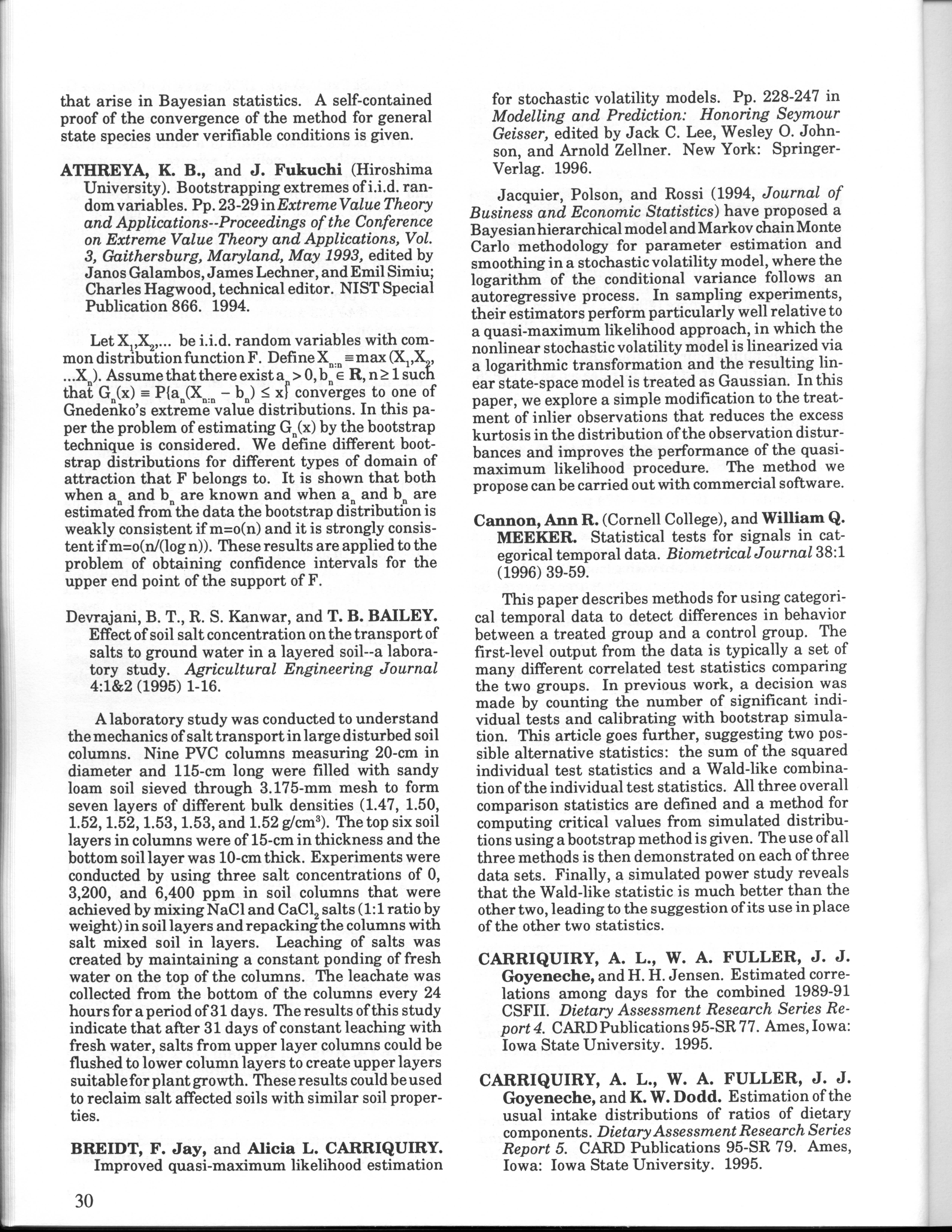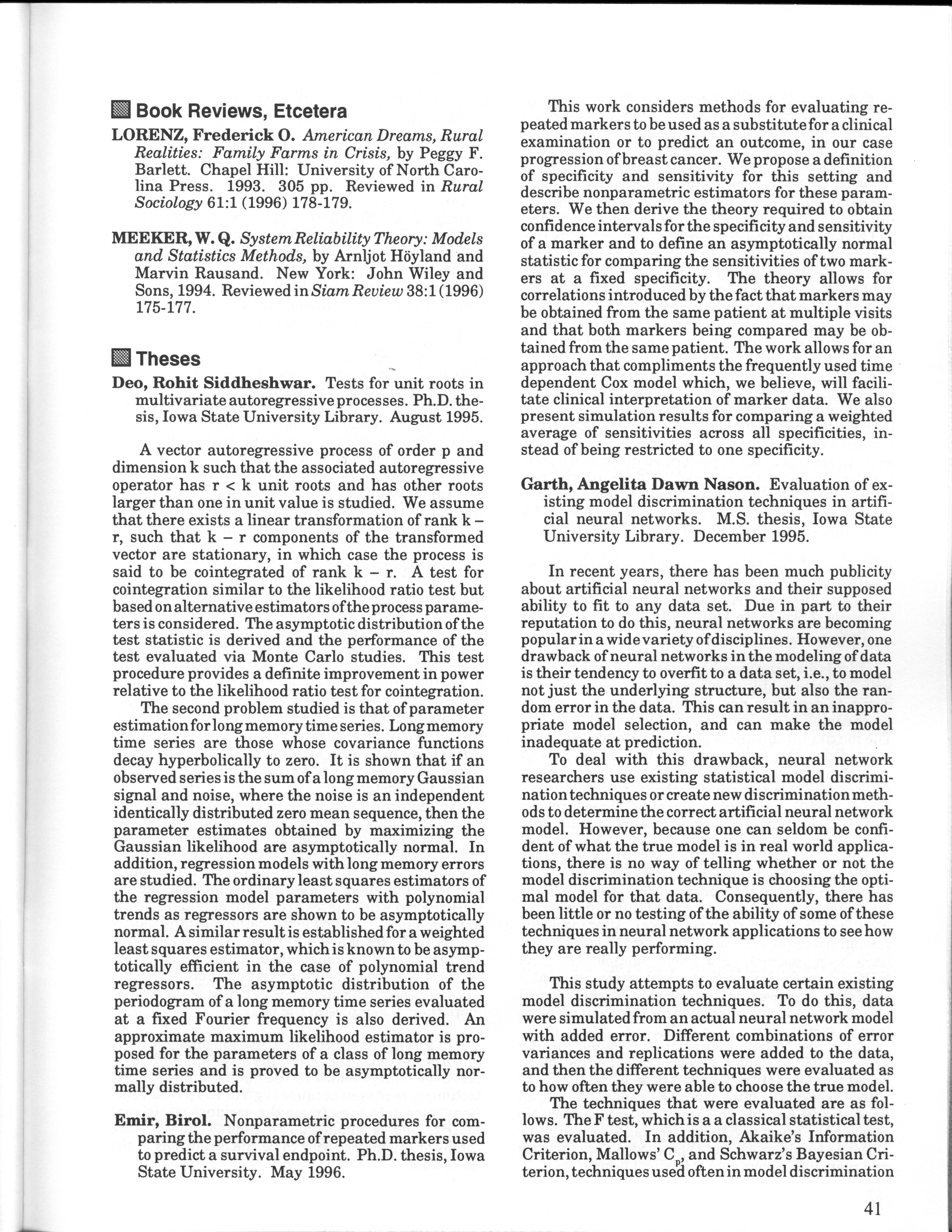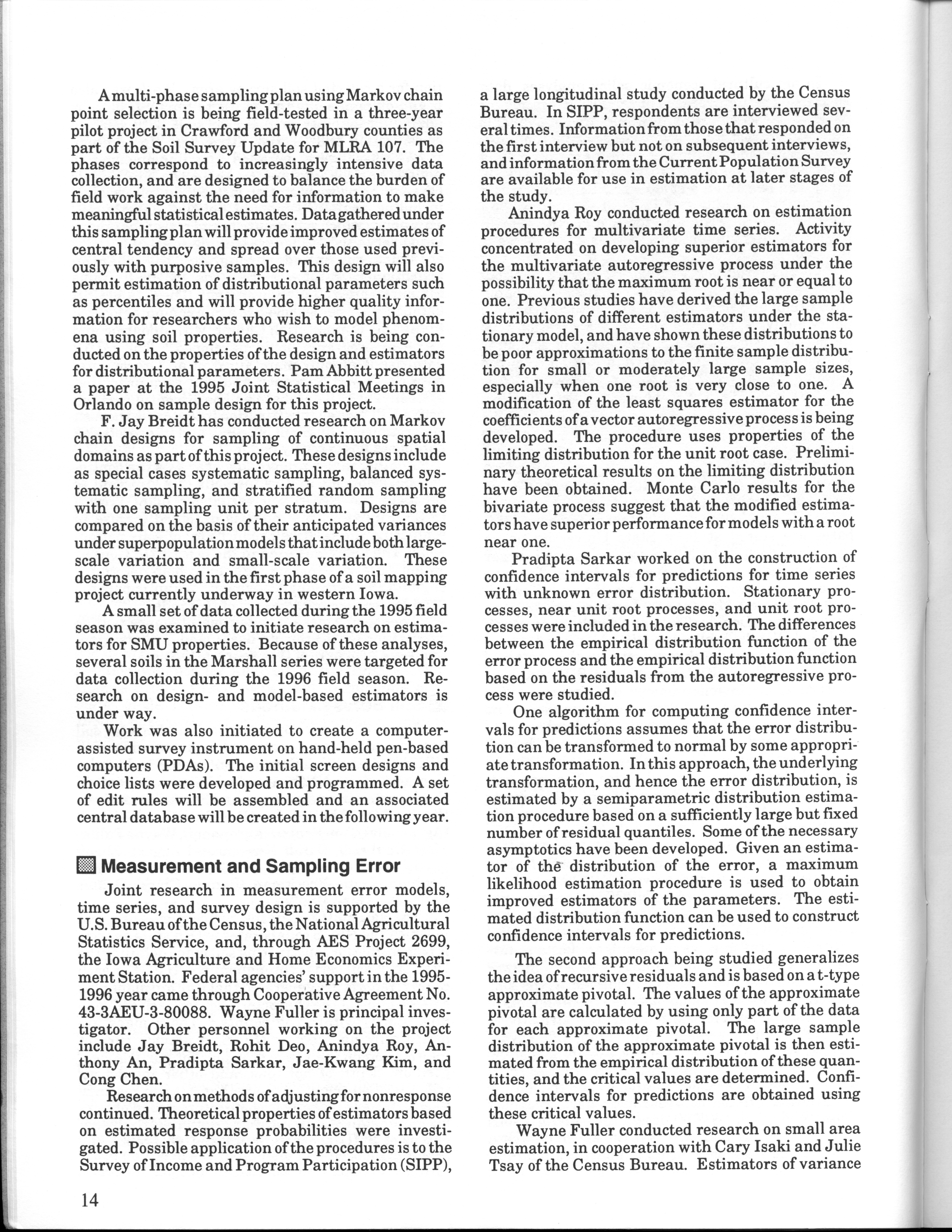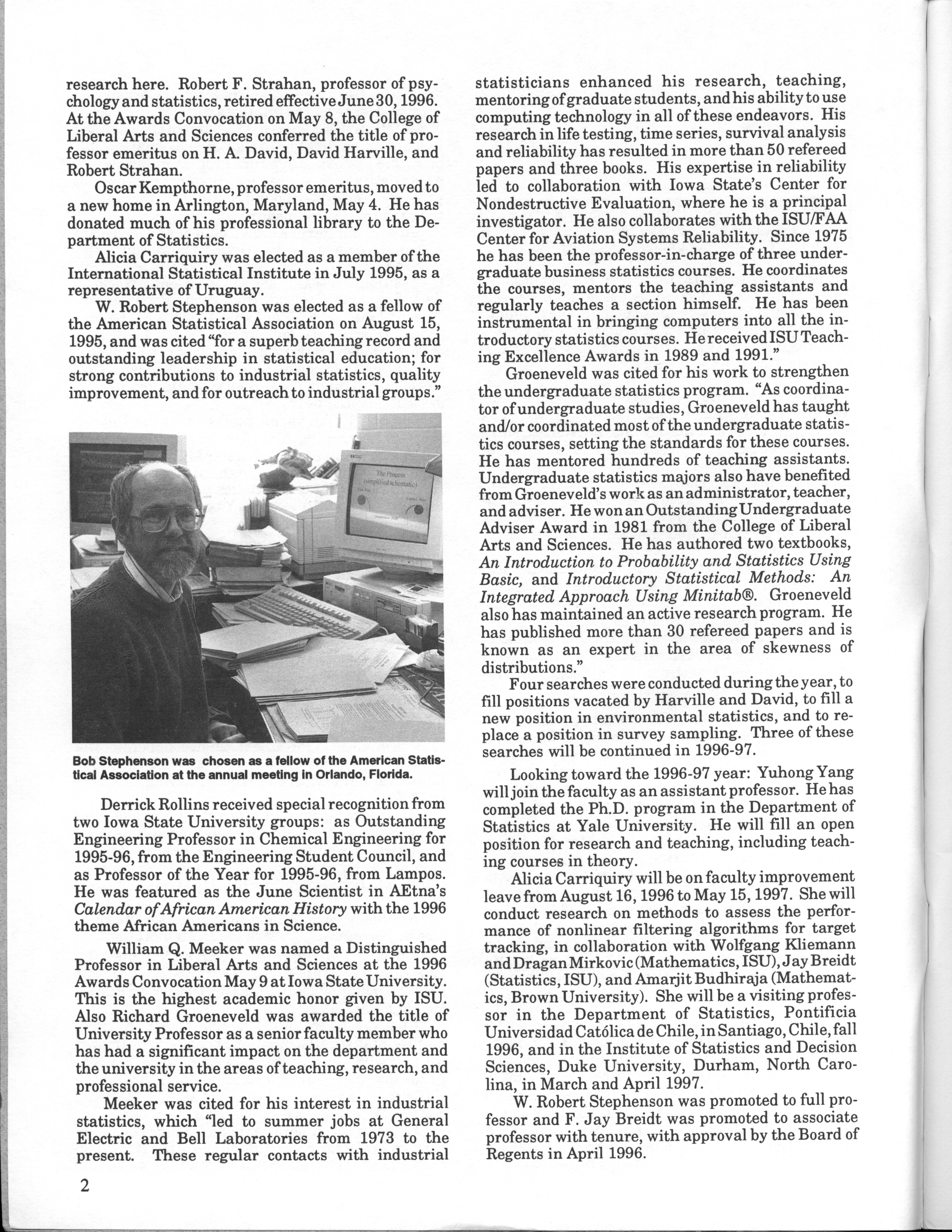 - "Statistical Laboratory Annual Report, July 1, 1995 to June 30, 1996", Iowa State University Statistical Laboratory Annual Reports, Iowa State University Library Digital Collections