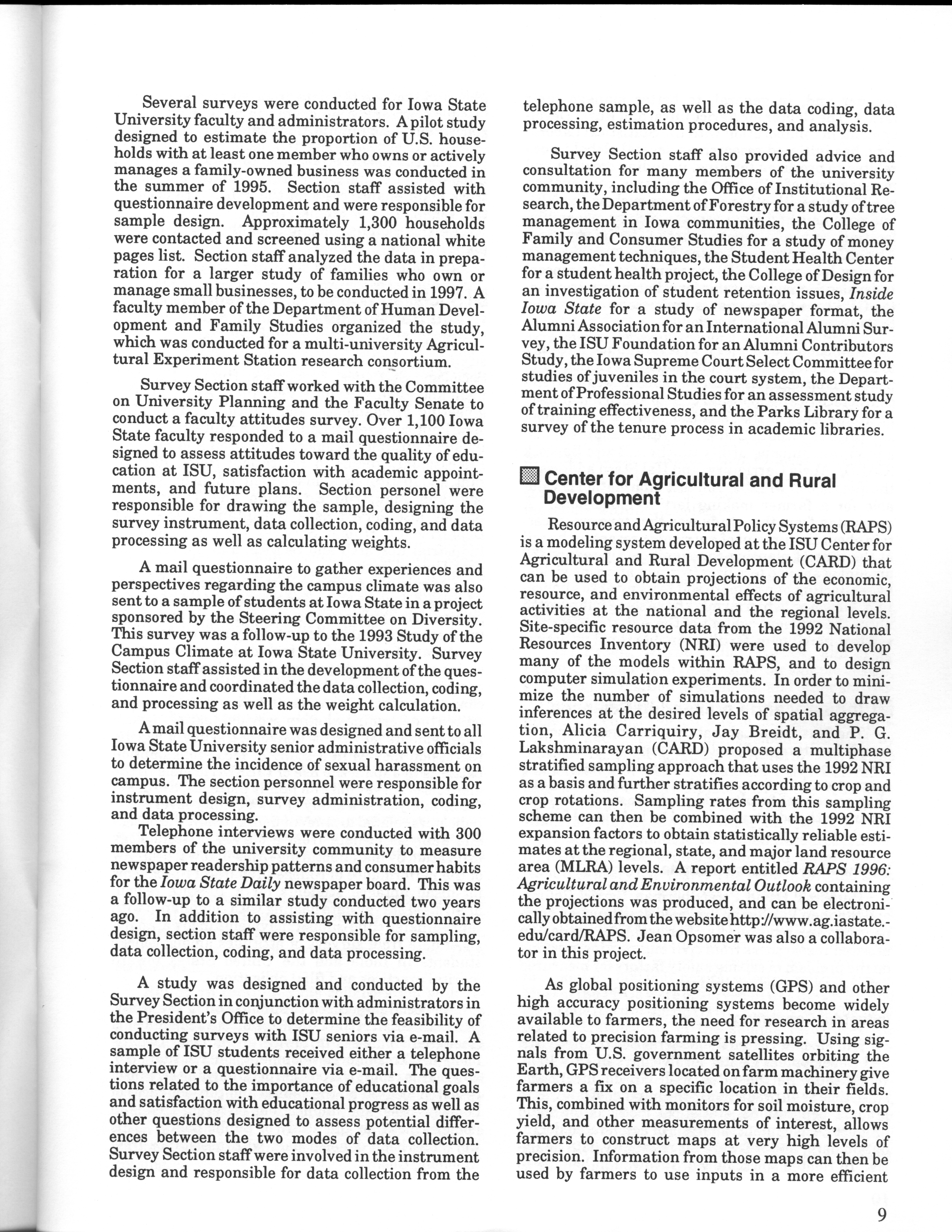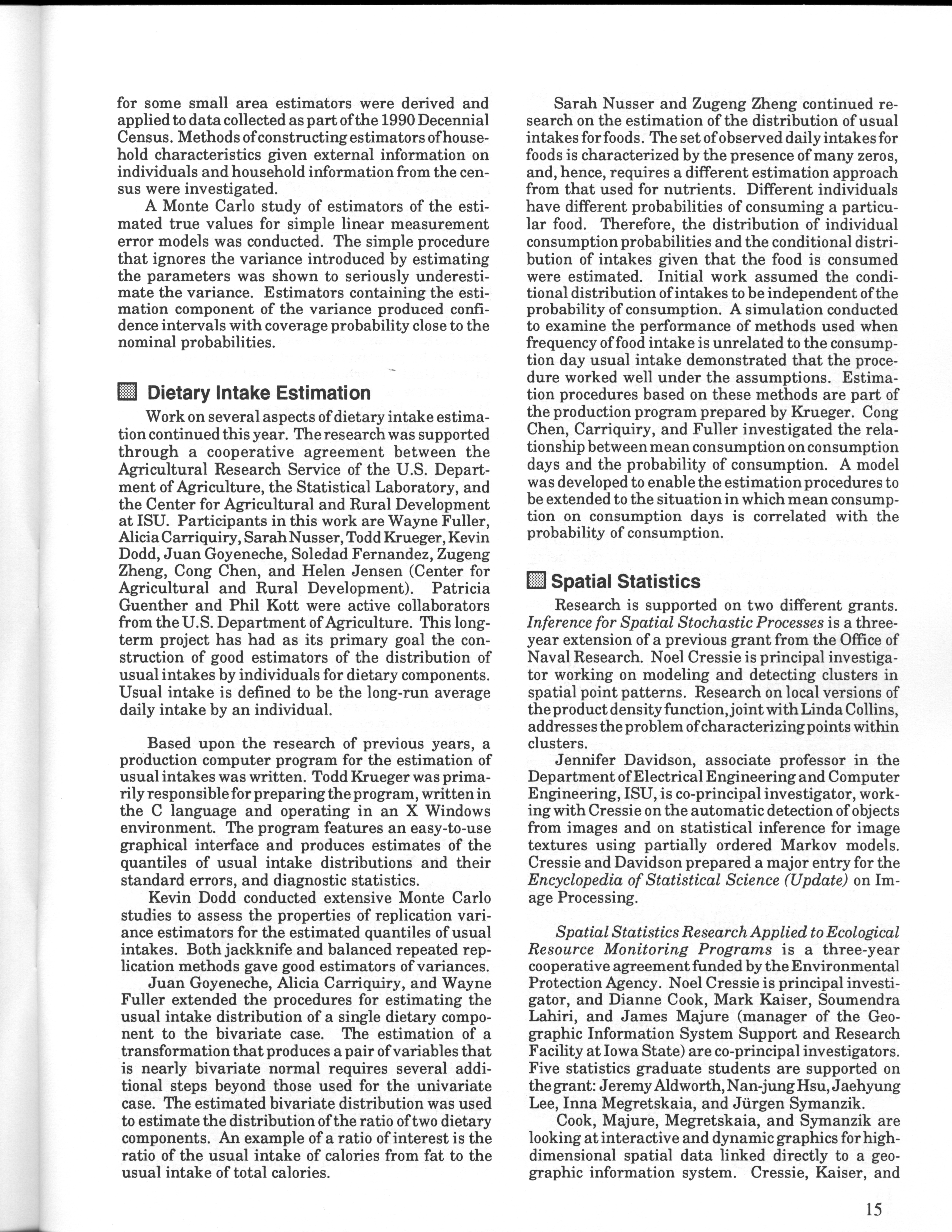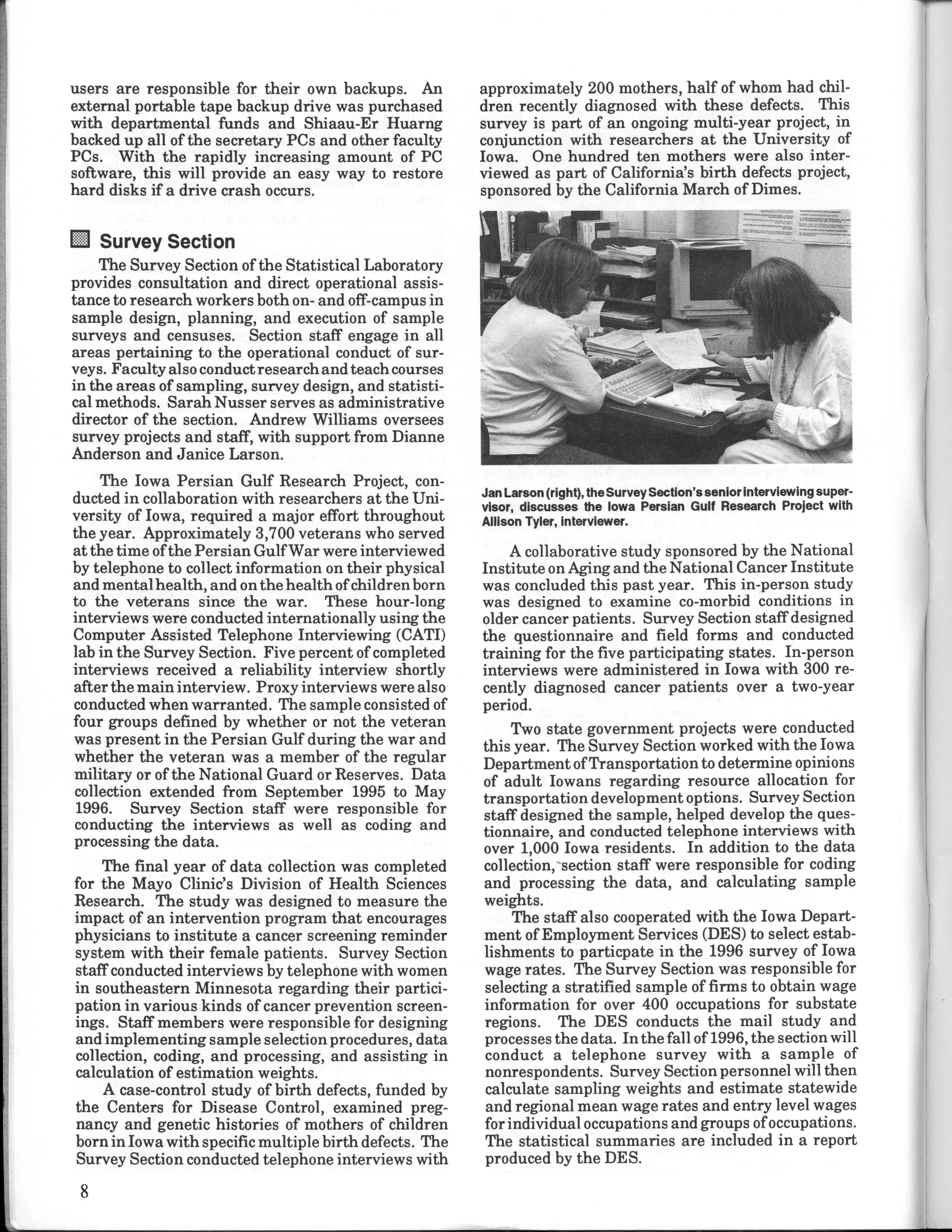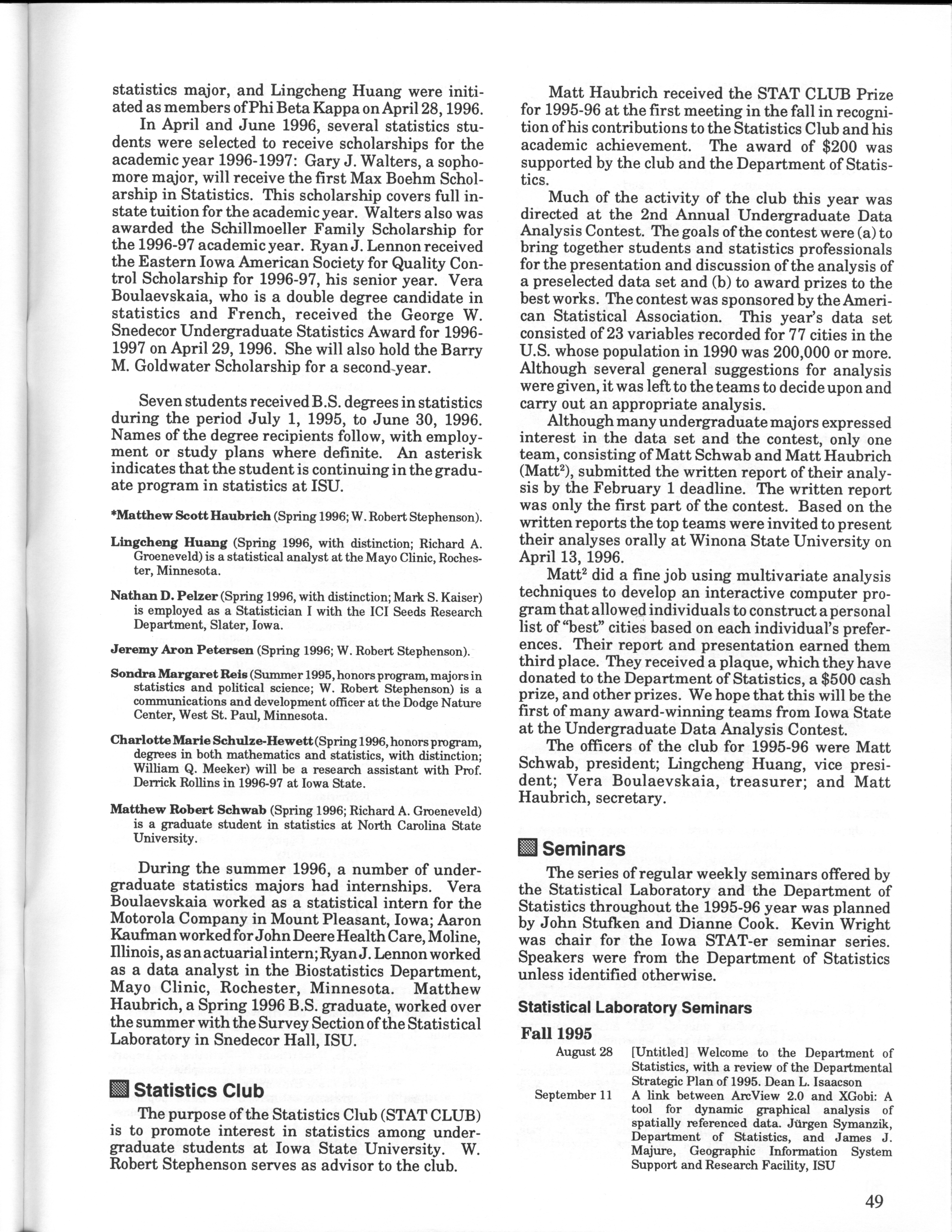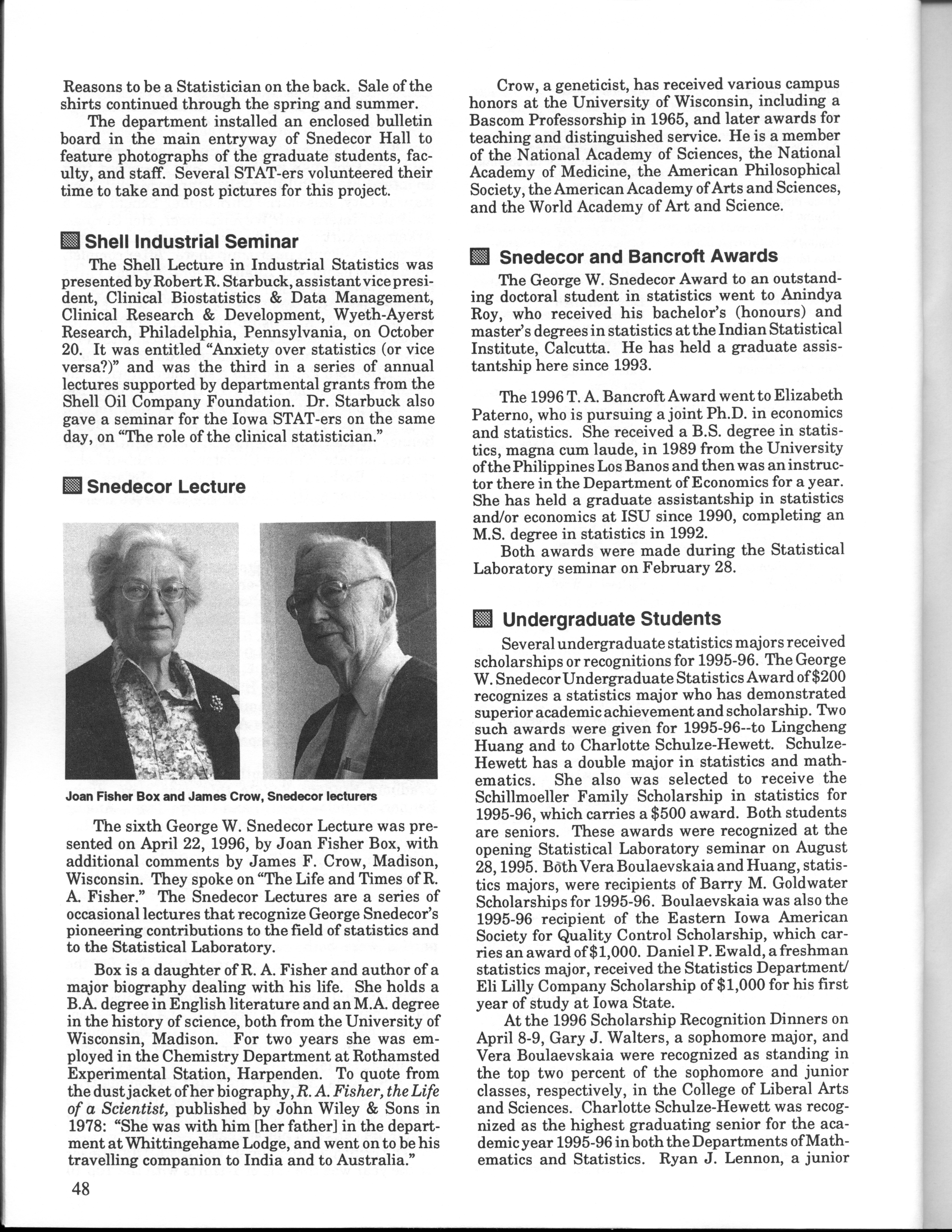 - "Statistical Laboratory Annual Report, July 1, 1995 to June 30, 1996", Iowa State University Statistical Laboratory Annual Reports, Iowa State University Library Digital Collections