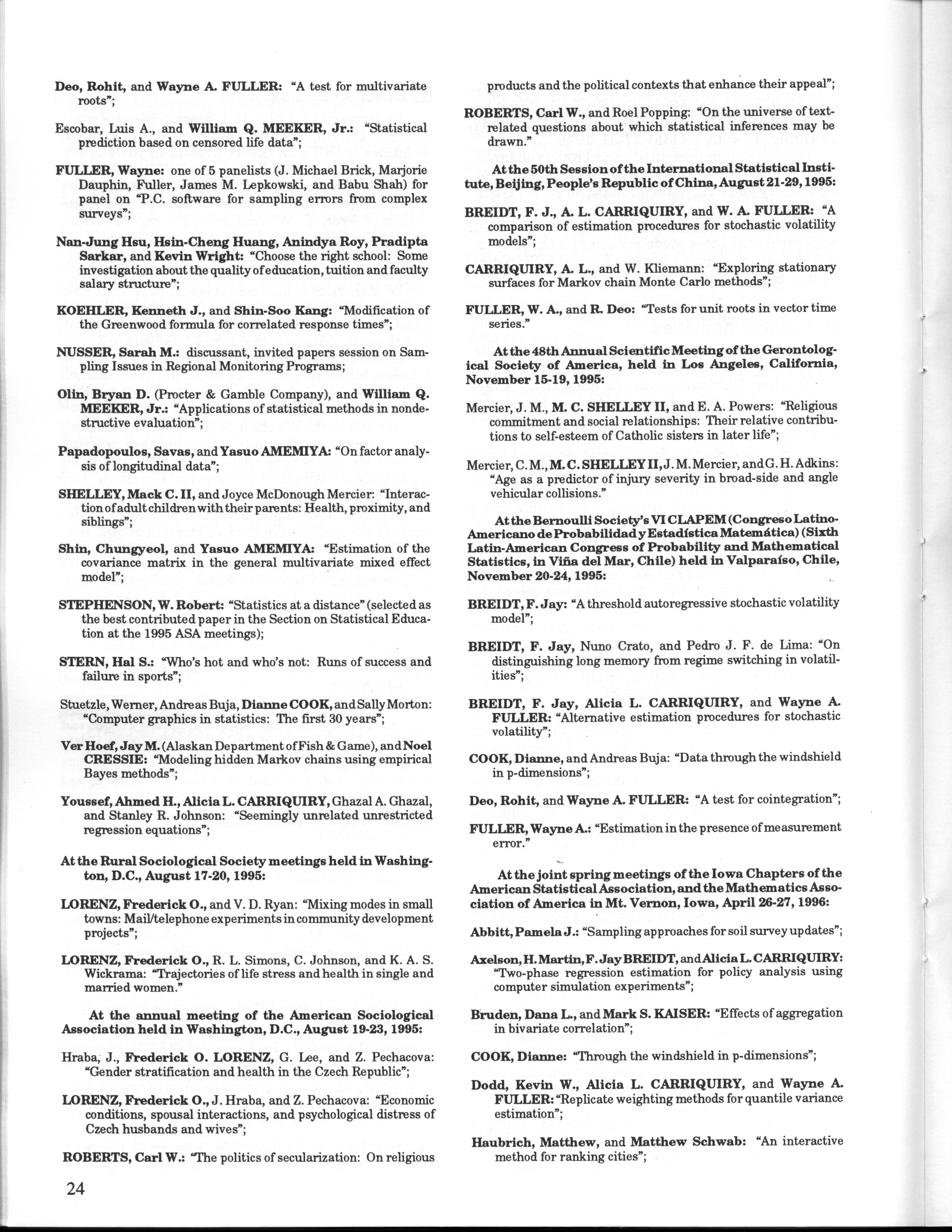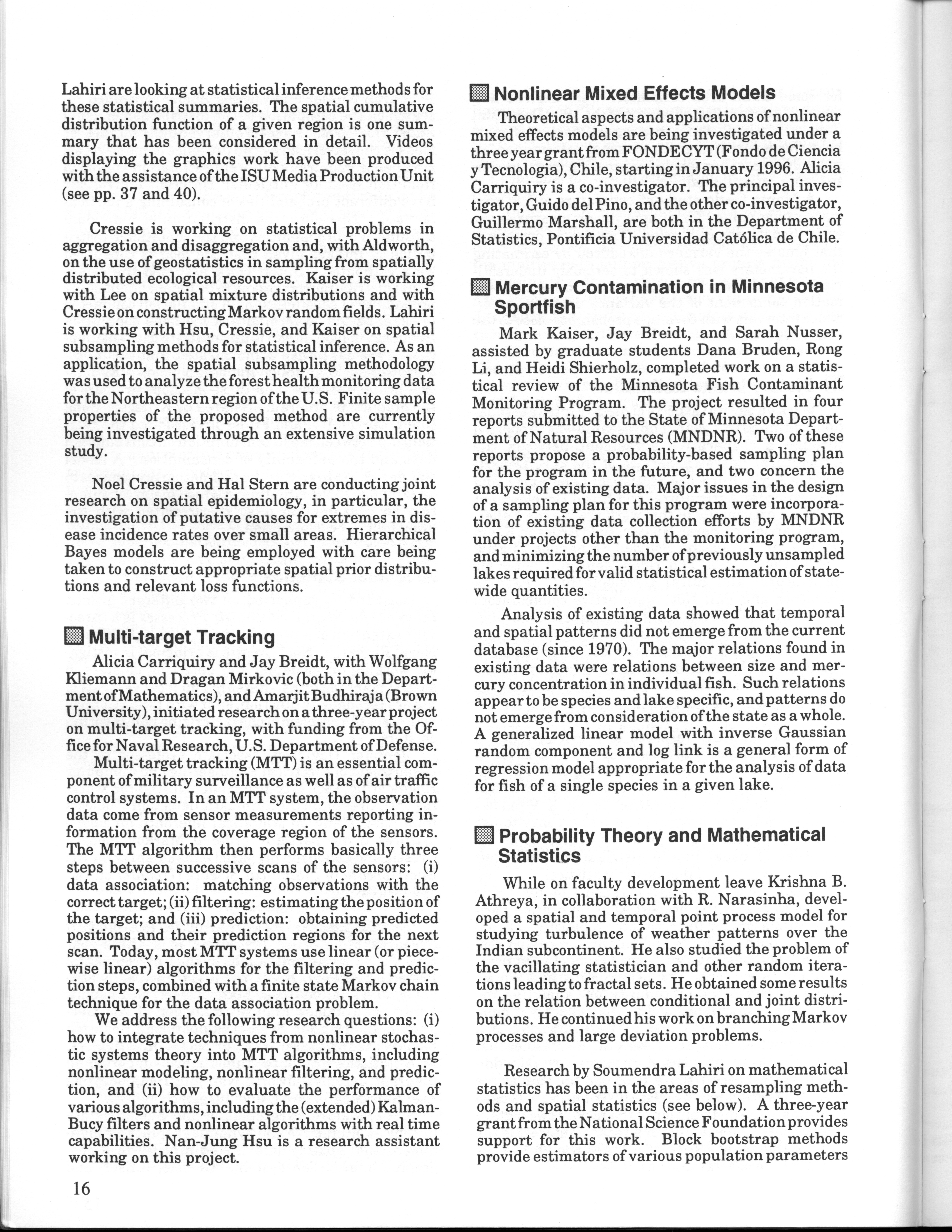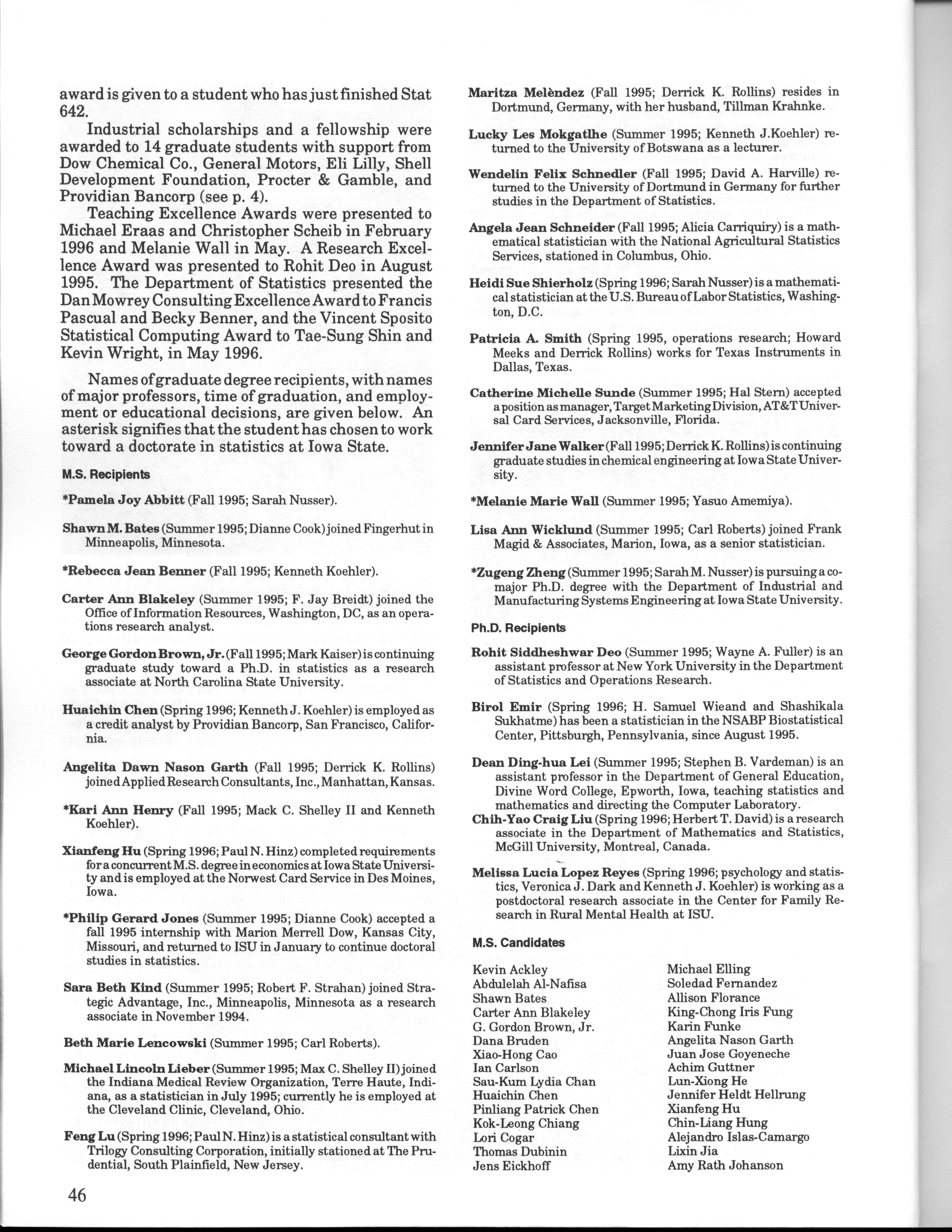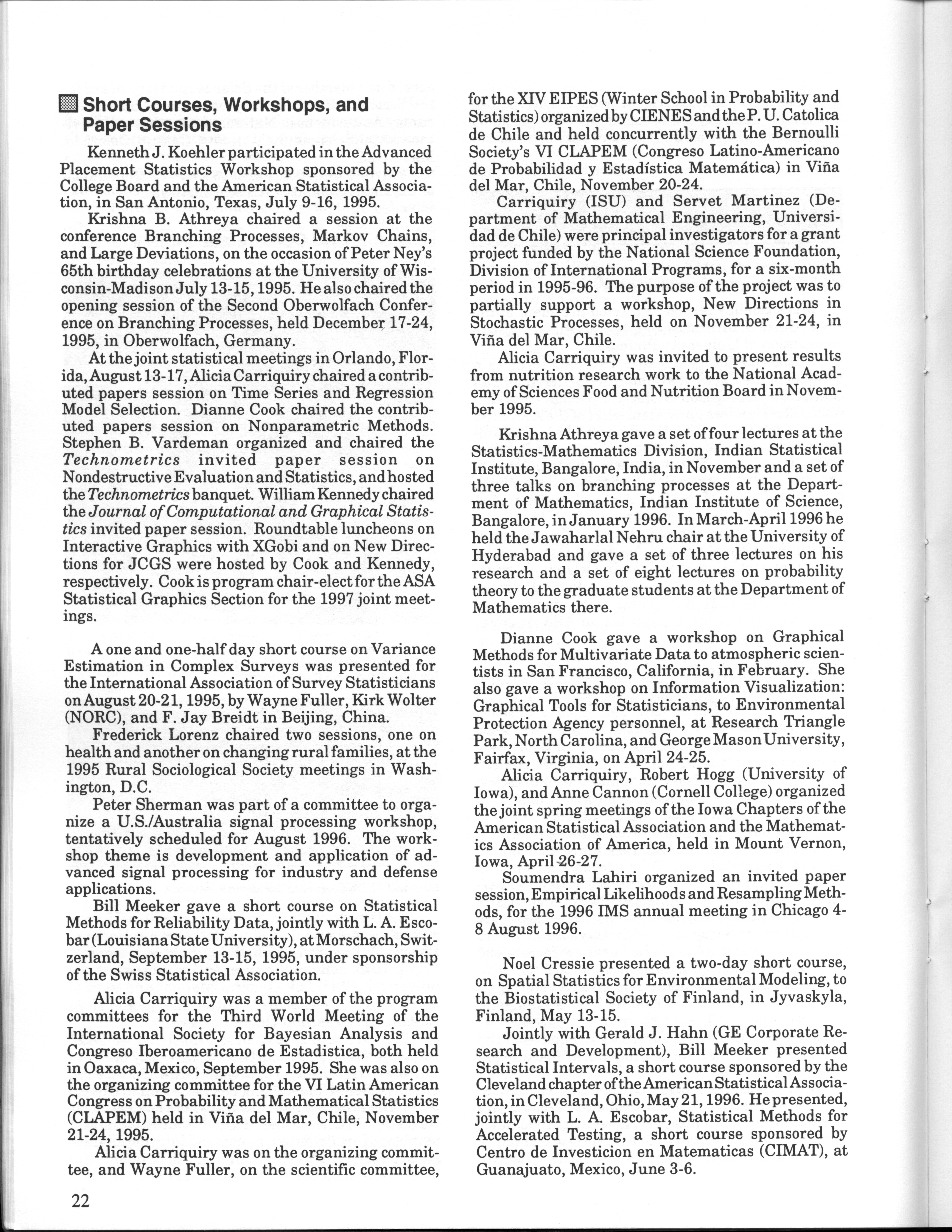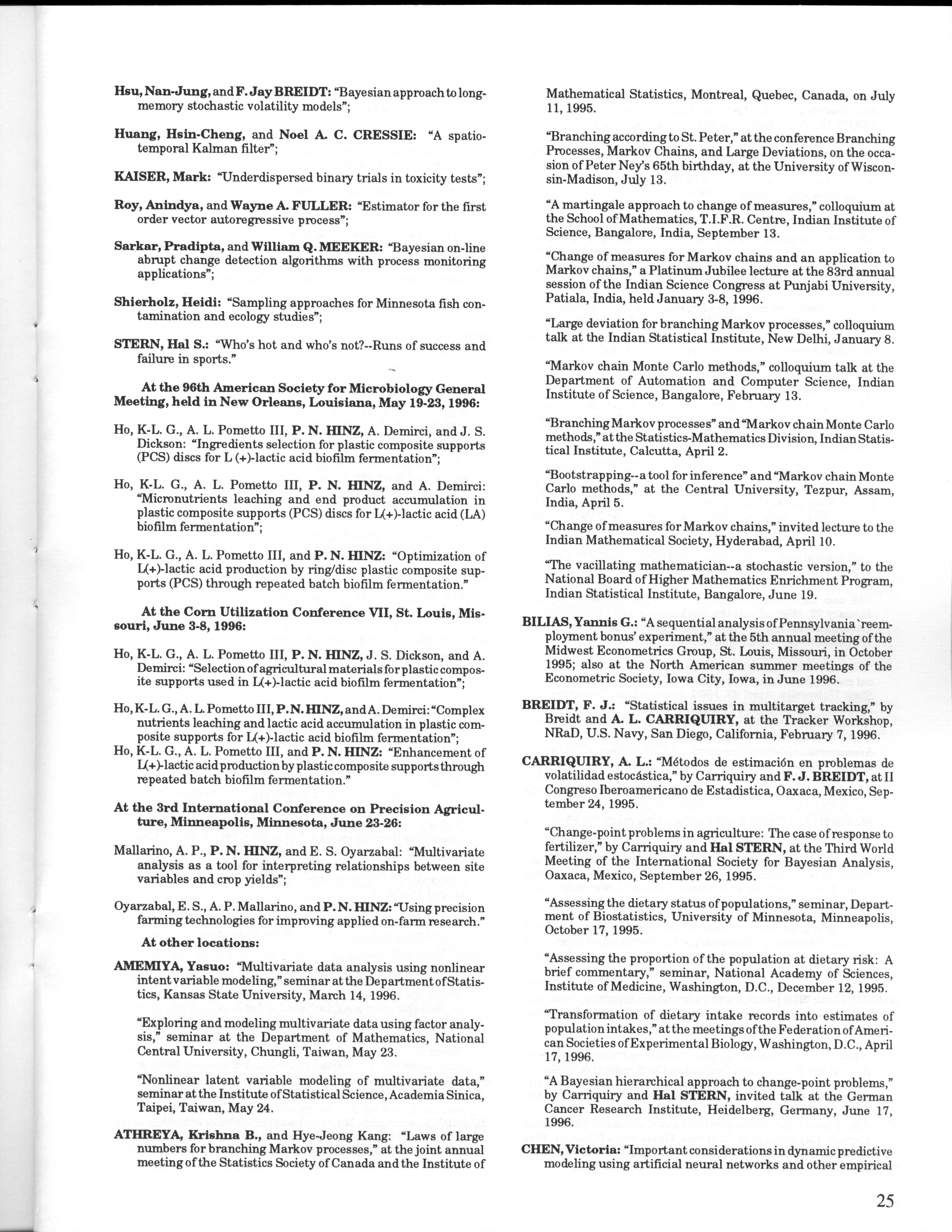 - "Statistical Laboratory Annual Report, July 1, 1995 to June 30, 1996", Iowa State University Statistical Laboratory Annual Reports, Iowa State University Library Digital Collections
