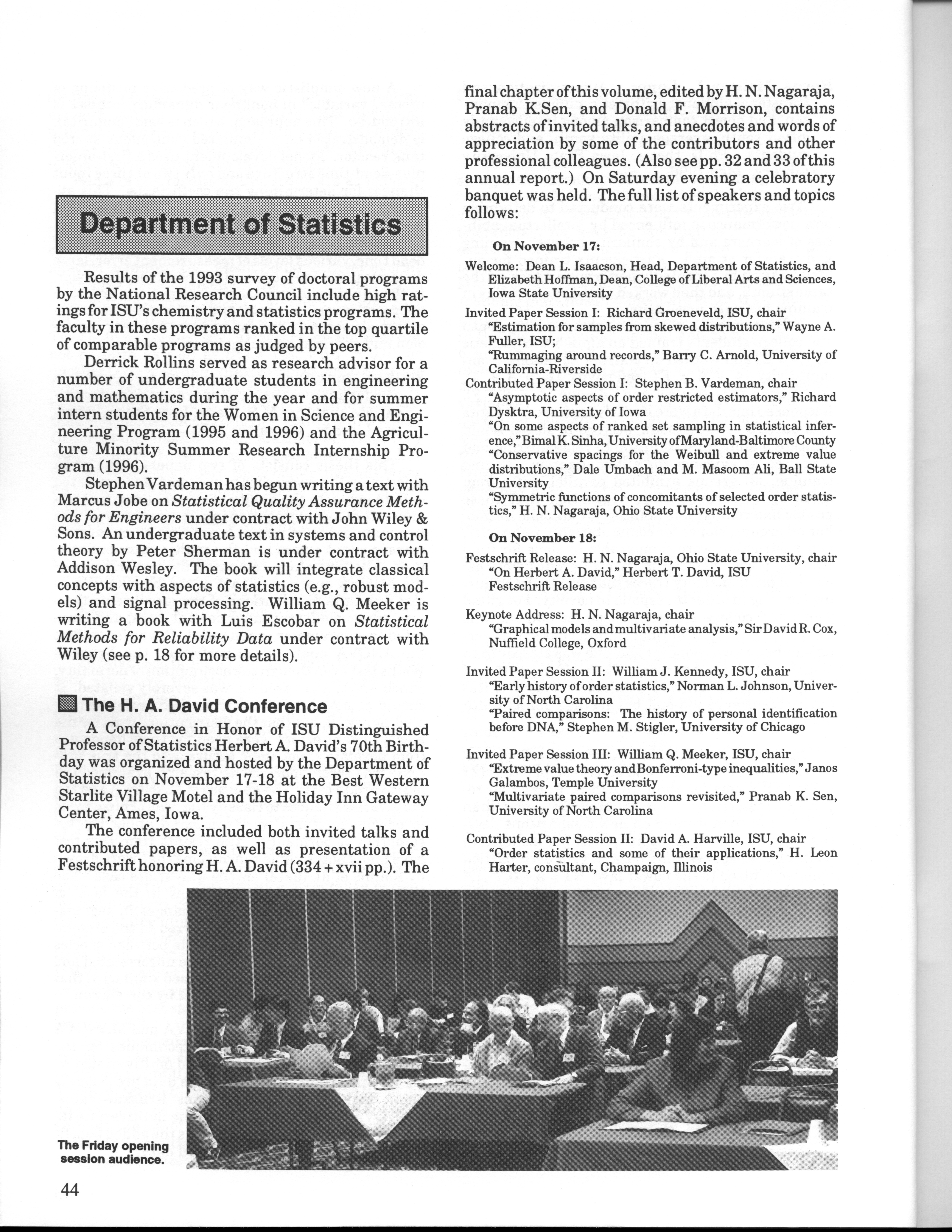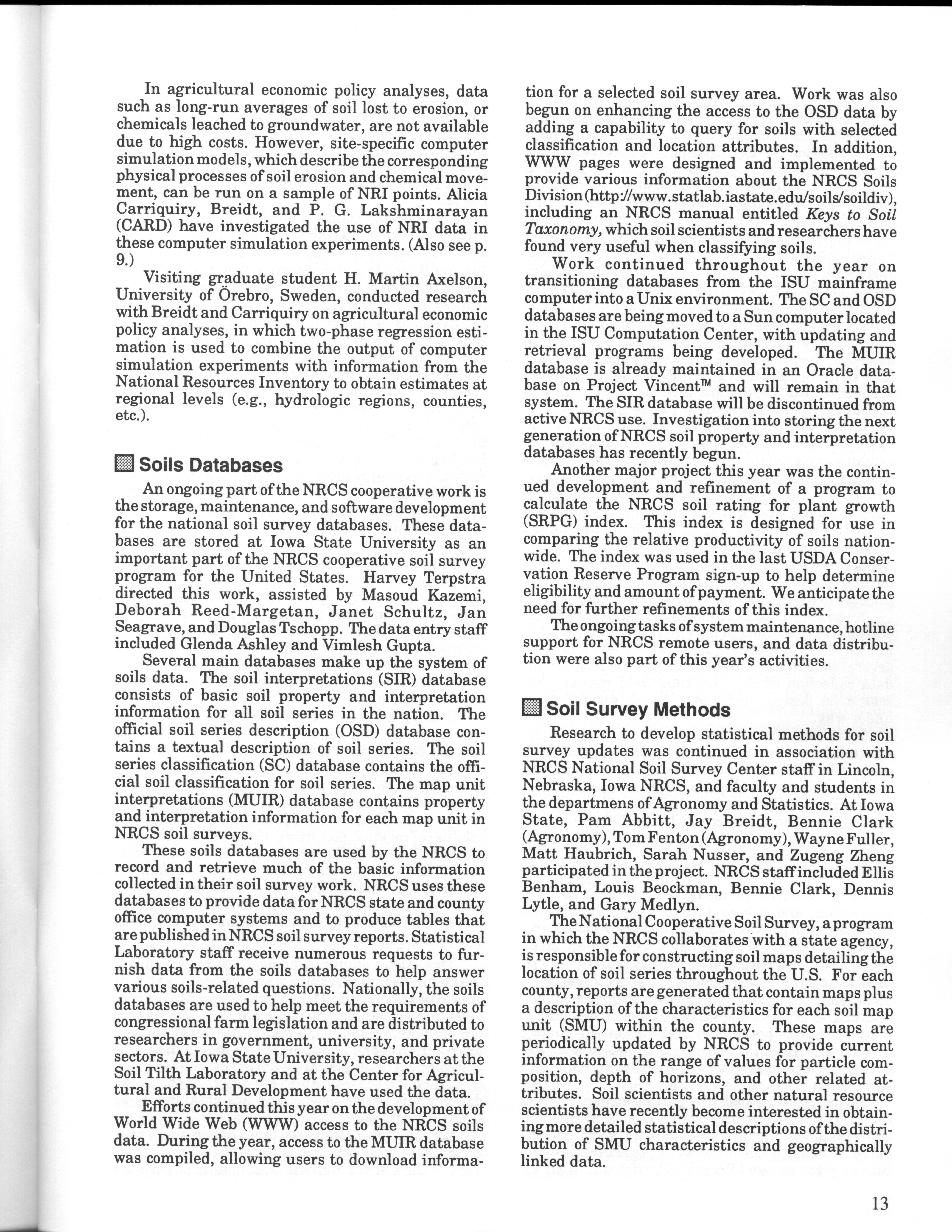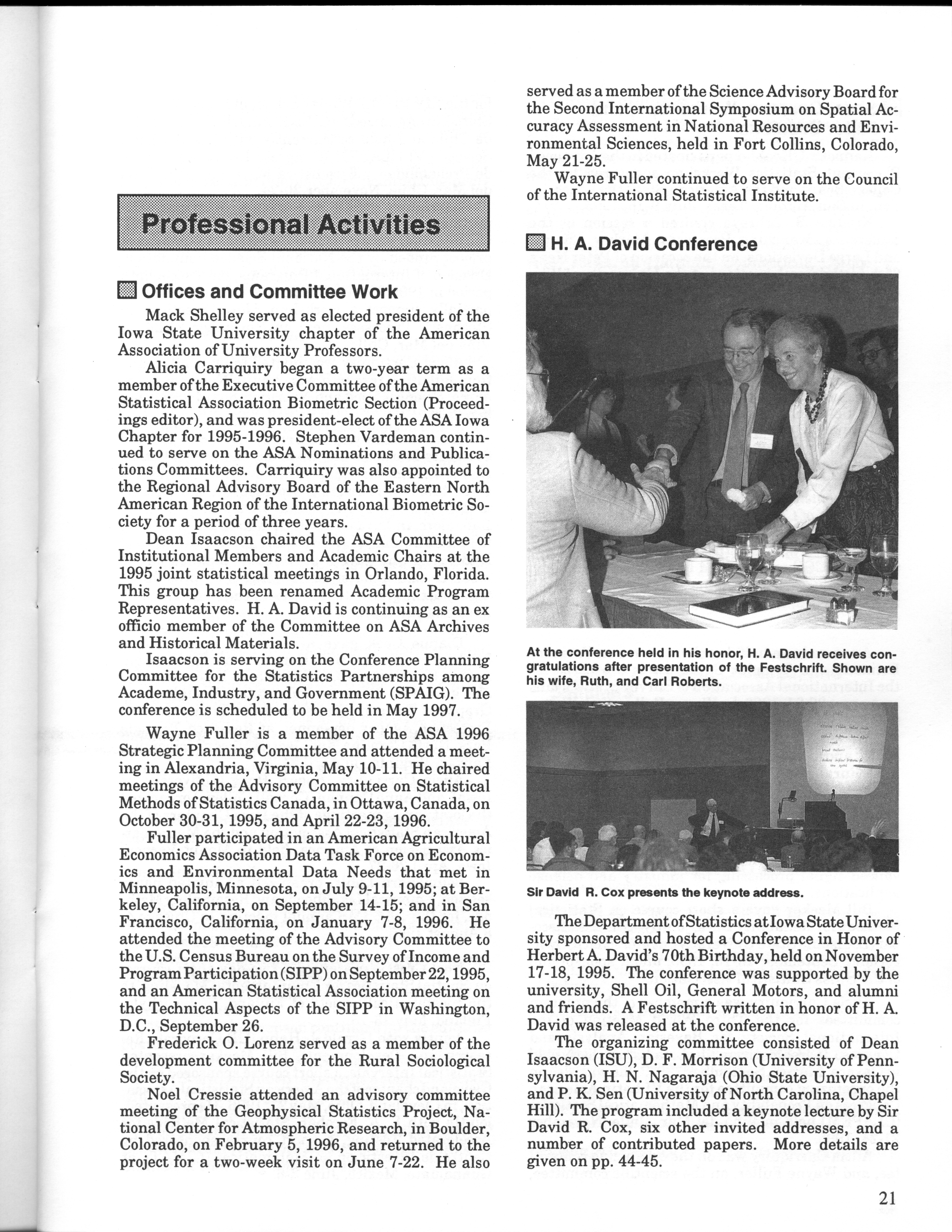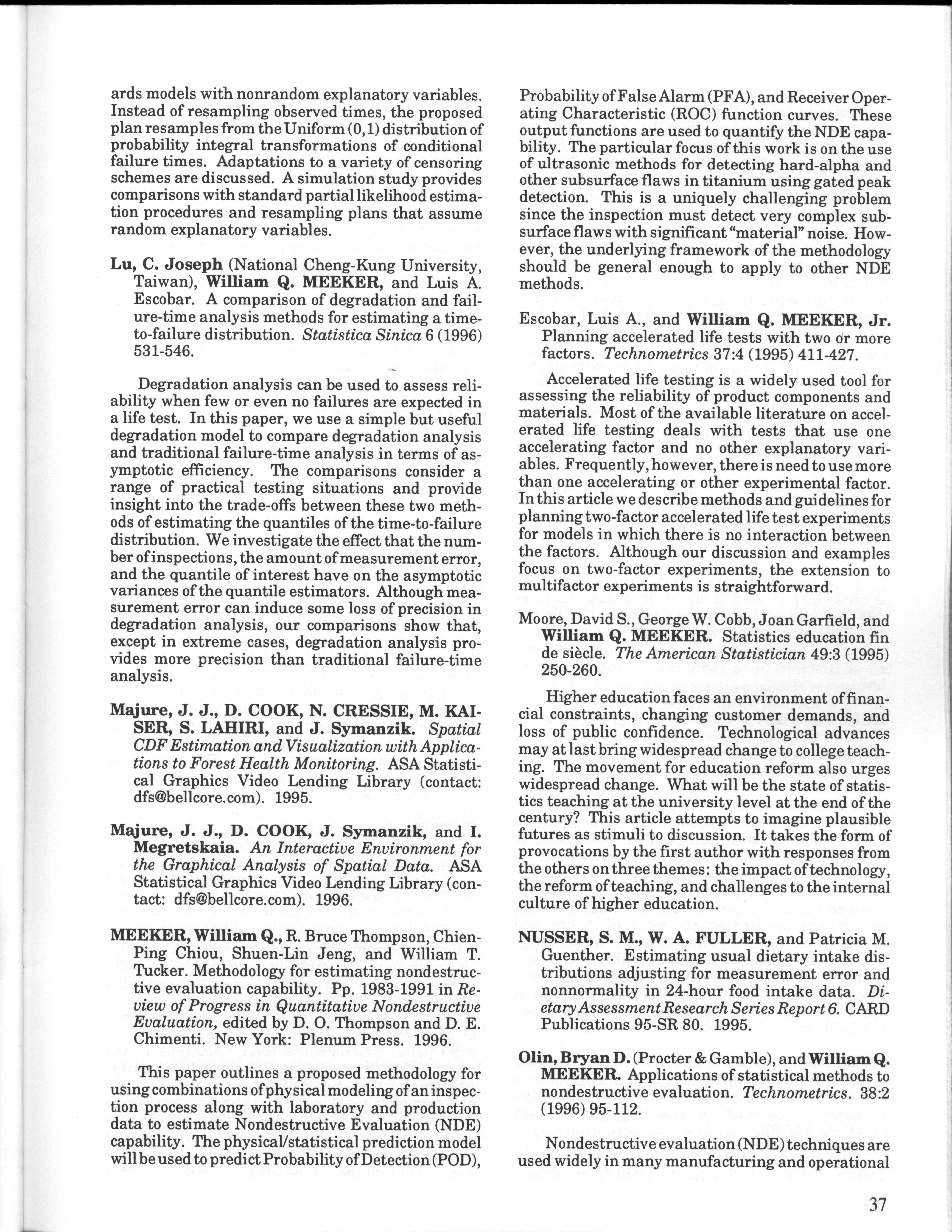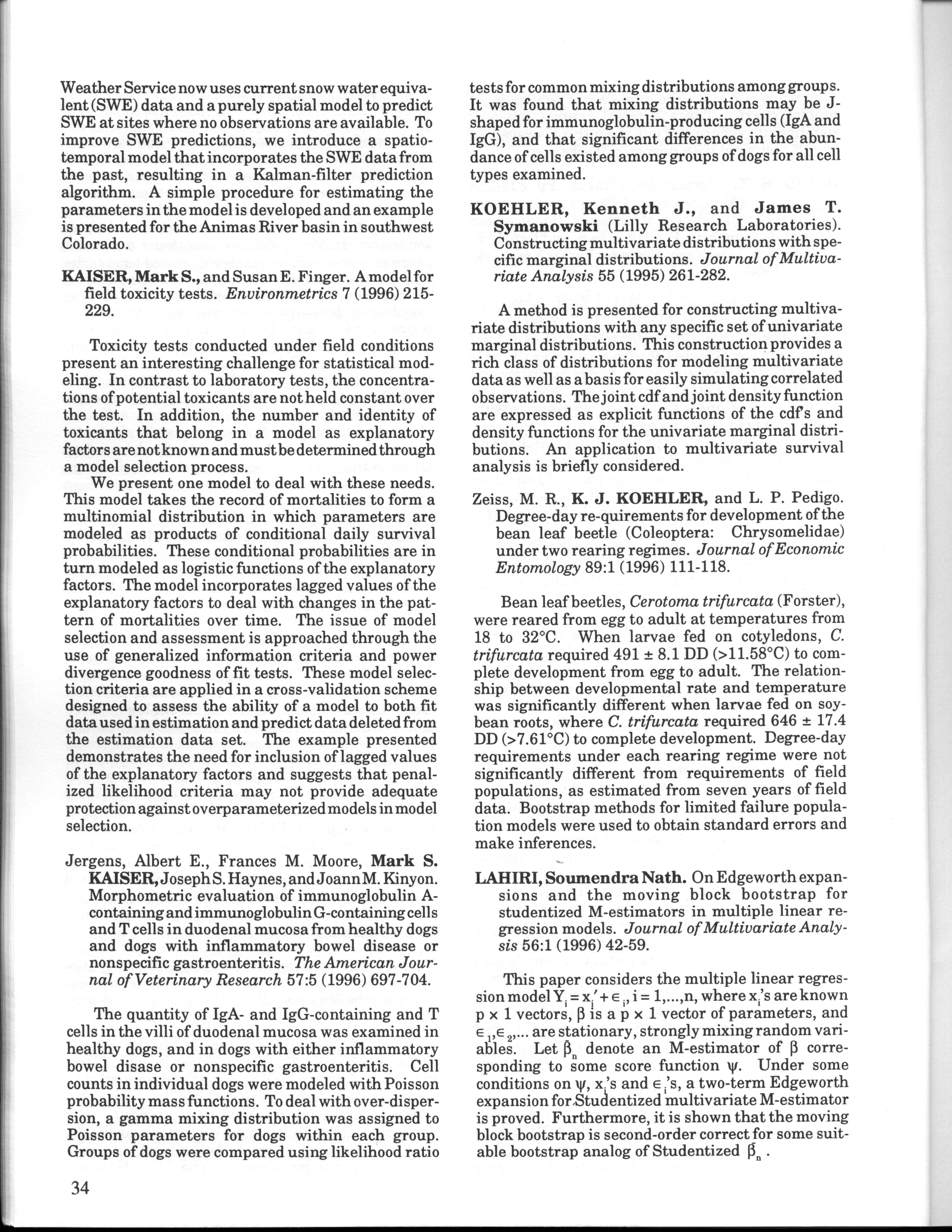 - "Statistical Laboratory Annual Report, July 1, 1995 to June 30, 1996", Iowa State University Statistical Laboratory Annual Reports, Iowa State University Library Digital Collections