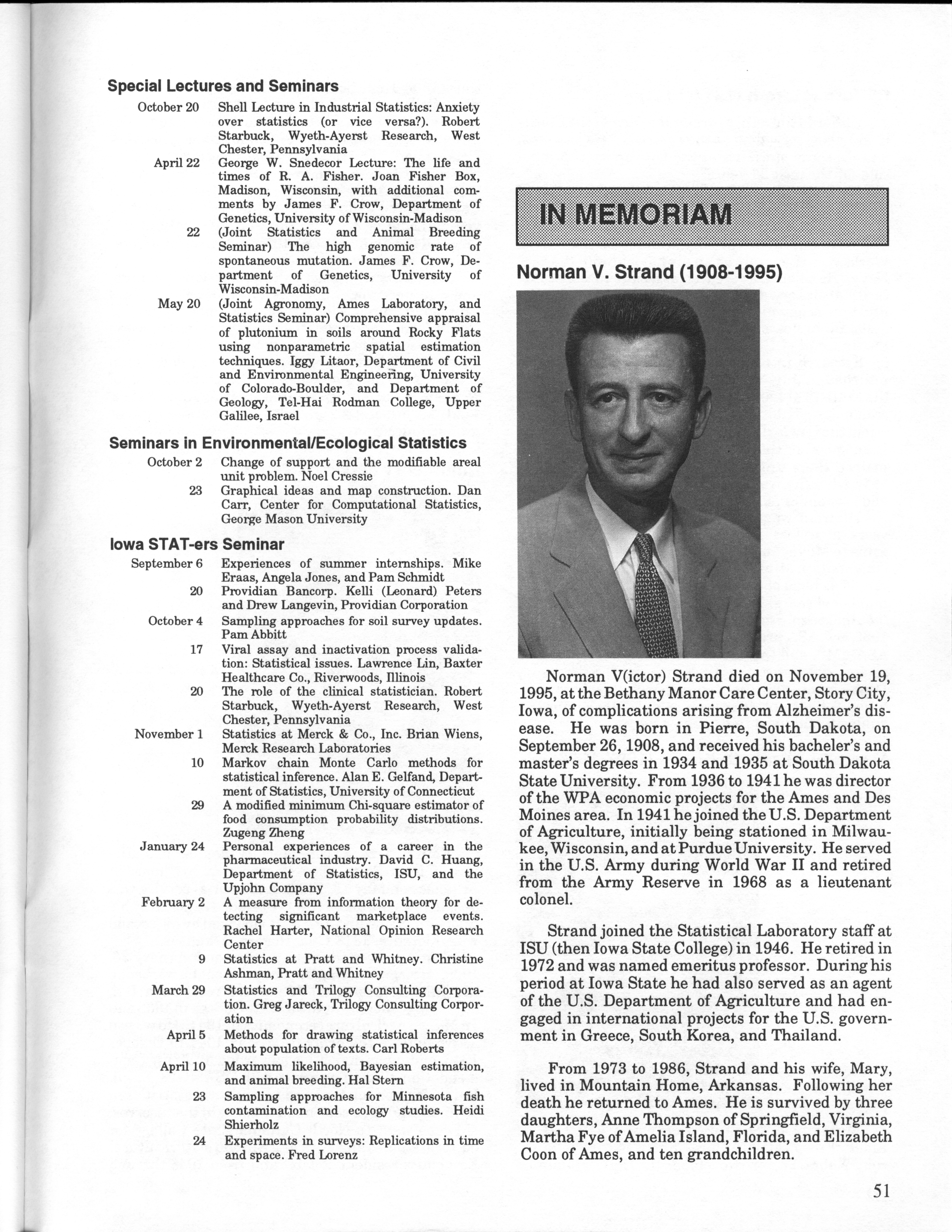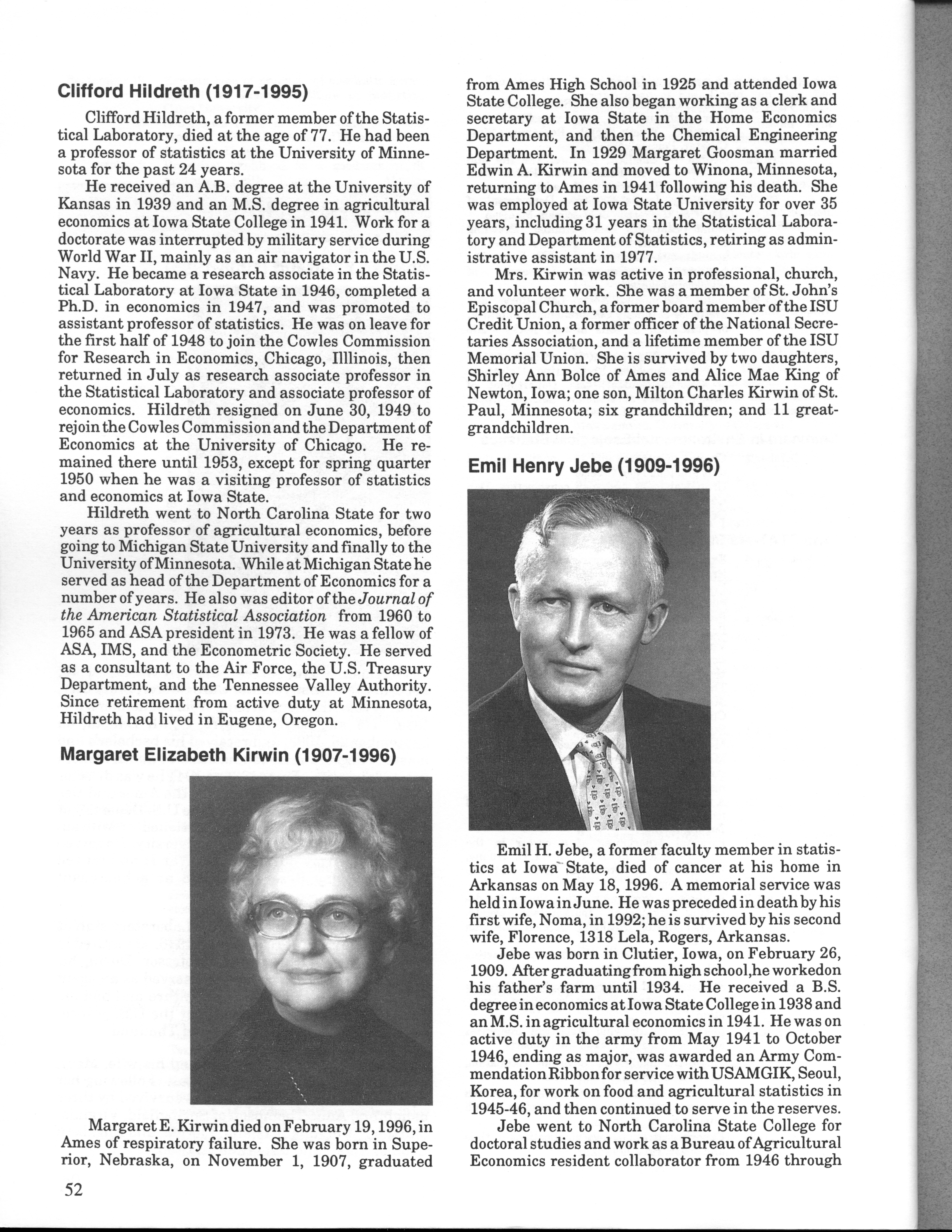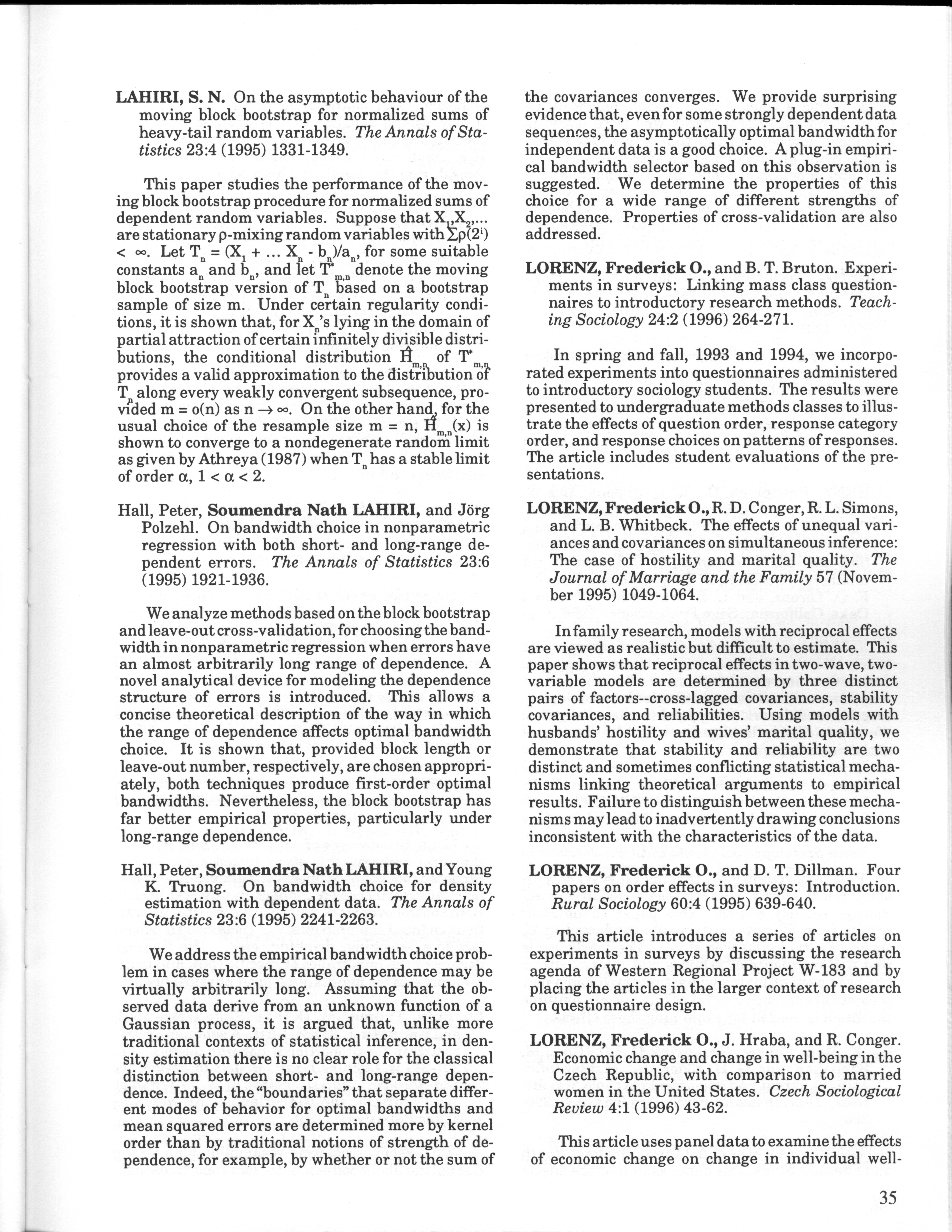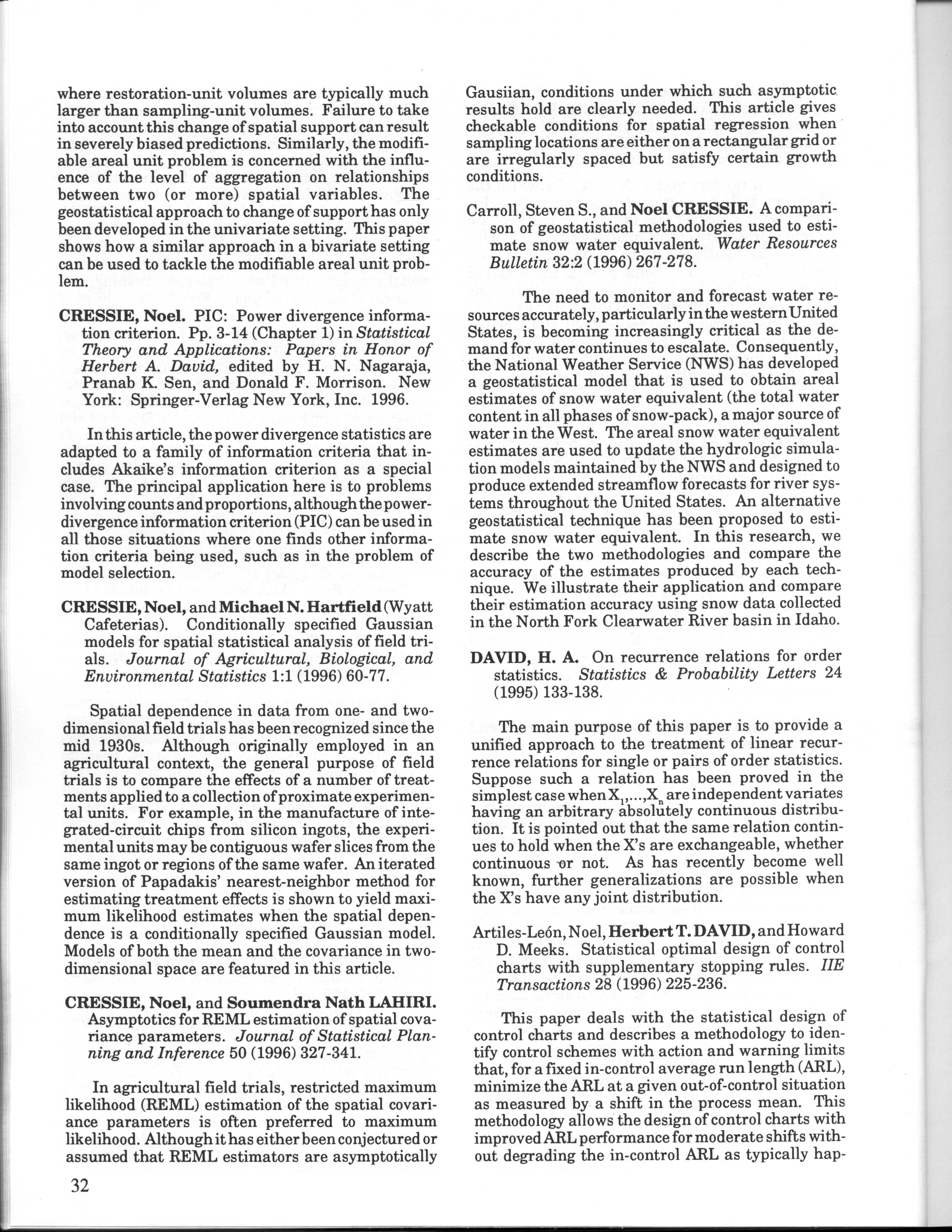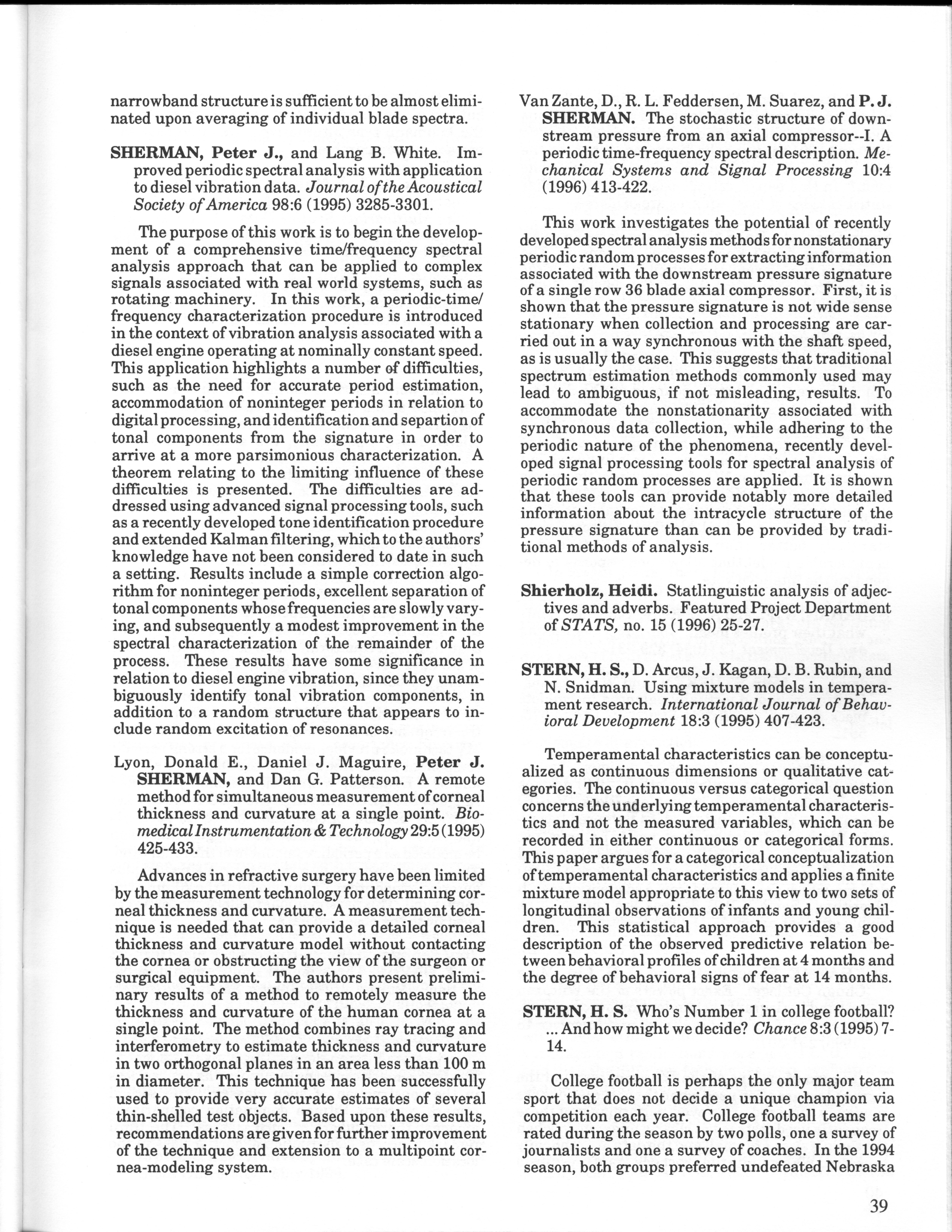 - "Statistical Laboratory Annual Report, July 1, 1995 to June 30, 1996", Iowa State University Statistical Laboratory Annual Reports, Iowa State University Library Digital Collections