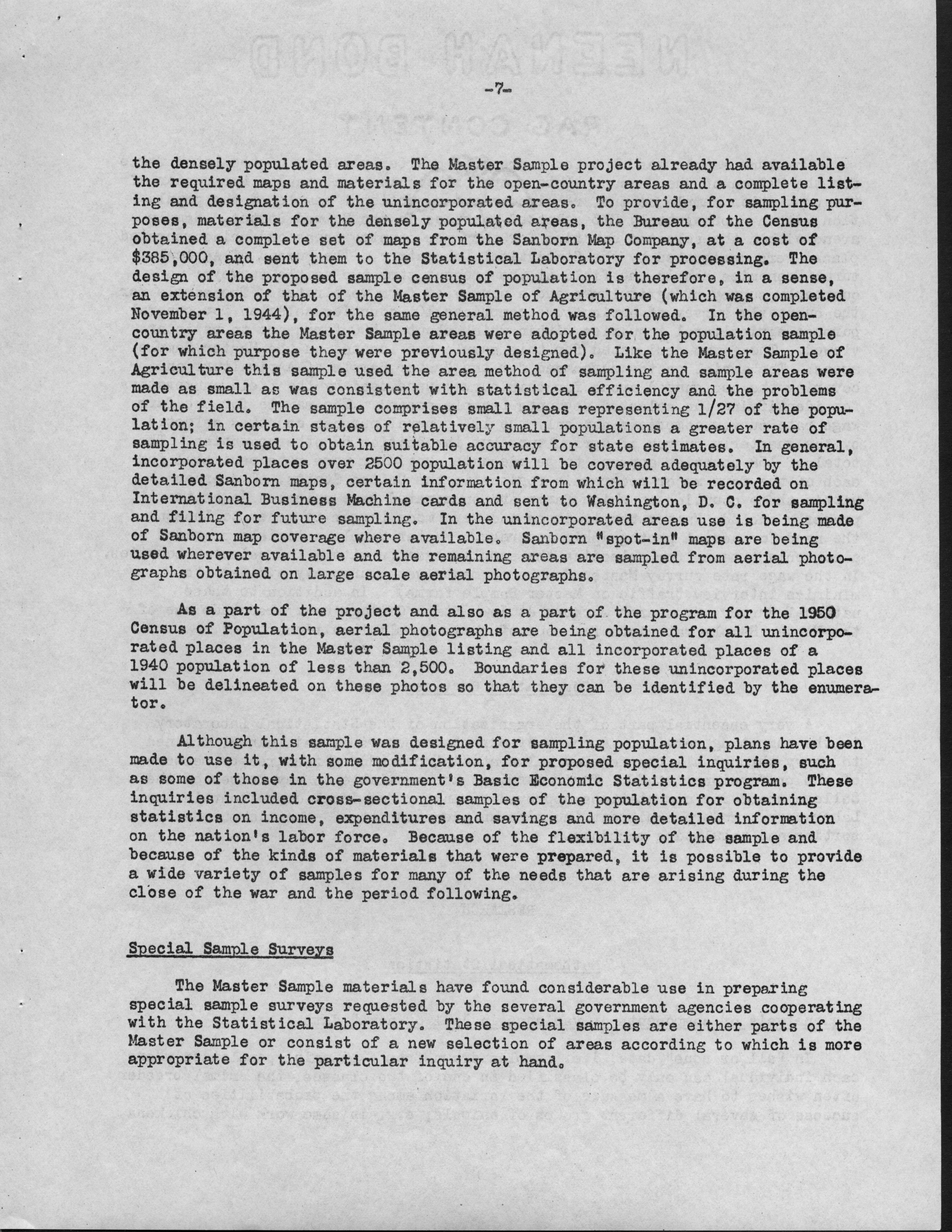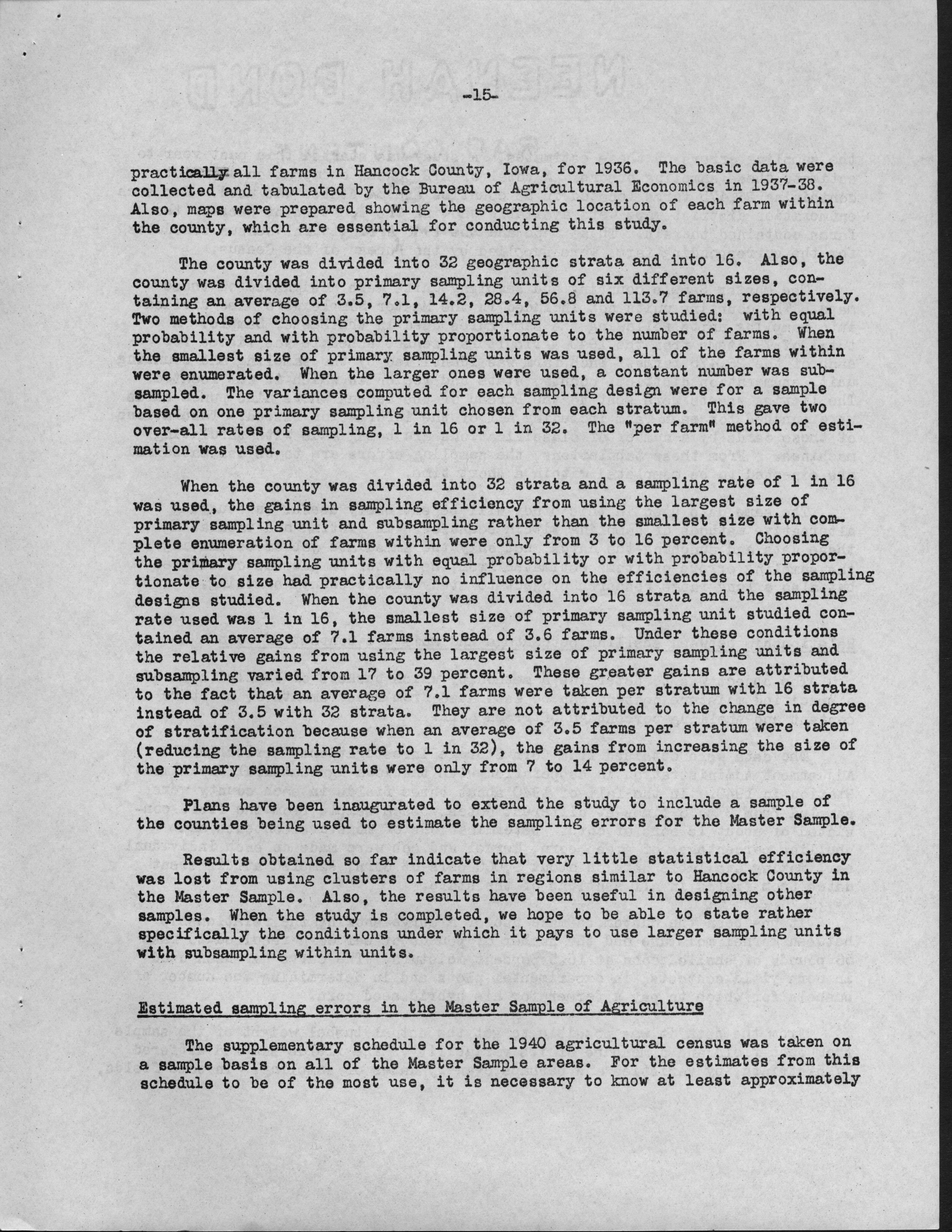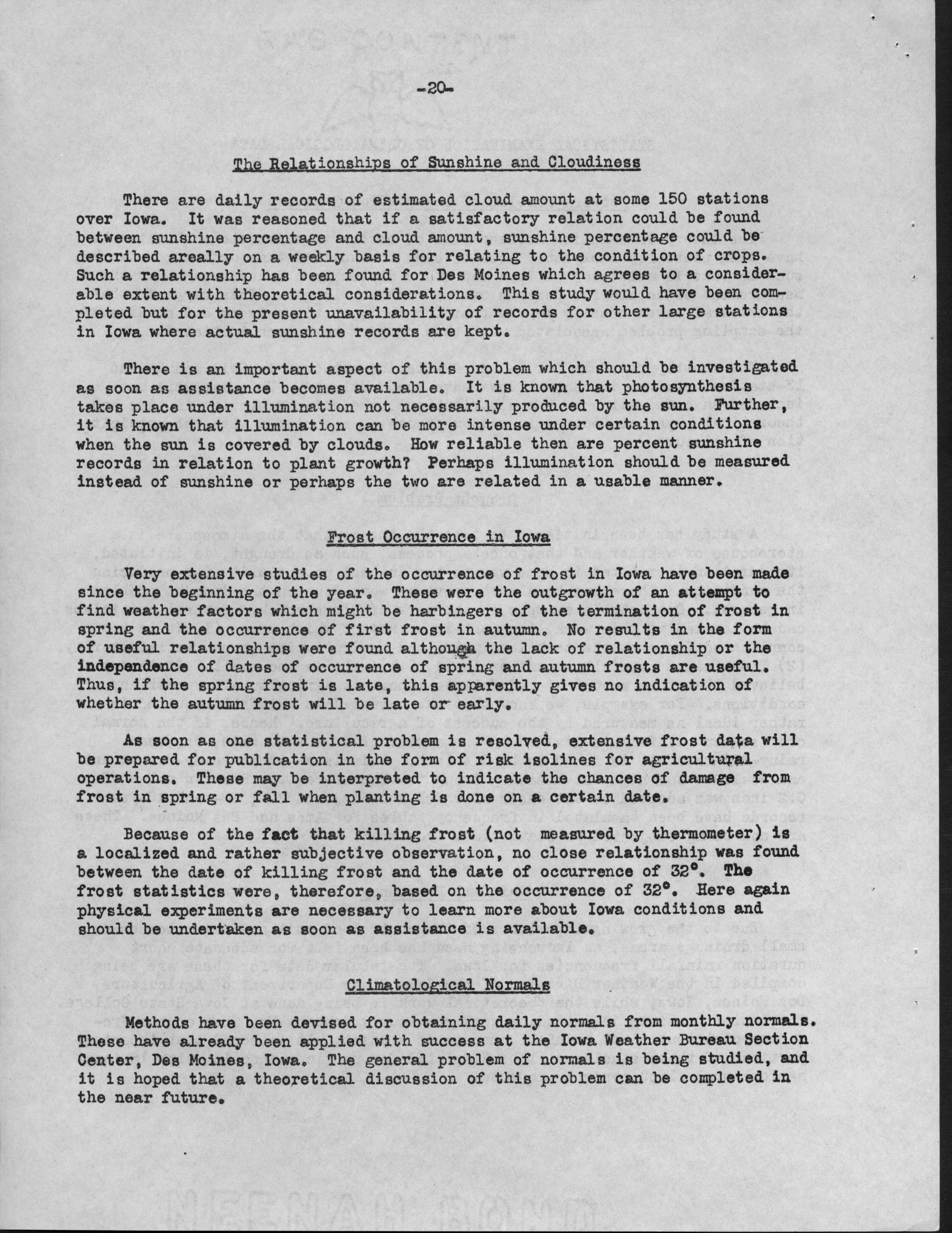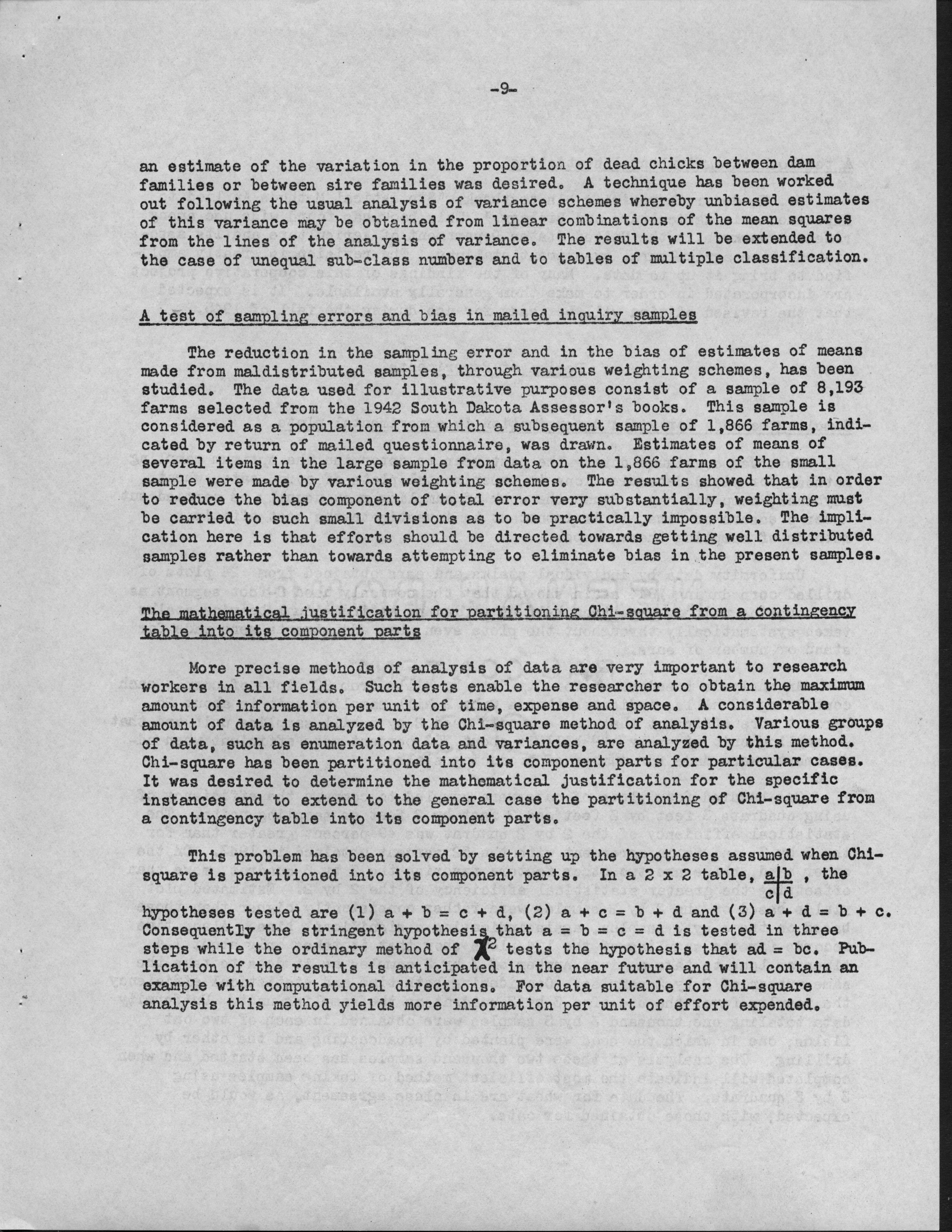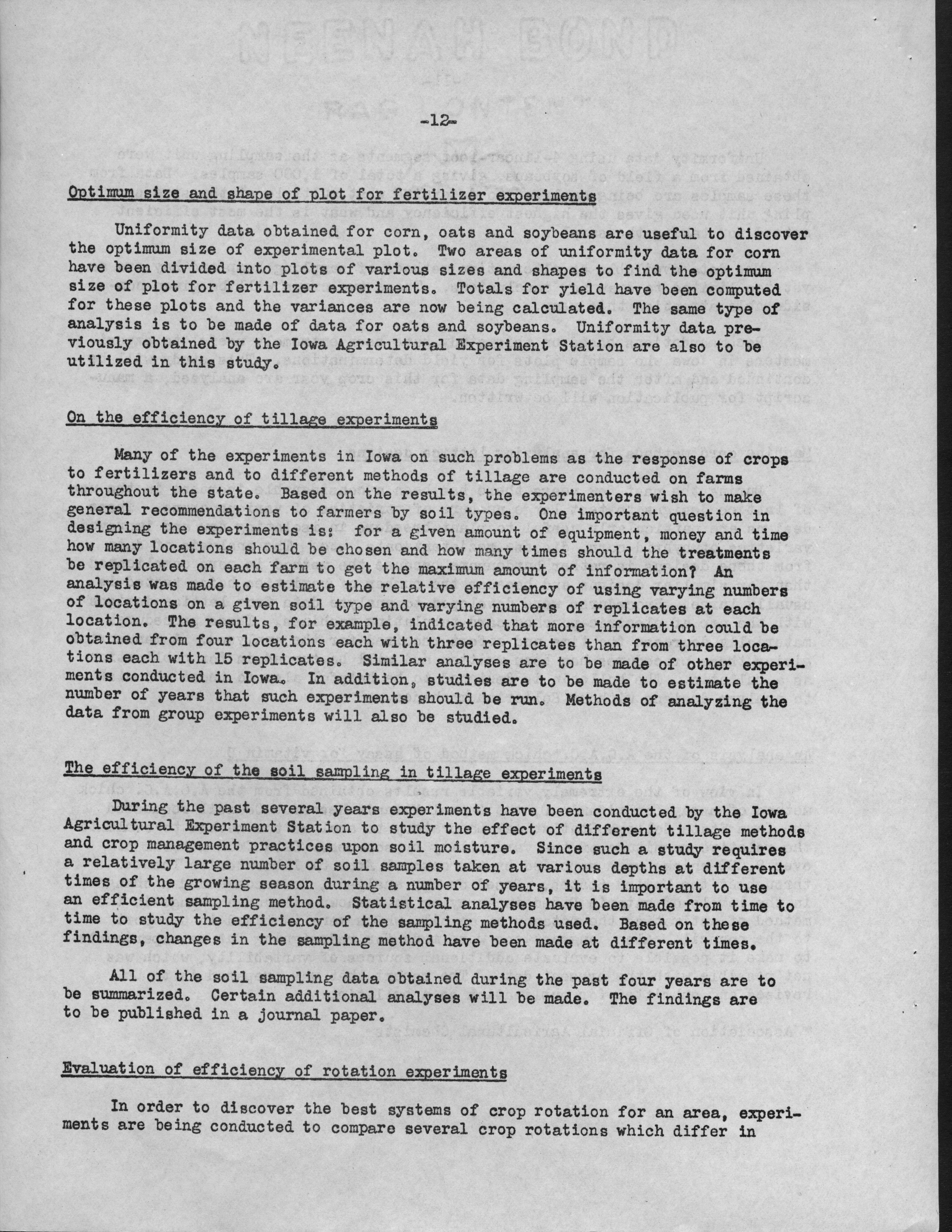 - Contents: Personnel -- Activities of the Statistical Laboratory -- Finance -- Teaching and Training -- Special Services: Design of Experiements, Design of Samples, Computation Services -- Research: Mathematical Statistics, Design of Experiments, Design of Samples -- Statistical Examination of Climatological Data: Network Problem of Observation Stations, Drought Problem, Rainfall Frequency, Relationships of Sunshine and Cloudiness, Frost Occurence in Iowa, Climatological Normals -- Miscelleanous Activities: Cooperation with the North Carolina Agricultural Experiment Station, Activities Related to Statistical Organizations, Participation in Public Discussion -- Publications