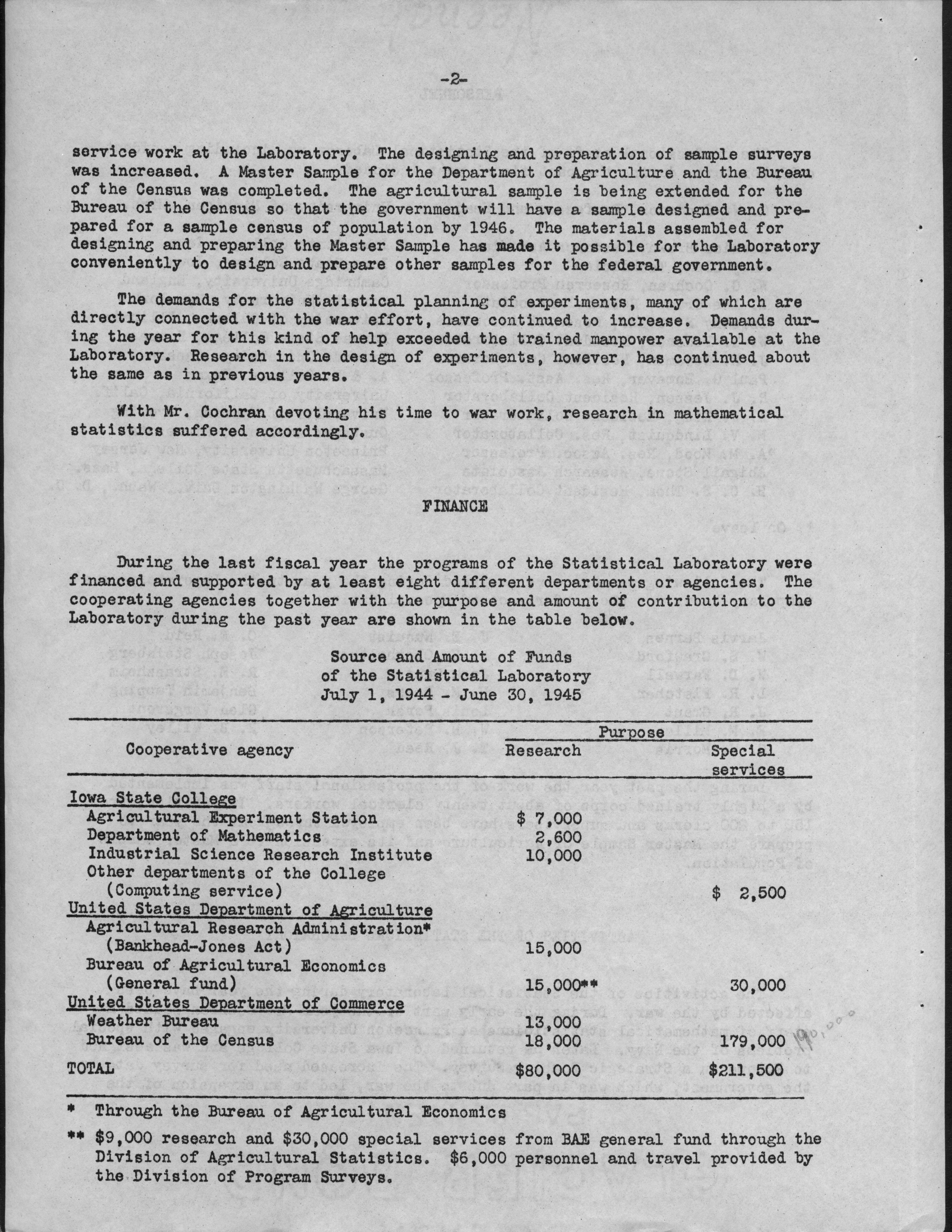 - Statistical Laboratory Annual Report, 1944-1945