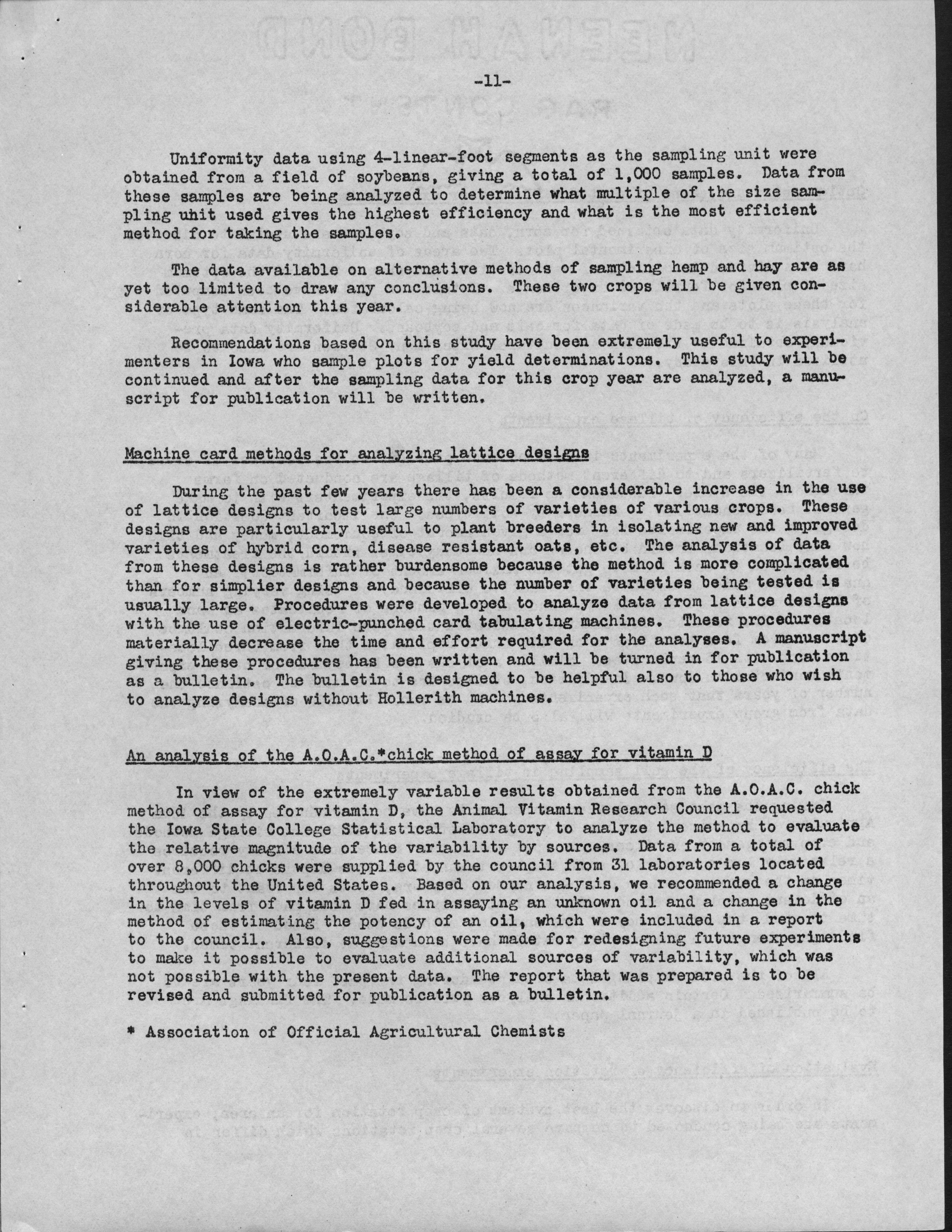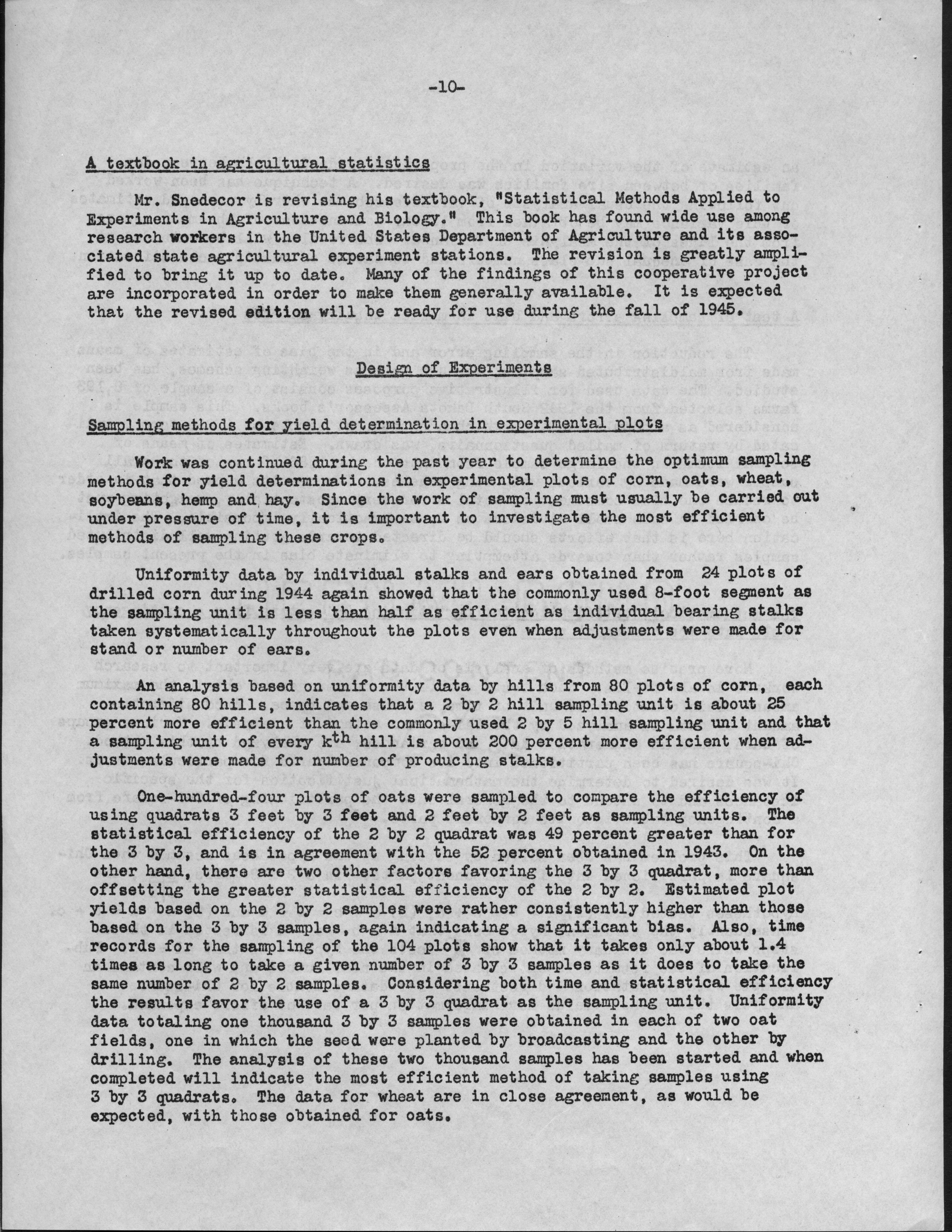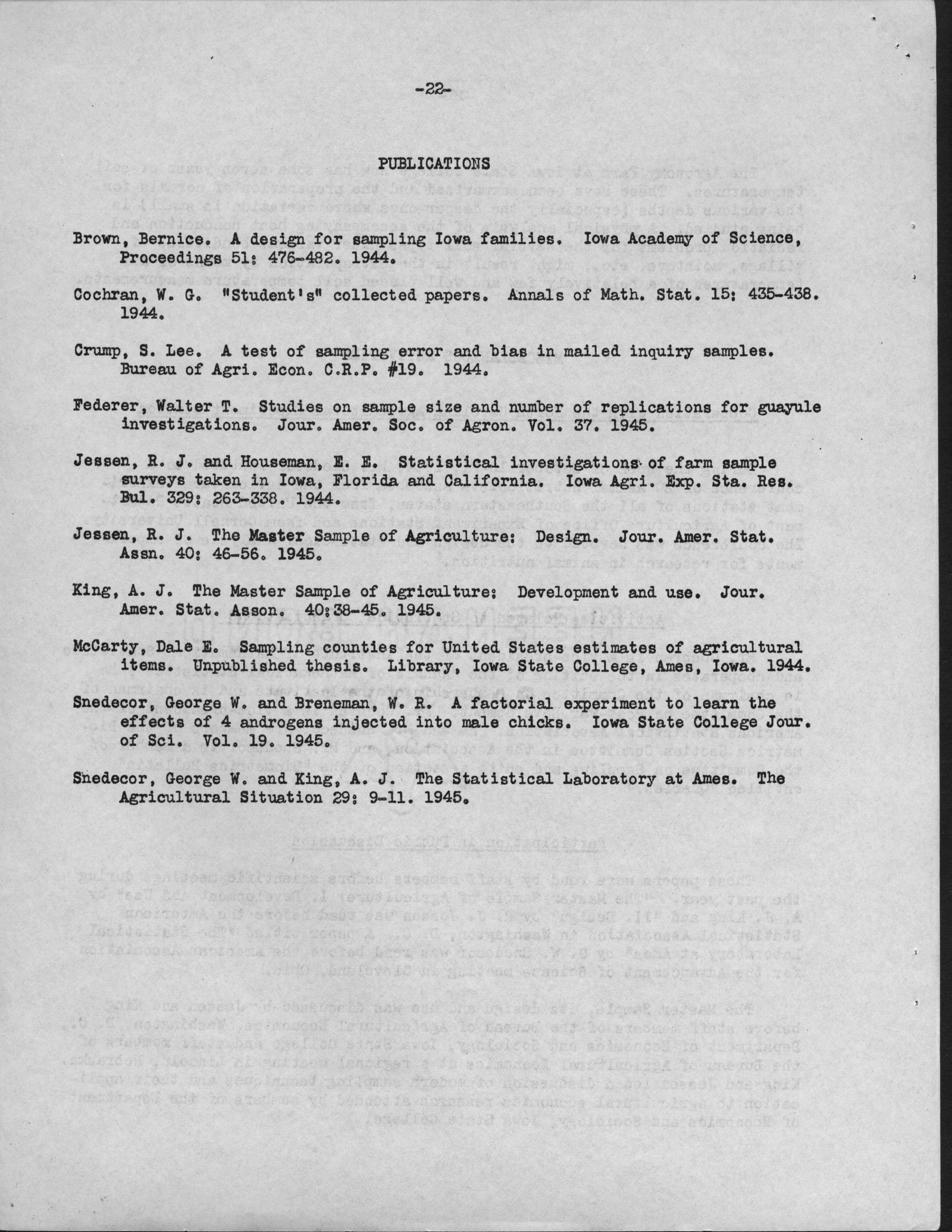 - "Statistical Laboratory Annual Report, 1944-1945", Iowa State University Statistical Laboratory Annual Reports, Iowa State University Library Digital Collections