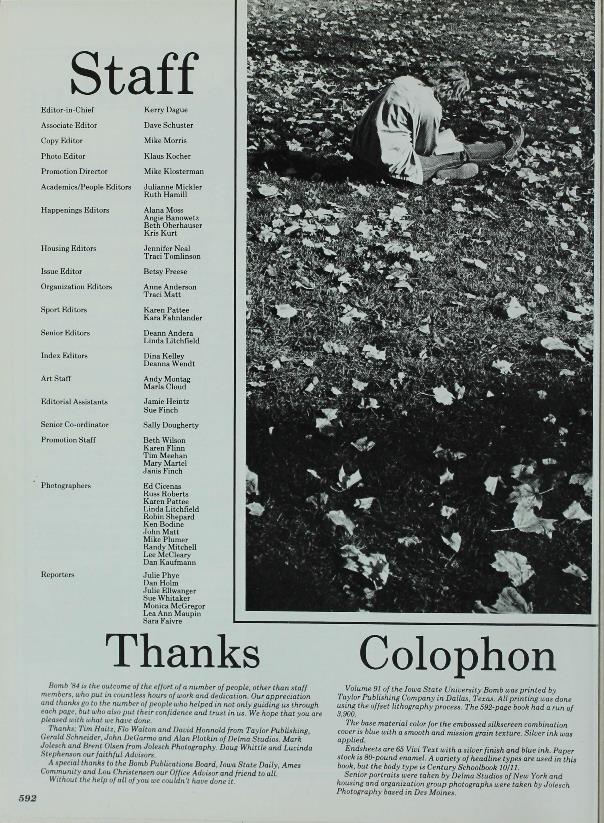- "1984 Bomb", The Bomb (Iowa State) School Yearbooks, Iowa State University Library Digital Collections