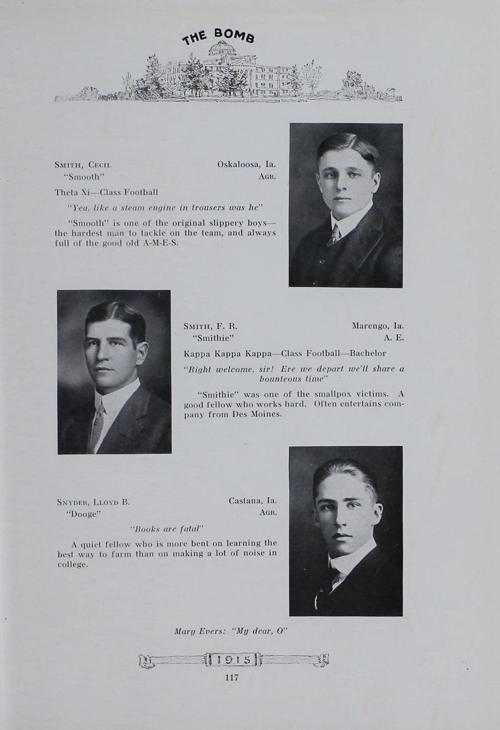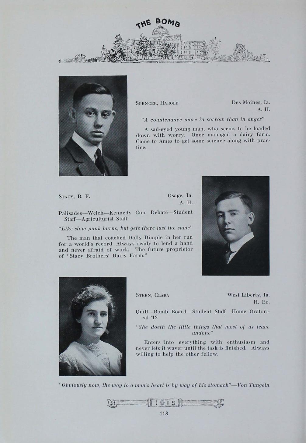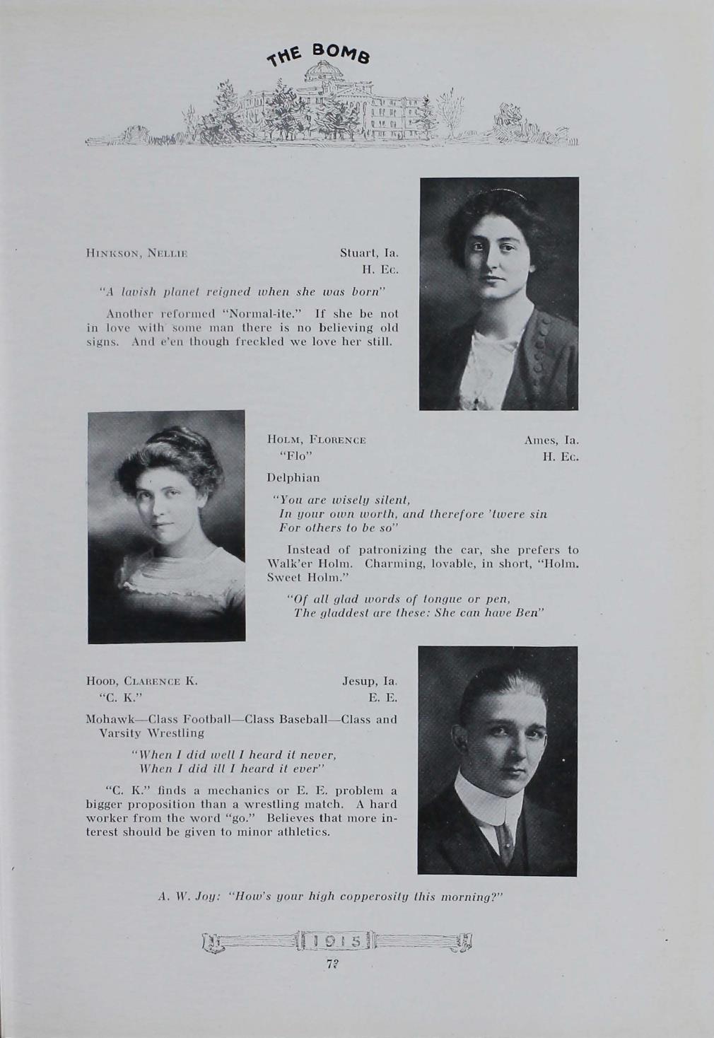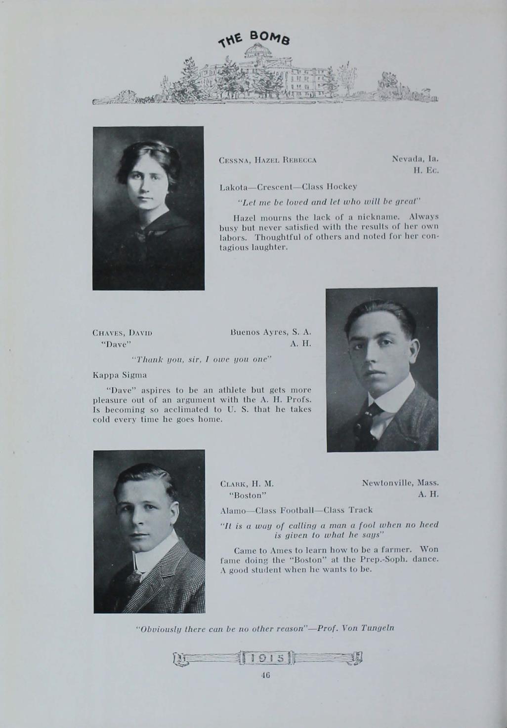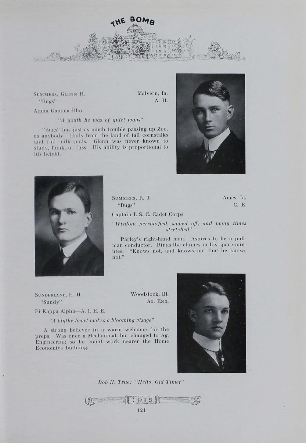 - "1915 Bomb", The Bomb (Iowa State) School Yearbooks, Iowa State University Library Digital Collections