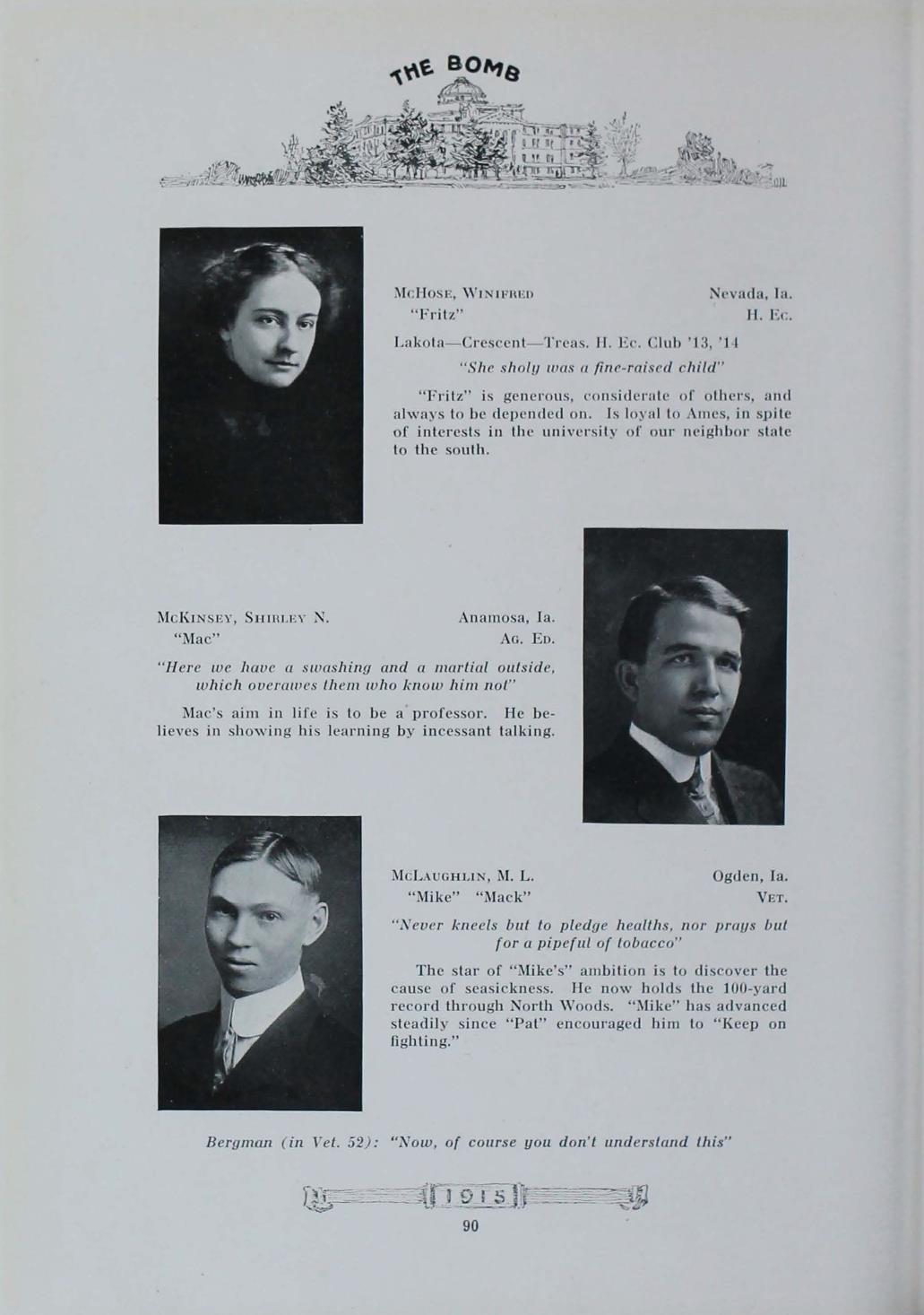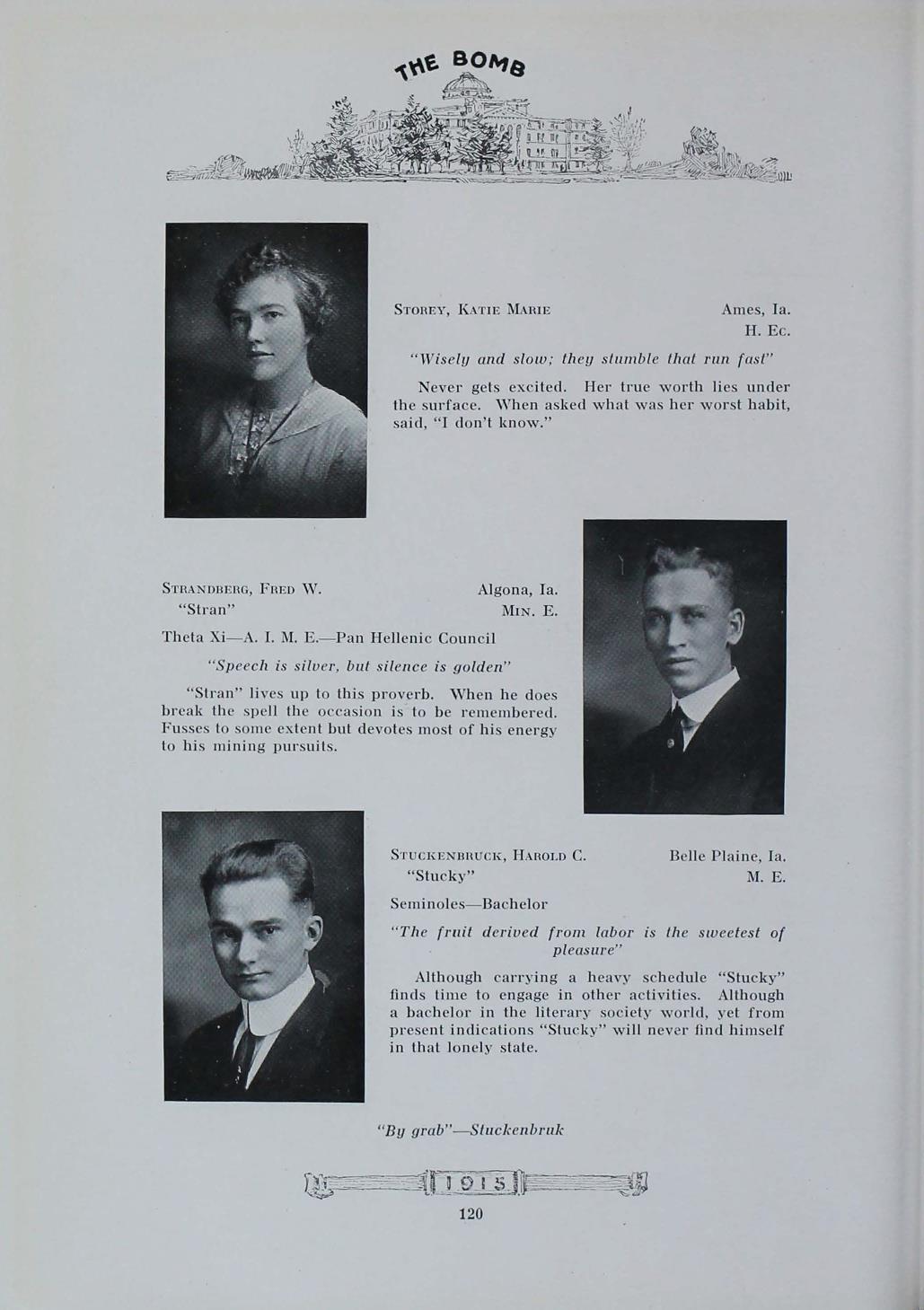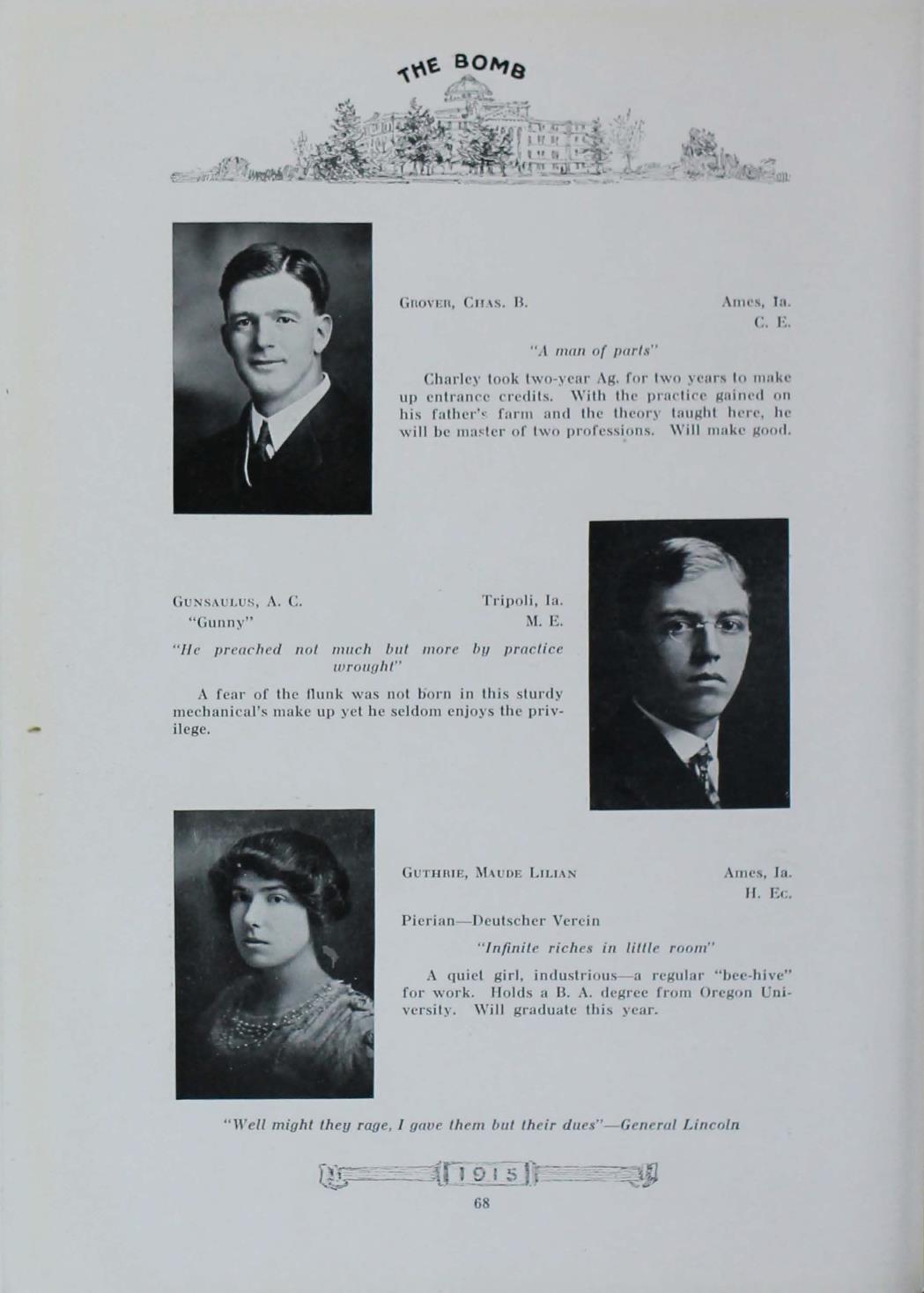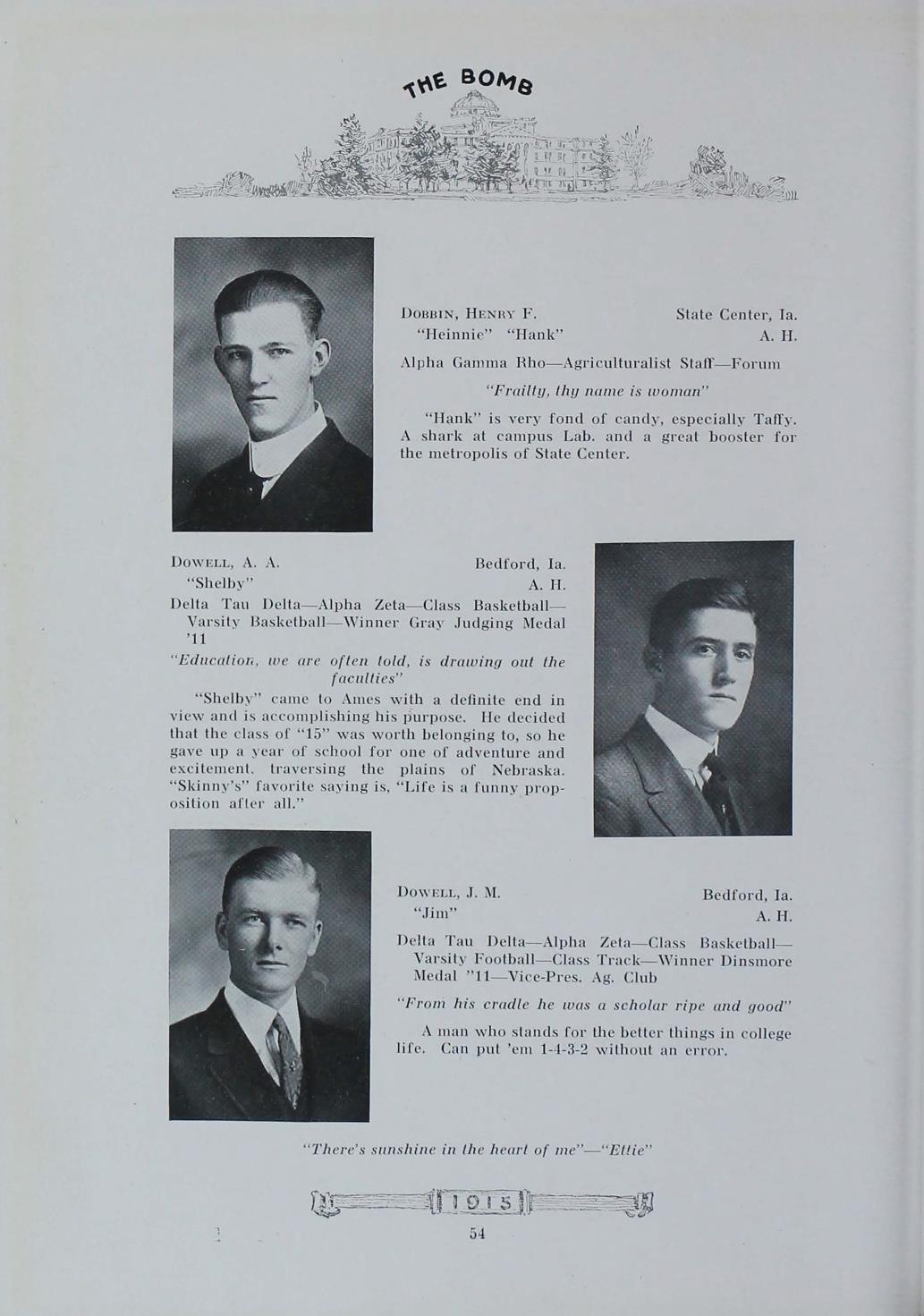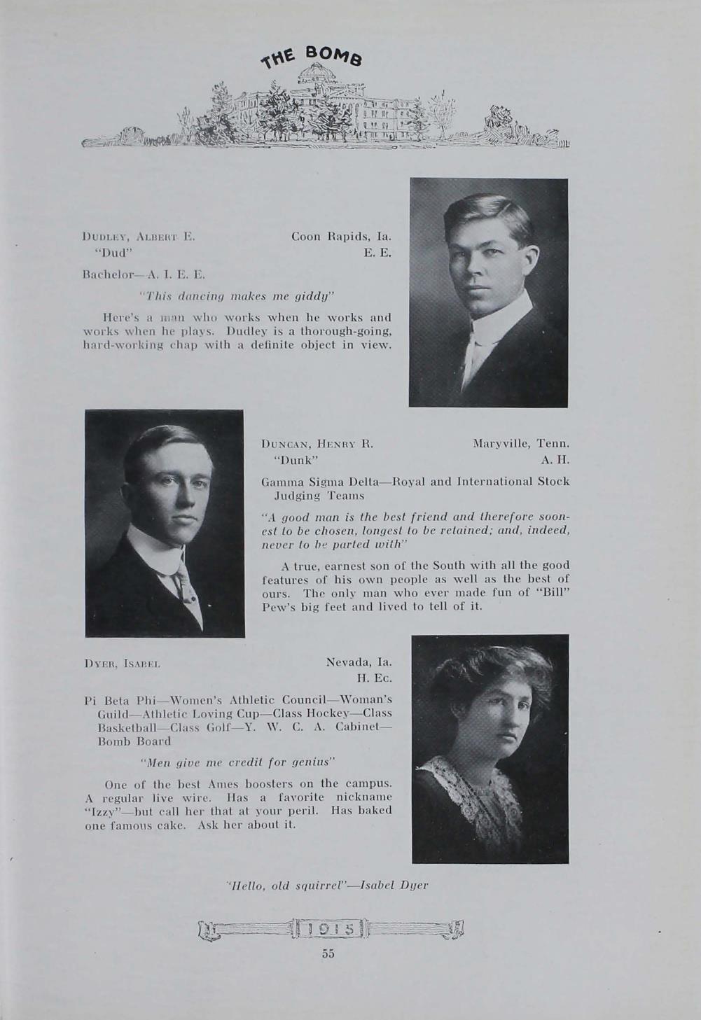 - "1915 Bomb", The Bomb (Iowa State) School Yearbooks, Iowa State University Library Digital Collections