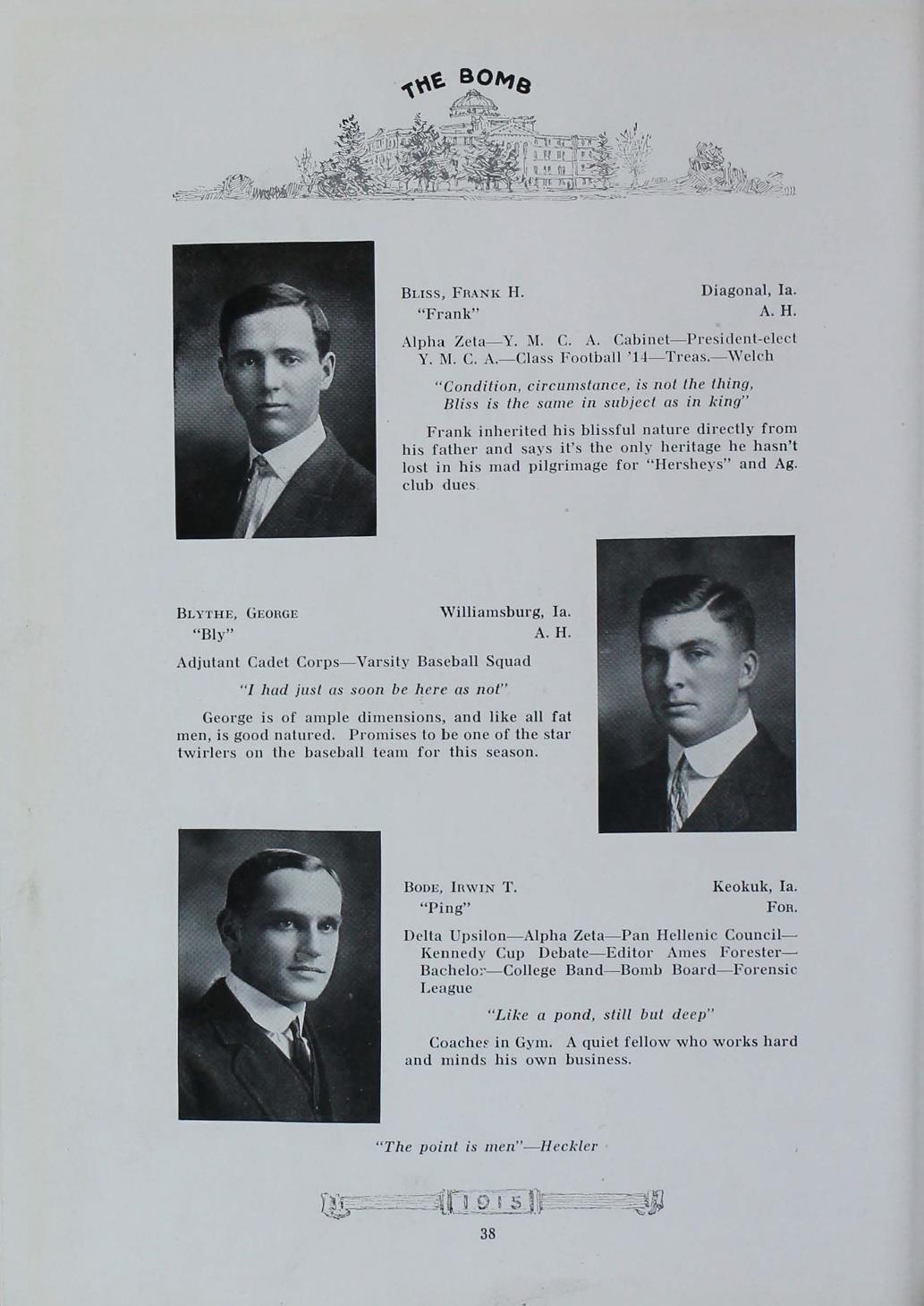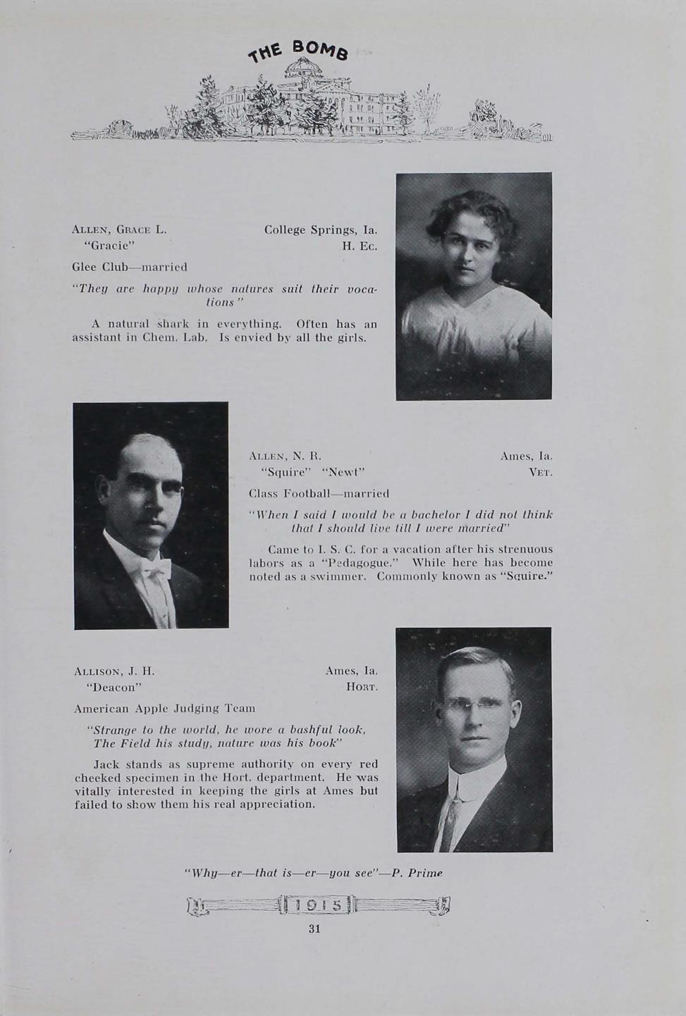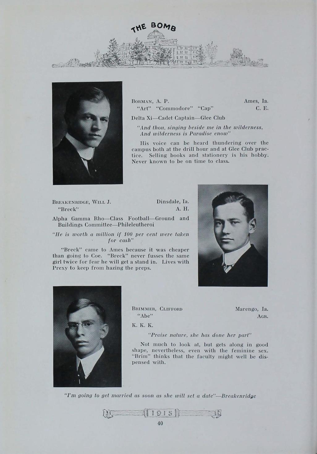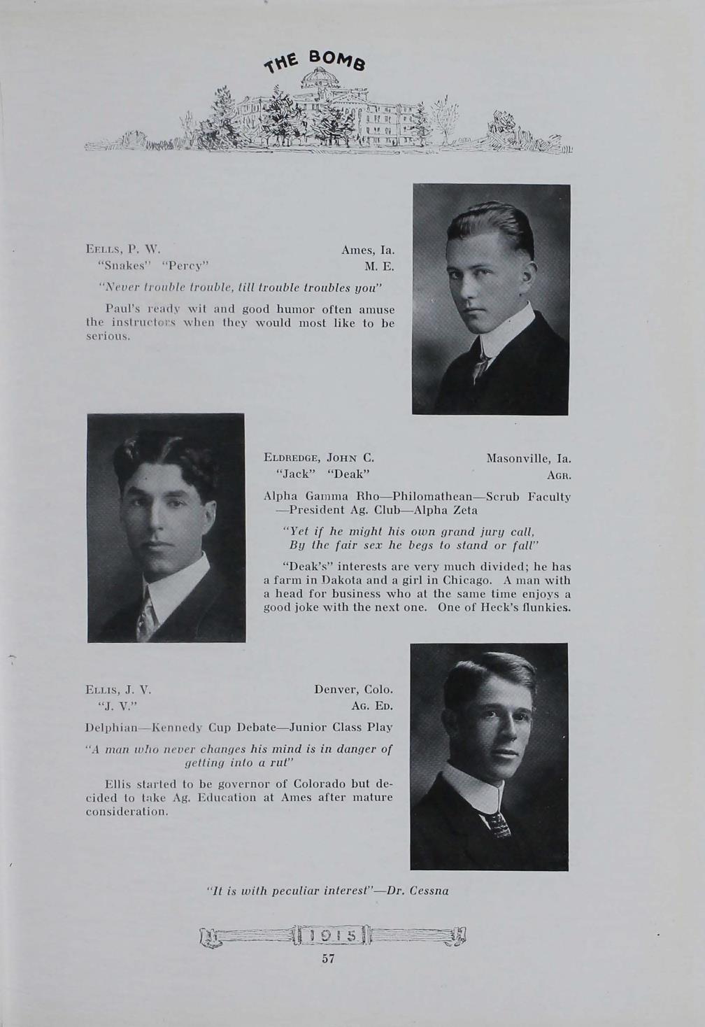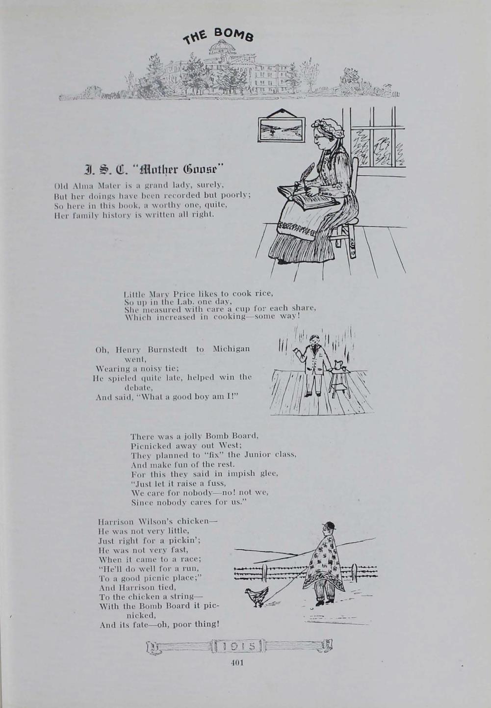 - "1915 Bomb", The Bomb (Iowa State) School Yearbooks, Iowa State University Library Digital Collections