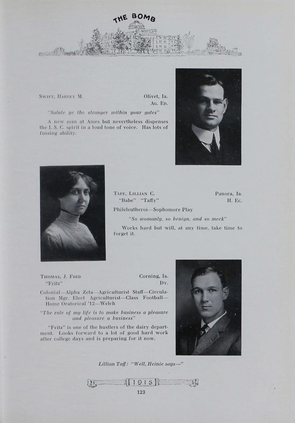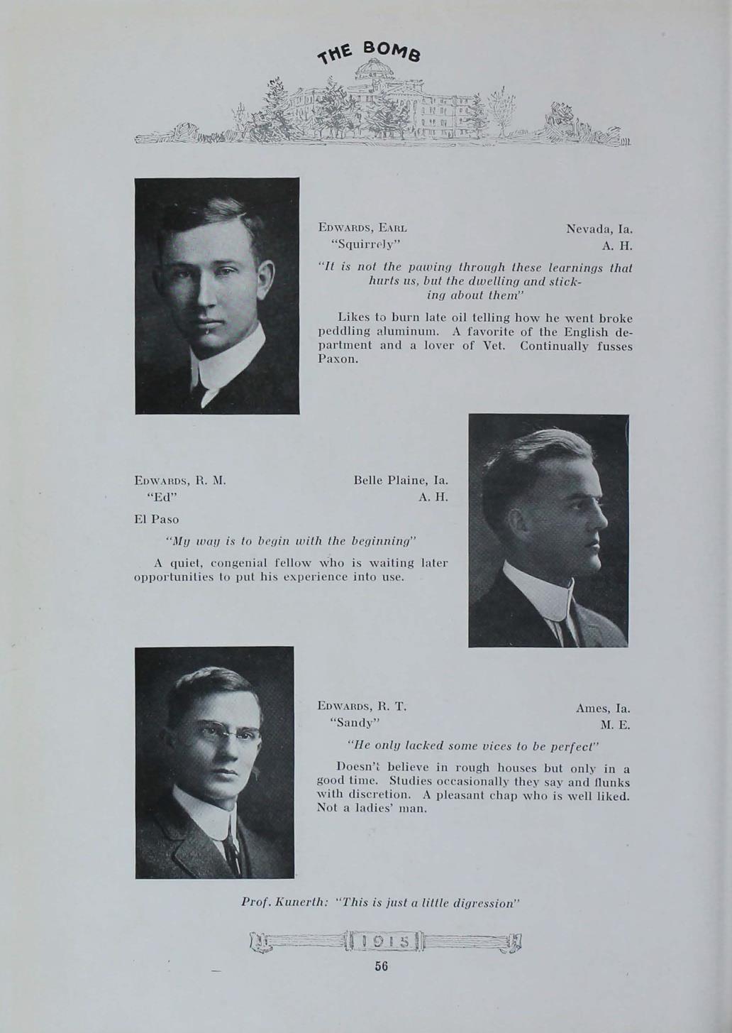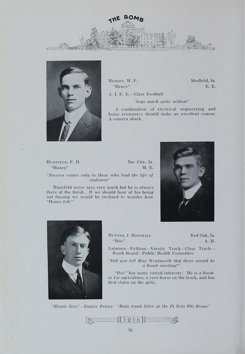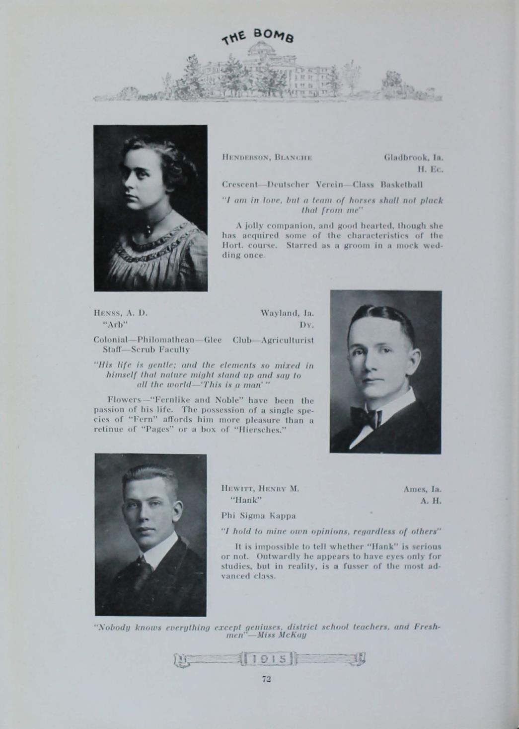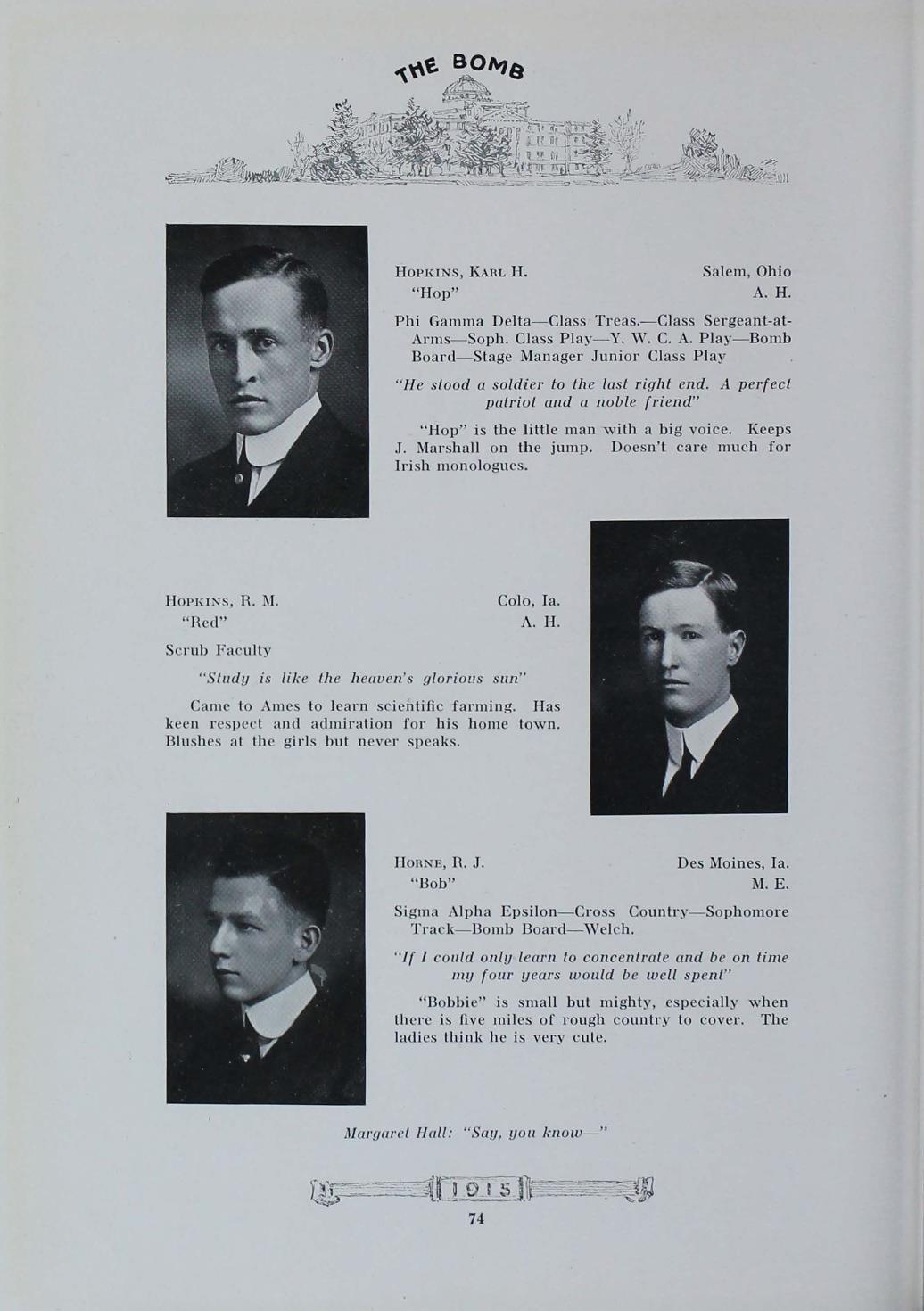- "1915 Bomb", The Bomb (Iowa State) School Yearbooks, Iowa State University Library Digital Collections