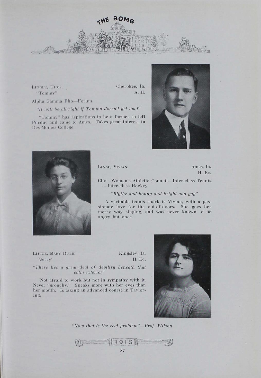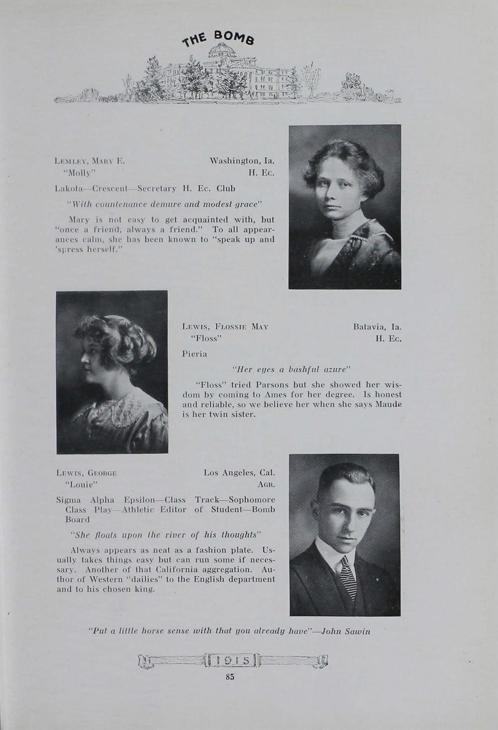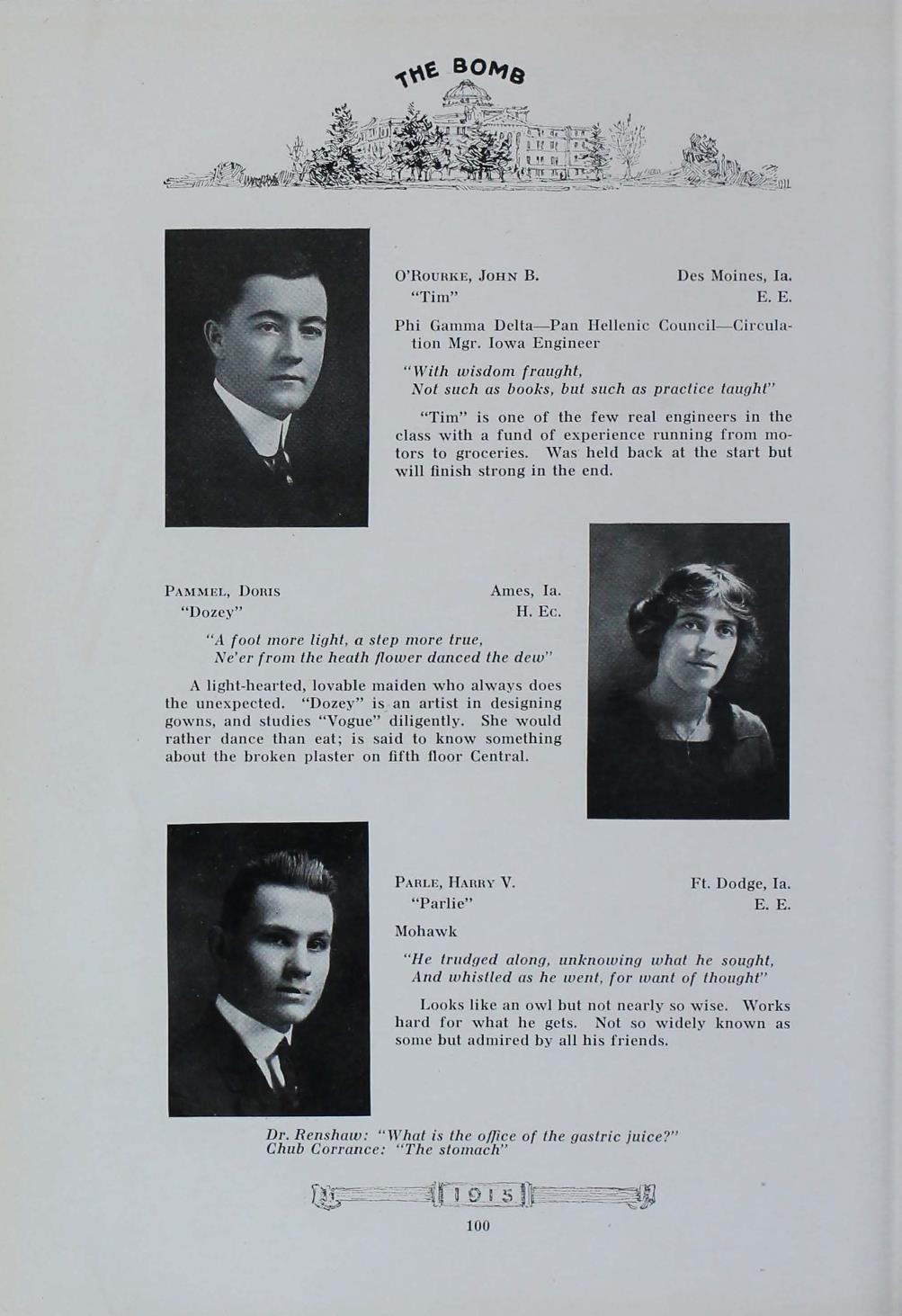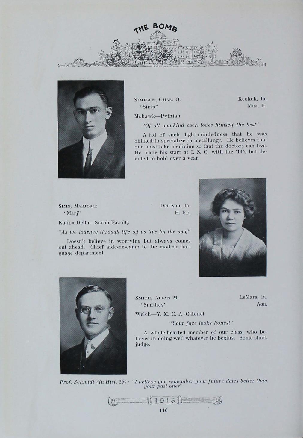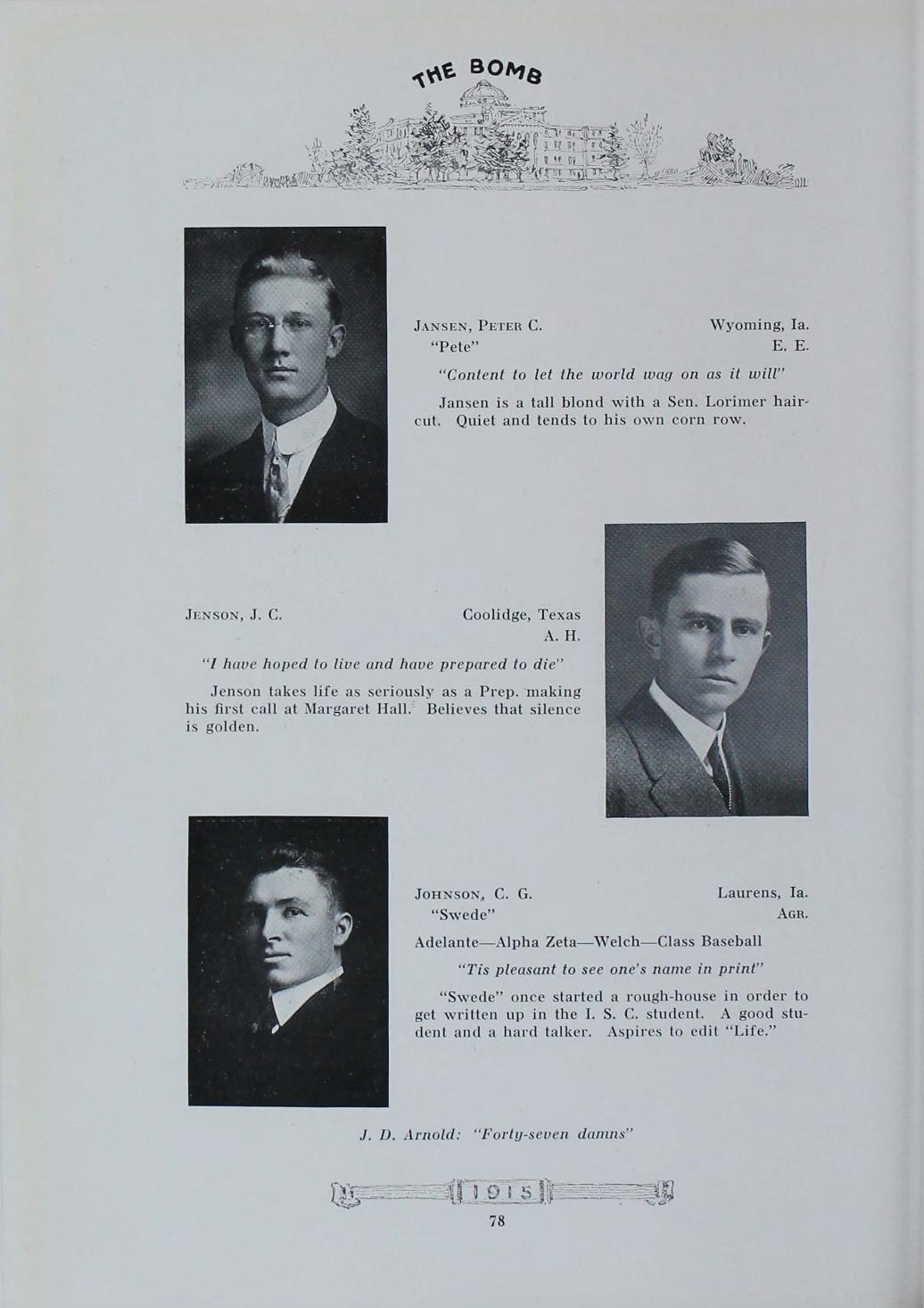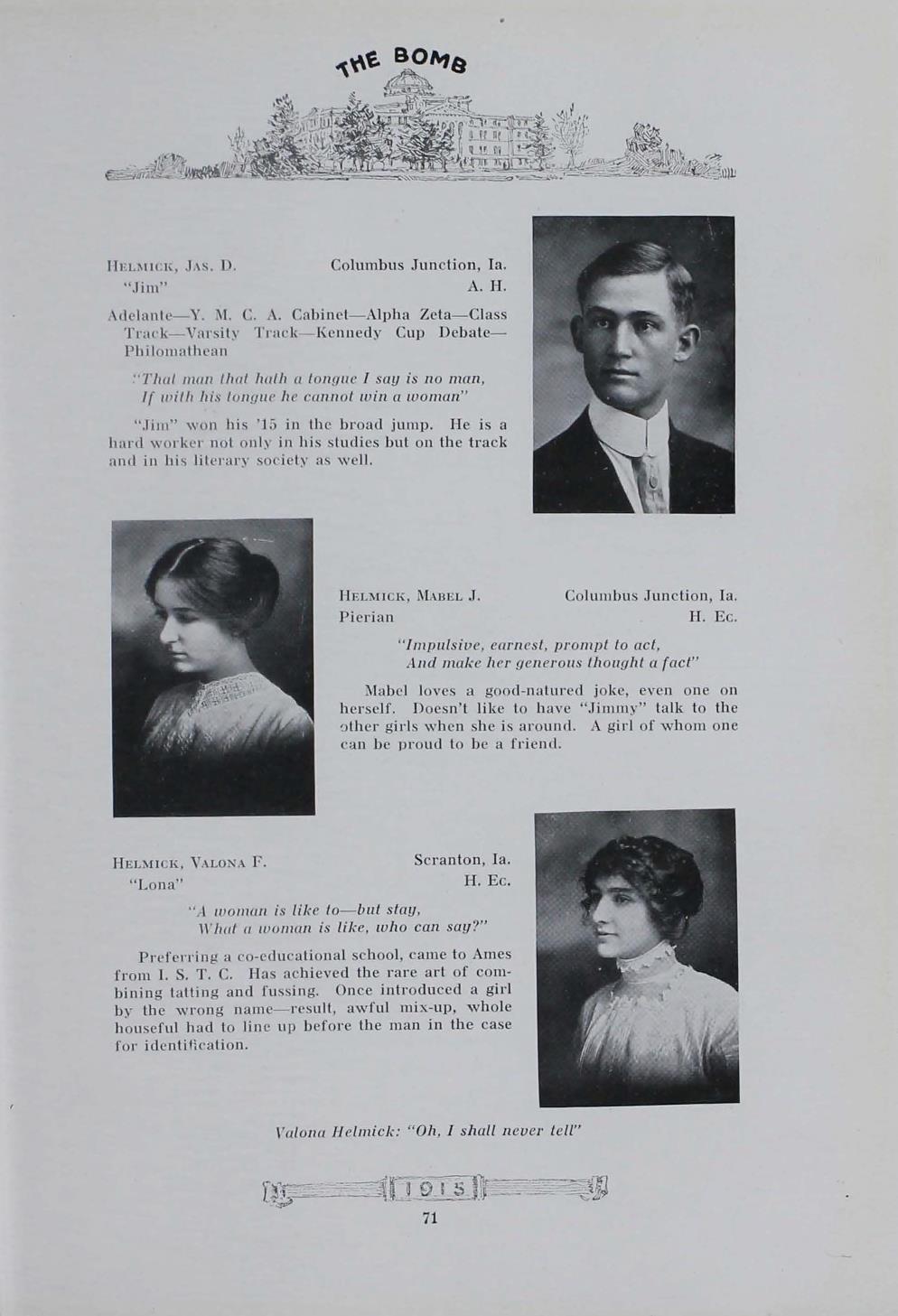 - "1915 Bomb", The Bomb (Iowa State) School Yearbooks, Iowa State University Library Digital Collections