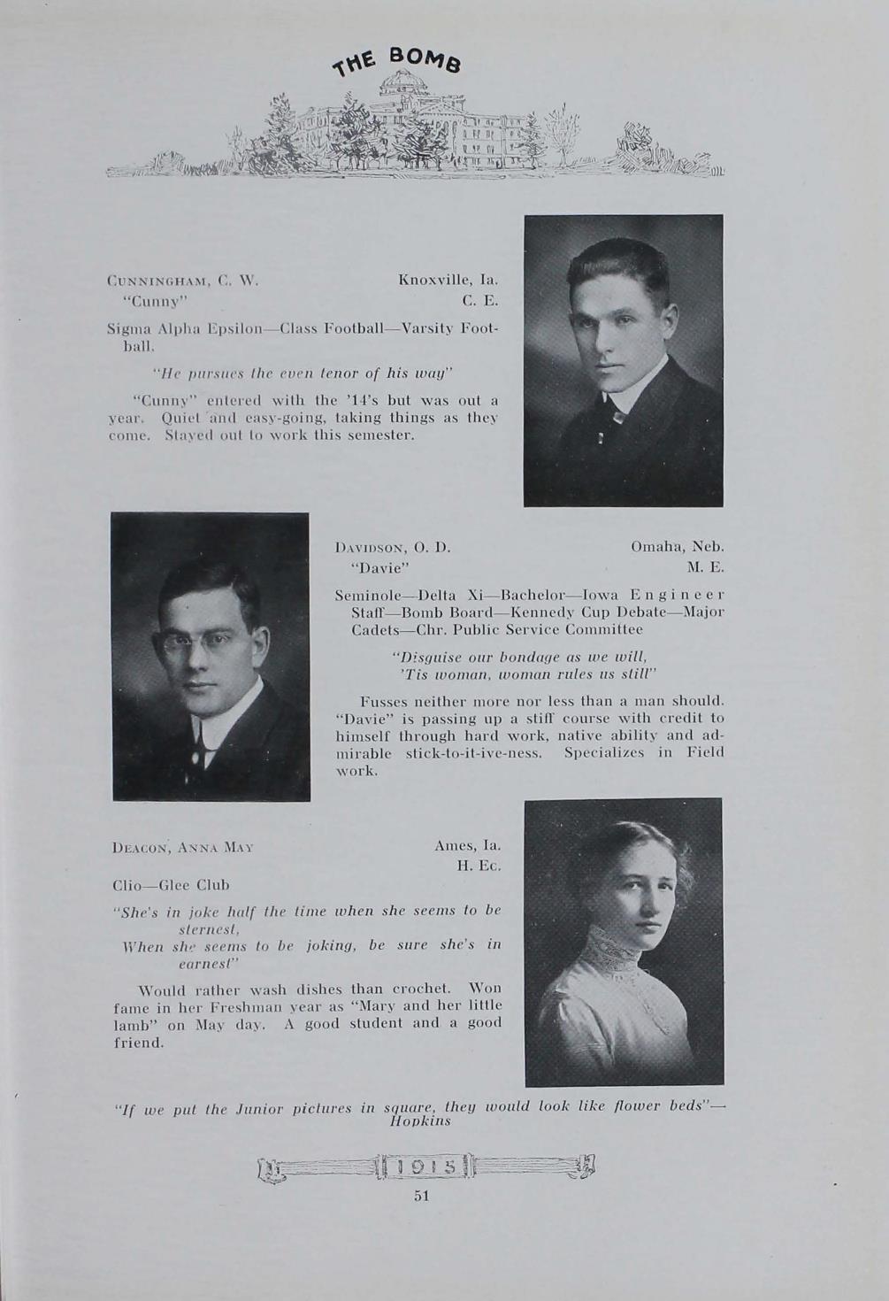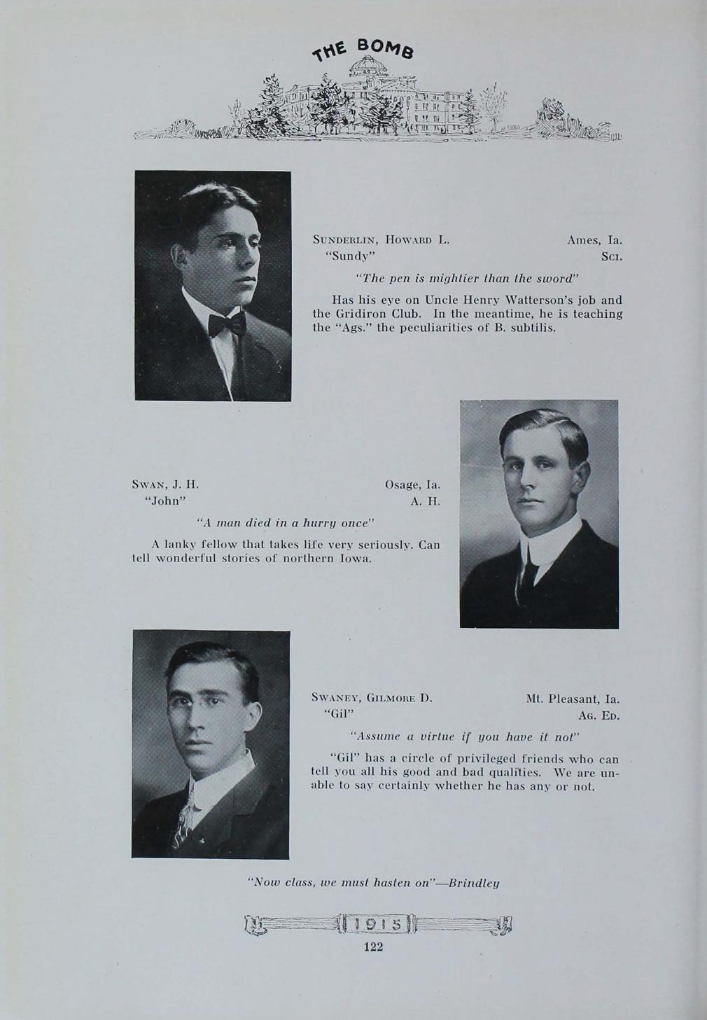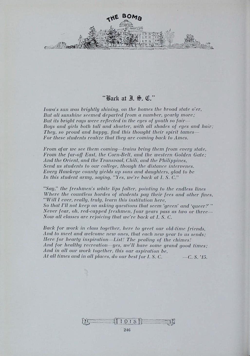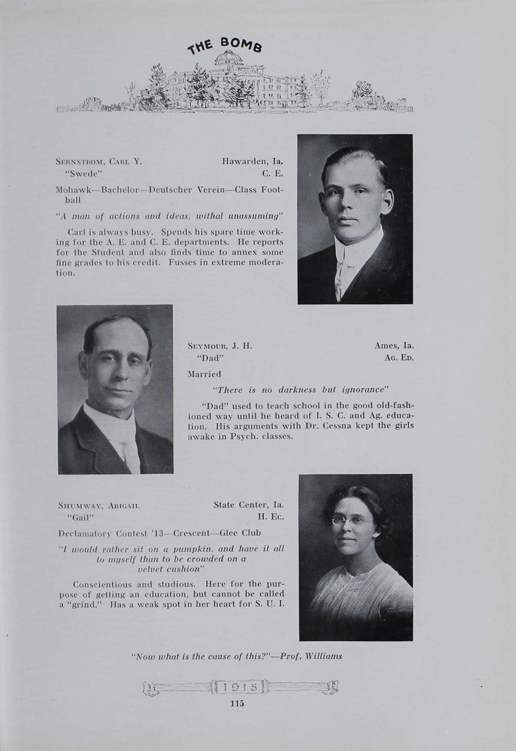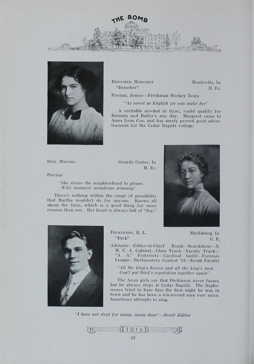 - "1915 Bomb", The Bomb (Iowa State) School Yearbooks, Iowa State University Library Digital Collections