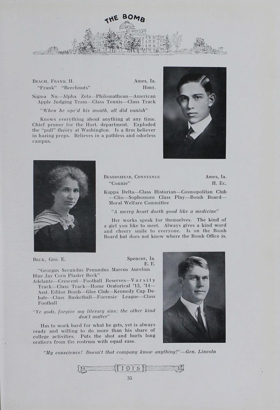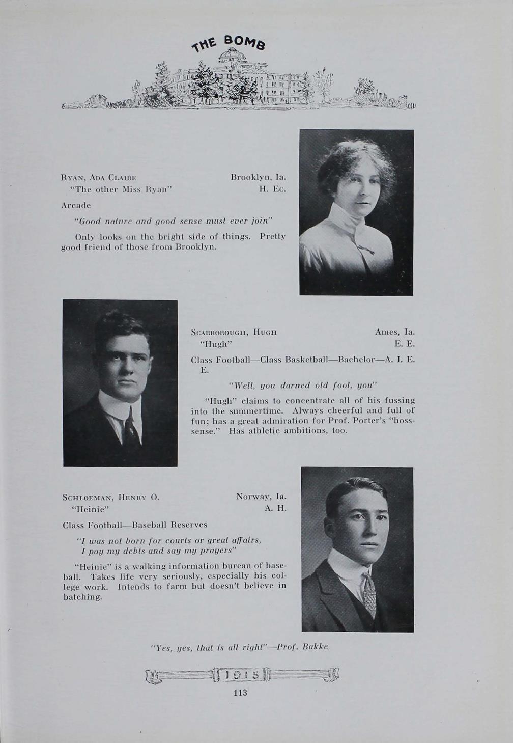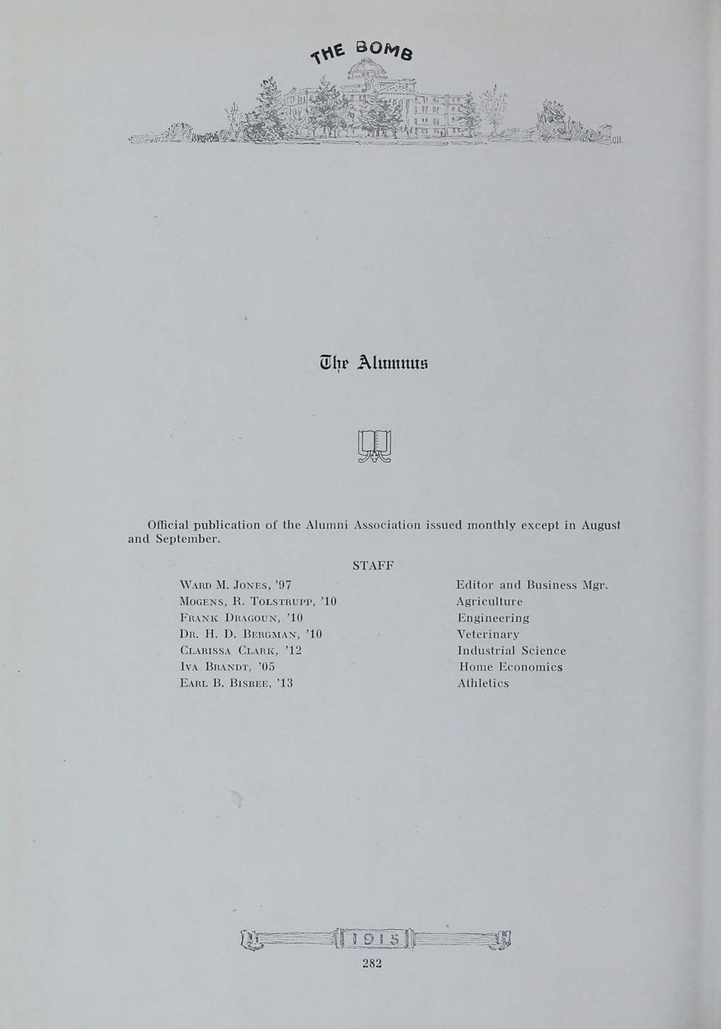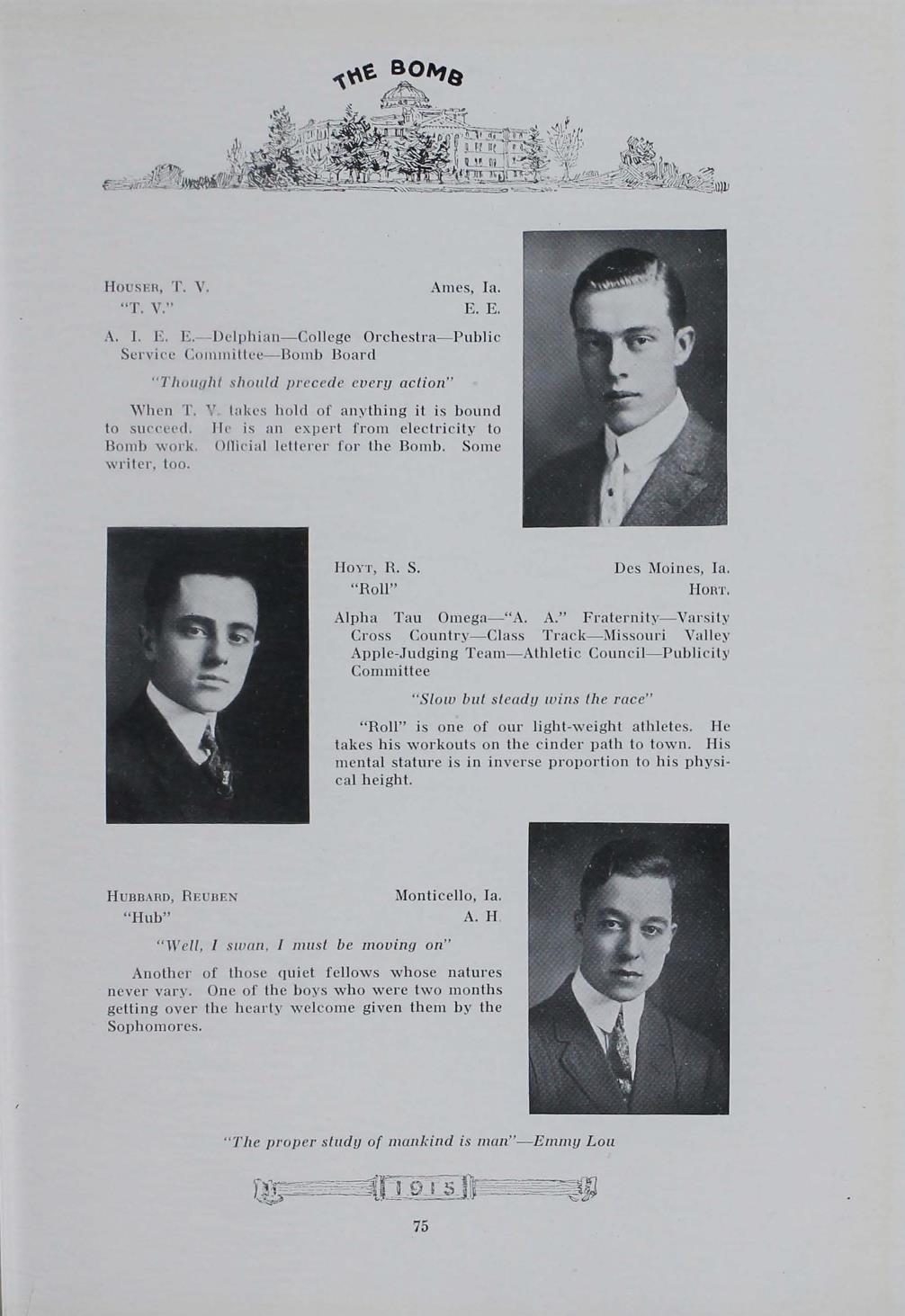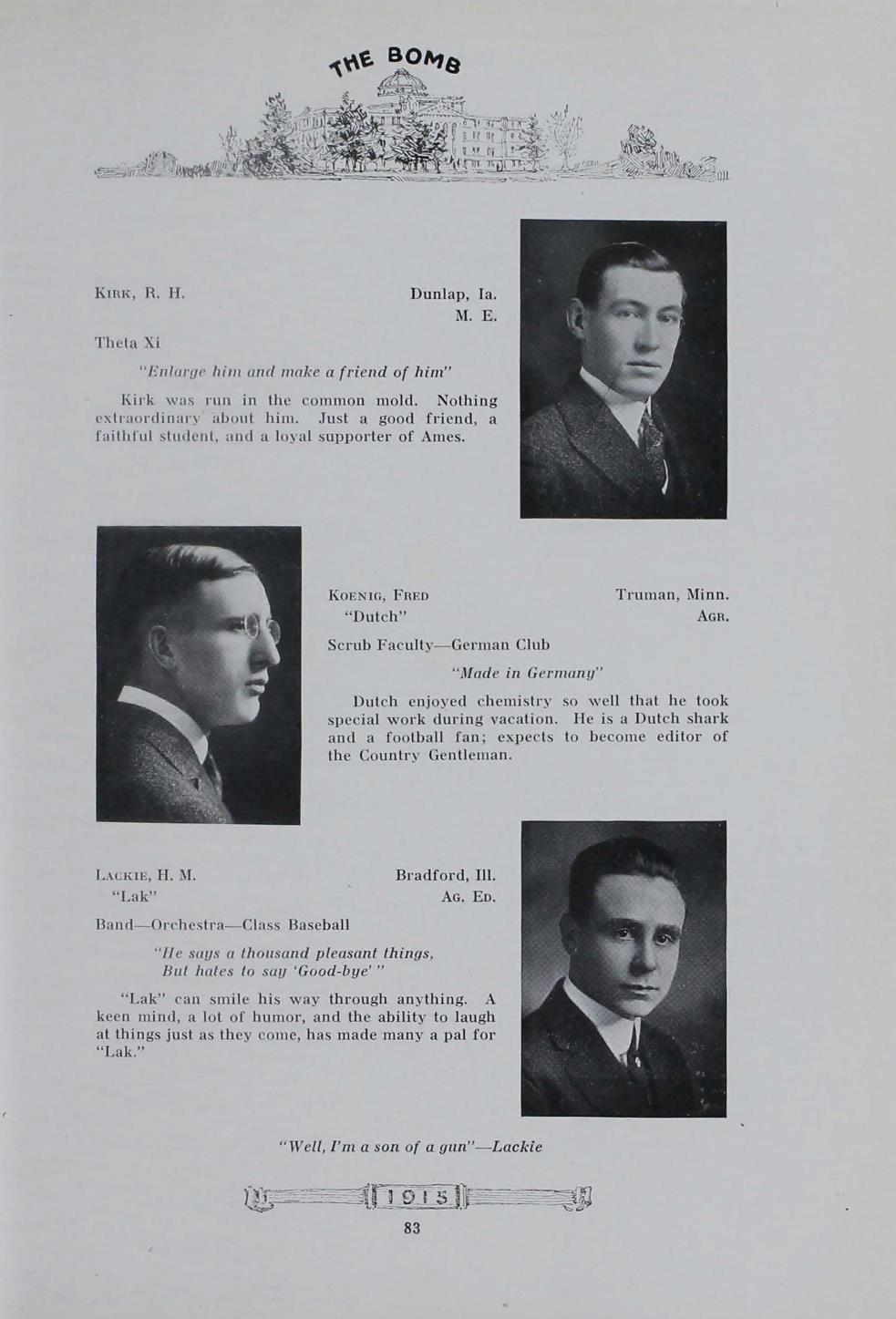 - "1915 Bomb", The Bomb (Iowa State) School Yearbooks, Iowa State University Library Digital Collections