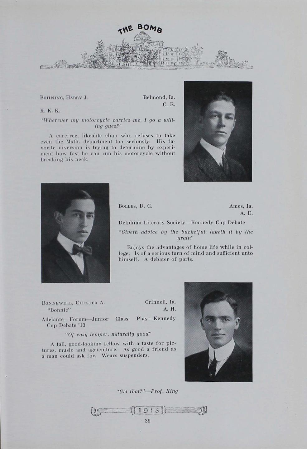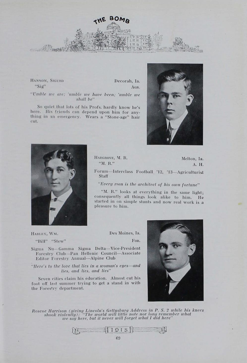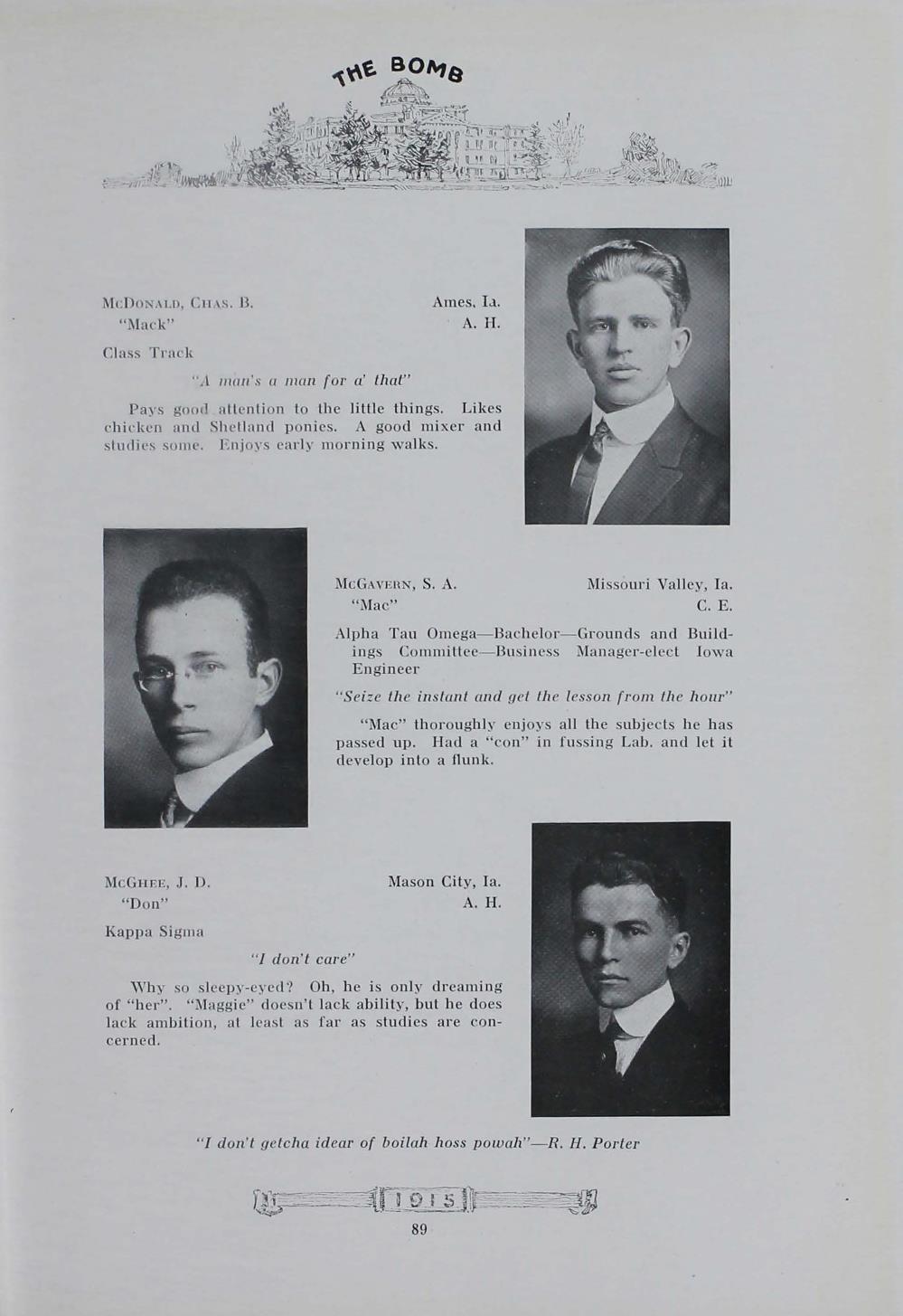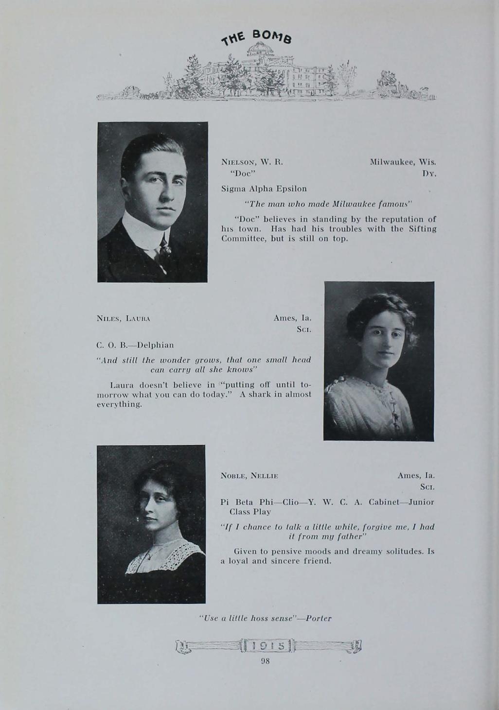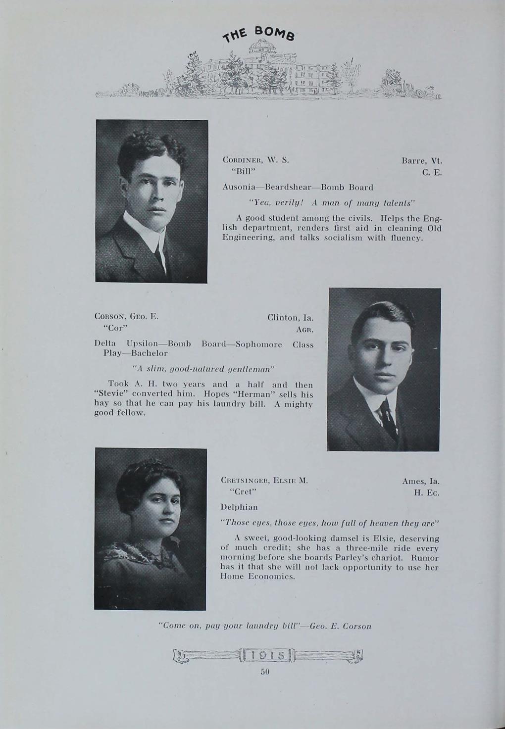 - "1915 Bomb", The Bomb (Iowa State) School Yearbooks, Iowa State University Library Digital Collections