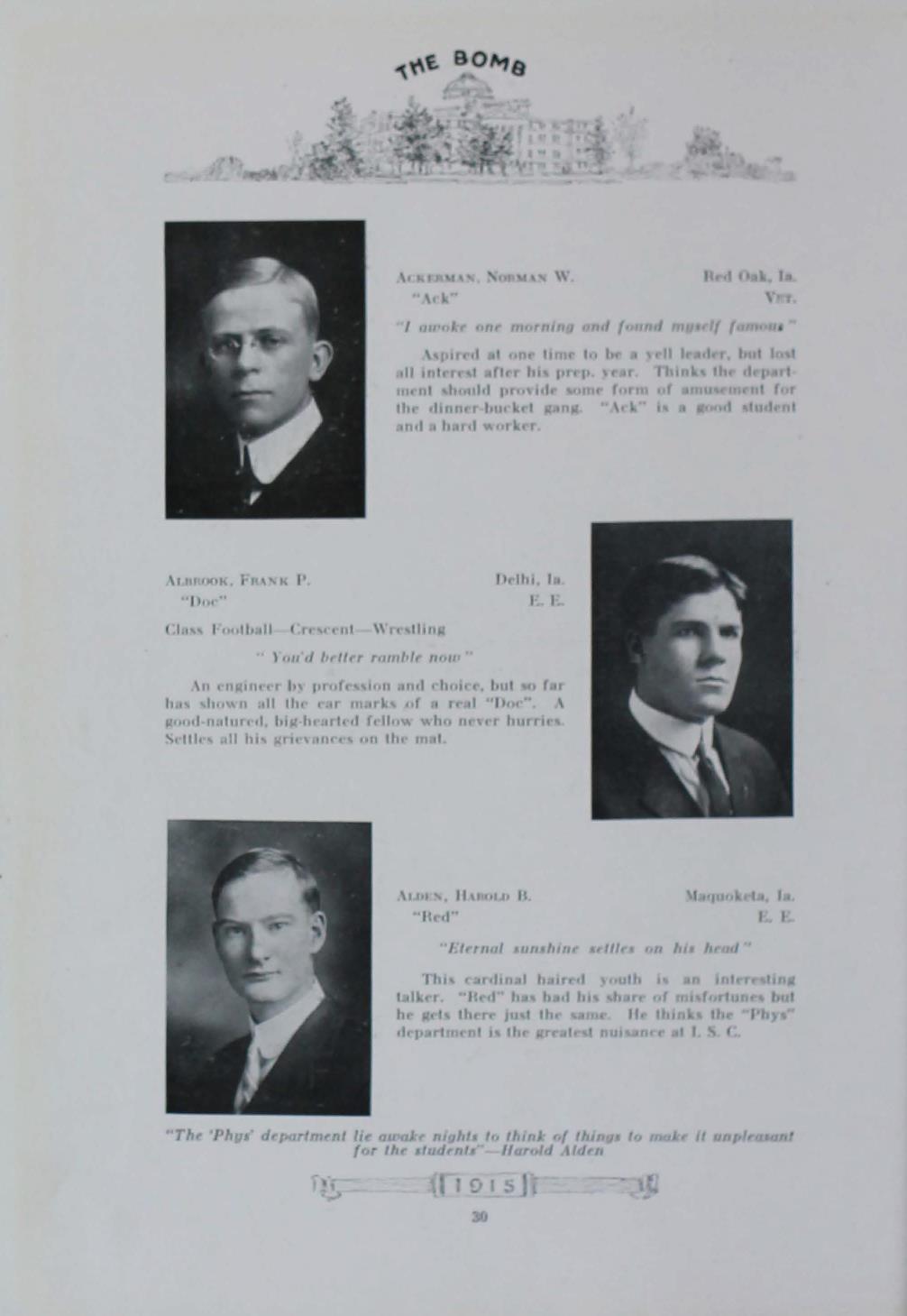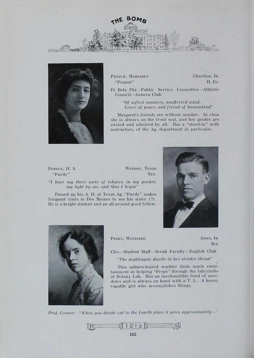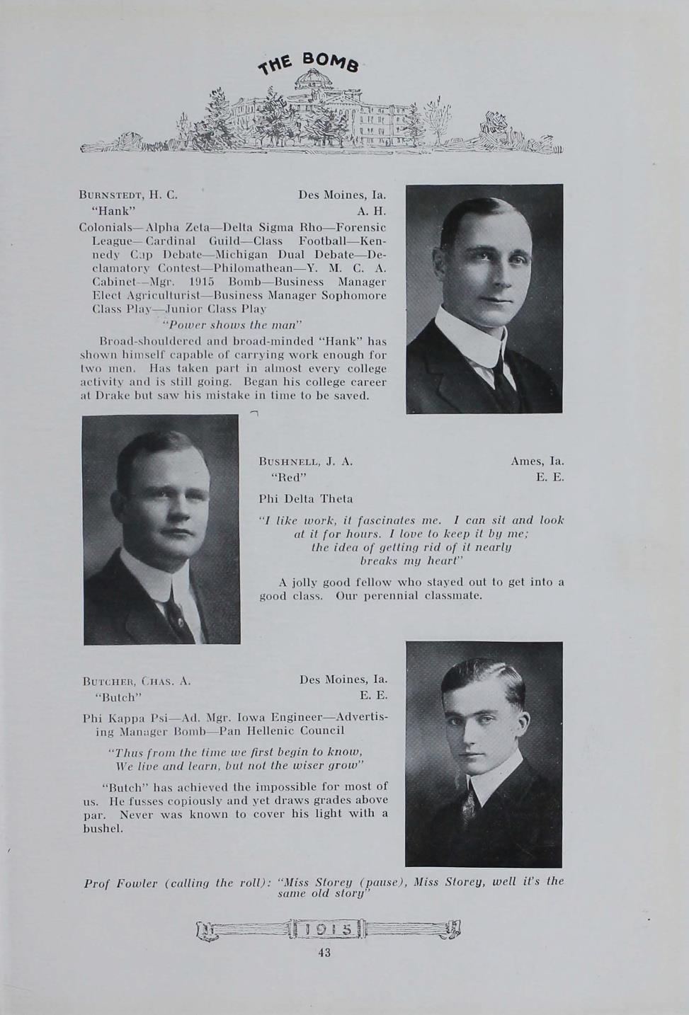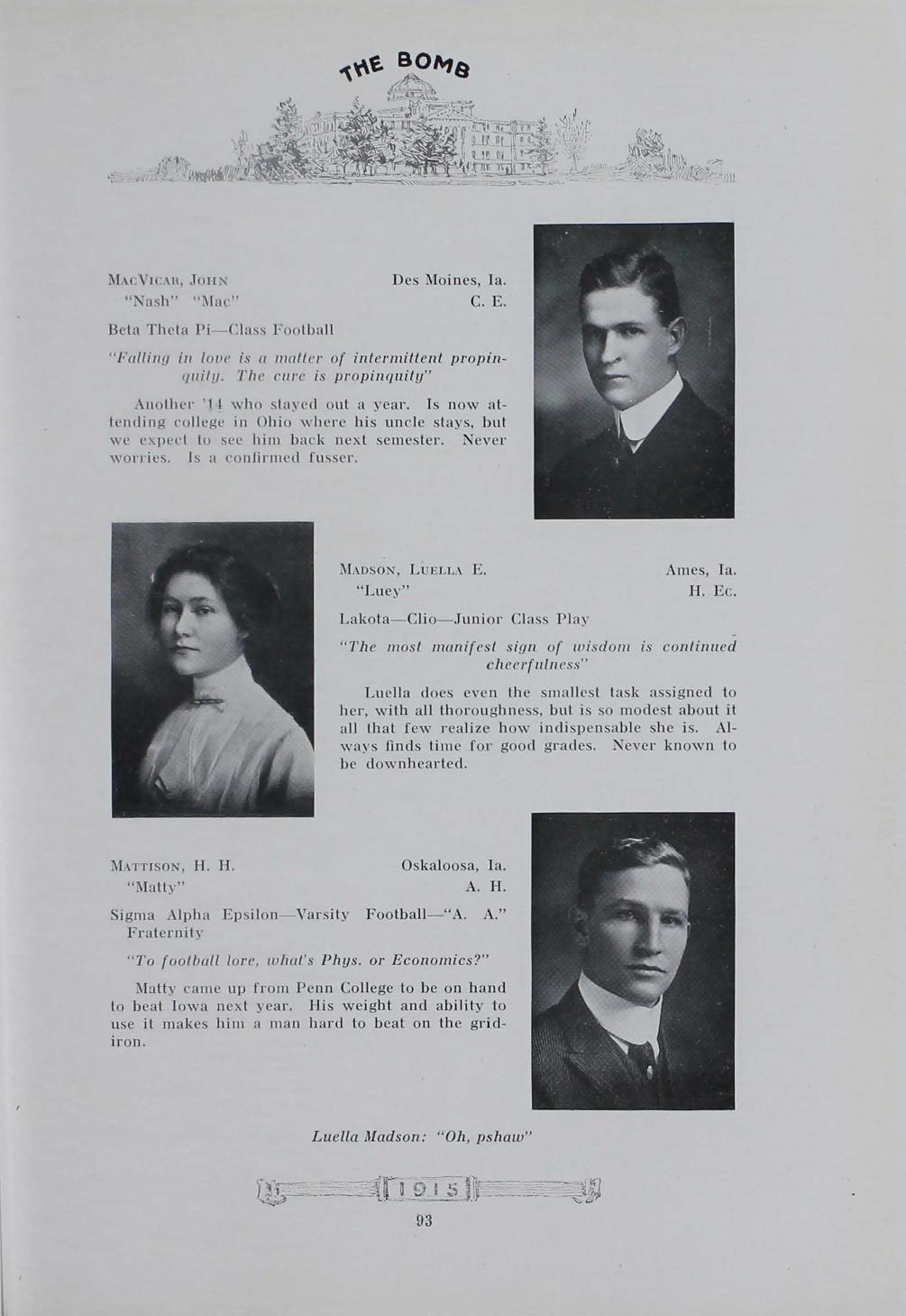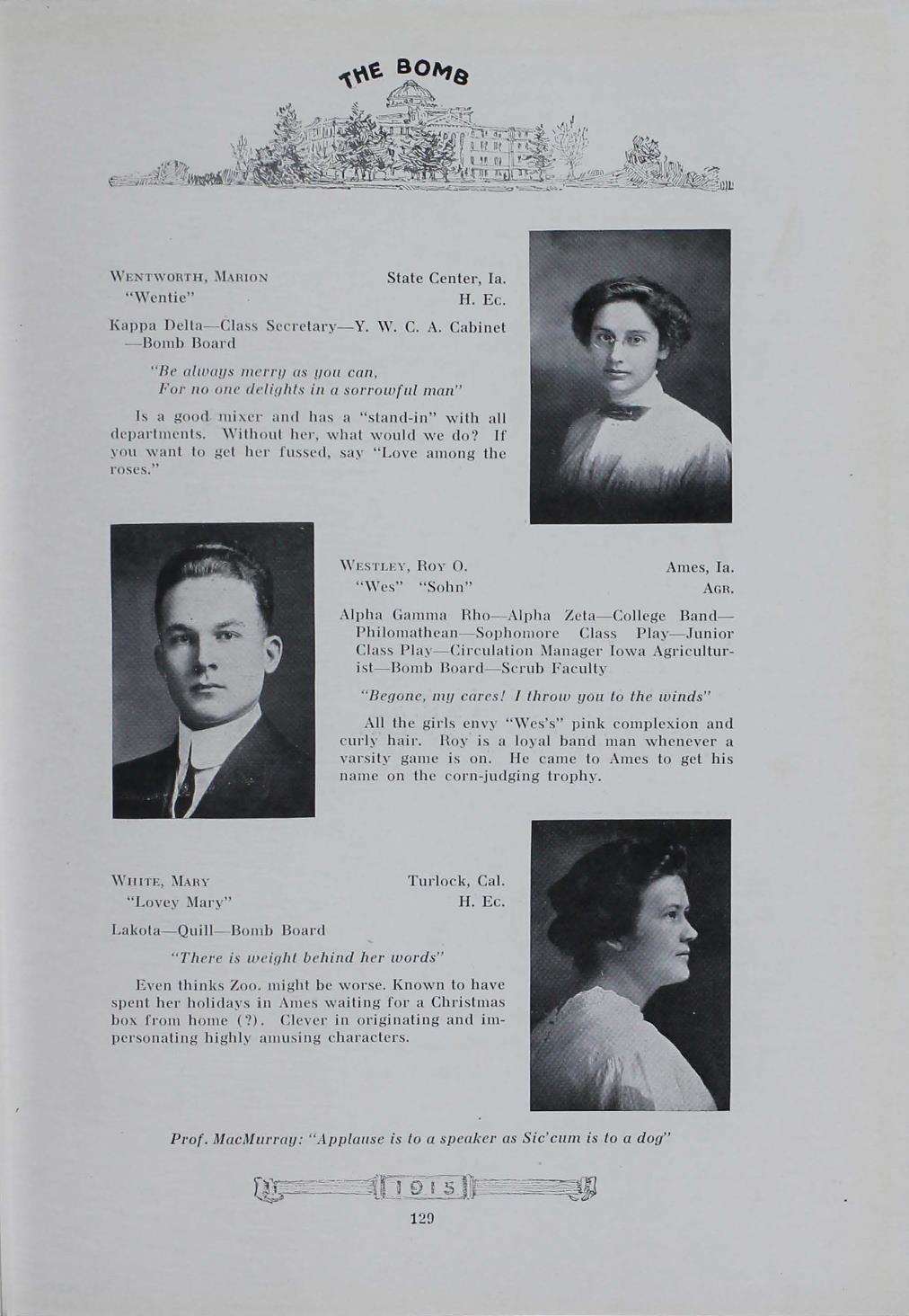 - "1915 Bomb", The Bomb (Iowa State) School Yearbooks, Iowa State University Library Digital Collections